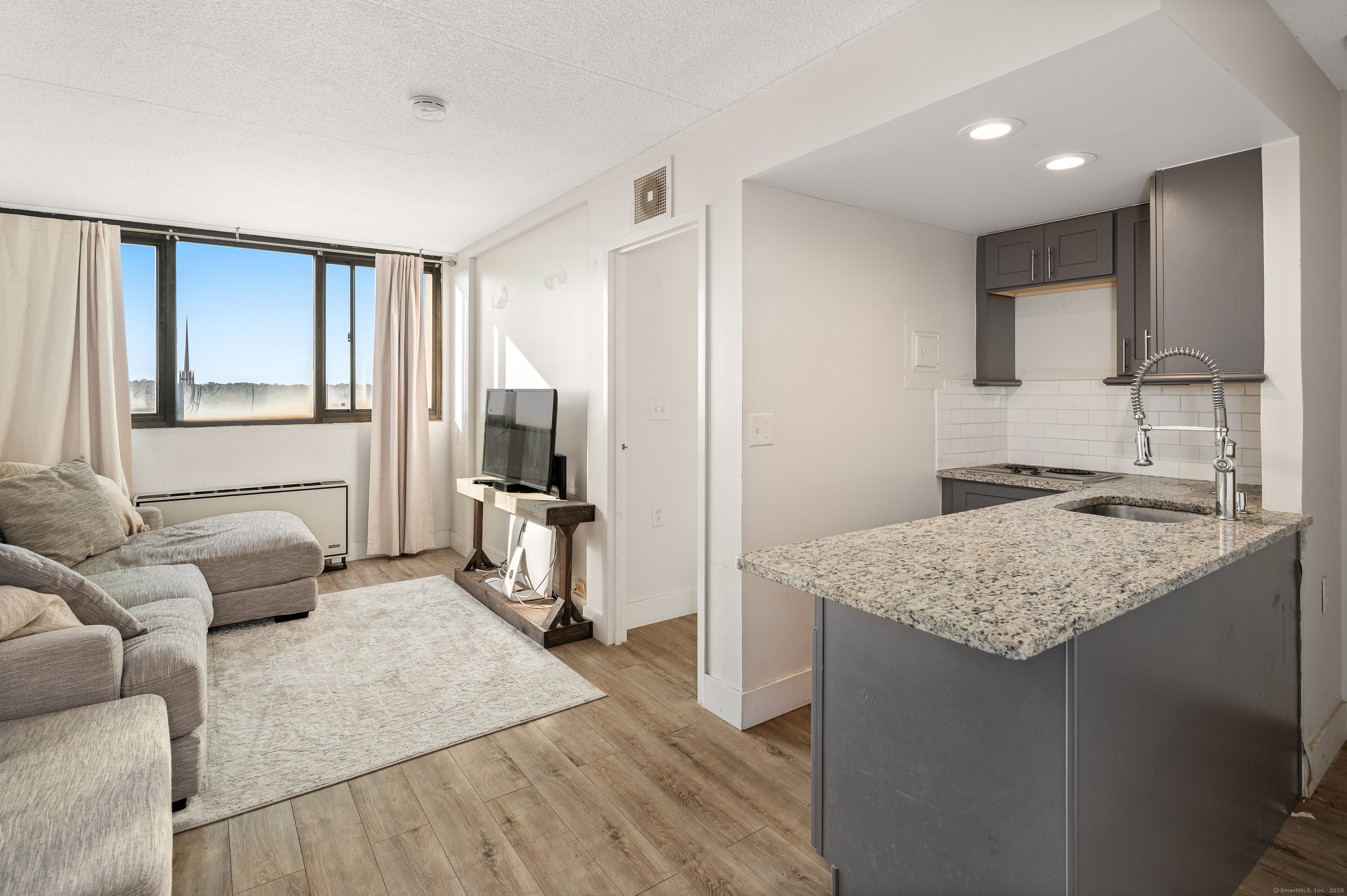 Welcome to Unit 816 at 60 Strawberry Hill Avenue - a bright and spacious 1-bedroom condo in Stamford's desirable Royal Pavilion. This updated unit features an open layout, a modern kitchen with quartz counters, and a comfortable living area with city views. The well-maintained building offers 24-hour security, a fitness room, sauna, convenient on-site laundry facilities, and garage parking, with most utilities (heat, hot water, water, AC)included in the HOA. Perfect for both owners and investors, this is an investor-friendly building with comparable units renting for approximately $1,750 per month. Conveniently located near downtown shops, dining, and transportation, this condo offers easy, worry-free living in the heart of Stamford.