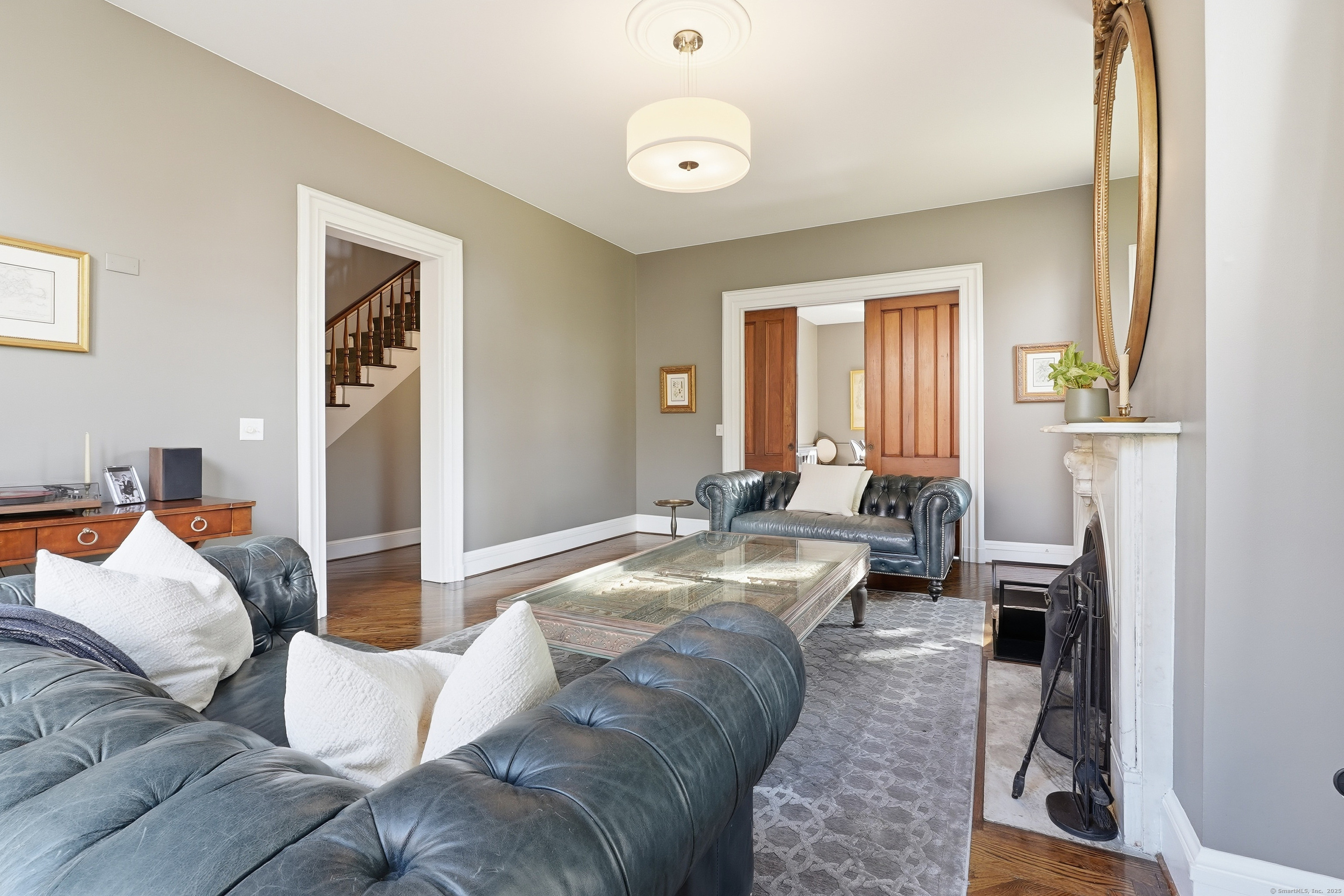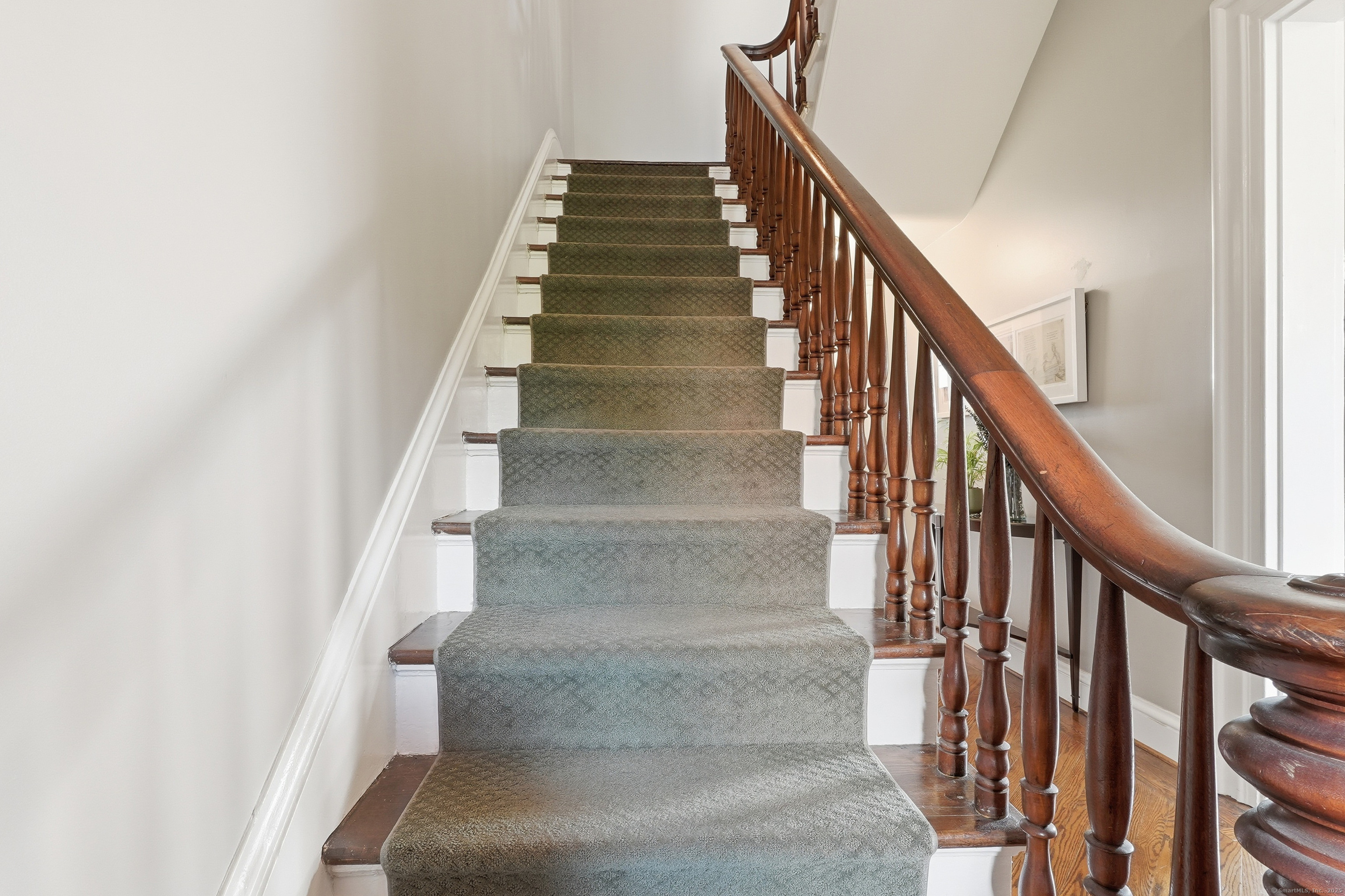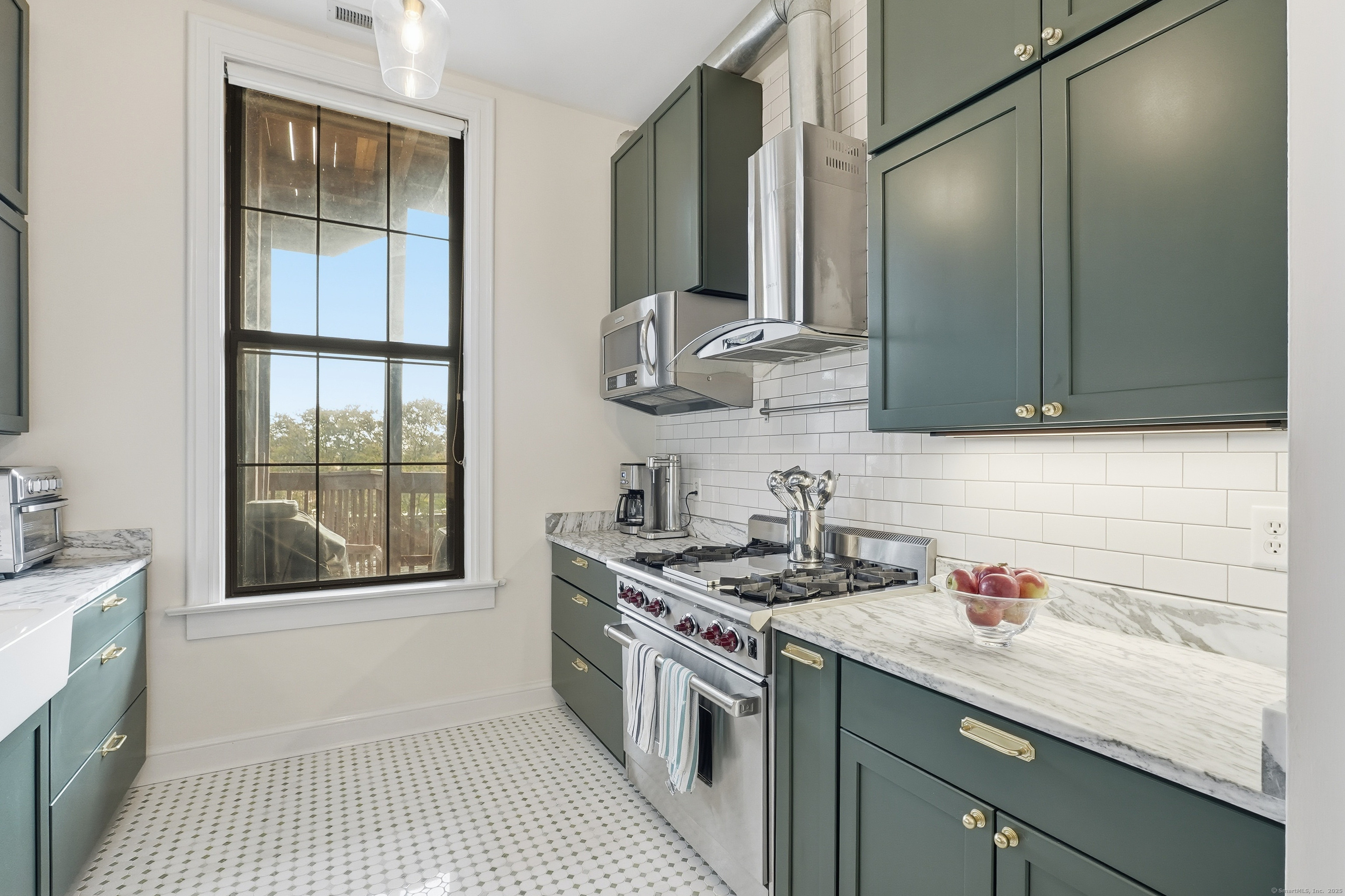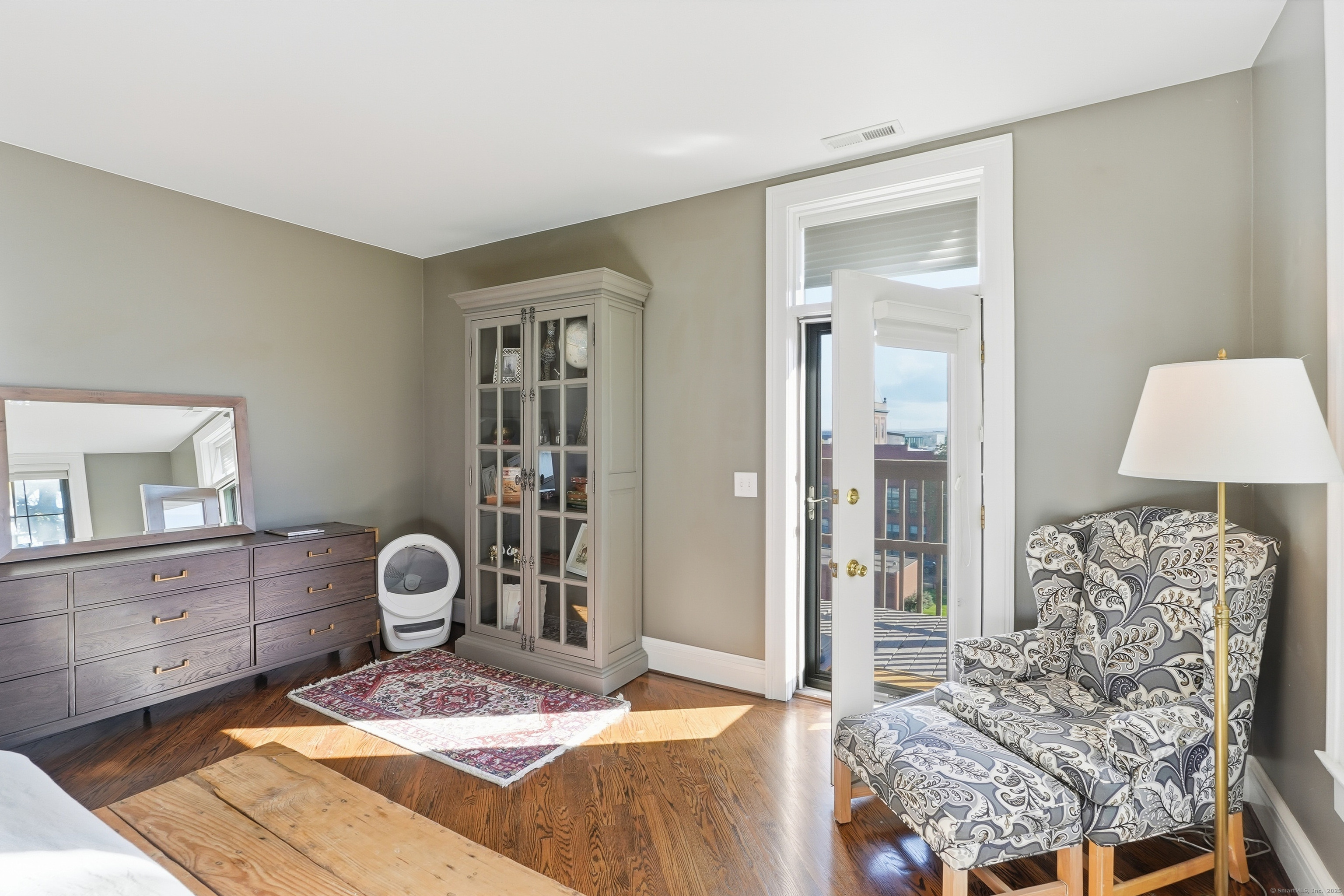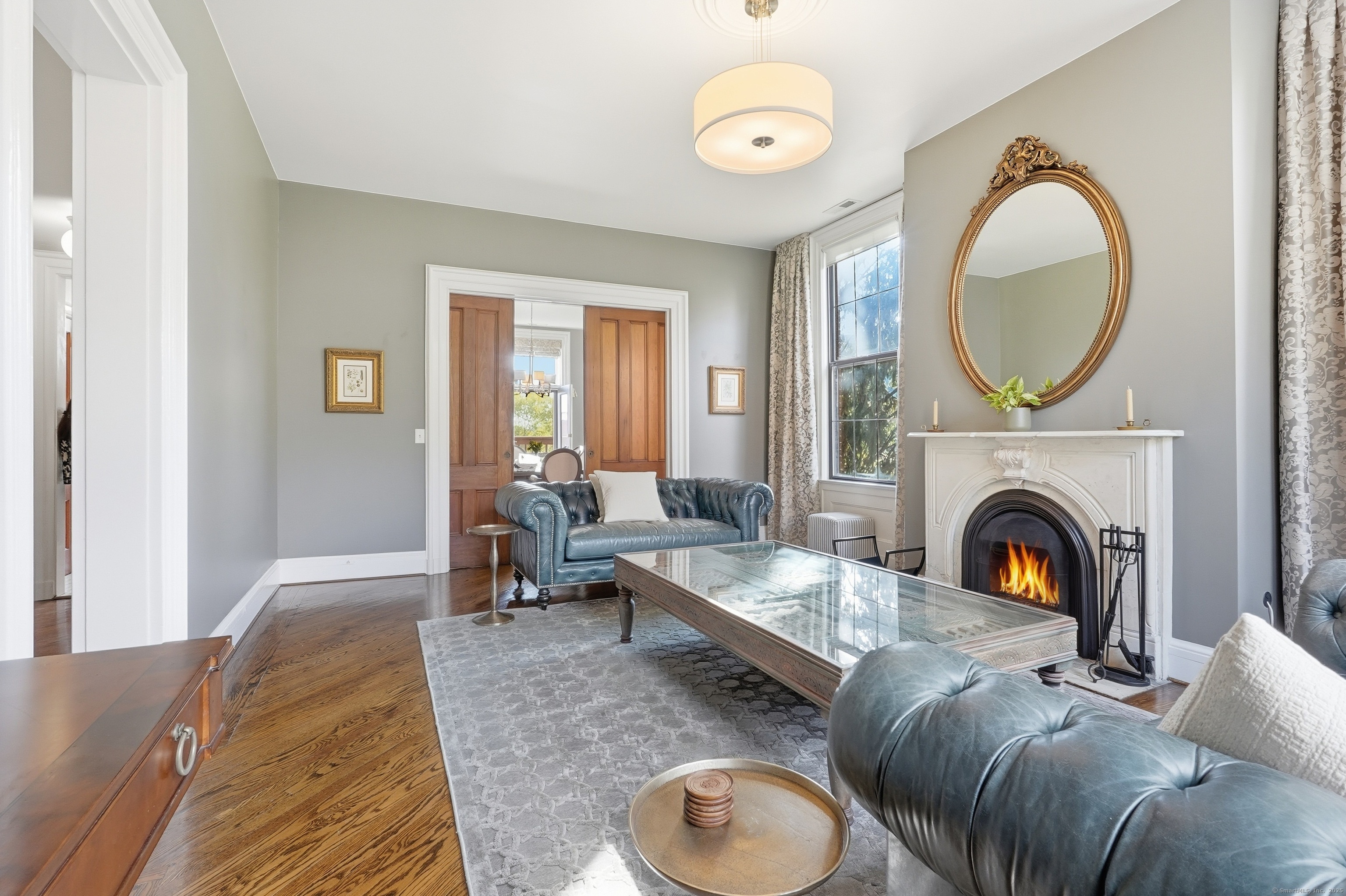 Private Entrance to Your Own Brownstone on Historic Charter Oak Place! Welcome to one of only five units in the distinguished Fenn-Eaton House, nestled in the heart of downtown Hartford. This gracious townhome offers the perfect blend of historic character and modern comfort-all within walking distance to the city's top attractions. Catch a Yard Goats game, dine at the Capitol Grille, enjoy a Broadway show at The Bushnell, picnic or ice skate in Bushnell Park, or take a sunset stroll along the riverfront path-it's all just steps from your door. Inside, you'll be charmed by the period details of yesteryear paired with today's modern conveniences. Beautiful original wide oak pocket doors with classic brass hardware elegantly separate the living and dining rooms, offering both openness and intimacy for entertaining. The remodeled kitchen is a chef's dream, featuring a 6-burner Wolf range, deep pantry closet, farmhouse sink, and quality finishes throughout.Upstairs, the Primary bedroom has a remodeled bathroom, private balcony and walk-in dressing area. Laundry is located in the second full bath. This Brownstone also boasts of one of the larger storage units in the basement and a one car garage. Views from the balcony and covered porch make outdoor dining and entertaining a Must!
