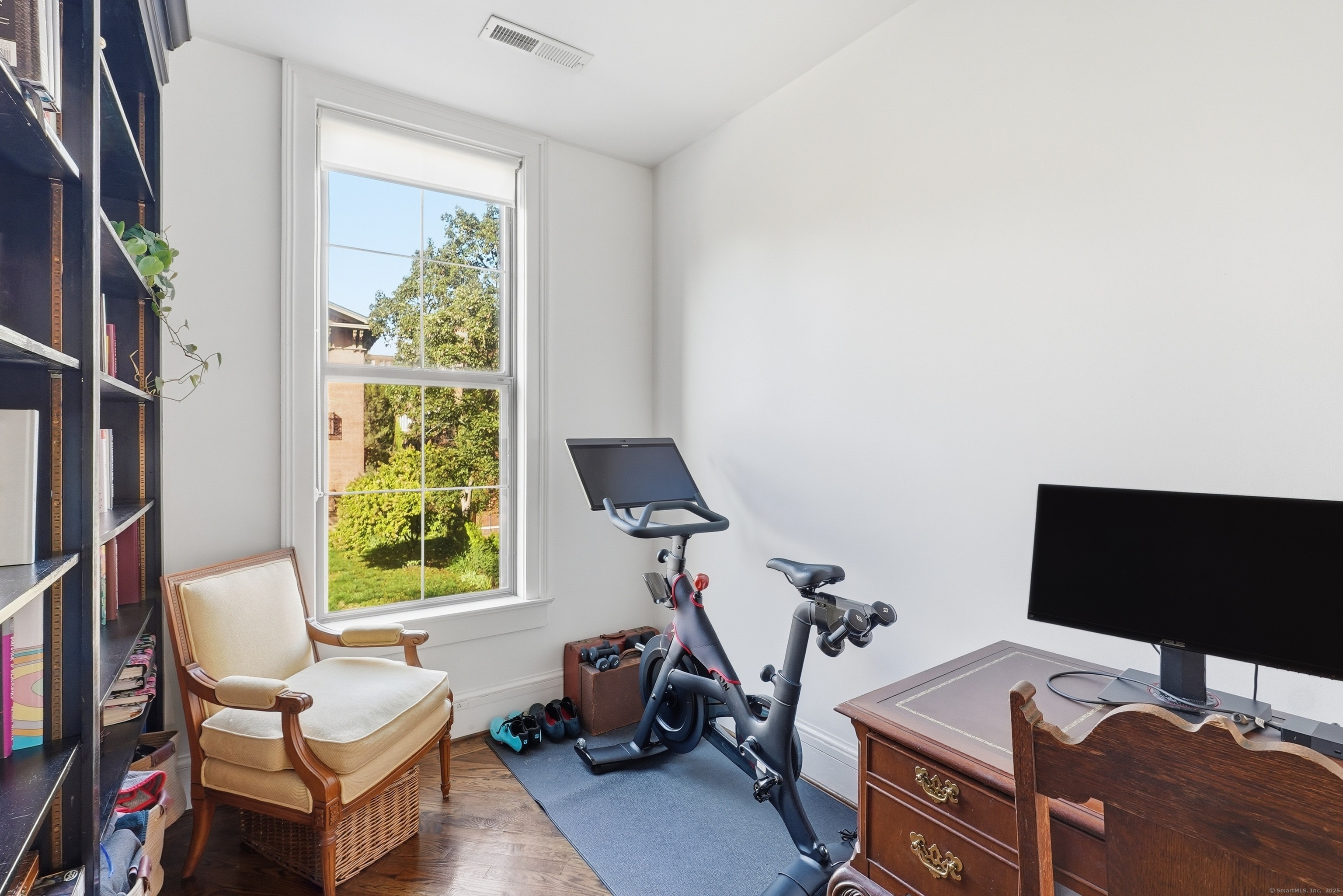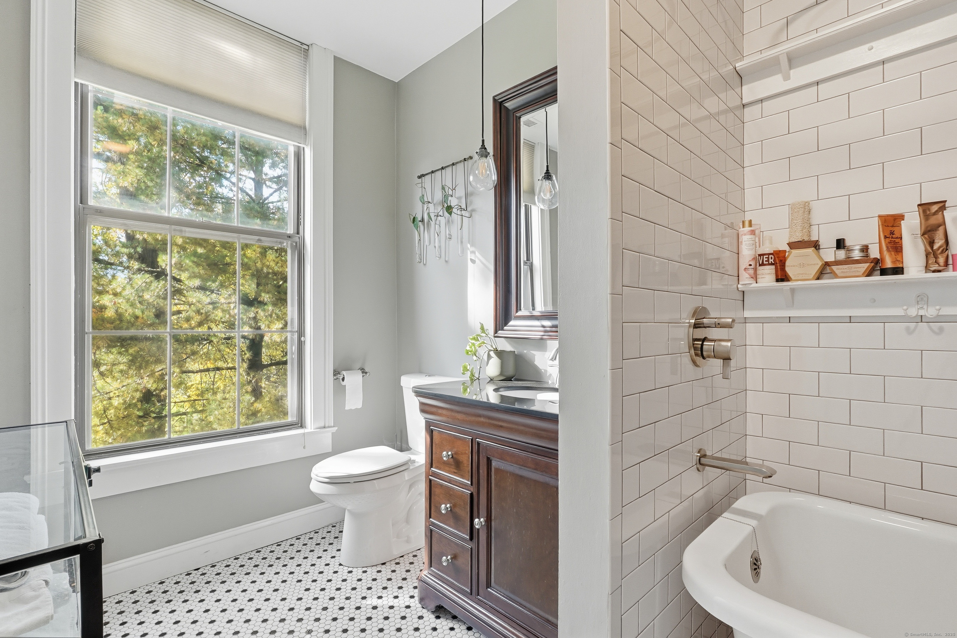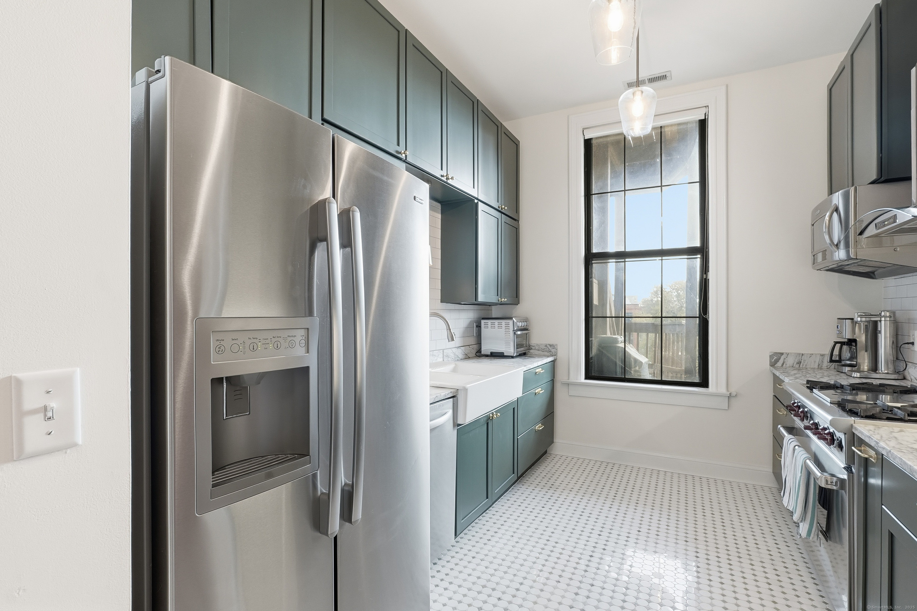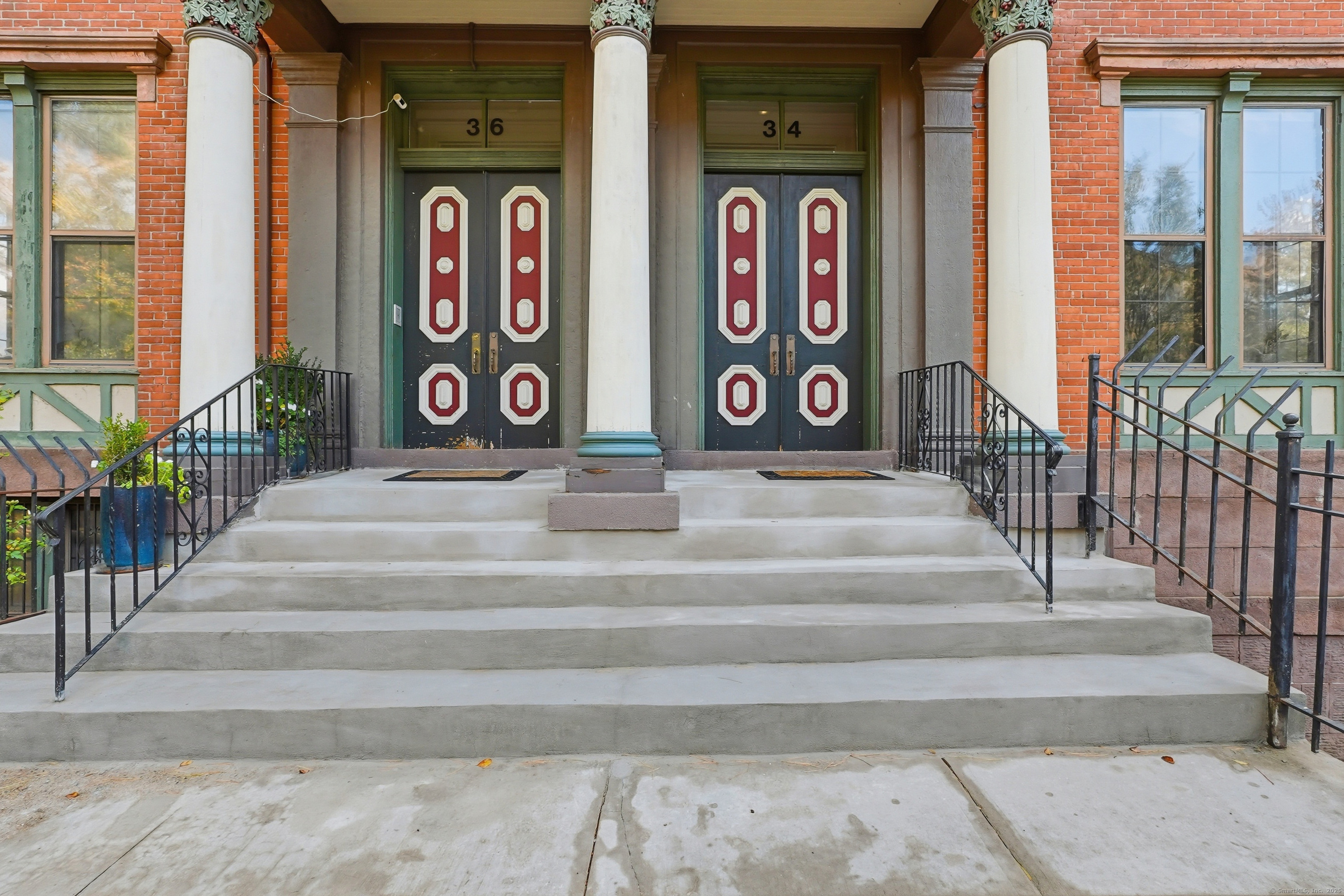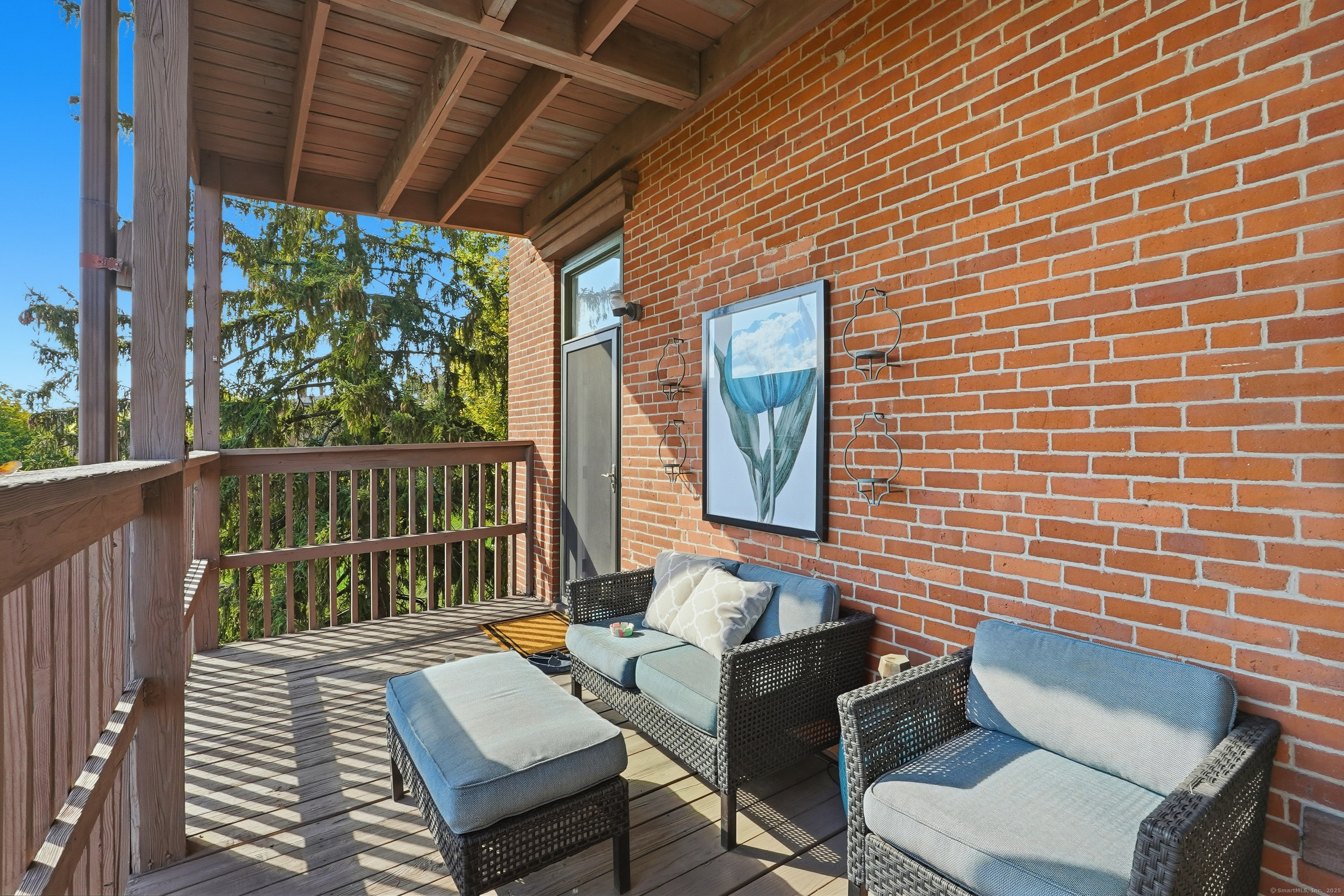 Private Entrance to Your Own Brownstone on Historic Charter Oak Place! Welcome to one of only five units in the distinguished Fenn-Eaton House, nestled in the heart of downtown Hartford. This gracious townhome offers the perfect blend of historic character and modern comfort-all within walking distance to the city's top attractions. Catch a Yard Goats game, dine at the Capitol Grille, enjoy a Broadway show at The Bushnell, picnic or ice skate in Bushnell Park, or take a sunset stroll along the riverfront path-it's all just steps from your door. Inside, you'll be charmed by the period details of yesteryear paired with today's modern conveniences. Beautiful original wide oak pocket doors with classic brass hardware elegantly separate the living and dining rooms, offering both openness and intimacy for entertaining. The remodeled kitchen is a chef's dream, featuring a 6-burner Wolf range, deep pantry closet, farmhouse sink, and quality finishes throughout.Upstairs, the Primary bedroom has a remodeled bathroom, private balcony and walk-in dressing area. Laundry is located in the second full bath. This Brownstone also boasts of one of the larger storage units in the basement and a one car garage. Views from the balcony and covered porch make outdoor dining and entertaining a Must!