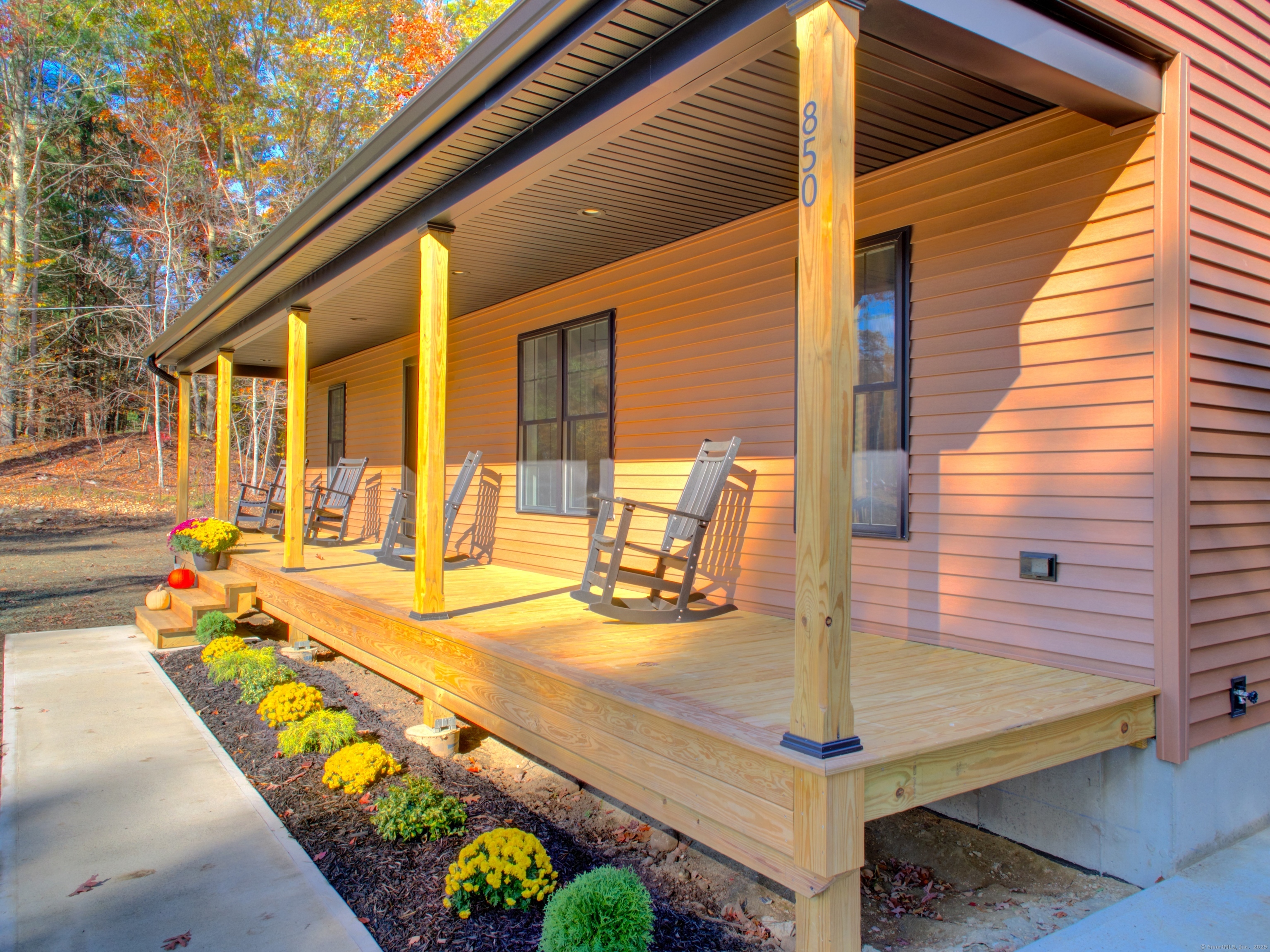 Welcome to 850 Brook Road located in Connecticut's "Quiet Corner". This one of a kind new construction offers two homes for the price of one. The main level features 3 bedrooms, 2 full baths, a beautiful applianced kitchen with black quartz sink, high end granite countertops, and stackable washer dryer connections. The walkout lower level is another complete home. Featuring an expansive livingroom , a fully applianced kitchen with breakfast bar, dining area, a large bedroom, and full bath along with side by side washer dryer connection. Sound proofing insulation has been added for privacy between the two units. This is perfect as an inlaw , separate family suite, or as a rental to help offset your mortgage. All set on 2.44 private acres, this 2100 sq ft home also includes a 6X44 farmers porch, a 12X16 deck, an oversized 24X24 semi attached garage with sidewalks and steps to access both units, an on demand limitless propane hot water system, separate heating and cooling for each level, Ring doorbell and flood light camera, luxury 9" wide board farmhouse style vinyl plank flooring throughout. This is a one of a kind custom designed home with unmatched quality and features.