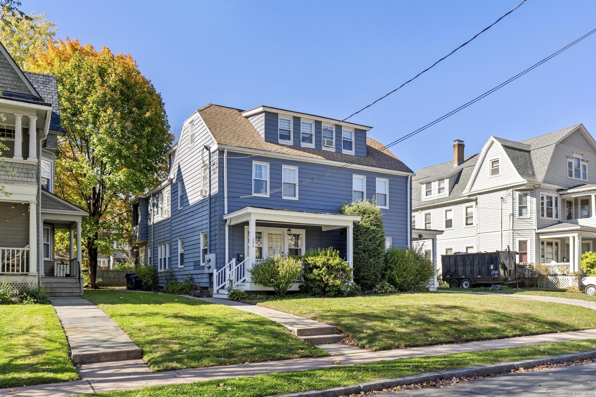 Rare investment opportunity in this beautifully maintained side-by-side two-family home exudes character and craftsmanship throughout. Each residence showcases hardwood floors, high ceilings, fireplace and stunning original woodwork that highlight the home's appeal. The updated kitchens feature modern amenities while retaining vintage charm with classic butler's pantry. Enjoy morning coffee on the covered side porch or second-floor balcony, and unwind on the inviting front porch overlooking a picturesque, tree-lined street. Additional highlights include updated windows, a detached two-car garage, and a paver driveway offering plenty of off-street parking. Nestled in an ideal neighborhood near Elizabeth Park, this home offers a rare blend of historic elegance and everyday convenience - perfect for owner-occupants or investors alike. Property is being sold AS-IS.