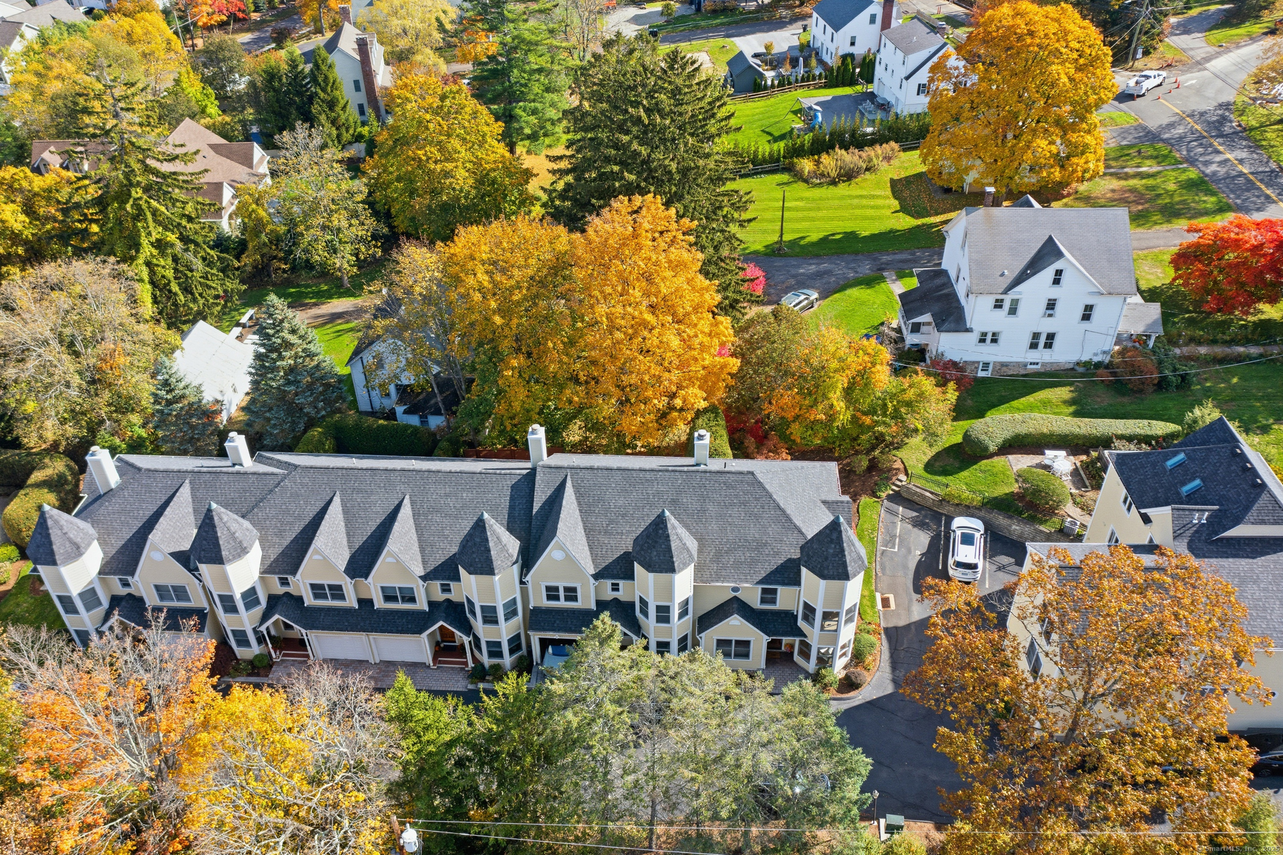 Discover timeless elegance at Wisteria Garden Colonial Condos in the heart of historic Ridgefield, CT. This exquisite 1,690 sq ft residence, built in 1995, features three bedrooms and two and a half baths. This is an end unit. Welcome to the open floor plan with a bay-windowed living room flowing into a dining area highlighted by a mantled fireplace. Hardwood floors, crown molding, and large windows enhance the sophisticated ambiance. The eat-in kitchen opens to a private patio surrounded by mature plantings, ideal for relaxation. The primary bedroom suite includes a walk-in closet and a spacious ensuite bath. Two additional bedrooms and a stylish hall bath offer ample space. With a basement, detached garage, and amenities like central air and conditional pet accommodations, comfort is guaranteed. Located near Ridgefield's antique stores, restaurants, and cultural landmarks, Wisteria Garden combines convenience with charm. Easy sidewalks to the Elementary school, Town parks, playgrounds, ice rink, and much more.