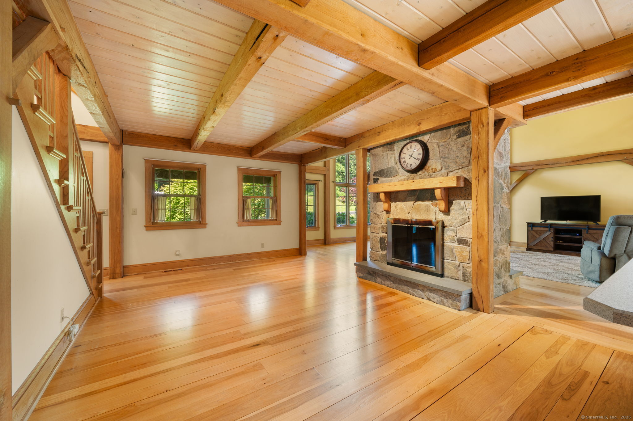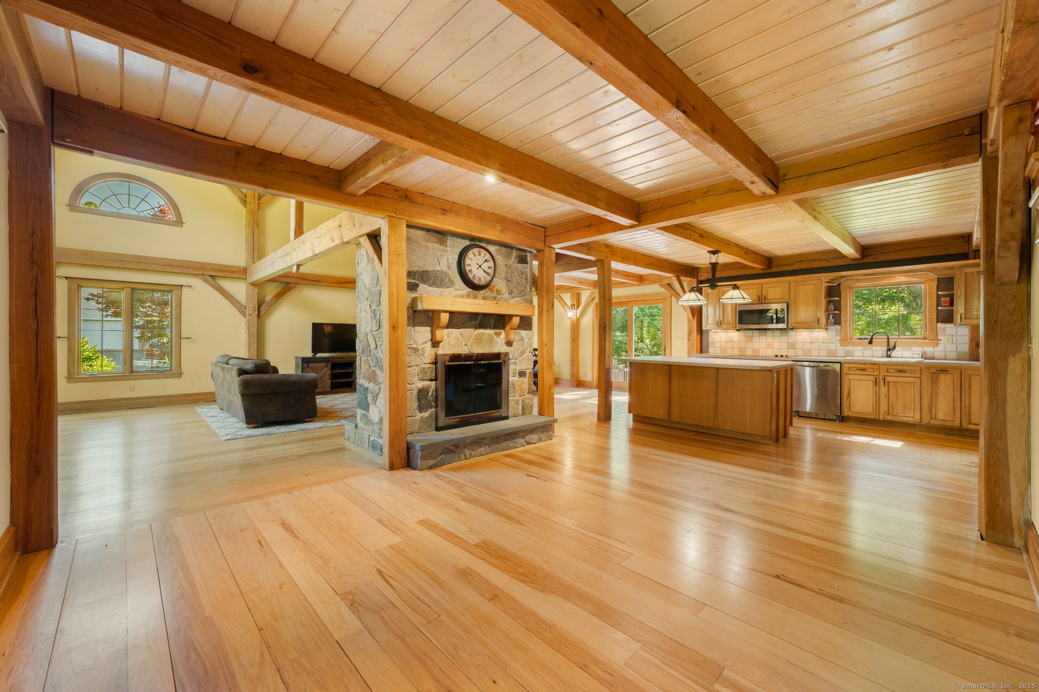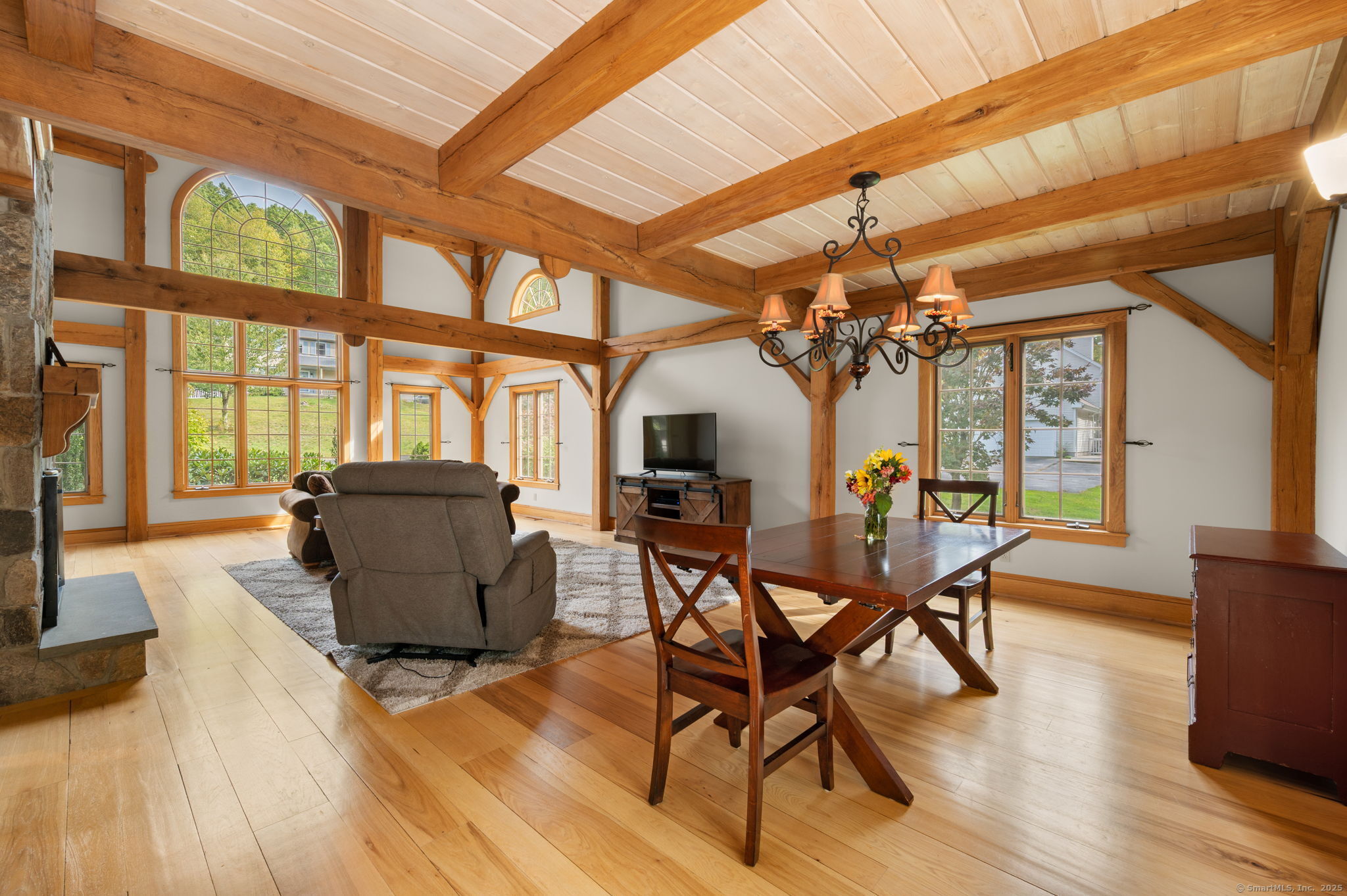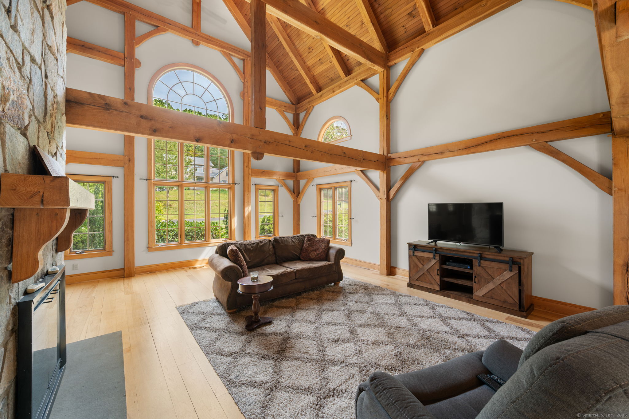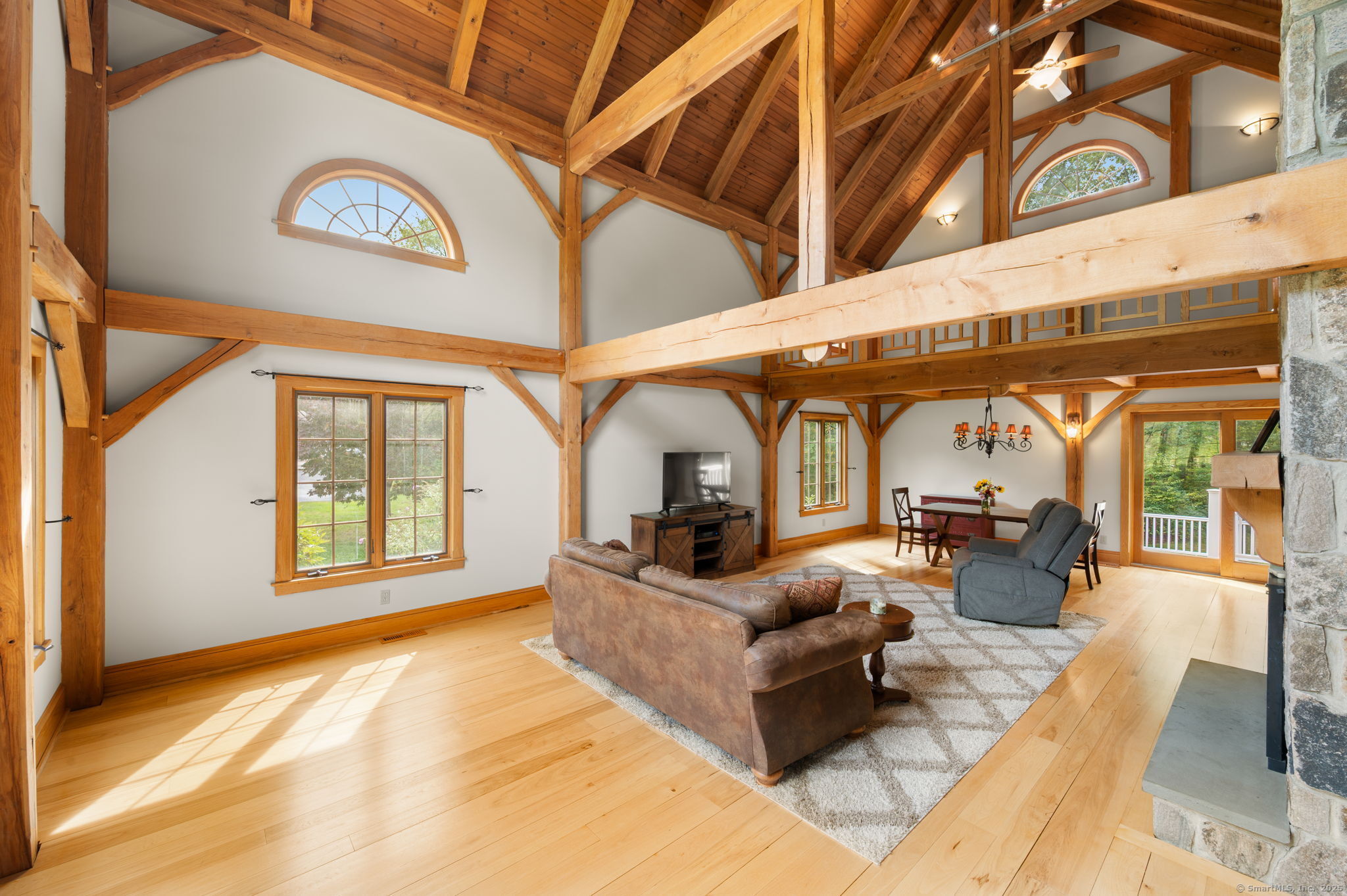 DESIRABLE HERITAGE FIELDS Sleek and striking, this breathtaking Post and Beam custom timber-frame contemporary offers a unique blend of rustic charm and modern luxury. Featuring an expansive open floor plan, the home boasts soaring floor-to-ceiling windows and a striking two-sided stone fireplace that anchors the living space. Impeccable hardwood floors flow throughout, complementing the custom staircase with artisanal balusters leads to an inviting loft. The kitchen-with a center island-opens seamlessly into a spacious dining area, complete with sliders that step out onto a multi-level deck overlooking the vast backyard. The oversized second-floor primary suite offers a peaceful retreat. Built with purpose and pride, this one-owner home was constructed with attention to design and detail and is a true reflection of quality and enduring comfort. Every inch was crafted to deliver style, function, and long-term peace of mind. The hobbyist will appreciate the heated 3 car garage, full walkout basement and work shed. Solar system is owned, this home is extremely efficient! Too many custom features to list. A portion of the lot is in an AE zone, Flood Elevation Certificate confirms NO flood insurance required. Enjoy all the E Lyme/Niantic amenities and seek out the nearby 200 acres of NIANTIC RIVER HEADWATERS COMMUNITY FOREST for hiking and exploring nature. https://newenglandforestry.org/land-conservation/conservation-successes/niantic-river-headwaters-community-forest