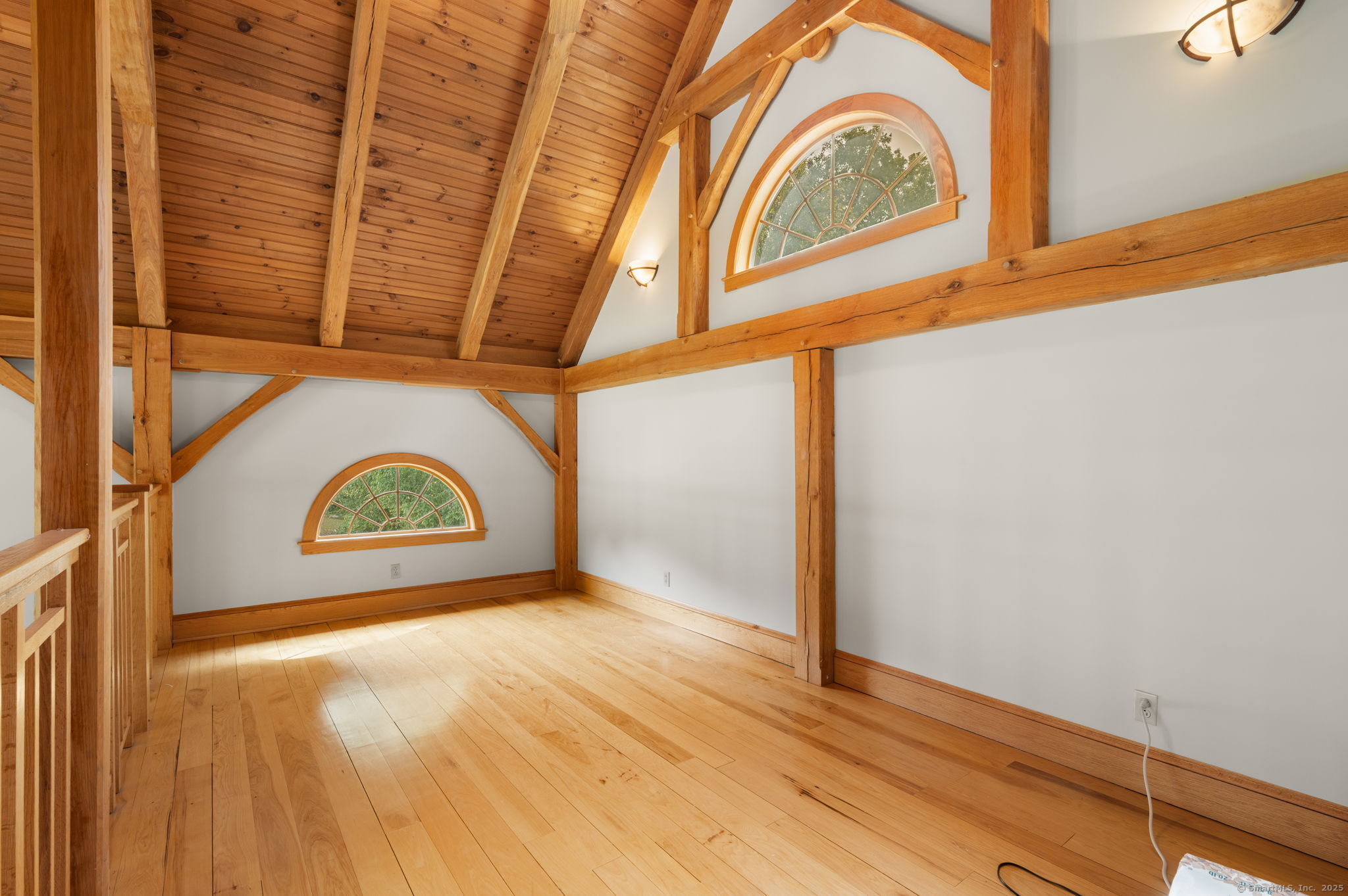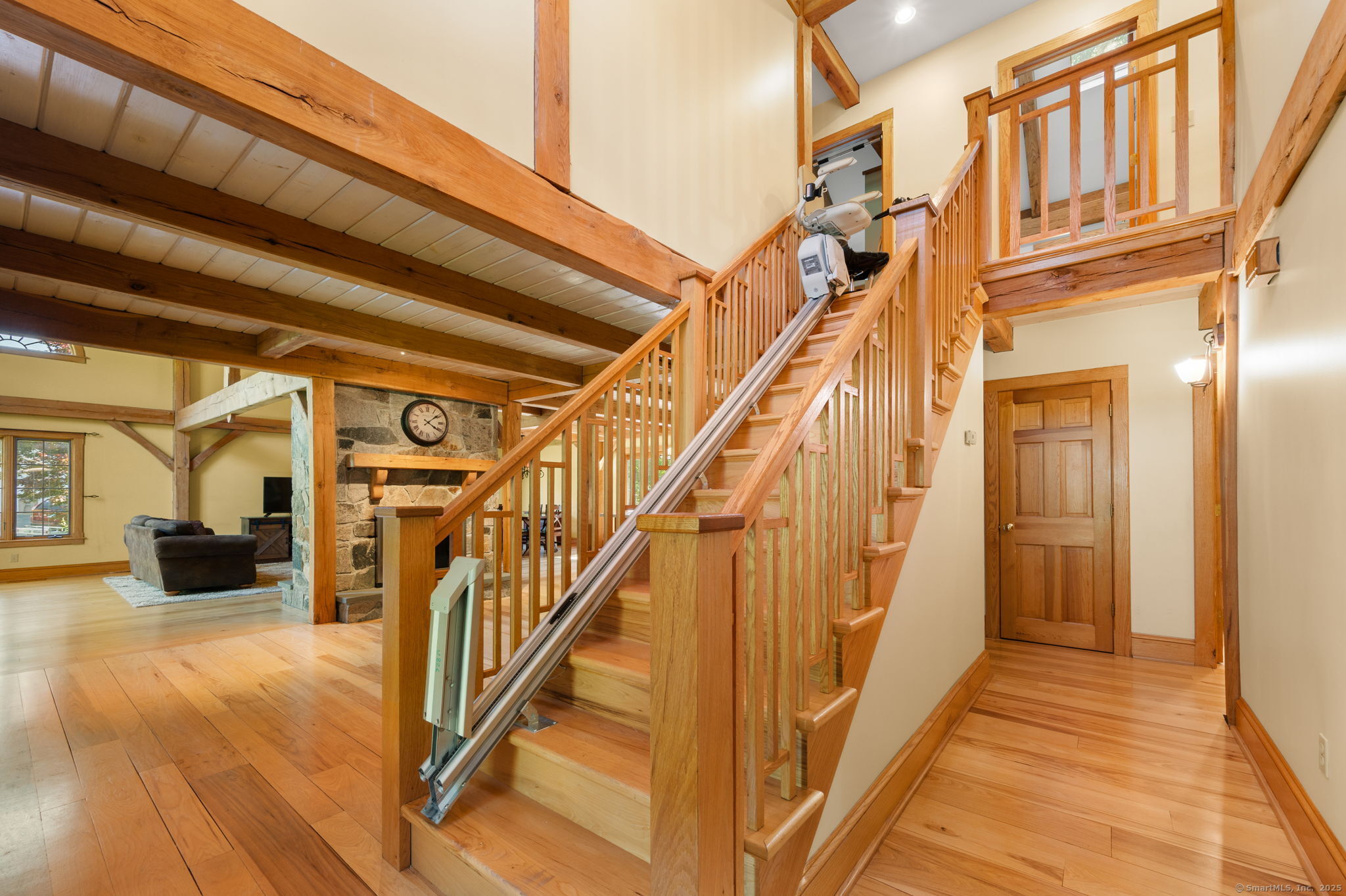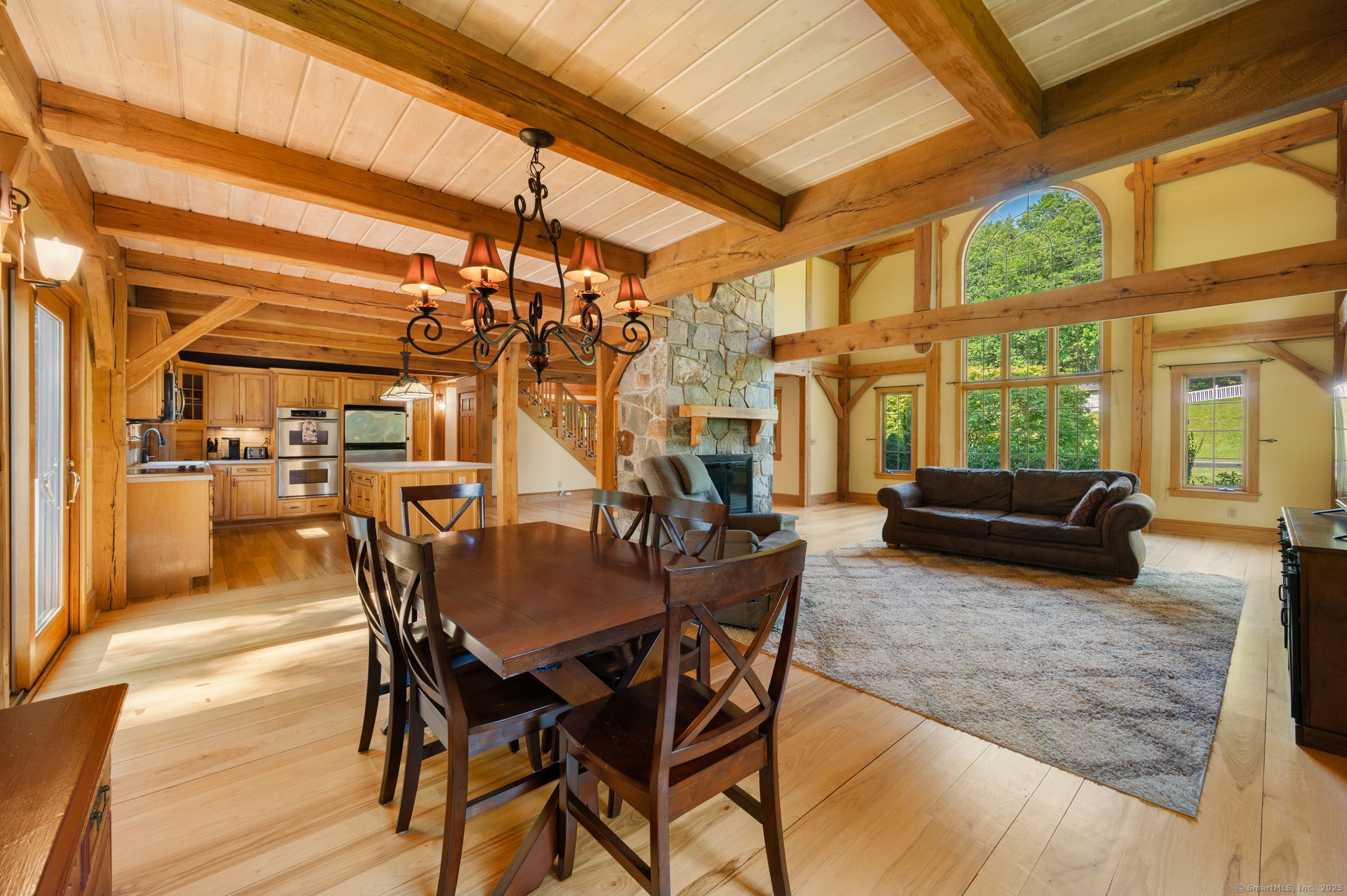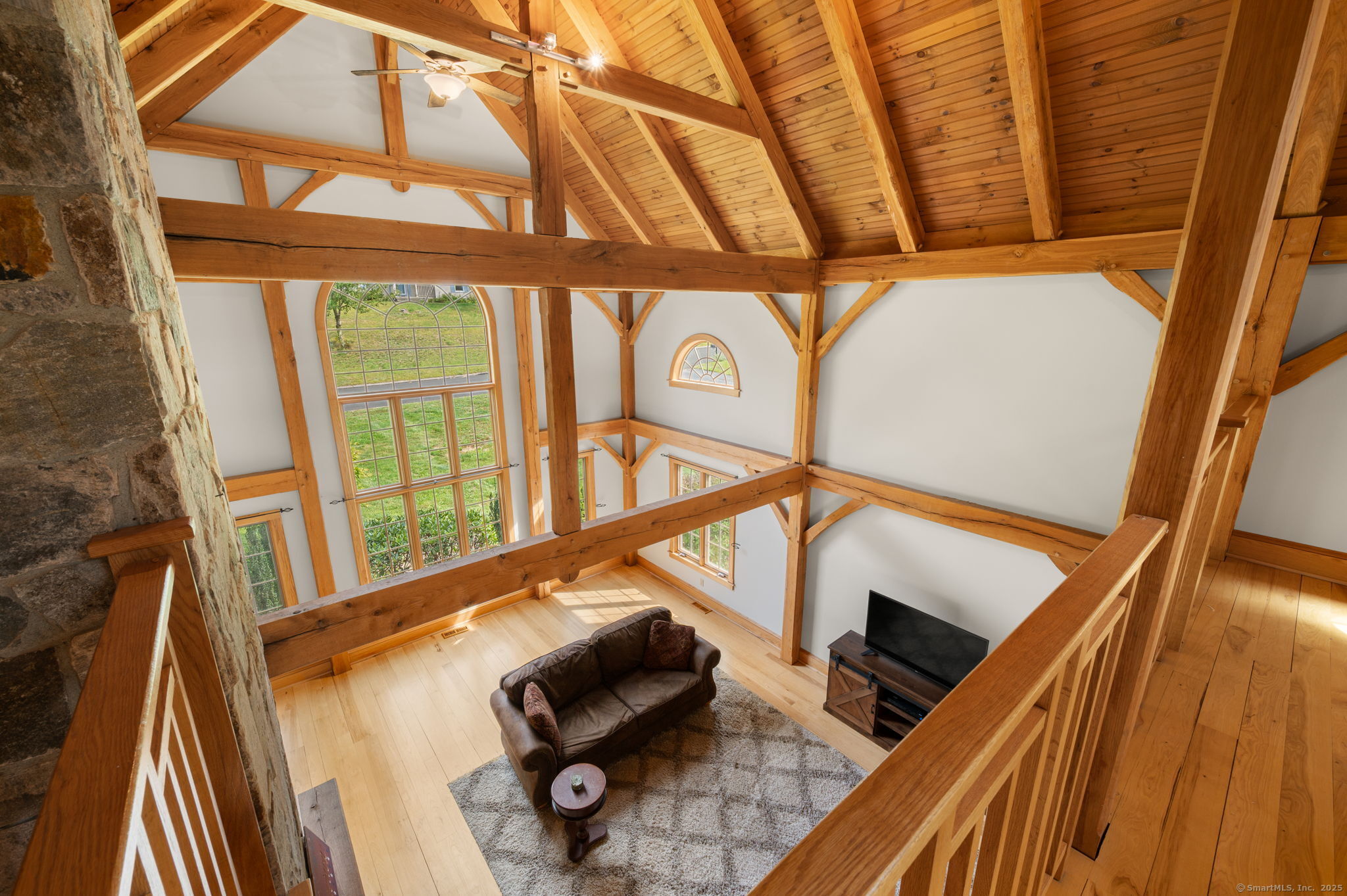 DESIRABLE HERITAGE FIELDS Sleek and striking, this breathtaking Post and Beam custom timber-frame contemporary offers a unique blend of rustic charm and modern luxury. Featuring an expansive open floor plan, the home boasts soaring floor-to-ceiling windows and a striking two-sided stone fireplace that anchors the living space. Impeccable hardwood floors flow throughout, complementing the custom staircase with artisanal balusters leads to an inviting loft. The kitchen-with a center island-opens seamlessly into a spacious dining area, complete with sliders that step out onto a multi-level deck overlooking the vast backyard. The oversized second-floor primary suite offers a peaceful retreat. Built with purpose and pride, this one-owner home was constructed with attention to design and detail and is a true reflection of quality and enduring comfort. Every inch was crafted to deliver style, function, and long-term peace of mind. The hobbyist will appreciate the heated 3 car garage, full walkout basement and work shed. Solar system is owned, this home is extremely efficient! Too many custom features to list. A portion of the lot is in an AE zone, Flood Elevation Certificate confirms NO flood insurance required. Enjoy all the E Lyme/Niantic amenities and seek out the nearby 200 acres of NIANTIC RIVER HEADWATERS COMMUNITY FOREST for hiking and exploring nature. https://newenglandforestry.org/land-conservation/conservation-successes/niantic-river-headwaters-community-forest