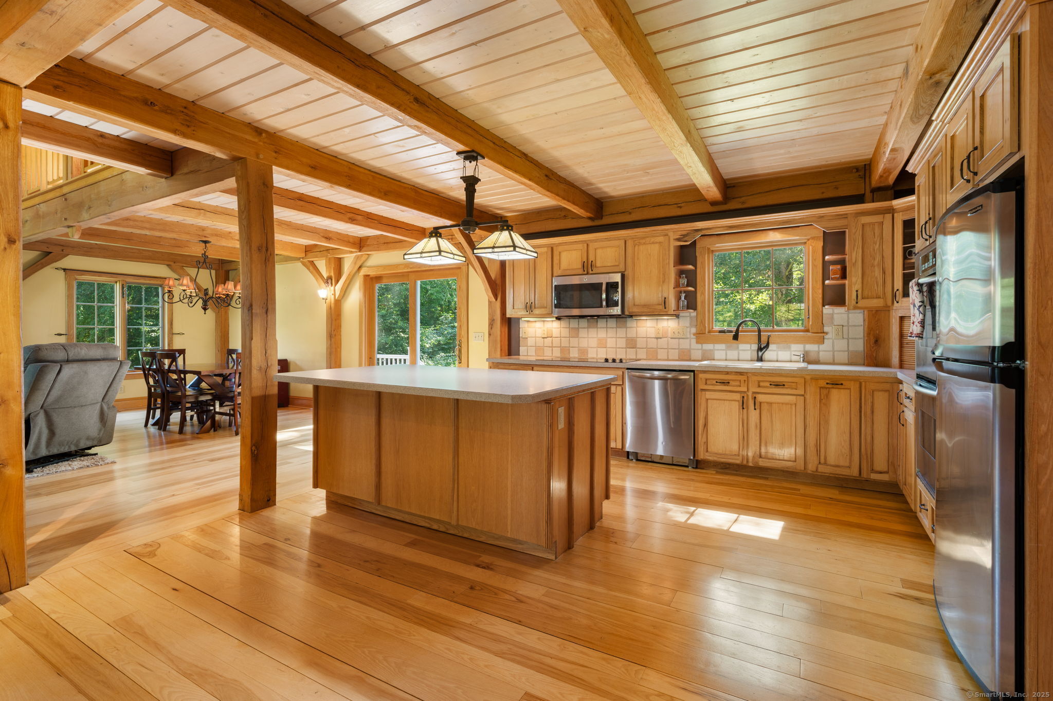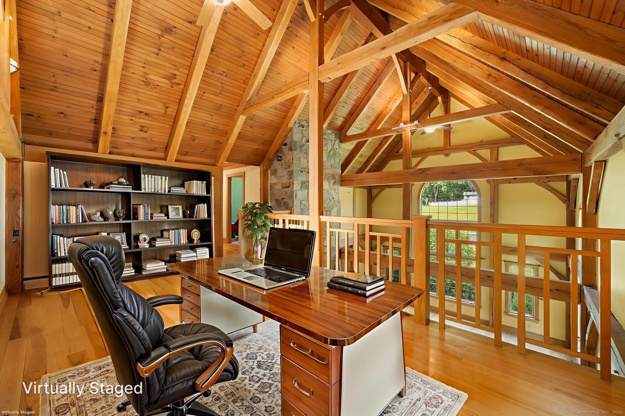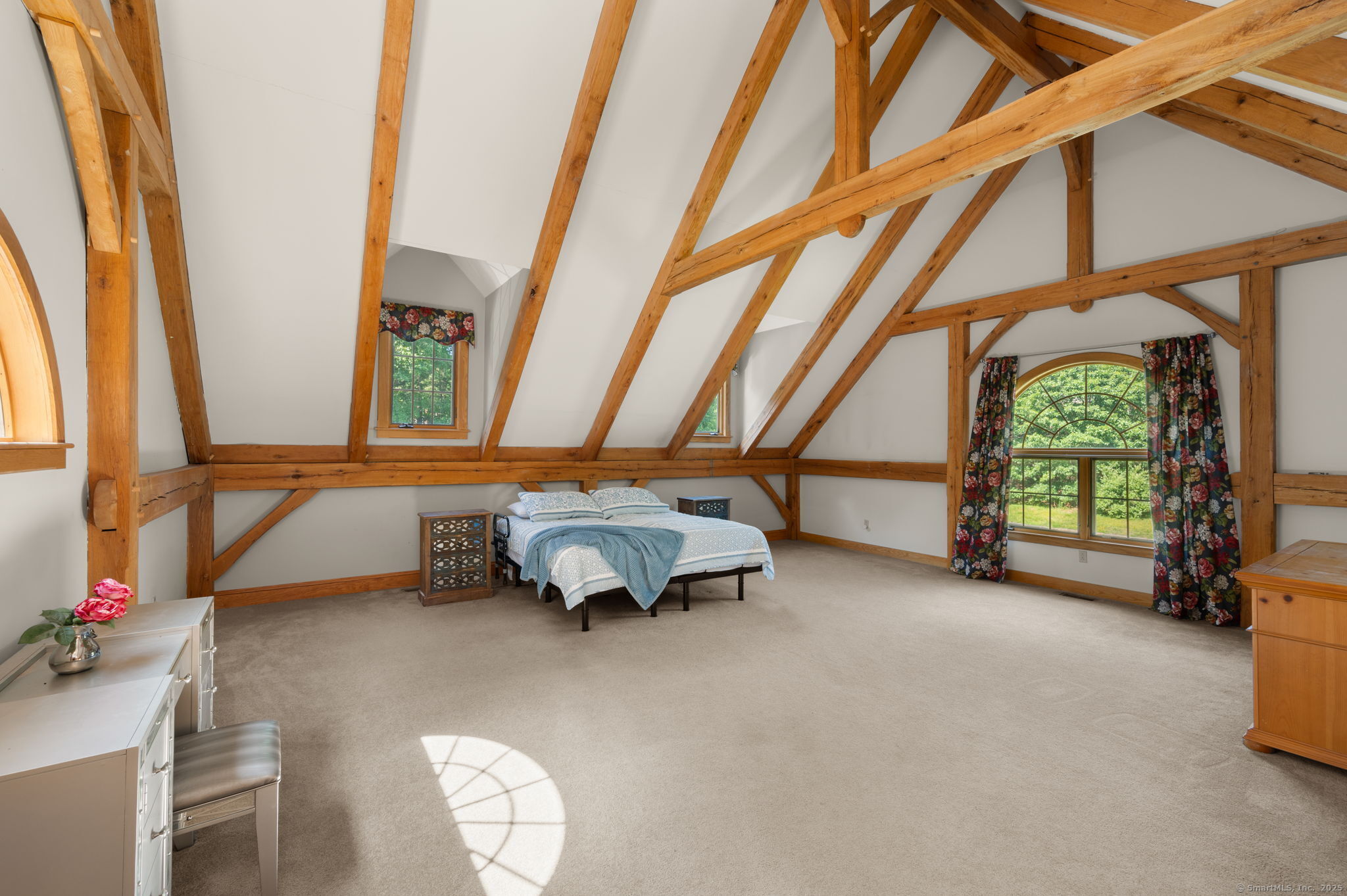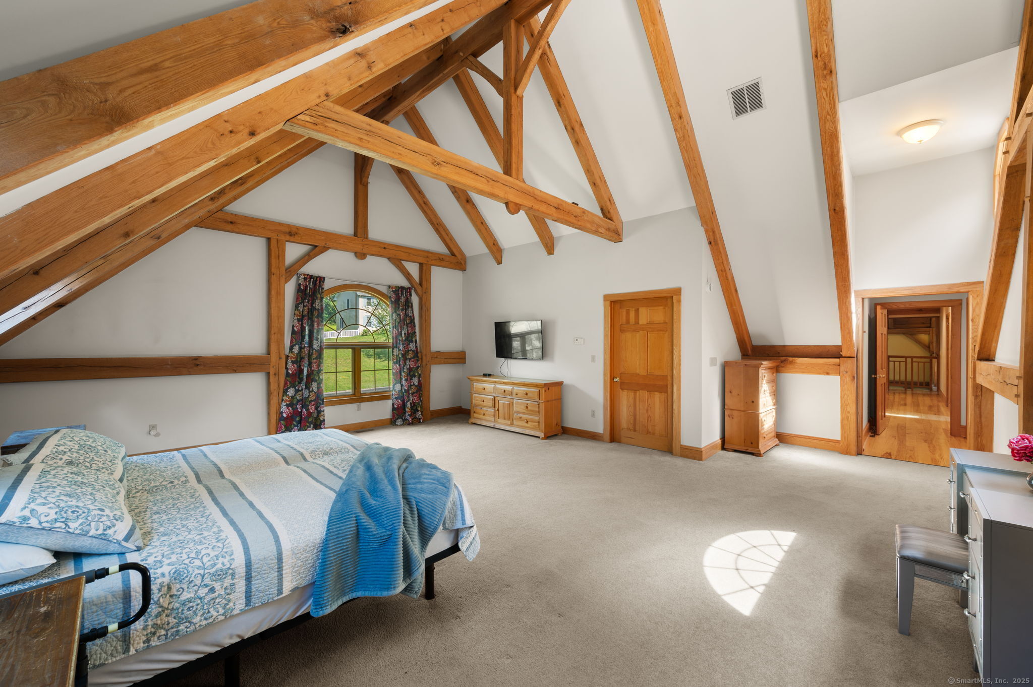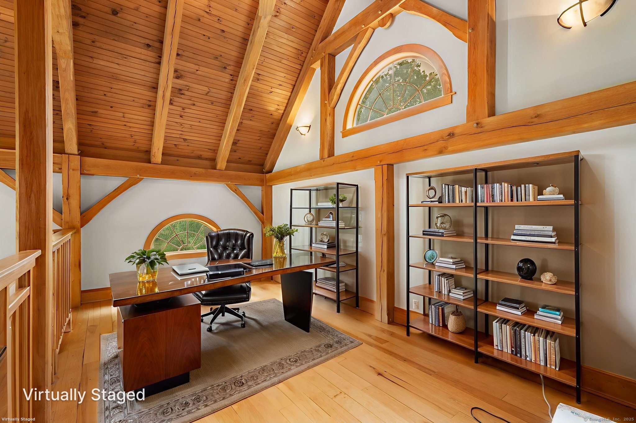 DESIRABLE HERITAGE FIELDS Sleek and striking, this breathtaking Post and Beam custom timber-frame contemporary offers a unique blend of rustic charm and modern luxury. Featuring an expansive open floor plan, the home boasts soaring floor-to-ceiling windows and a striking two-sided stone fireplace that anchors the living space. Impeccable hardwood floors flow throughout, complementing the custom staircase with artisanal balusters leads to an inviting loft. The kitchen-with a center island-opens seamlessly into a spacious dining area, complete with sliders that step out onto a multi-level deck overlooking the vast backyard. The oversized second-floor primary suite offers a peaceful retreat. Built with purpose and pride, this one-owner home was constructed with attention to design and detail and is a true reflection of quality and enduring comfort. Every inch was crafted to deliver style, function, and long-term peace of mind. The hobbyist will appreciate the heated 3 car garage, full walkout basement and work shed. Solar system is owned, this home is extremely efficient! Too many custom features to list. A portion of the lot is in an AE zone, Flood Elevation Certificate confirms NO flood insurance required. Enjoy all the E Lyme/Niantic amenities and seek out the nearby 200 acres of NIANTIC RIVER HEADWATERS COMMUNITY FOREST for hiking and exploring nature. https://newenglandforestry.org/land-conservation/conservation-successes/niantic-river-headwaters-community-forest