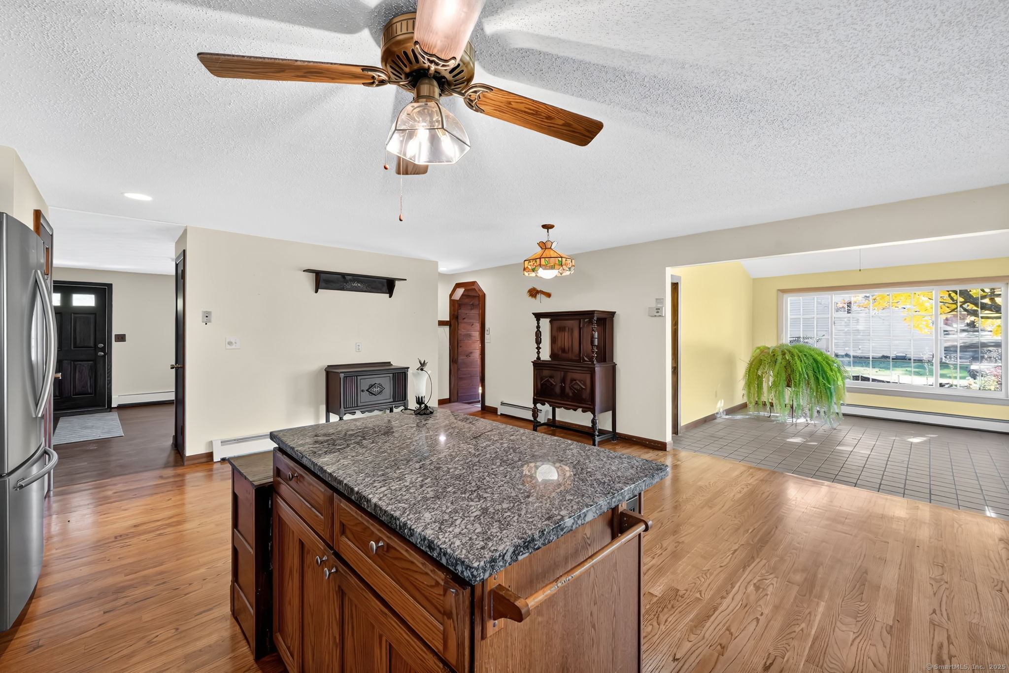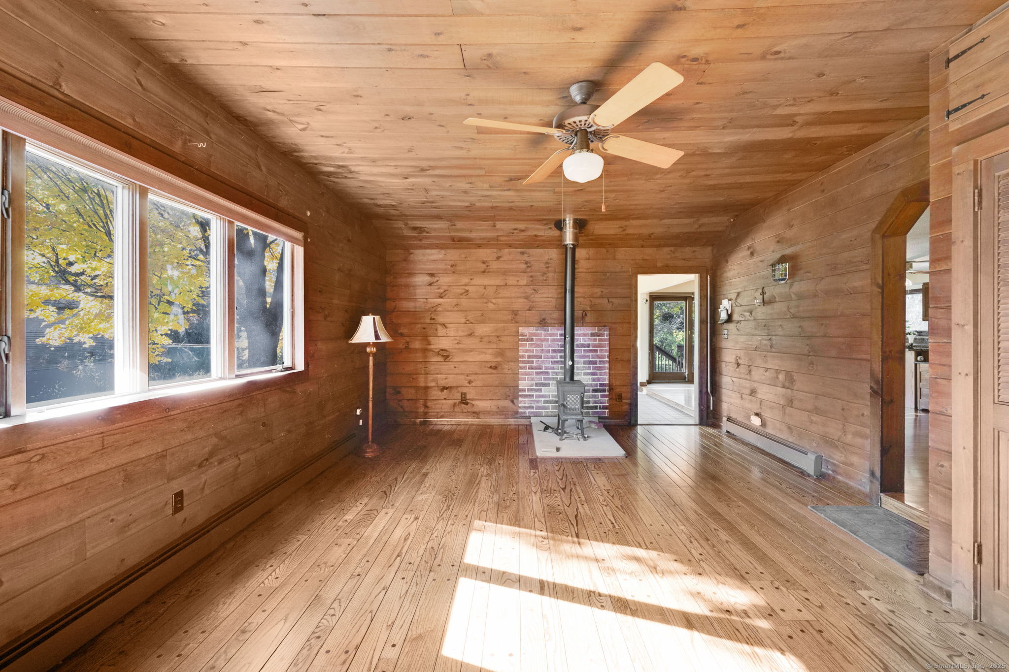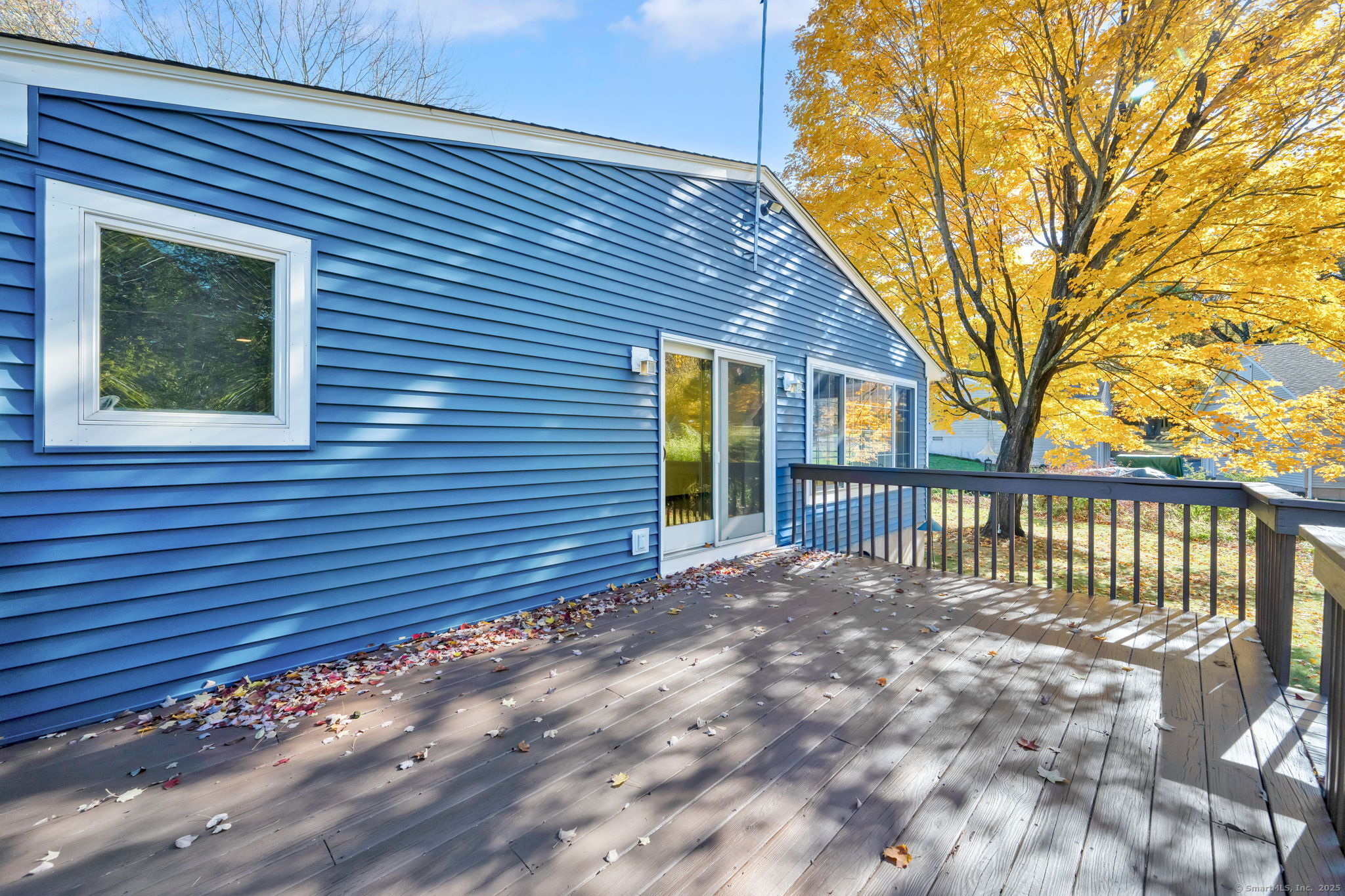 Welcome to this beautifully maintained 3- bedroom,1.5 bath home located in the picturesque town of Ellington. Sitting on 3/4 of an acre it boasts gardens, lightly treed areas, and a large storage shed. There is an inviting deck just outside the kitchen for grilling or just relaxing overlooking the yard. This welcoming home offers a spacious layout with a formal living room w/bay window, large family room w/wood stove and a gorgeous sun room with wall-to-wall windows off the kitchen. The eat-in kitchen features hardwood floors, granite countertops, maple cabinetry, and a convenient island w/storage. The bedrooms all have hardwood floors and ample closet space. The front entrance is new with trex steps and covered porch. The home is heated with oil heat w/3 zones. H2O heater is only 2 years old and there is a convenient generator hook up available. This is certainly a wonderful home with so much to offer.