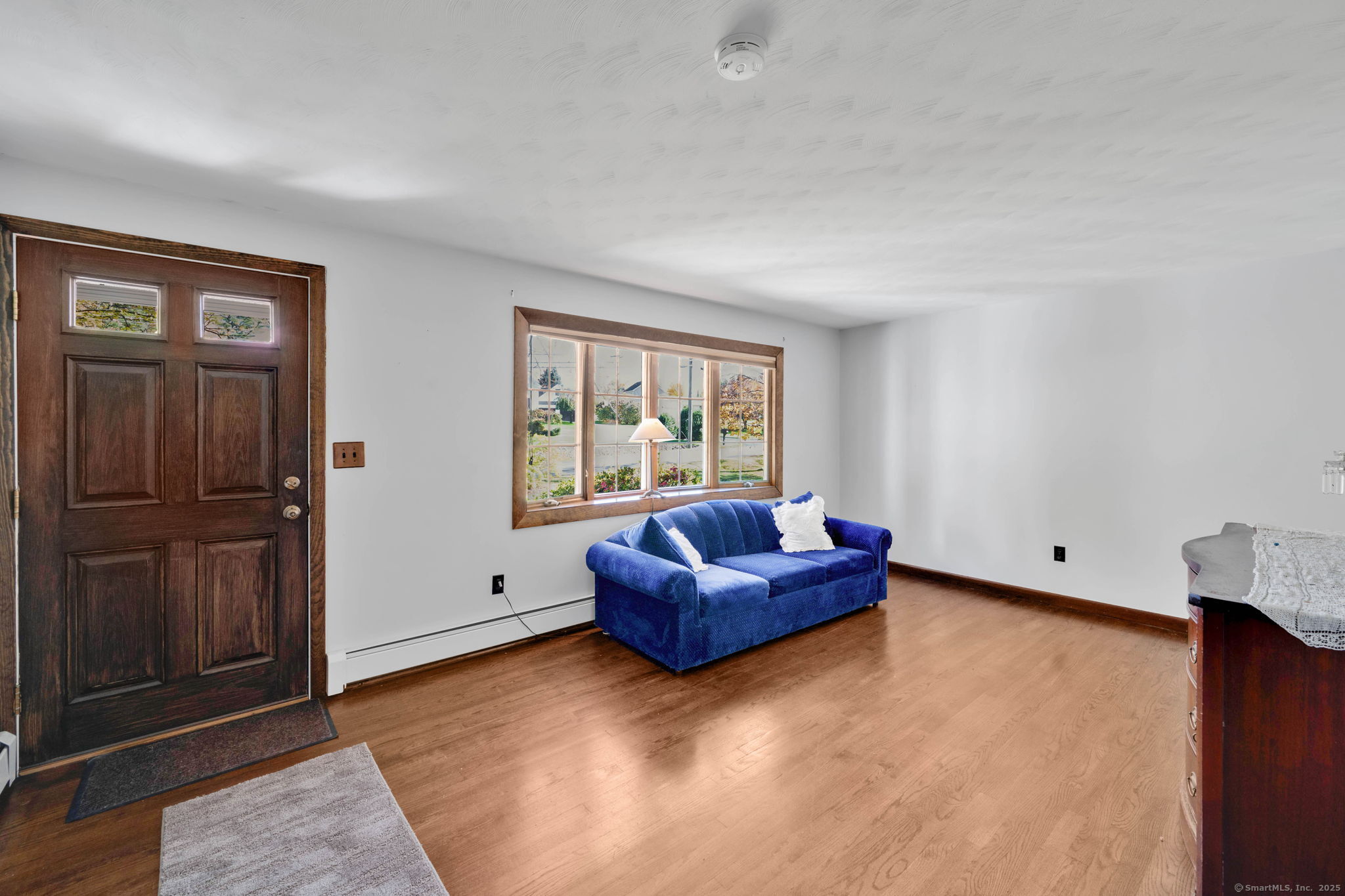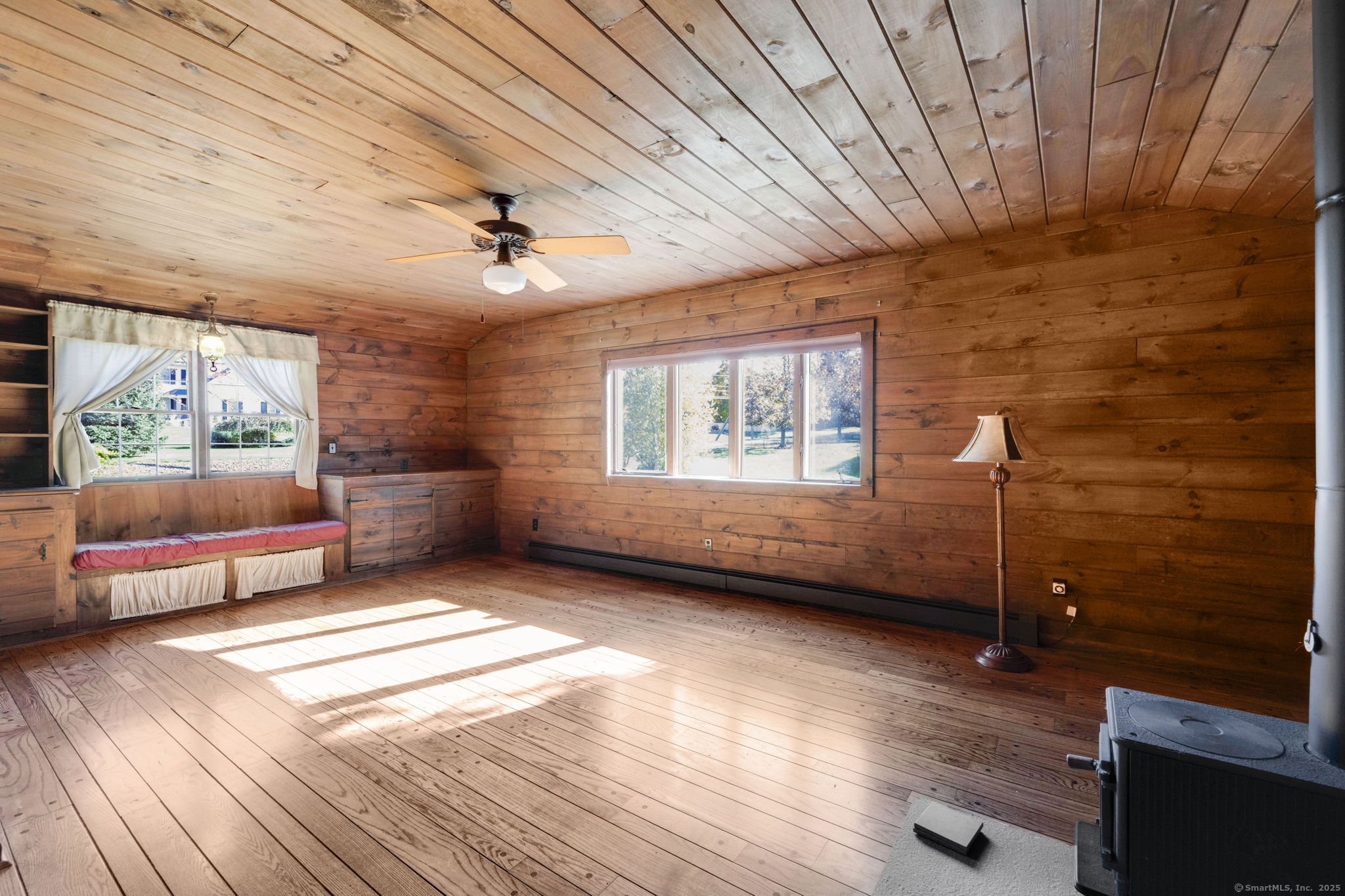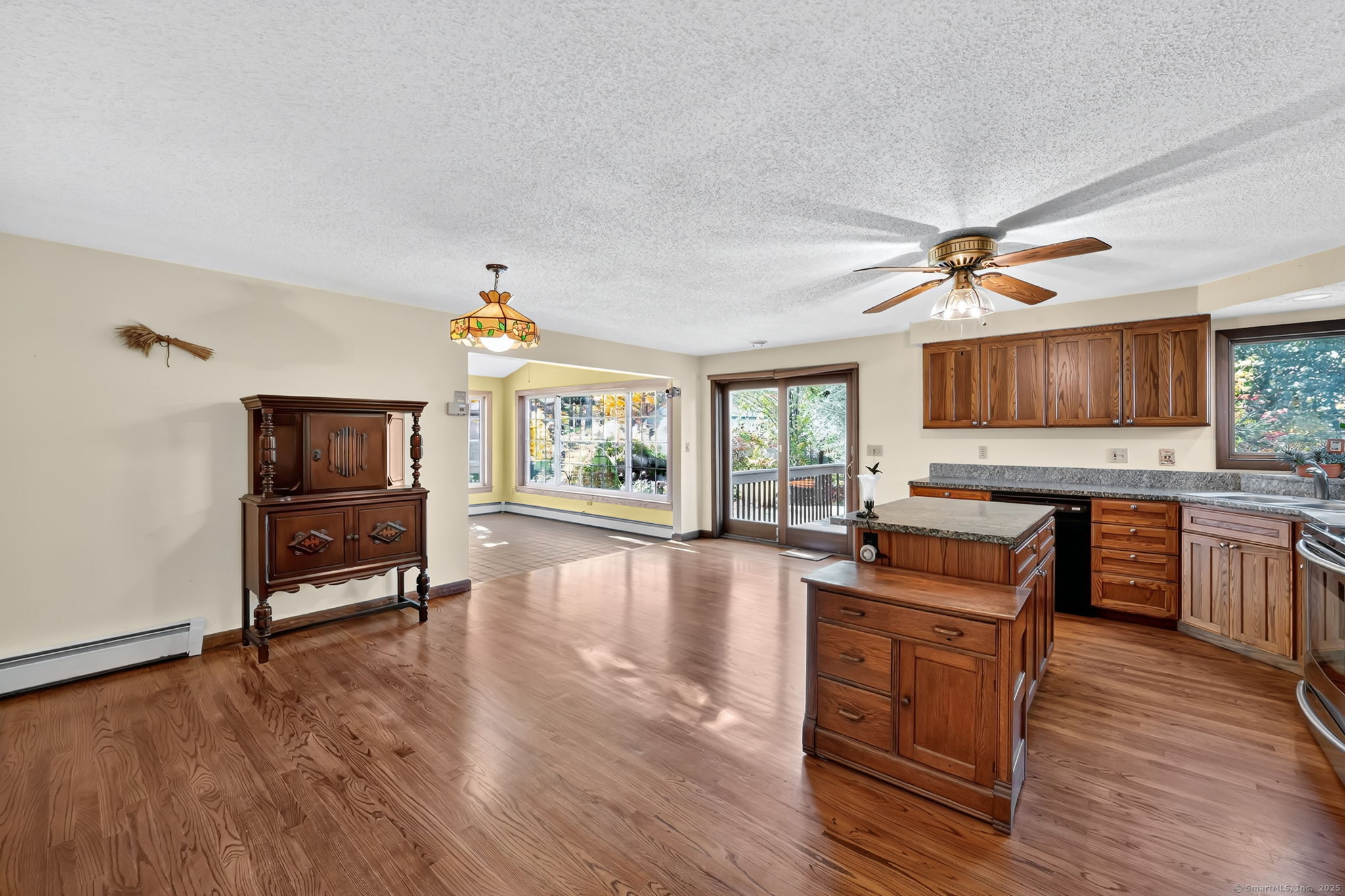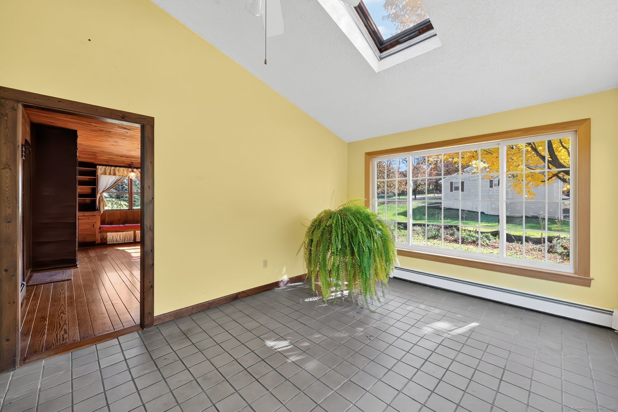 Welcome to this beautifully maintained 3- bedroom,1.5 bath home located in the picturesque town of Ellington. Sitting on 3/4 of an acre it boasts gardens, lightly treed areas, and a large storage shed. There is an inviting deck just outside the kitchen for grilling or just relaxing overlooking the yard. This welcoming home offers a spacious layout with a formal living room w/bay window, large family room w/wood stove and a gorgeous sun room with wall-to-wall windows off the kitchen. The eat-in kitchen features hardwood floors, granite countertops, maple cabinetry, and a convenient island w/storage. The bedrooms all have hardwood floors and ample closet space. The front entrance is new with trex steps and covered porch. The home is heated with oil heat w/3 zones. H2O heater is only 2 years old and there is a convenient generator hook up available. This is certainly a wonderful home with so much to offer.