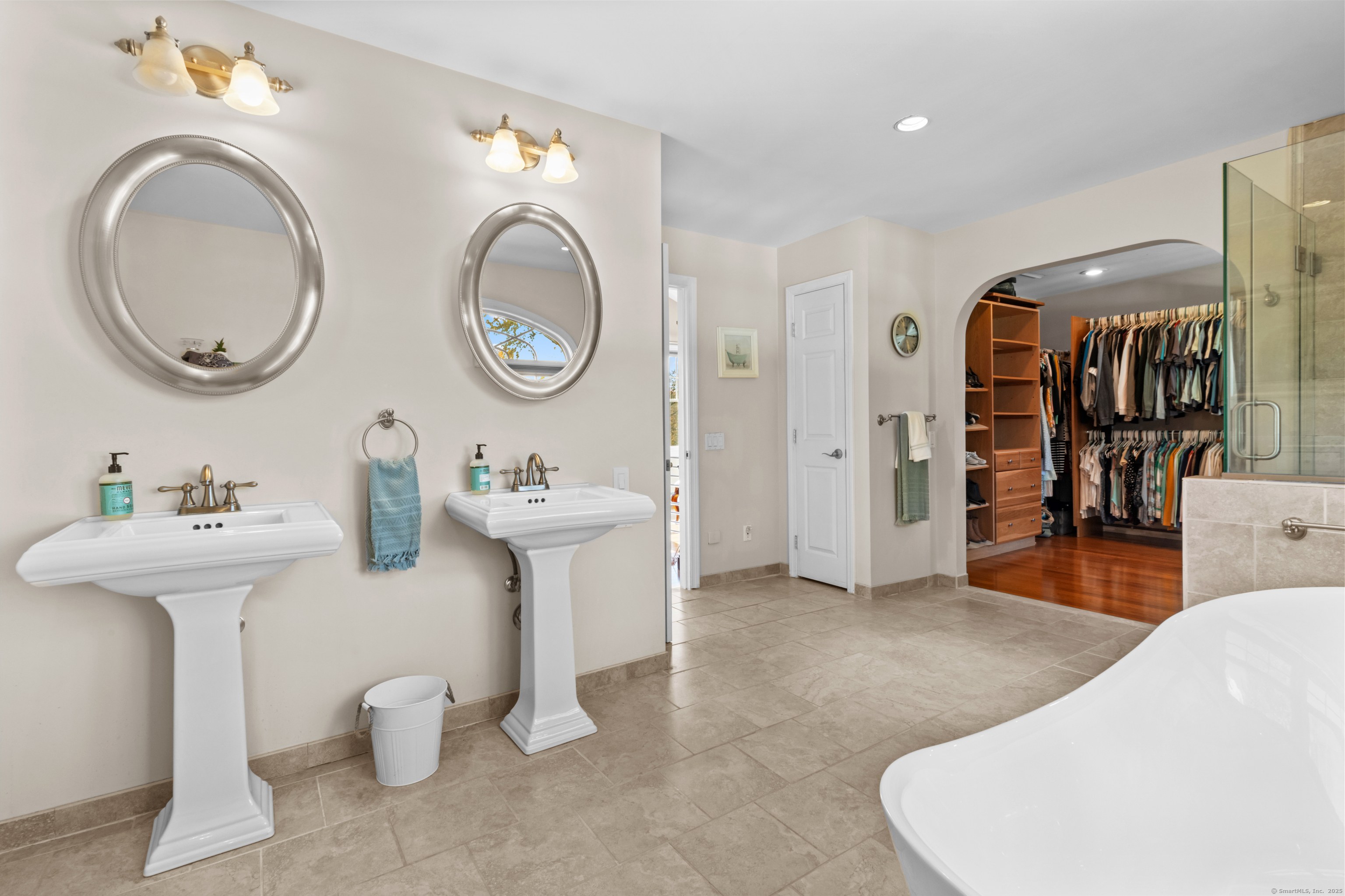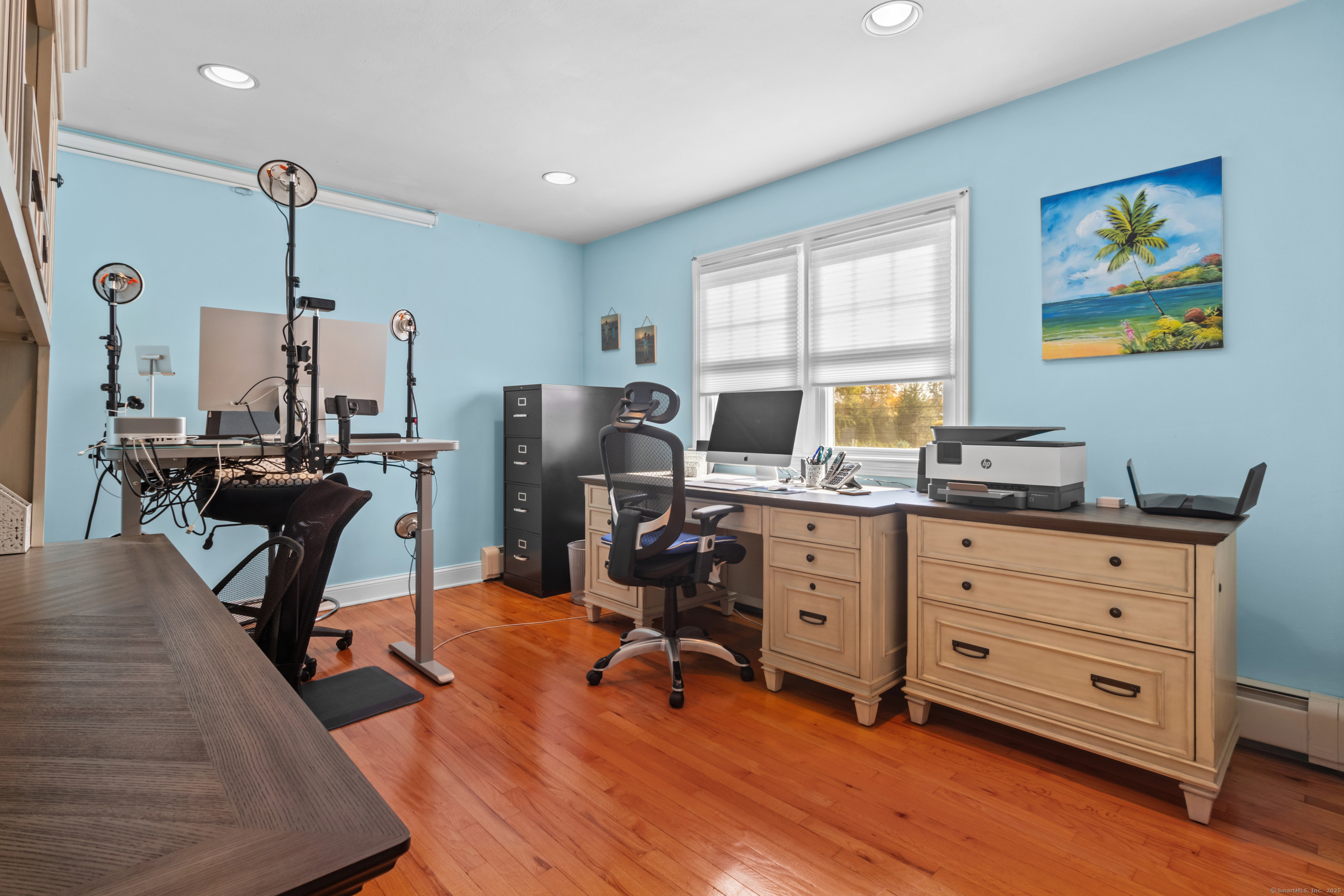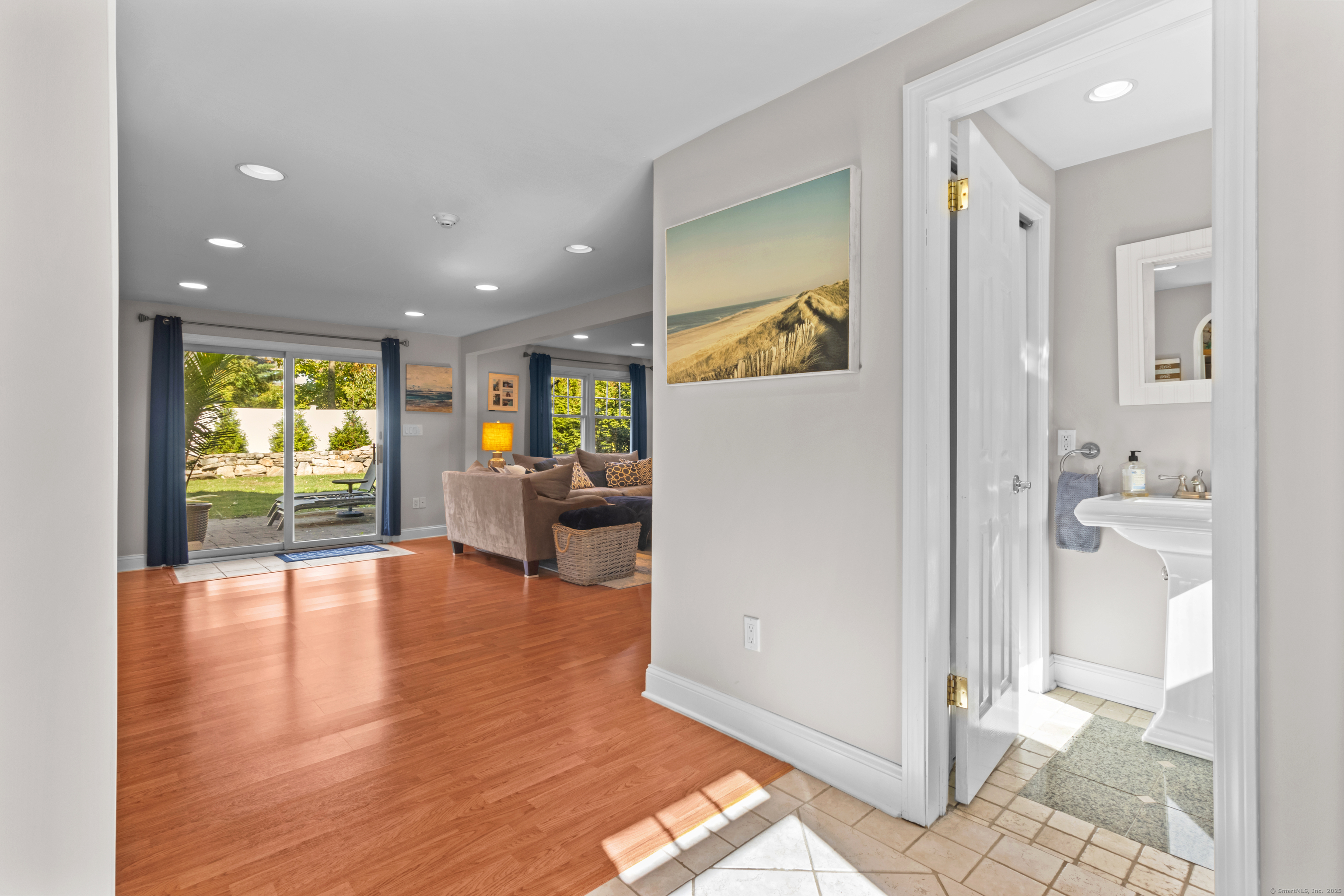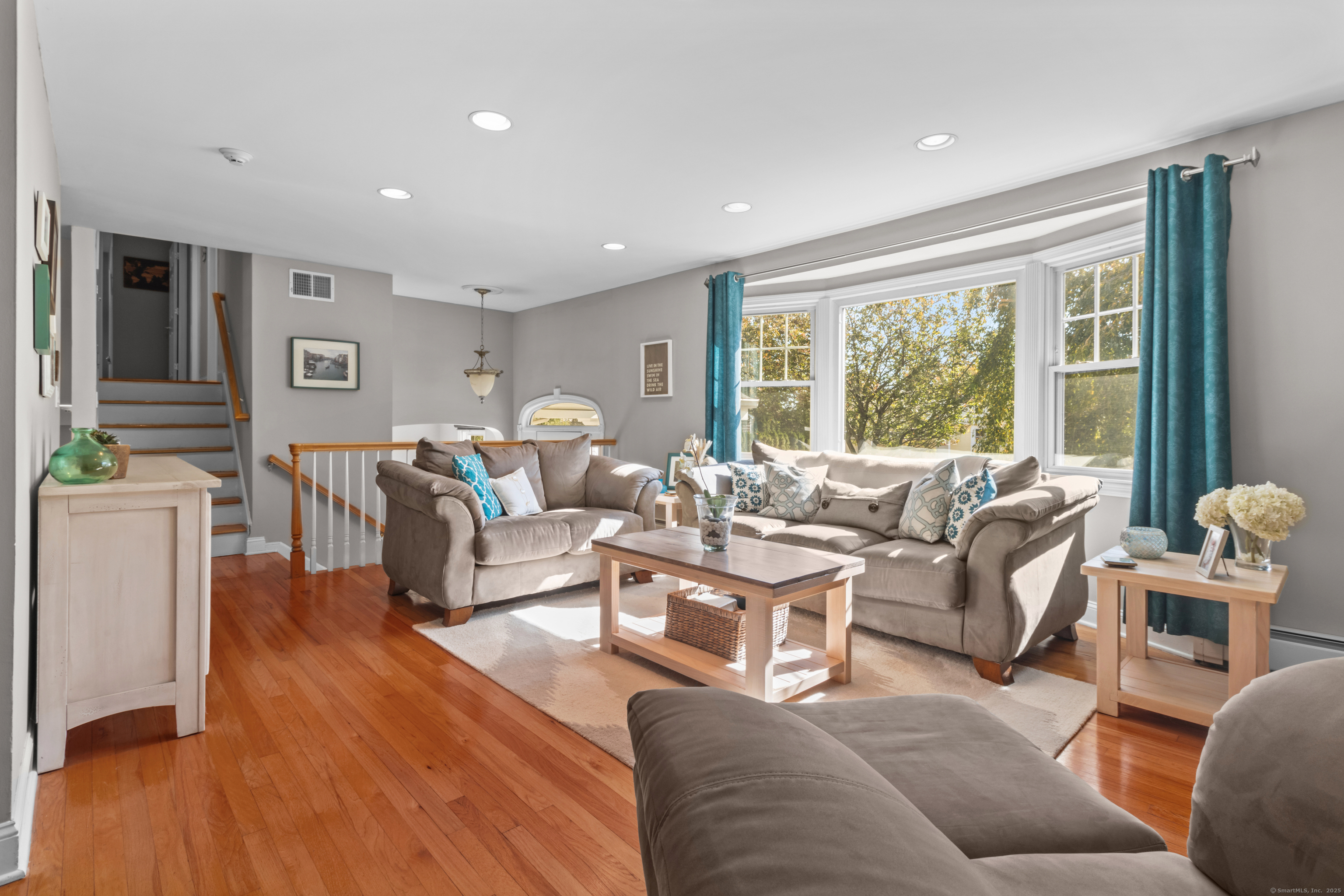 A very special home and location! This fabulous newly renovated 4 bedroom - 2 1/2 bath colonial split level has been completely updated and designed for indoor/outdoor entertaining, extended family, or working from home. With a blend of classic design, timeless appeal, modern amenities, and open concept this home is an ideal haven for creating lasting memories and enjoying family. The Main floor includes the living room and formal dining room with a central fireplace creating a welcoming atmosphere. From the living room is an updated country kitchen with light oak custom cabinetry and travertine tile backsplash. A few steps away is the entertaining area with family room, office/guest bedroom, full bath, mudroom, and sliders to the private backyard complete with stonewall and patio. The upper floor is custom designed for privacy with 3 bedrooms including a spacious private primary bedroom suite that offers an oversized walk in closet and full bath with custom cabinetry, separate shower, vintage tub, and washer and dryer. The additional two bedrooms have access to updated bath with double vanity and all bedrooms offer large windows, abundant closet space, and hardwood floors. Additional features include palladium windows, custom stonework and cabinetry, hardwood floors throughout, full basement, and attached garage. Minutes to E. Norwalk Train, I-95, Merritt Parkway, shopping/dining and walk to parks/playgrounds and schools.