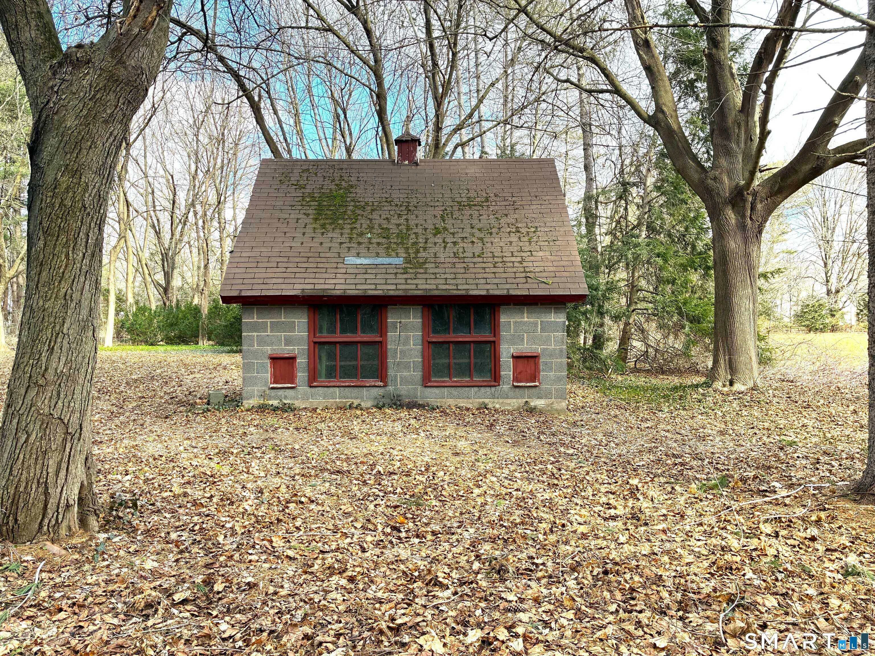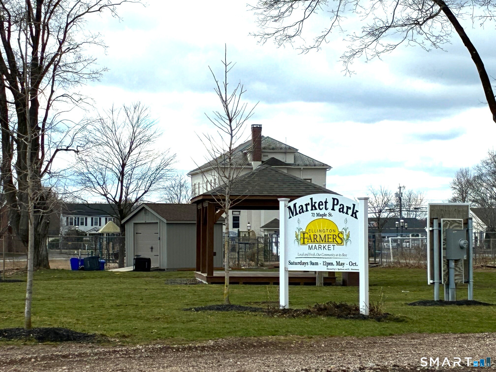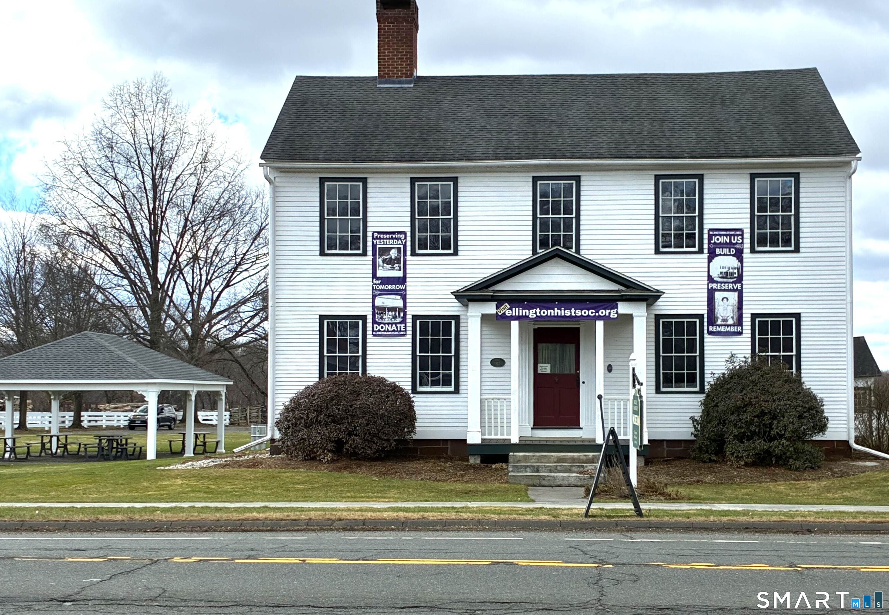 Set in the center of Ellington, this distinctive property offers a rare combination of walkable village location and approximately 16 private acres of beautiful land. Tucked back with its own pond and walking trails, the setting is its own peaceful nature retreat while still being just steps from the heart of town. This is truly a unique opportunity to enjoy the charm of country living with the convenience of Ellington Center just outside your door. Walk to the farmer's market, the library, restaurants and the Ellington Green which hosts beloved community traditions including Winterfest with a tree lighting ceremony and parade, an Earth Day celebration, Patriotic observances, a scarecrow contest and seasonal fairs while also providing a welcoming everyday setting with walking paths, gazebos, and picnic tables at Arbor Park. The home's outdoor setting is a true highlight, offering room to relax, explore, fish, garden, entertain, and enjoy the natural surroundings in every season. A standout feature is the impressive 4-car tandem, free-span garage, offering ideal space for car enthusiasts, storage, hobbies, or equipment, along with a dedicated pad perfectly suited for a motorhome or boat. Inside, the charming farmhouse reflects timeless character and has been meticulously maintained by one family for over a century. Picture quiet mornings on the front porch, family gatherings around the large stone fireplace, and memorable meals in the spacious, sun-filled dining room.
