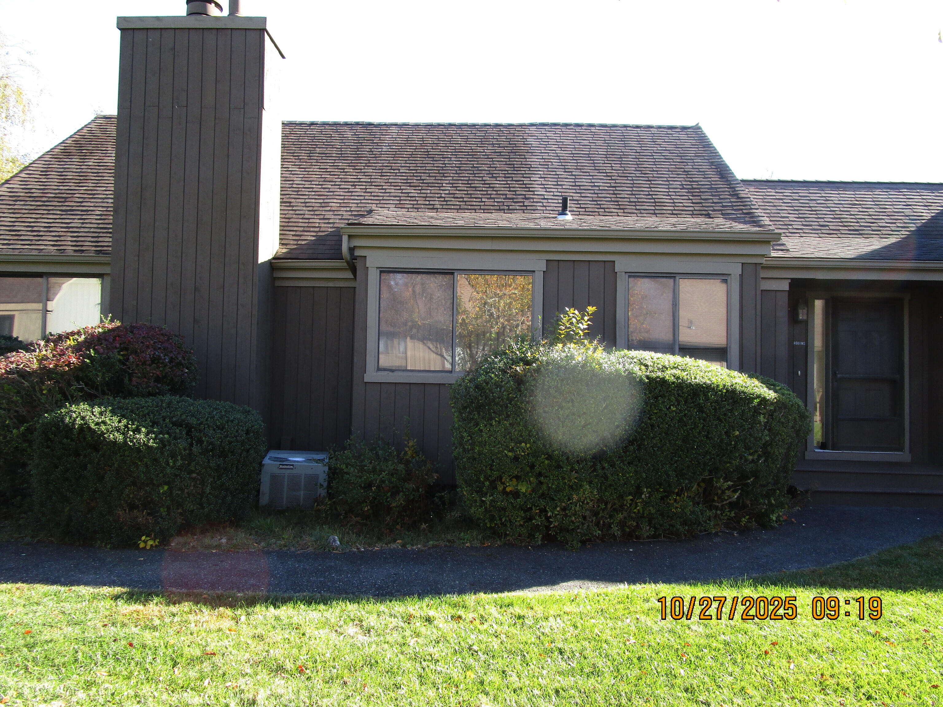Coveted Whittier model in great location. Foyer entrance with tiled floor and coat closet. EIK with linoleum flooring, gas stove, refrigerator, Dishwasher, Microwave and plenty of counter space and lots of cabinetry, also has great views of a courtyard type scene . Window bathes the kitchen in natural light, ceiling fan and recessed lighting. Dining room with W/W carpeting and chandelier. Living room has ceiling fan, fire place, slider to good sized deck and great cathedral ceiling. Guest bedroom with w/w carpeting with large walk in closet currently being used as an office space. Full bath with tiled floor and walk in shower. Shower has grab bars installed. Primary Bedroom has w/w carpeting, full bath with grab bars, ceiling fan and large walk in closet. Large double window allowing plenty of natural light in the room. Finished lower level large family room. There is a slider that can be used as a lower entrance if desired. There is another small room with a closet and a laundry room with deep sink and a separate room for the mechanicals and extra storage. Two lift chairs that seller is having removed. Unit needs some work but well worth the effort to see it. Deck repairs on railing is scheduled for November 20th.There is an association contribution of 3.50 times the HOA paid to the association by buyer at closing.($2,061.00)