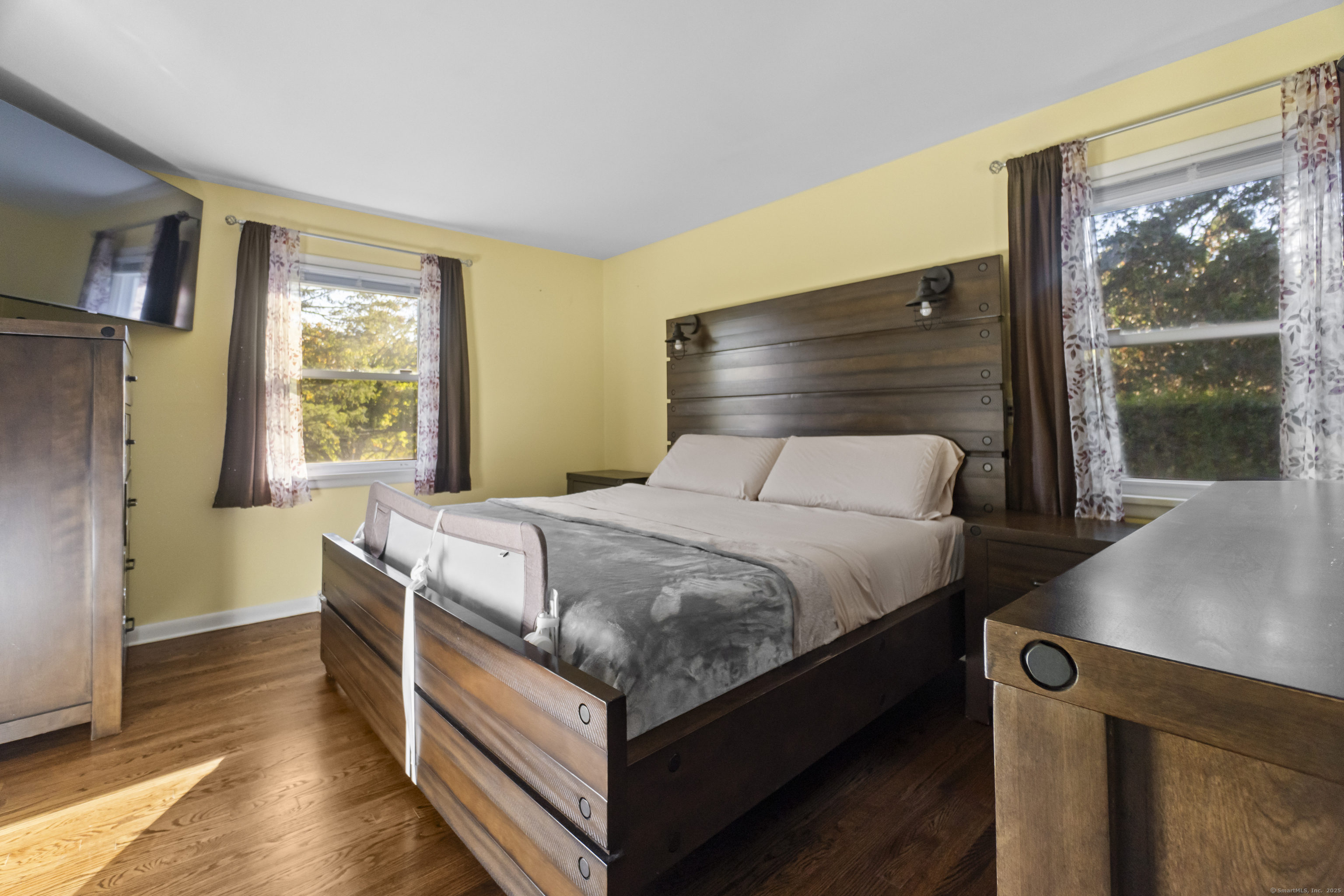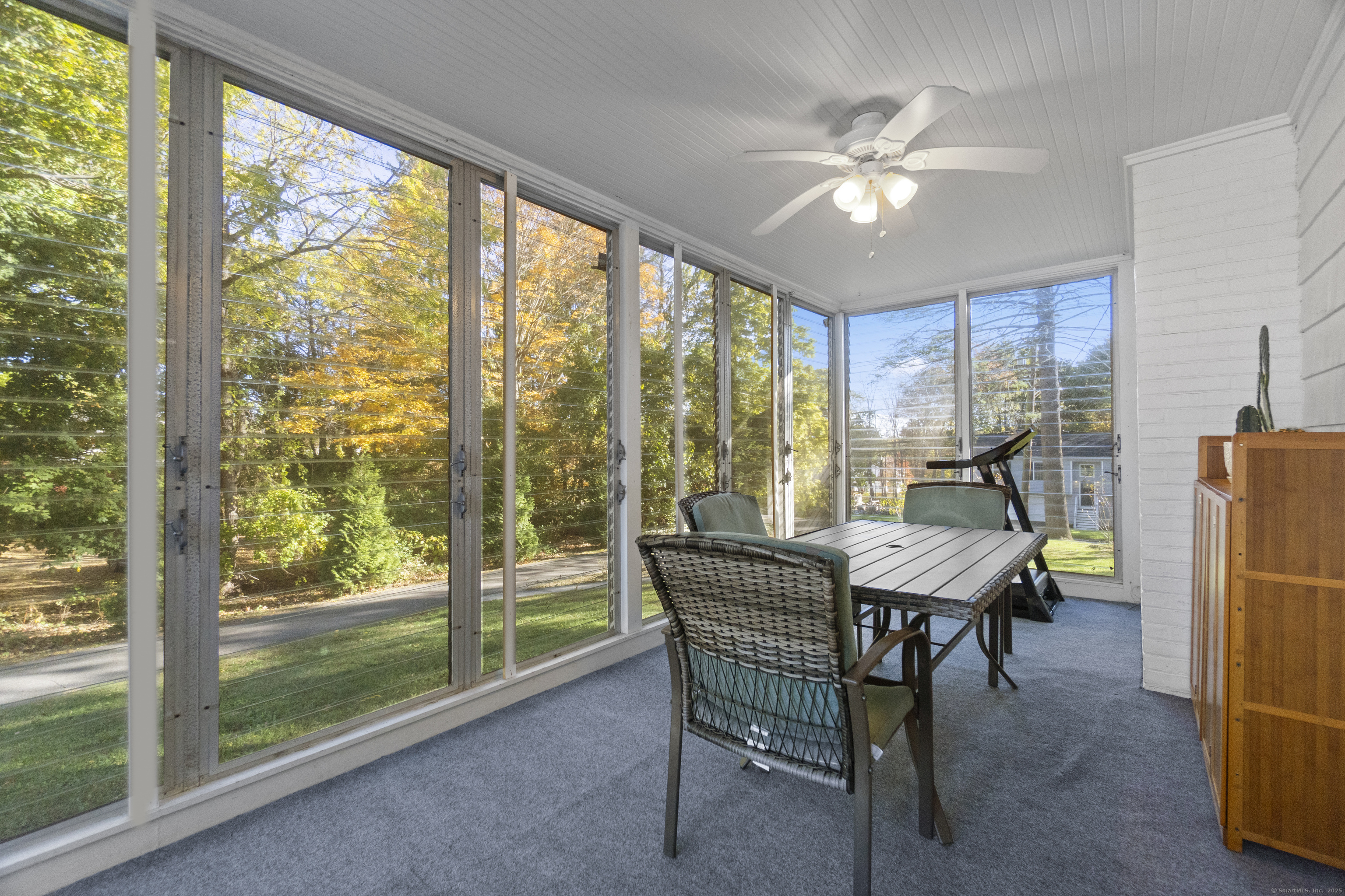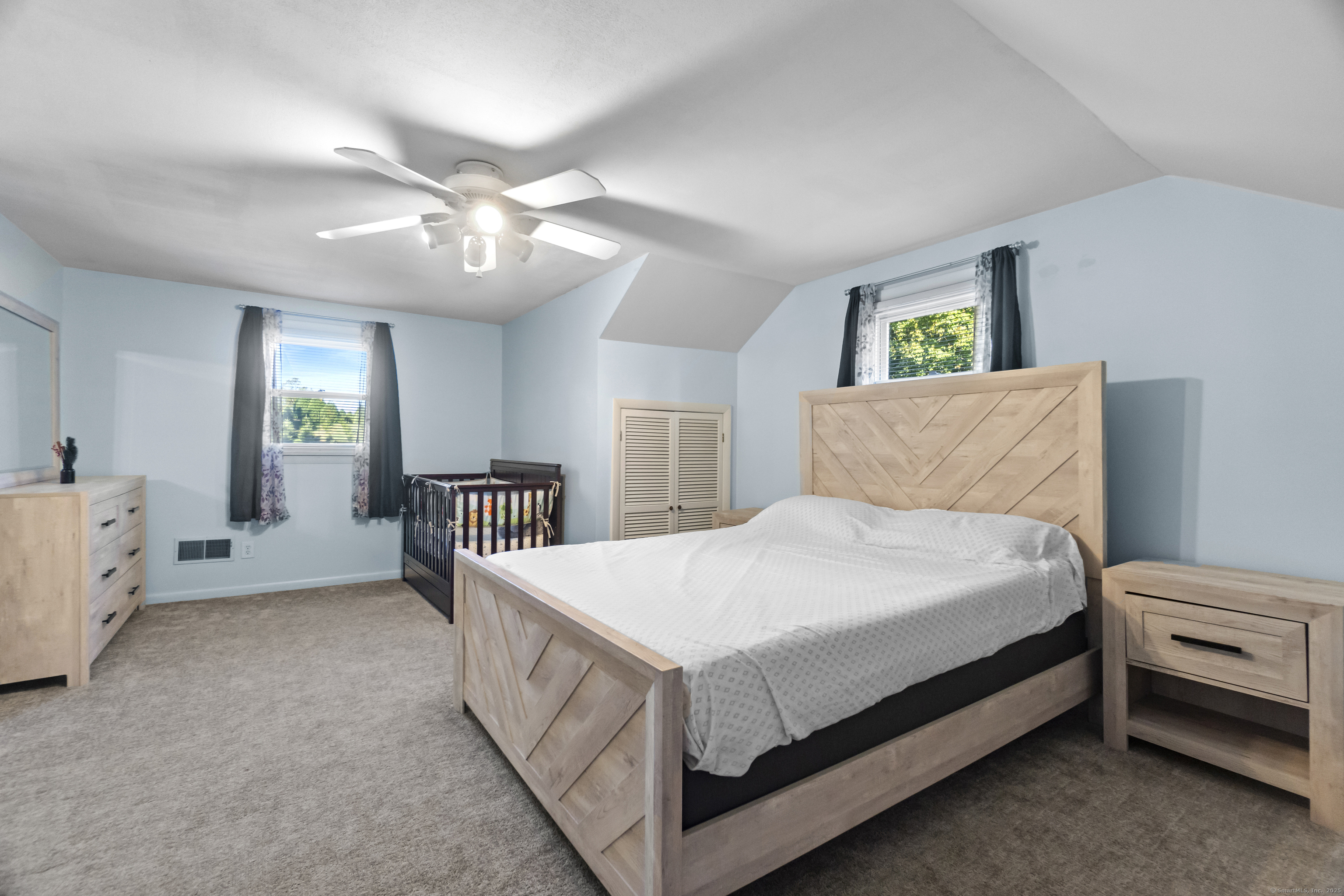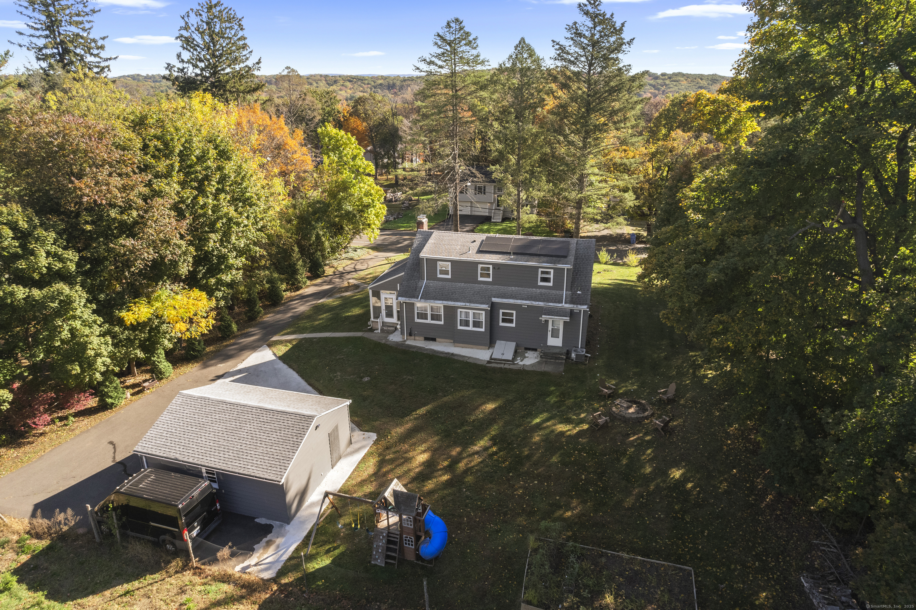 OPEN HOUSE NOV 2ND CANCELLED. This charming 3-bedroom, 2-bath Cape sits on a beautiful half-acre lot in Mount Carmel, offering great privacy with views of the neighboring tree farm and Sleeping Giant. The main living area features newly refinished hardwood floors and an oversized living room with a large bow window that brings in plenty of natural light. A wood-burning stove insert adds warmth and comfort throughout the winter months. The kitchen includes a cozy breakfast nook and convenient pantry space. The first floor offers a comfortable primary bedroom and full bath, while upstairs you'll find two spacious bedrooms and a second full bath. A bright, enclosed sunporch provides a relaxing spot to enjoy the natural surroundings. Additional features include an oversized one-car garage, 1,200 square feet of basement storage, central air and an energy-efficient solar system to help keep utility costs low. Located just minutes from local universities, highways, shopping, and restaurants, this well-built home offers the perfect mix of comfort and convenience.