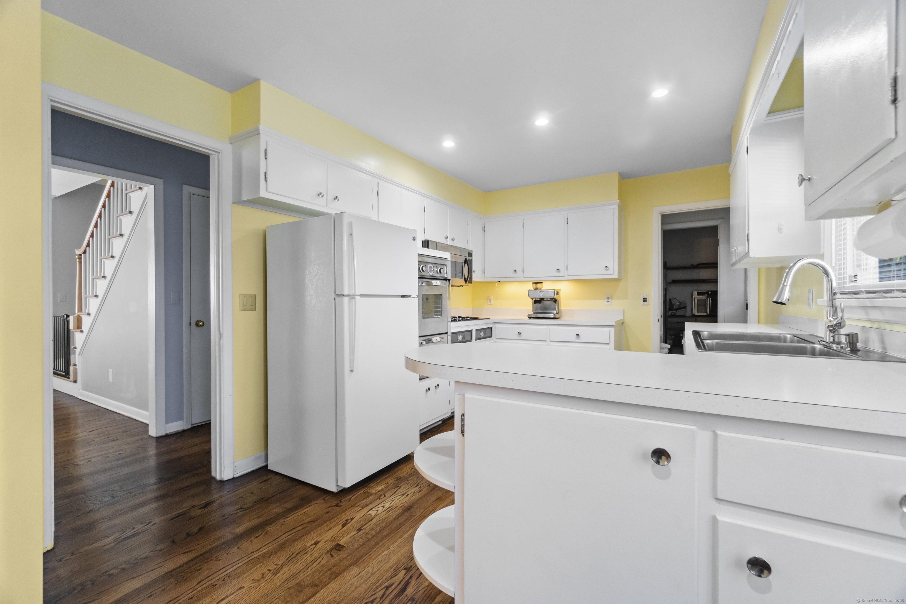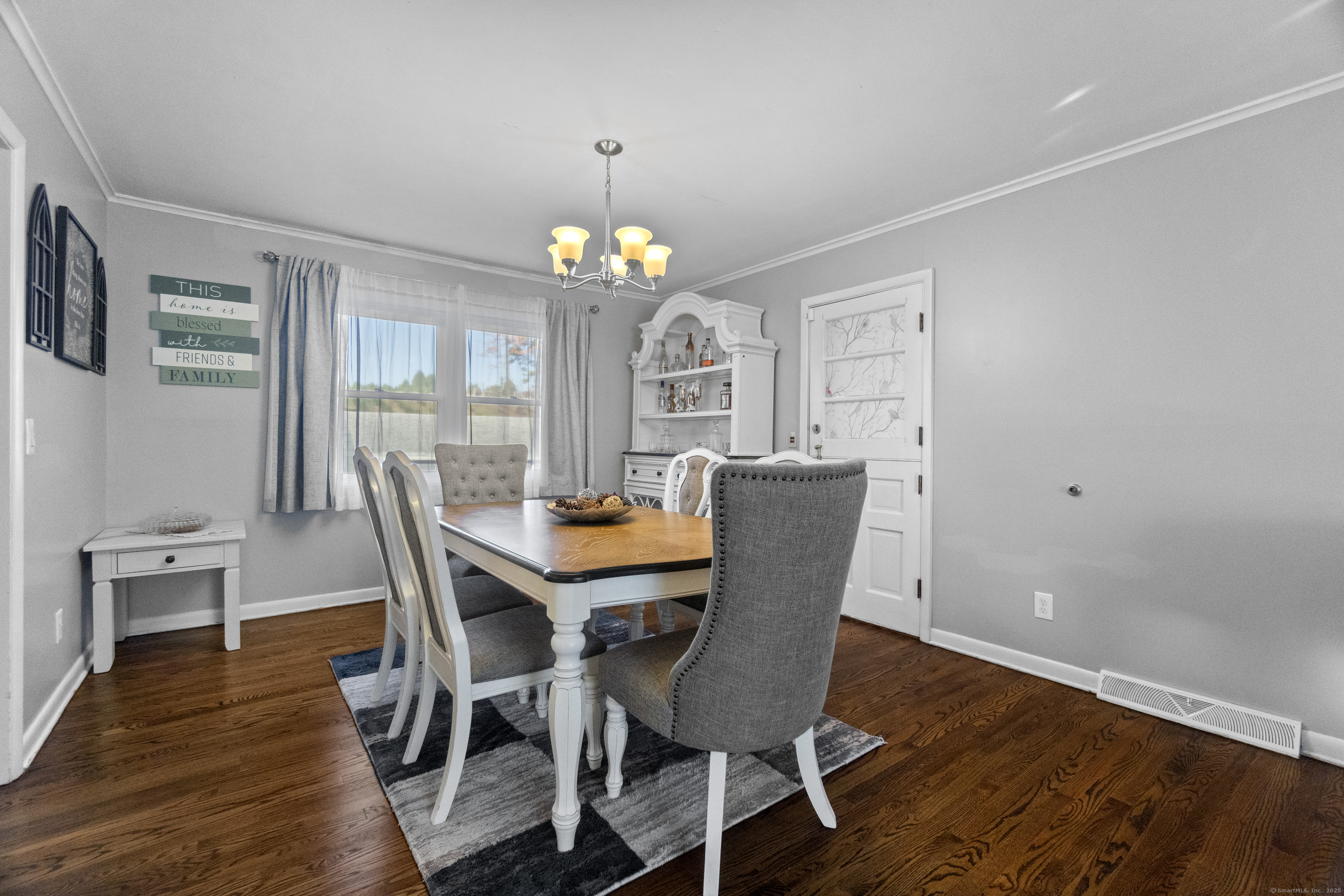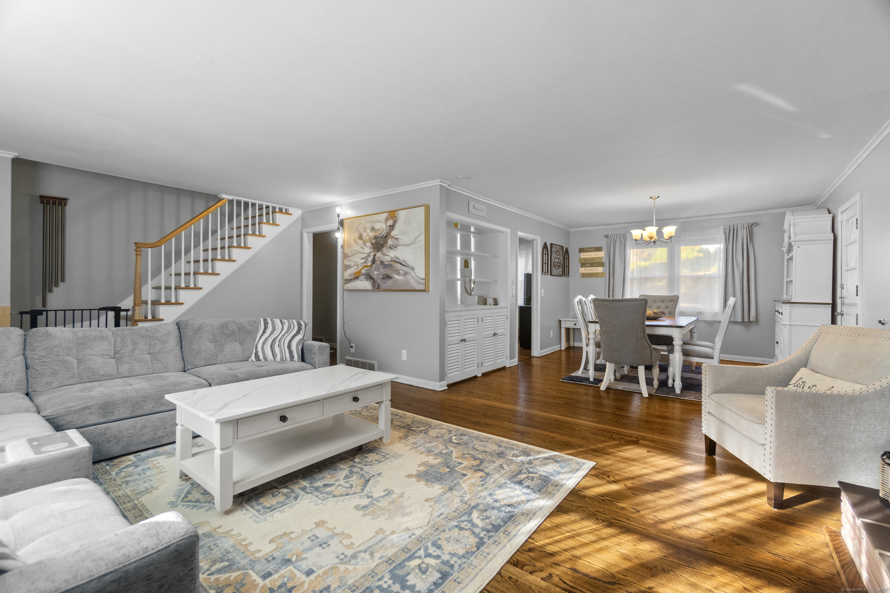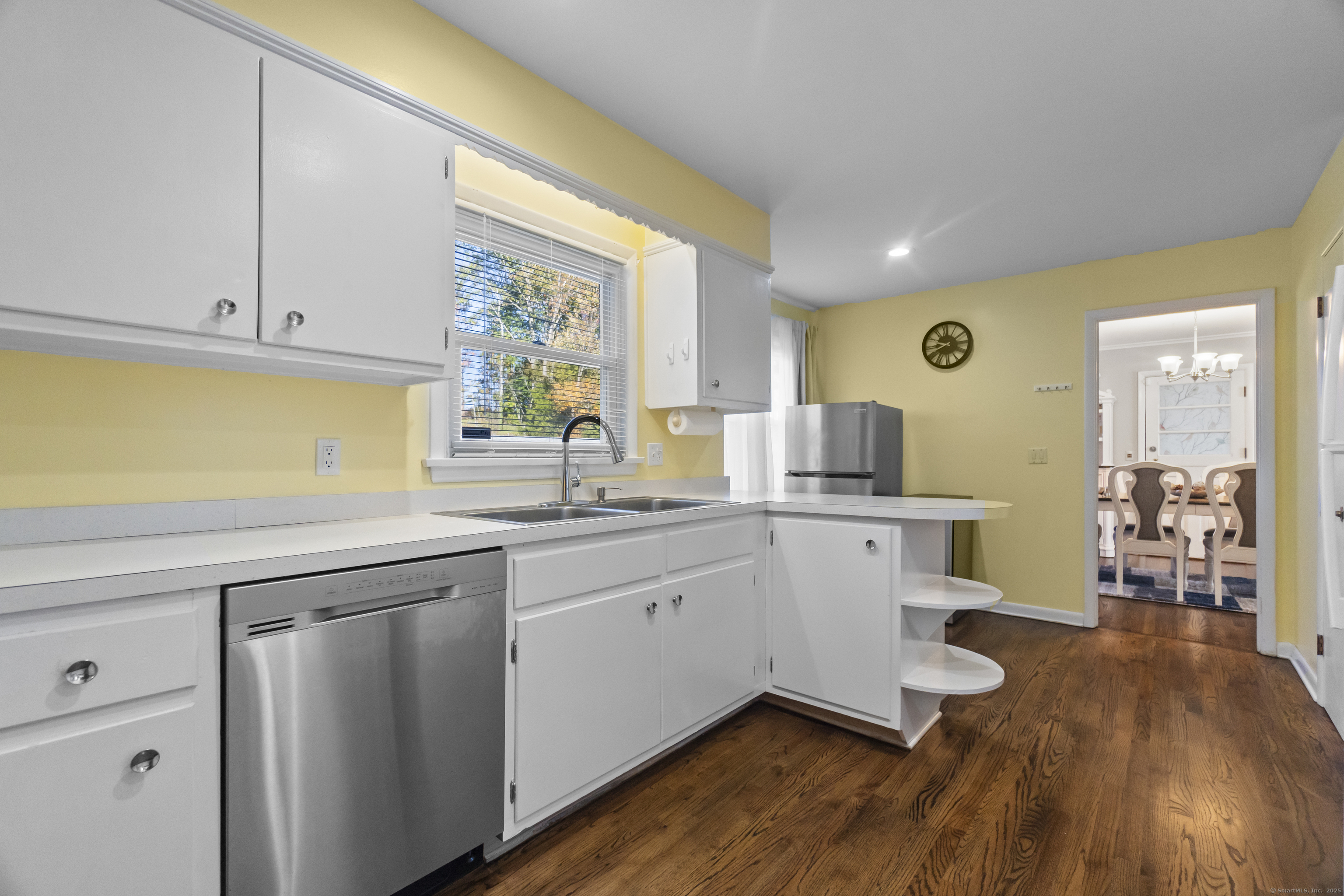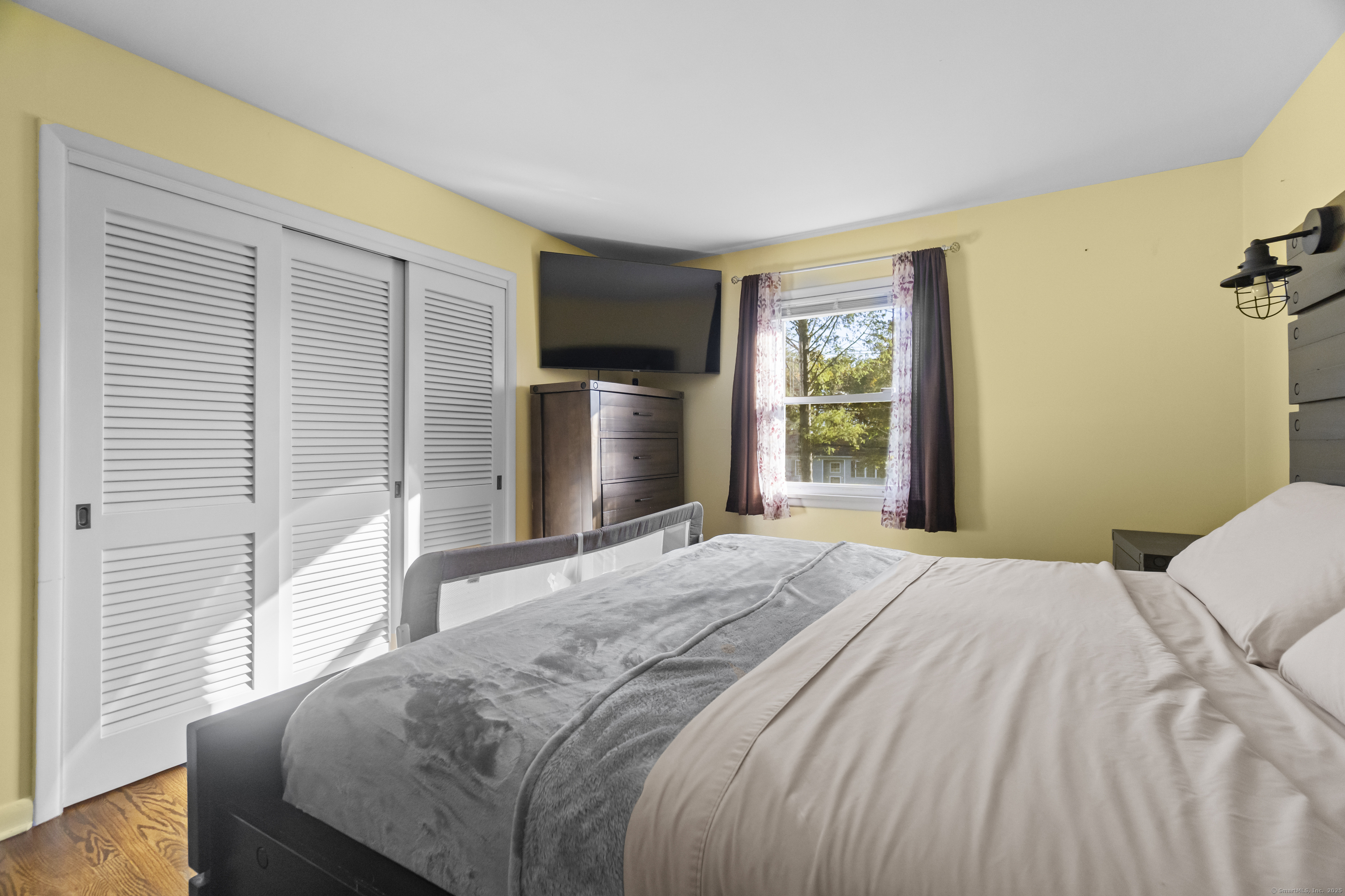 OPEN HOUSE NOV 2ND CANCELLED. This charming 3-bedroom, 2-bath Cape sits on a beautiful half-acre lot in Mount Carmel, offering great privacy with views of the neighboring tree farm and Sleeping Giant. The main living area features newly refinished hardwood floors and an oversized living room with a large bow window that brings in plenty of natural light. A wood-burning stove insert adds warmth and comfort throughout the winter months. The kitchen includes a cozy breakfast nook and convenient pantry space. The first floor offers a comfortable primary bedroom and full bath, while upstairs you'll find two spacious bedrooms and a second full bath. A bright, enclosed sunporch provides a relaxing spot to enjoy the natural surroundings. Additional features include an oversized one-car garage, 1,200 square feet of basement storage, central air and an energy-efficient solar system to help keep utility costs low. Located just minutes from local universities, highways, shopping, and restaurants, this well-built home offers the perfect mix of comfort and convenience.