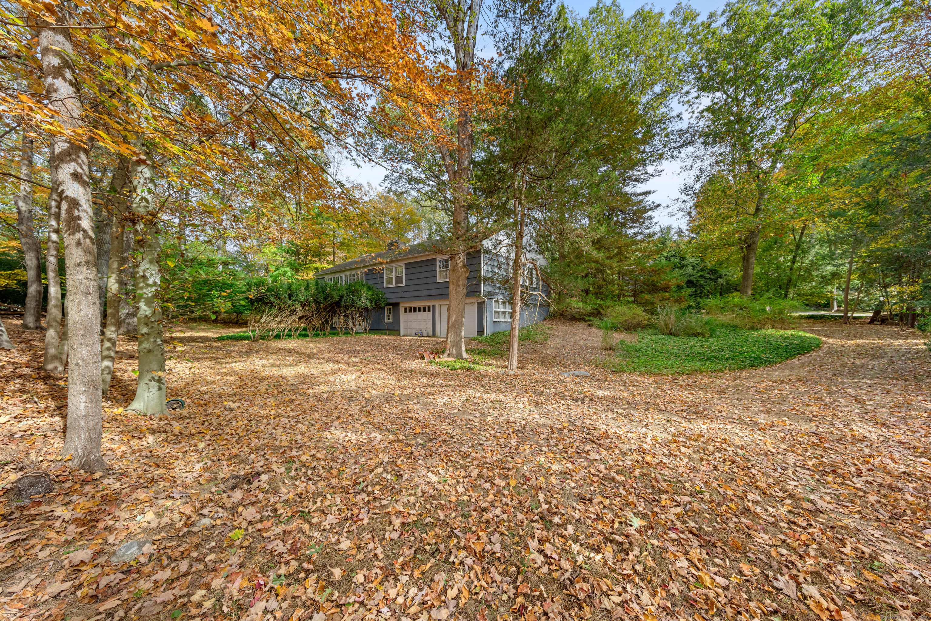A one acre property nestled on a quiet Coleytown side street, this three bedroom, two bath home offers a neighborhood of beautiful natural surroundings, close proximity to school campuses and just a quick ride to downtown Westport! The main floor consists of a large rear facing living room, kitchen, dining room, two bedrooms that share a hall bath, and a primary bedroom with full bath. The lower level offers a family room with fireplace and backyard access. There is a 2 car garage as well as a screened porch. The full acre lot offers plenty of room for renovation, expansion or rebuilding. Property being sold As-Is.