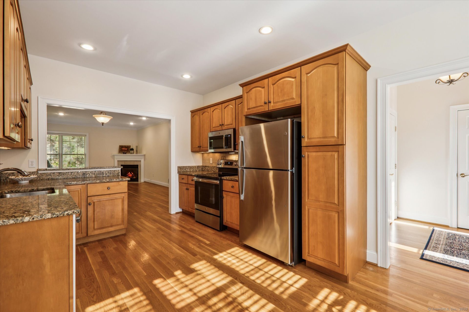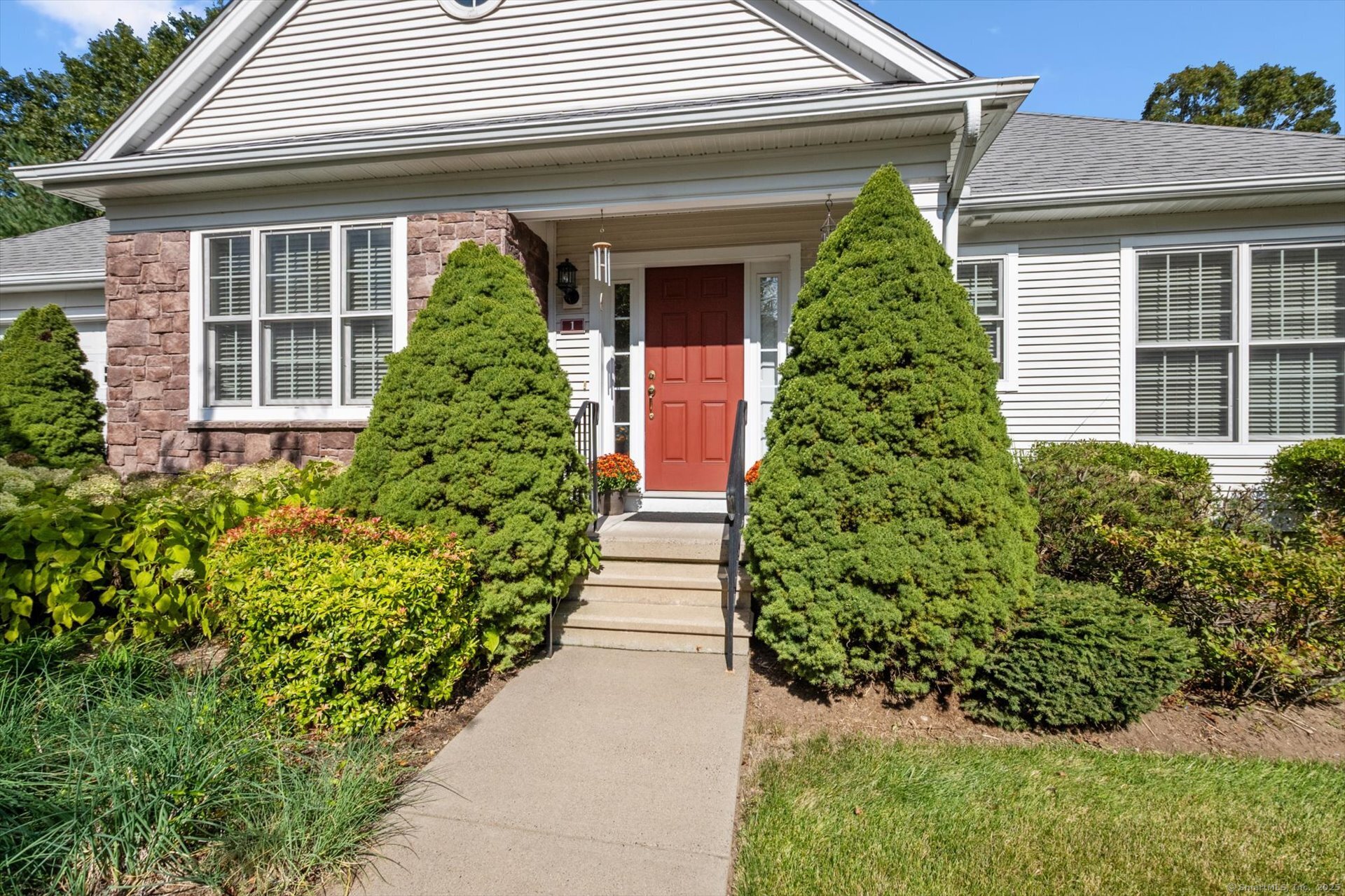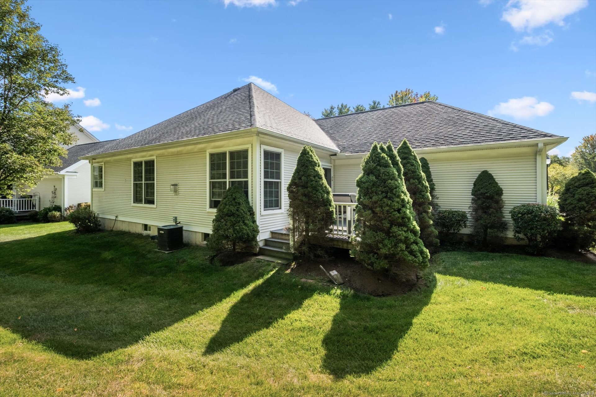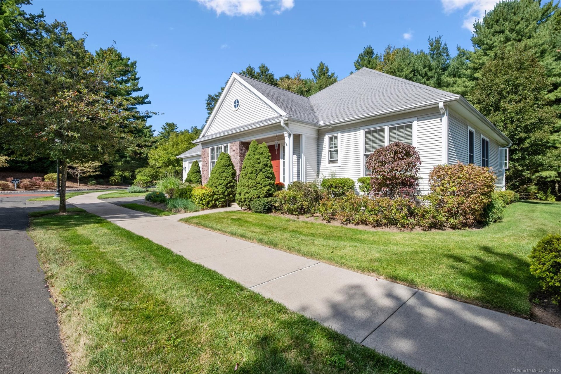 A special offering privately set in Powder Forest, Simsbury's premier active adult community, where comfort, convenience, and New England charm come together! At the Powder Forest community, residents enjoy an elegant clubhouse featuring common living/library areas, billiards room, fitness center, and a caterer's kitchen-perfect for gatherings. With a beautifully appointed brownstone facade and covered entry this home is warm and welcoming, with wonderful curb appeal. The open-concept floor plan boasts gleaming hardwood floors, abundant natural light, and a charming gas fireplace in the great room as the centerpiece. This lovely "Berkeley" ranch model offers two bedrooms, plus a versatile den or guest space, and the primary bedroom has a walk-in closet and luxury bath with soaking tub, separate shower and double sinks. The gourmet kitchen with a sun-filled dining area has granite surfaces, tile backsplash and upgraded cabinetry all overlooking the great room. Enjoy summer meals on the private deck with mature landscaping and flowering shrubs. An oversized two car garage and basement offering abundant, immaculate storage. Stroll the neighborhood walking paths for quiet enjoyment of the flora & fauna! Located minutes from Simsbury center you'll enjoy access to public and private golf courses, a vibrant shopping and dining scene and acclaimed outdoor concert/symphony venue! Natural gas, public utilities. Seller prefers GHAR contract.