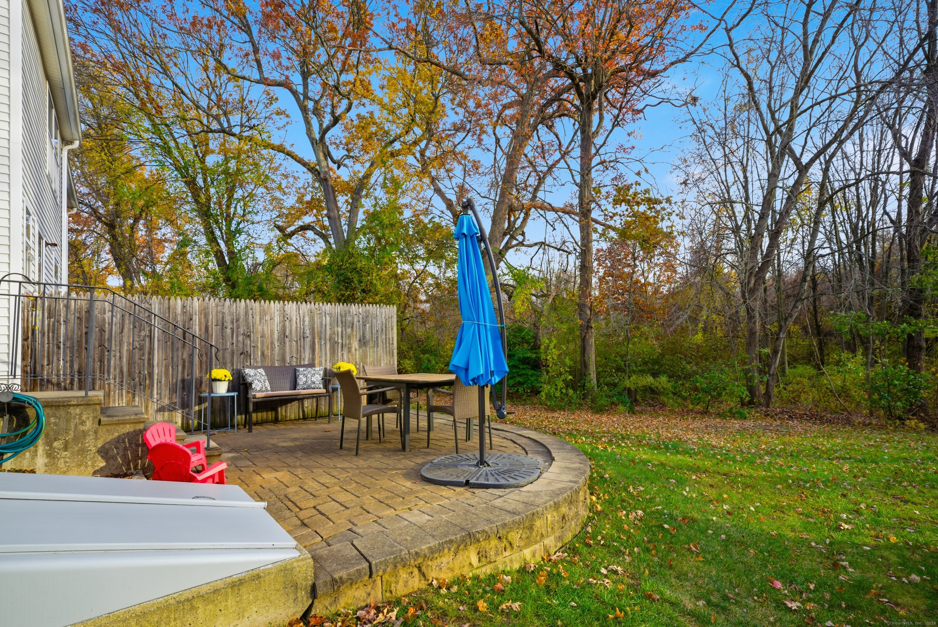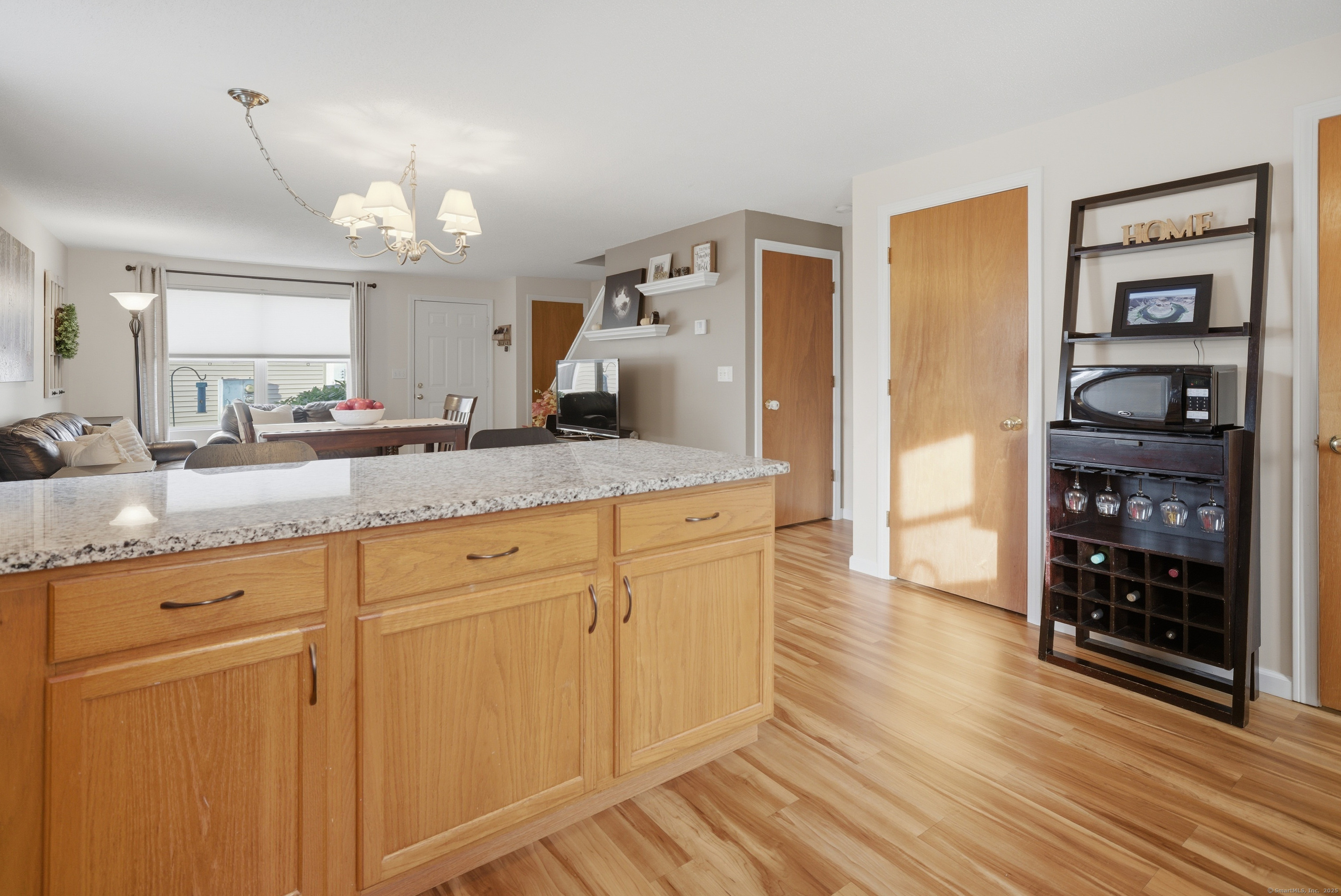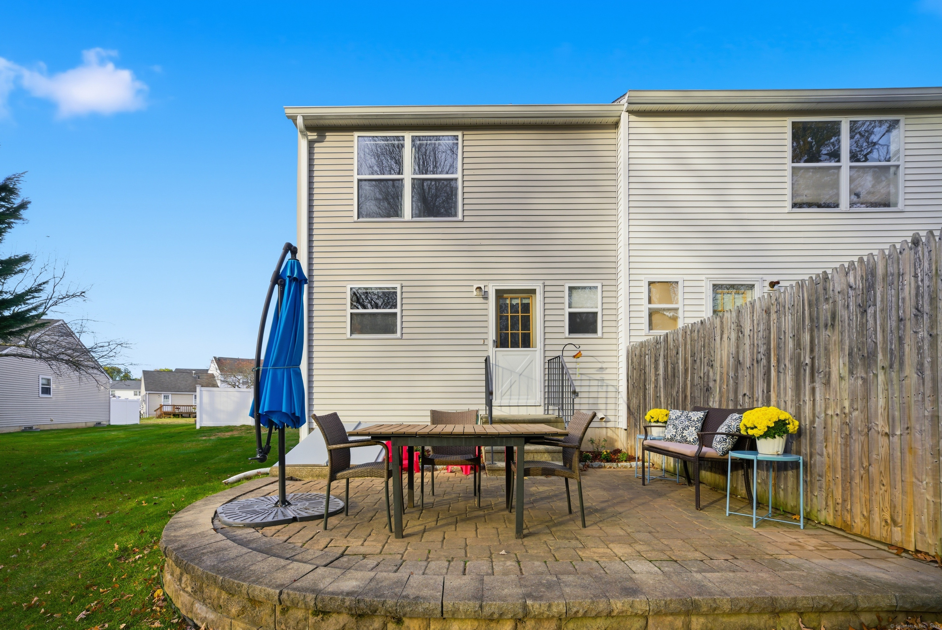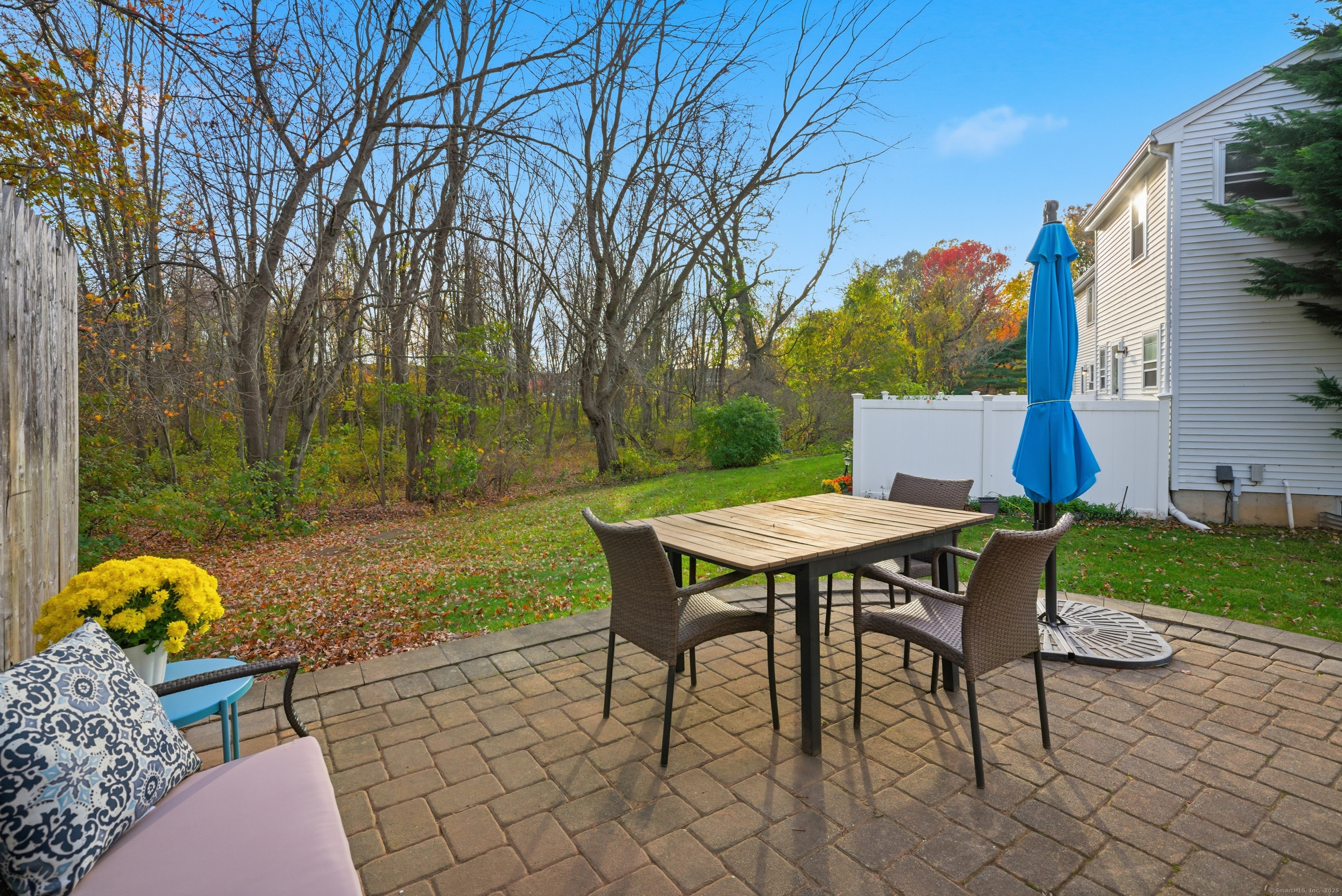 Welcome to this light, bright, open concept, rarely available end unit that borders the woods! The kitchen has granite countertops, breakfast bar, stainless steel appliances, pantry and opens to the dining area and living room with newer LVT flooring throughout the 1st floor. The perfect space for entertaining or just relaxing. The back door in the kitchen will take you out to your private patio overlooking the woods. This unit has oversized bedrooms on the 2nd floor and plenty of storage throughout. The basement has a finished heated room with new wall-to-wall carpeting - rec room, office, workout room, playroom, etc., so many possibilities! Also, more storage with a large walk in storage closet. In the unfinished part you will find the laundry room, more storage and a door leading to the bulkhead to outside. Some recent upgrades include: 2019 new roof, 2019 new central air unit, 2021 new granite countertops, 2024 new water heater. Your water and sewer are included in your monthly HOA! There are walking trails and a basketball court in the complex for your enjoyment. A short distance away from the complex is Addison Park where you can enjoy the public swimming pool, soccer field, baseball field, tennis, pickleball, basketball court and playground. Welcome to your new home just in time for the holidays!