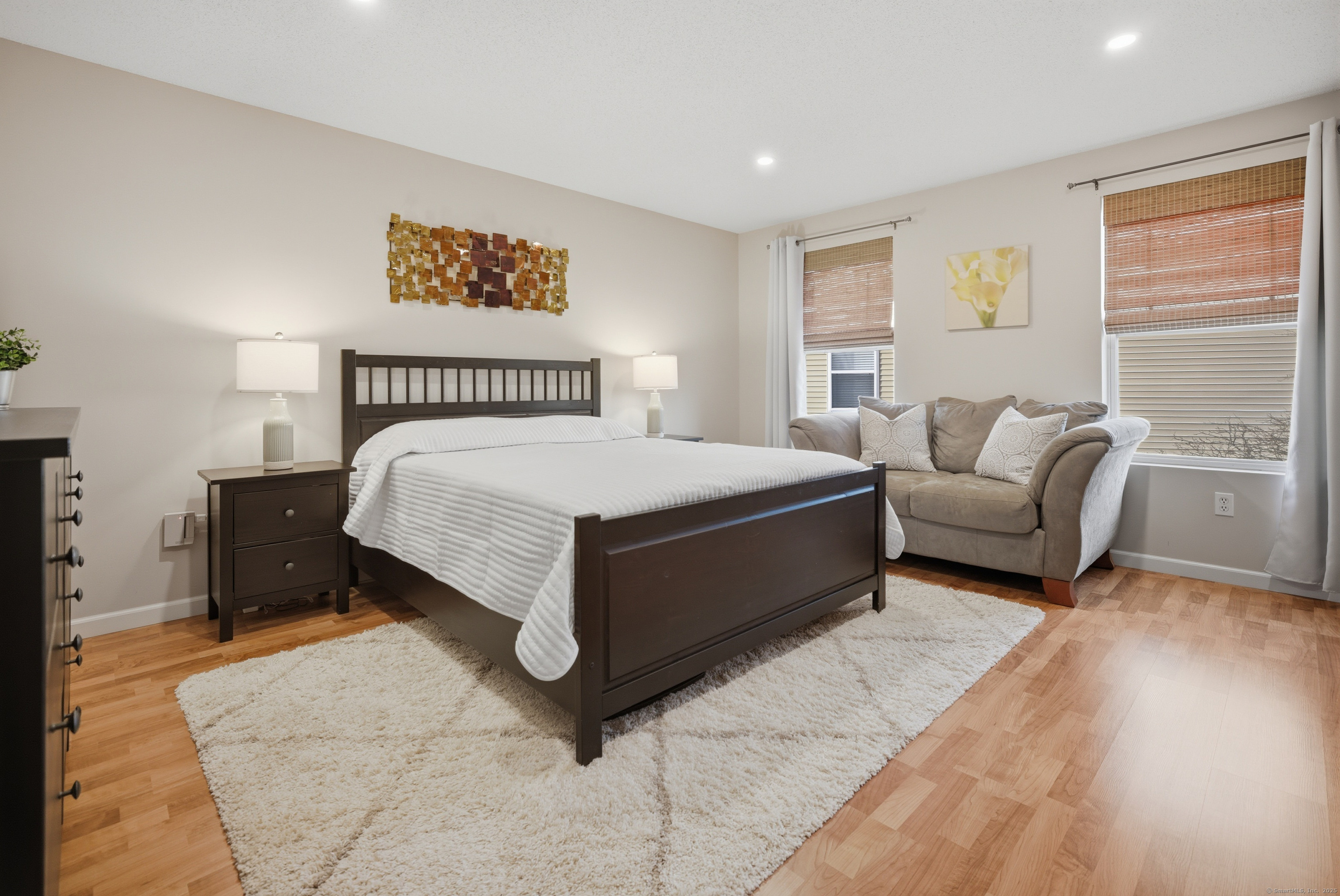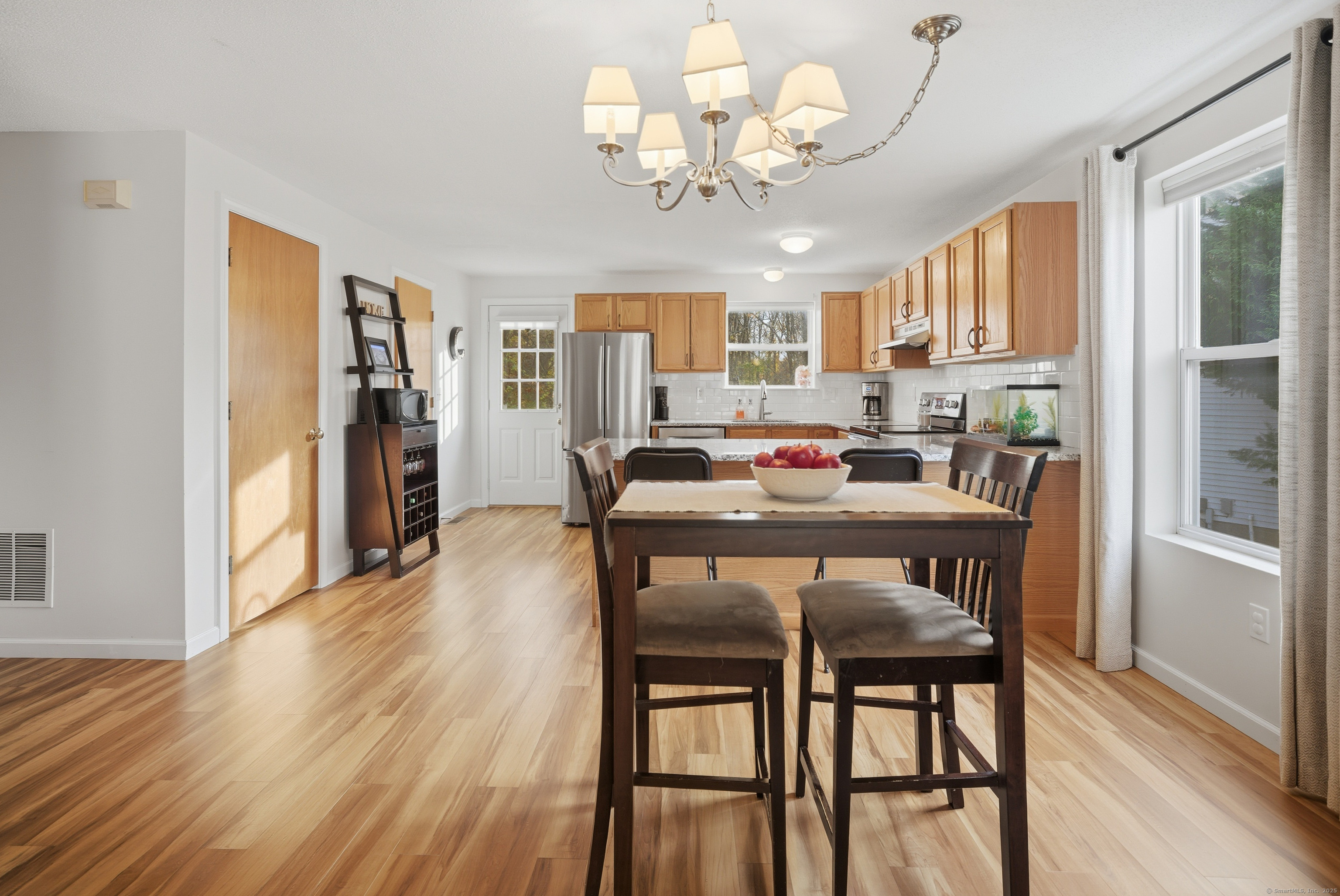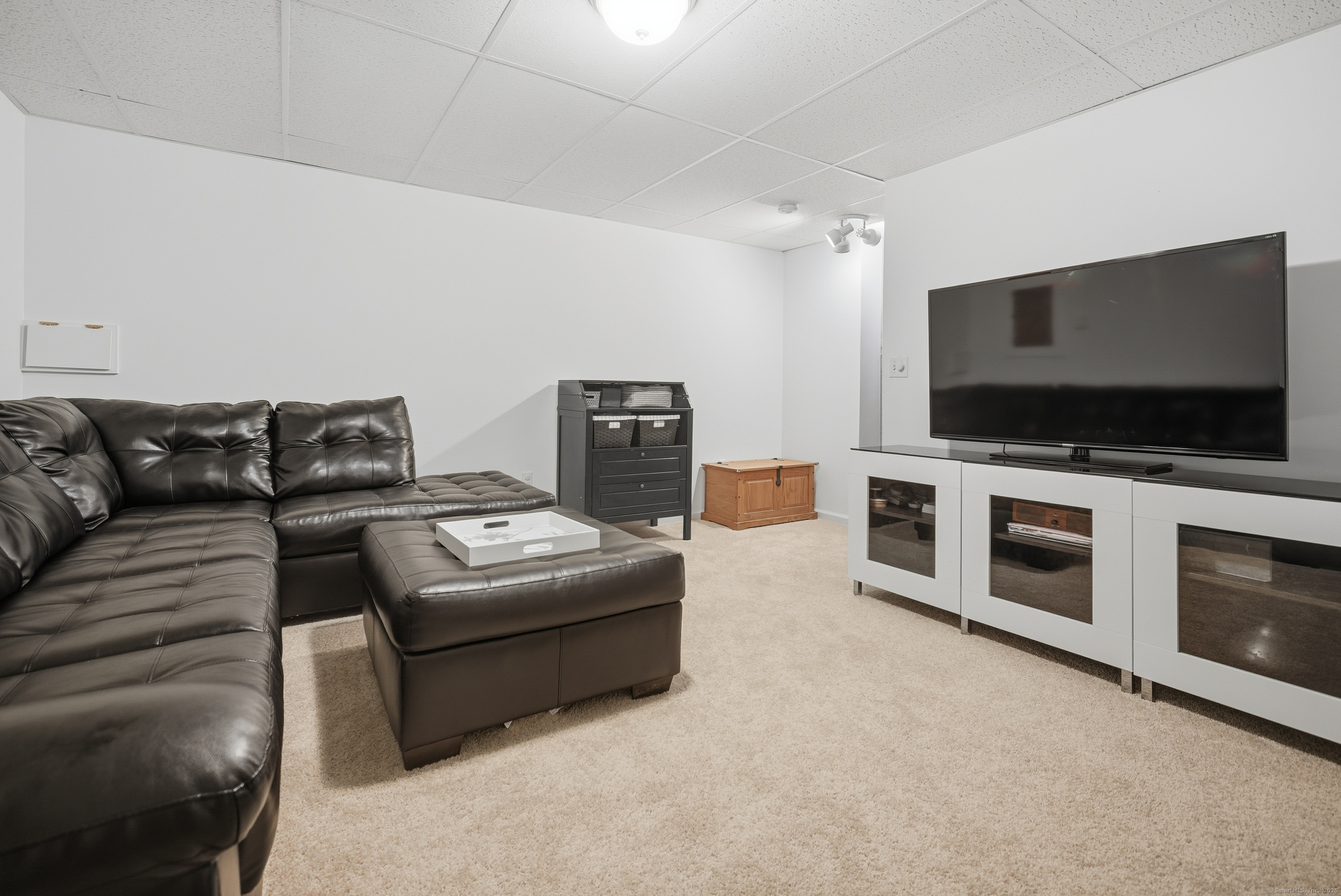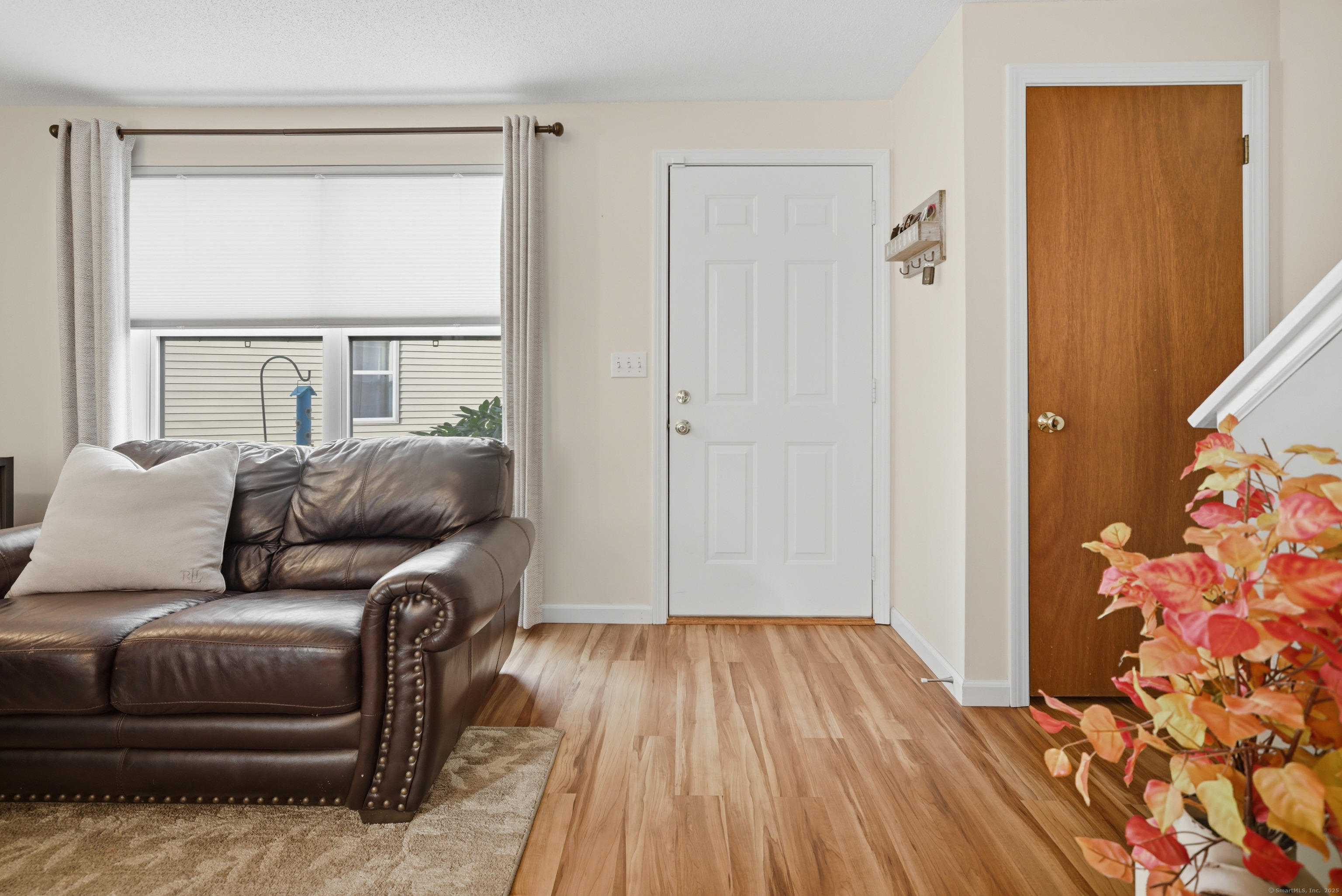 Welcome to this light, bright, open concept, rarely available end unit that borders the woods! The kitchen has granite countertops, breakfast bar, stainless steel appliances, pantry and opens to the dining area and living room with newer LVT flooring throughout the 1st floor. The perfect space for entertaining or just relaxing. The back door in the kitchen will take you out to your private patio overlooking the woods. This unit has oversized bedrooms on the 2nd floor and plenty of storage throughout. The basement has a finished heated room with new wall-to-wall carpeting - rec room, office, workout room, playroom, etc., so many possibilities! Also, more storage with a large walk in storage closet. In the unfinished part you will find the laundry room, more storage and a door leading to the bulkhead to outside. Some recent upgrades include: 2019 new roof, 2019 new central air unit, 2021 new granite countertops, 2024 new water heater. Your water and sewer are included in your monthly HOA! There are walking trails and a basketball court in the complex for your enjoyment. A short distance away from the complex is Addison Park where you can enjoy the public swimming pool, soccer field, baseball field, tennis, pickleball, basketball court and playground. Welcome to your new home just in time for the holidays!