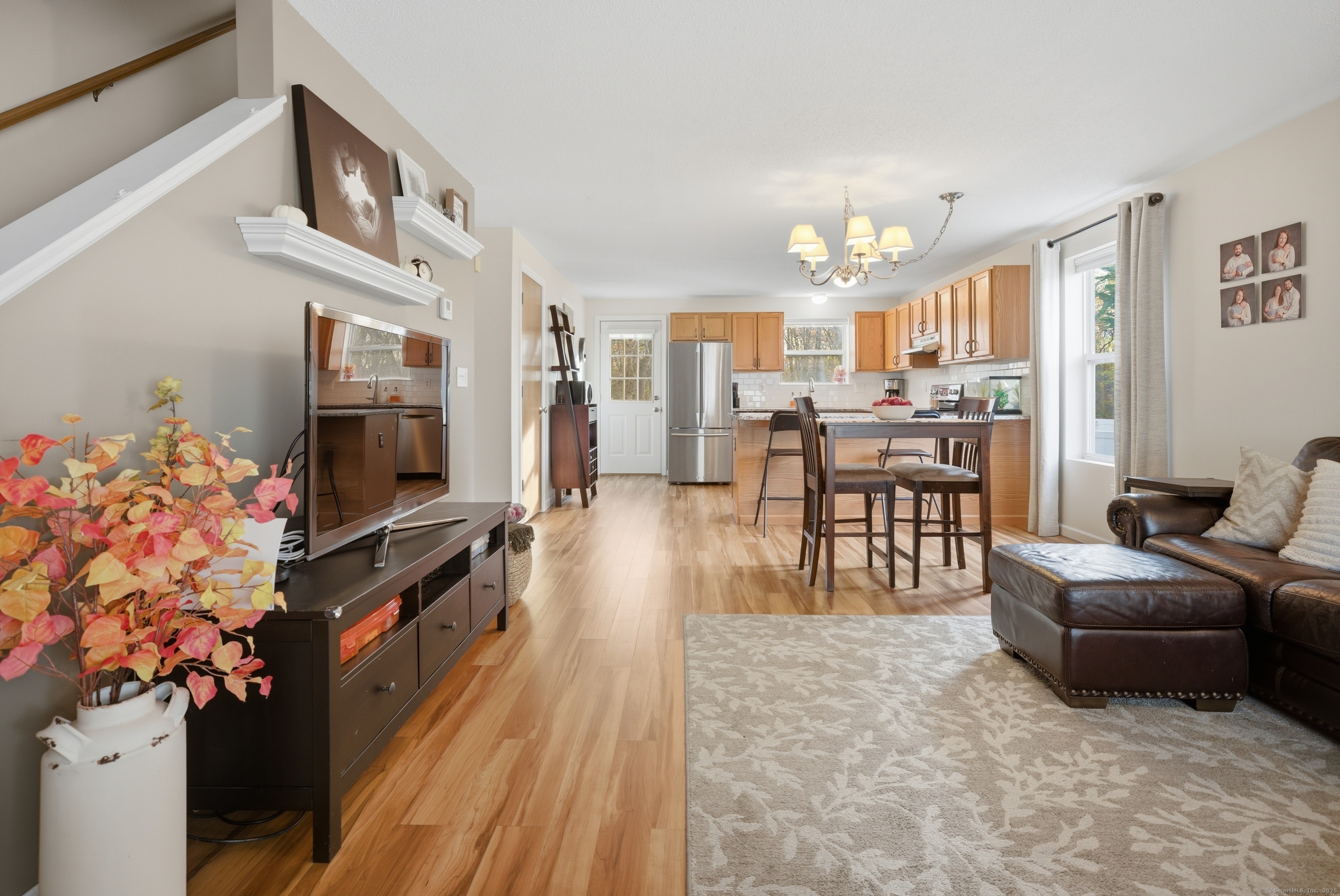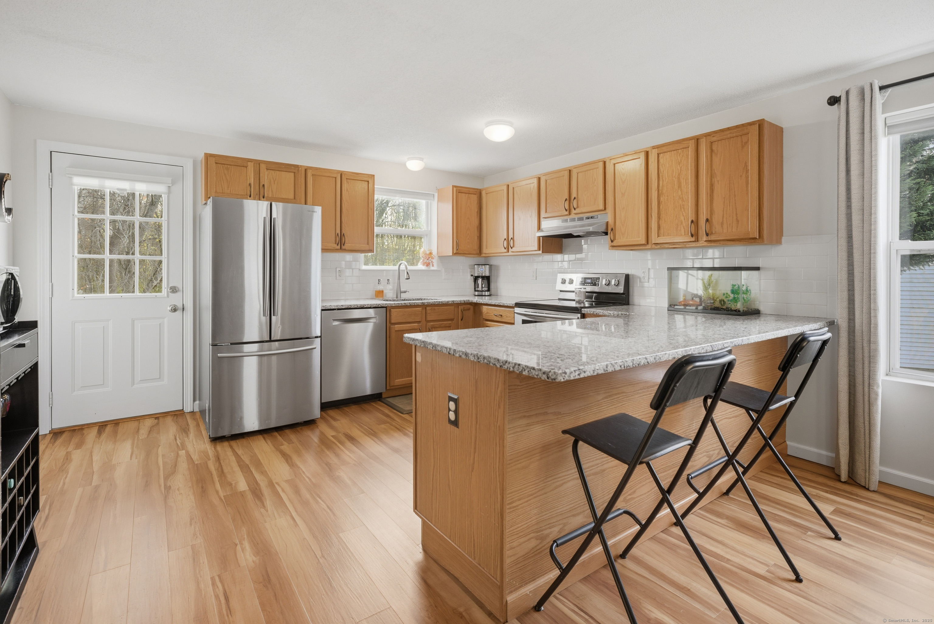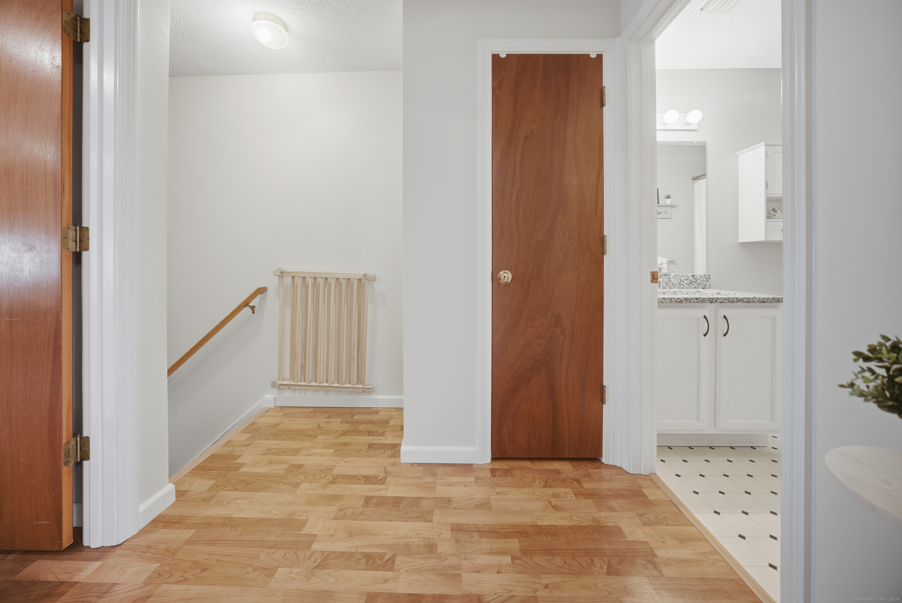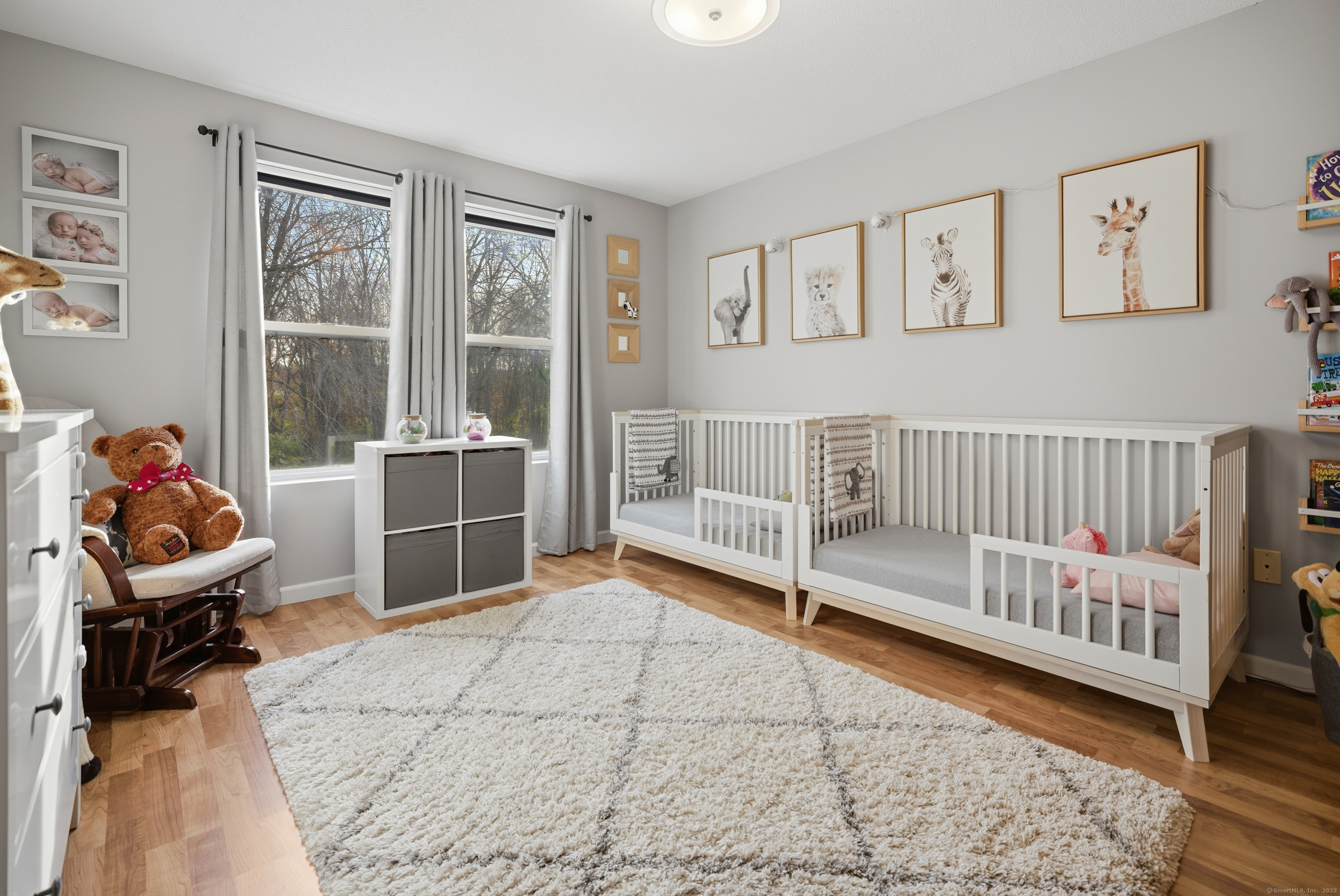 Welcome to this light, bright, open concept, rarely available end unit that borders the woods! The kitchen has granite countertops, breakfast bar, stainless steel appliances, pantry and opens to the dining area and living room with newer LVT flooring throughout the 1st floor. The perfect space for entertaining or just relaxing. The back door in the kitchen will take you out to your private patio overlooking the woods. This unit has oversized bedrooms on the 2nd floor and plenty of storage throughout. The basement has a finished heated room with new wall-to-wall carpeting - rec room, office, workout room, playroom, etc., so many possibilities! Also, more storage with a large walk in storage closet. In the unfinished part you will find the laundry room, more storage and a door leading to the bulkhead to outside. Some recent upgrades include: 2019 new roof, 2019 new central air unit, 2021 new granite countertops, 2024 new water heater. Your water and sewer are included in your monthly HOA! There are walking trails and a basketball court in the complex for your enjoyment. A short distance away from the complex is Addison Park where you can enjoy the public swimming pool, soccer field, baseball field, tennis, pickleball, basketball court and playground. Welcome to your new home just in time for the holidays!