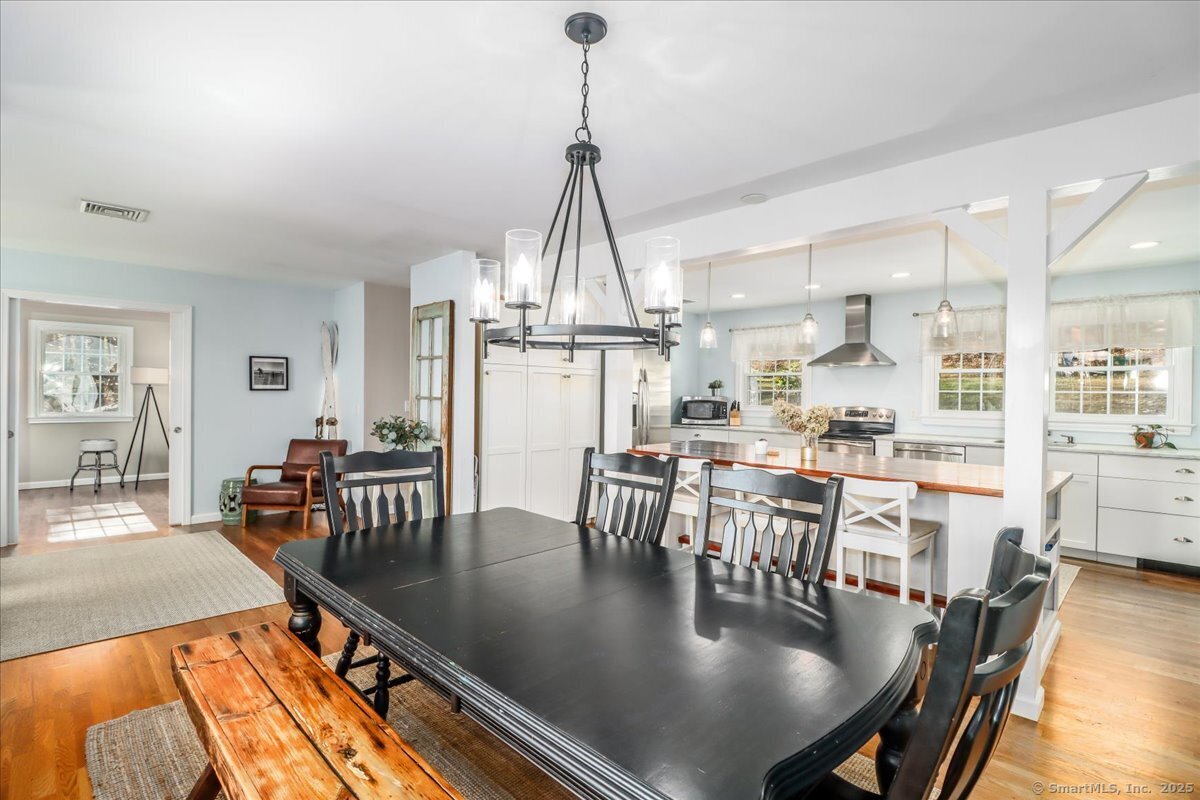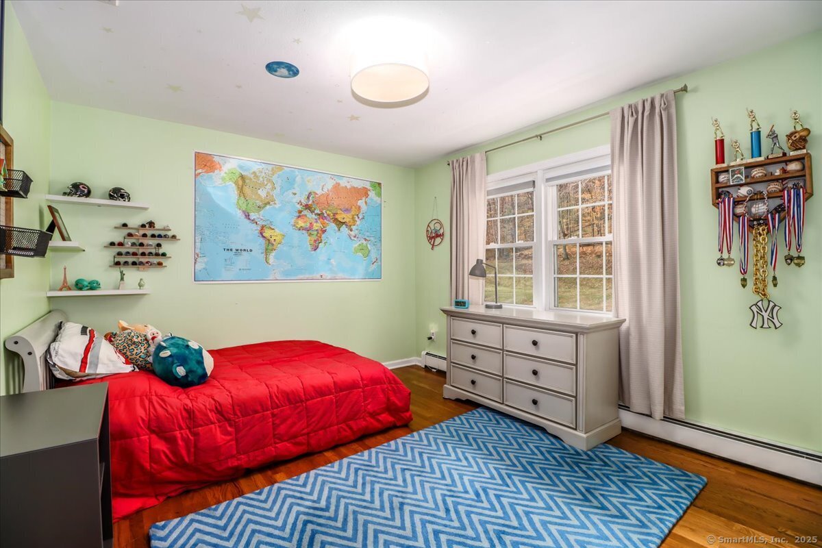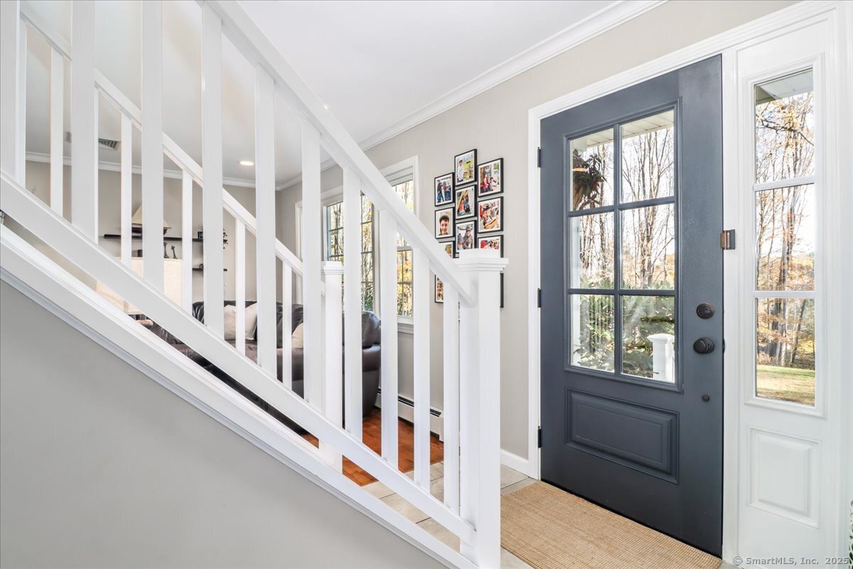 This spacious 5-bedroom Colonial, located in Bethel, CT, offers an updated open floor plan on 2.23 private, tree-lined acres. The home features a bright and sunny interior. The main level includes a gourmet kitchen equipped with marble countertops and a large island featuring a mahogany countertop. Adjacent to the kitchen are a dining room and a living room with a fireplace. A versatile family room, which can also serve as a fifth bedroom, is located on this level and includes a full bath. Both the main and upper levels boast hardwood flooring throughout. The upper level houses four bedrooms and two full baths, along with custom closets in each bedroom. The lower level provides additional living space with wall-to-wall carpeting, built-in bookshelves, and a dedicated laundry room. The home is equipped with central air conditioning for comfort. Exterior features complement the interior, including a large deck and a flagstone patio with a fire pit in the backyard. A barnyard shed was installed on September 1, 2025. The property includes a two-car garage and backs up to Stevenson Reserve, offering access to a pond and trails. Conveniently situated on the Redding line, the residence is minutes from the town of Bethel, providing easy access to local amenities, various commutes, and proximity to Metro North.