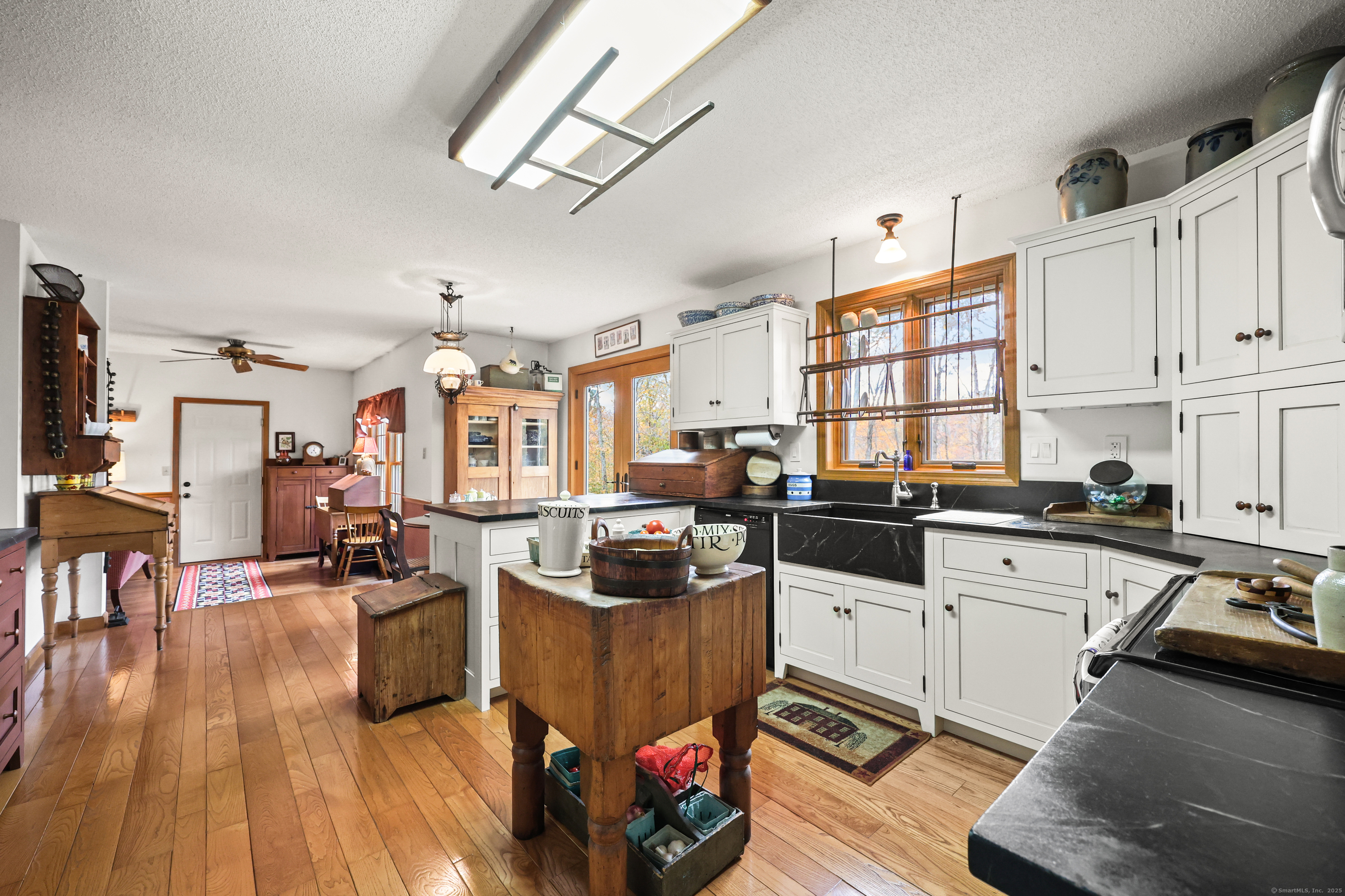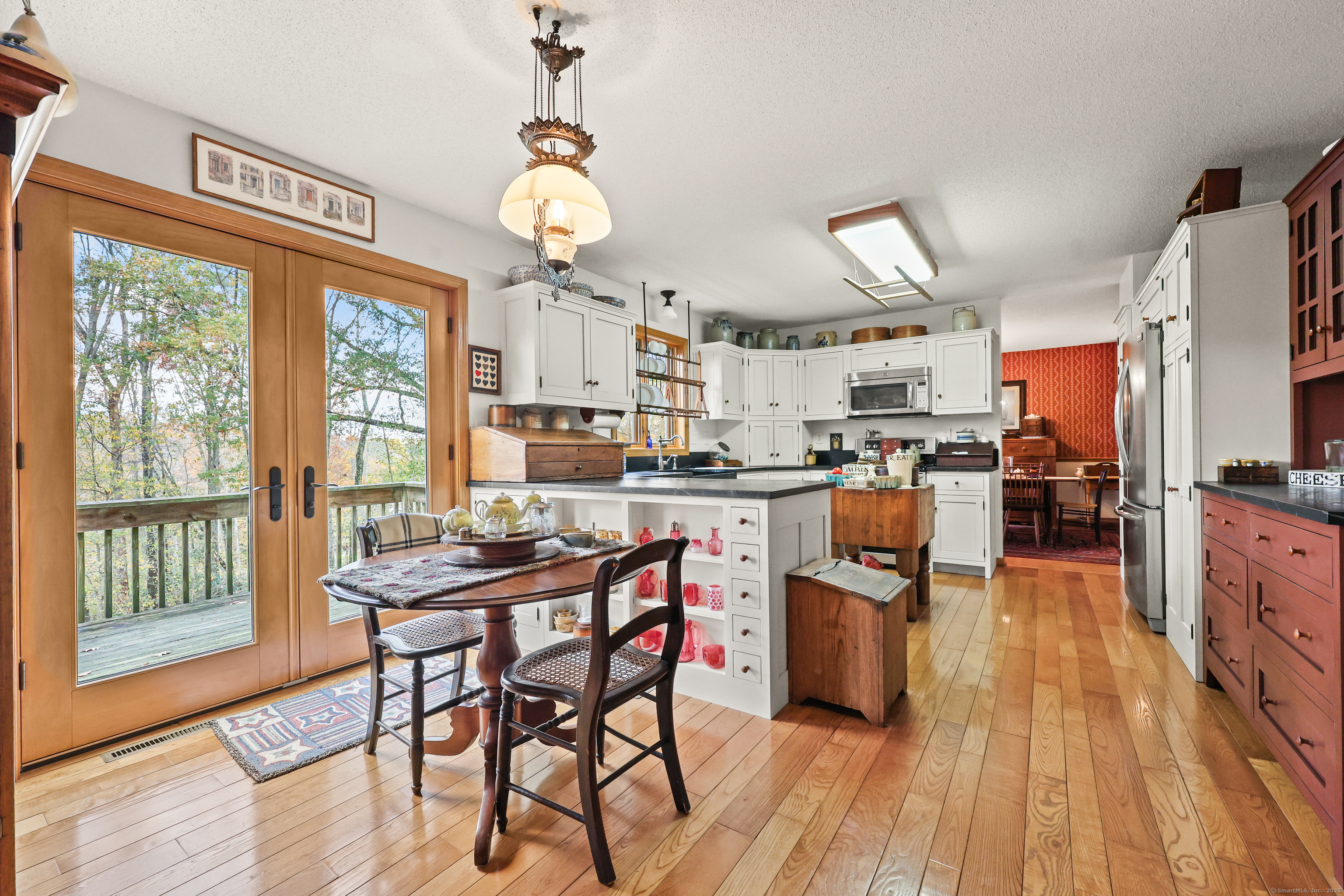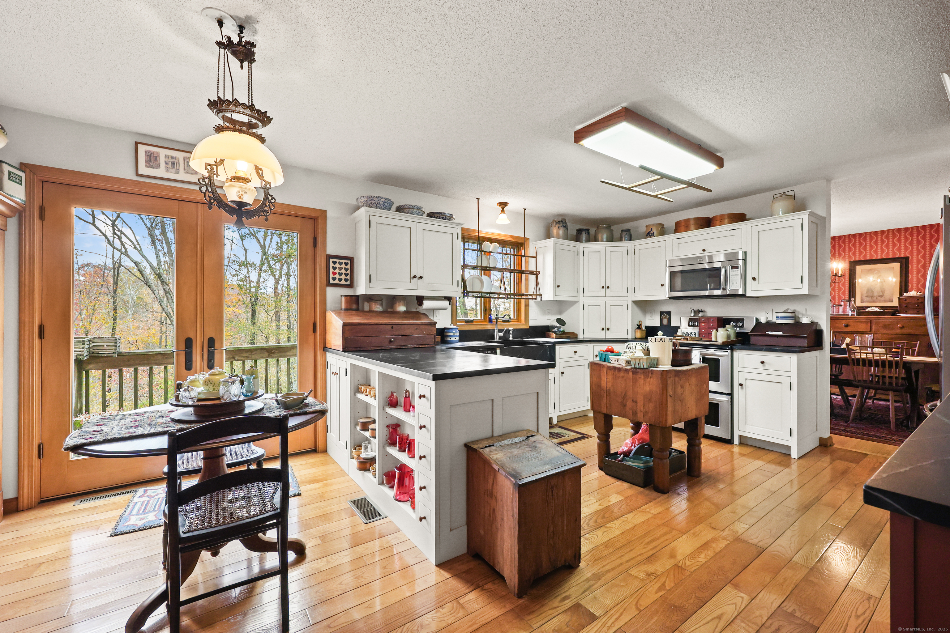 Meticulously maintained 3 bedroom 2 1/2 bath Cape in a lovely Higganum neighborhood. This home features hardwood floors throughout. The main floor offers a large living room with a wood burning fireplace, family room, dining room and a kitchen with french doors to a deck. The kitchen has been remodeled with soapstone counters, under cabinet lighting and custom cabinets by Crown Point Cabinetry. Upstairs there is a large primary bedroom suite and two other good sized bedrooms and full bath. The basement can be finished and it includes a walkout to a beautiful three season porch overlooking a landscaped yard. There is a two car attached garage, full house generator, newer furnace, central air and Pella double pane windows and doors. A list of all upgrades is available.