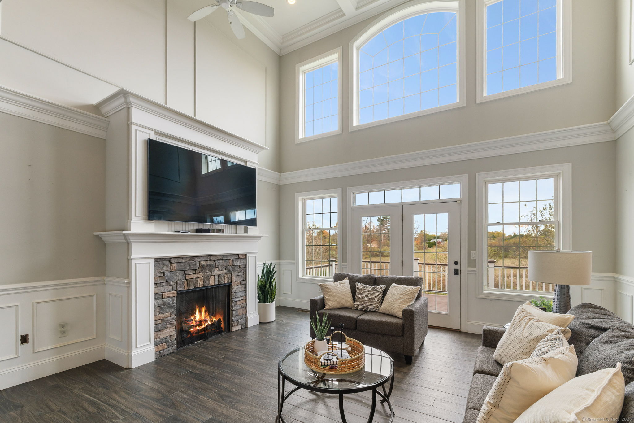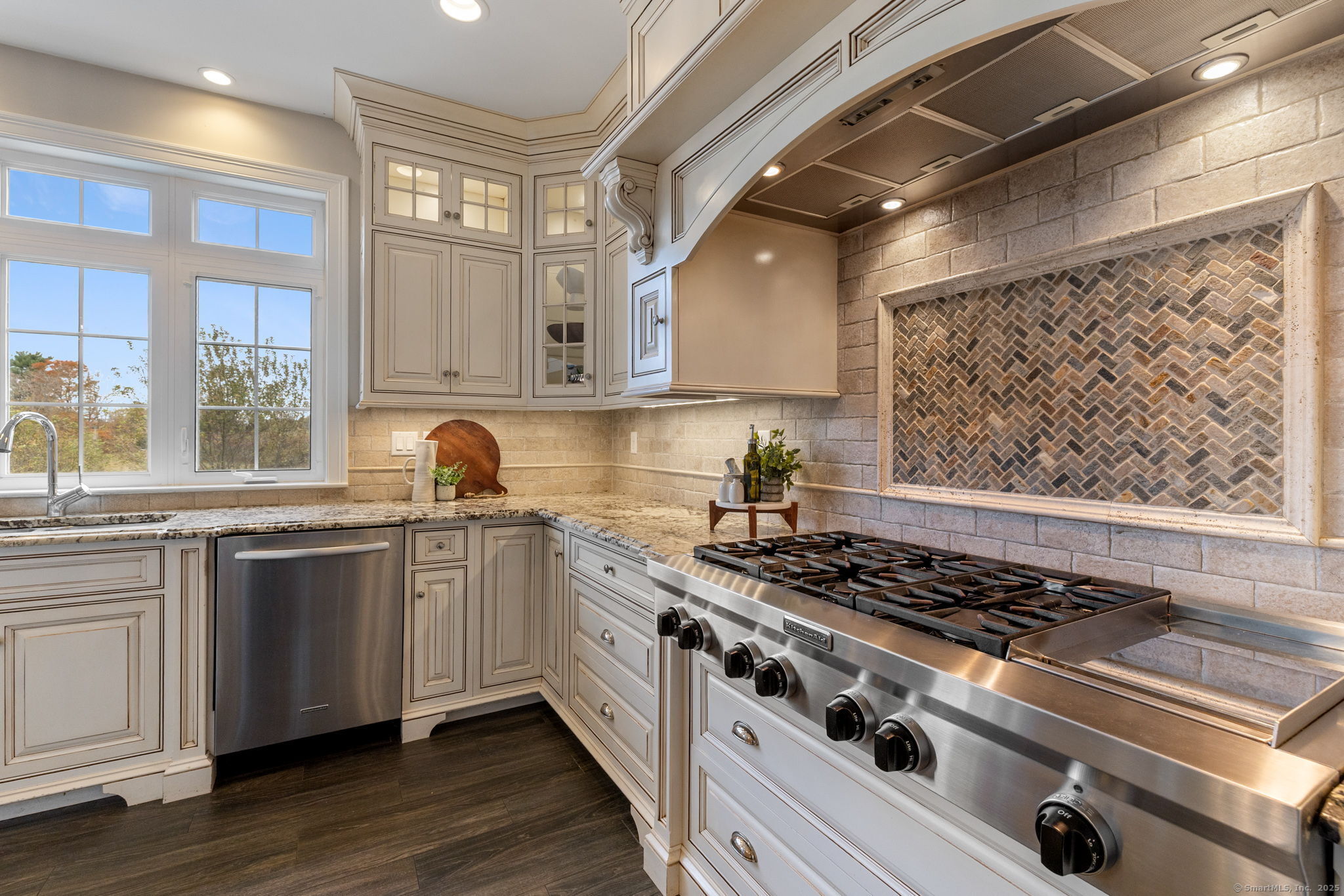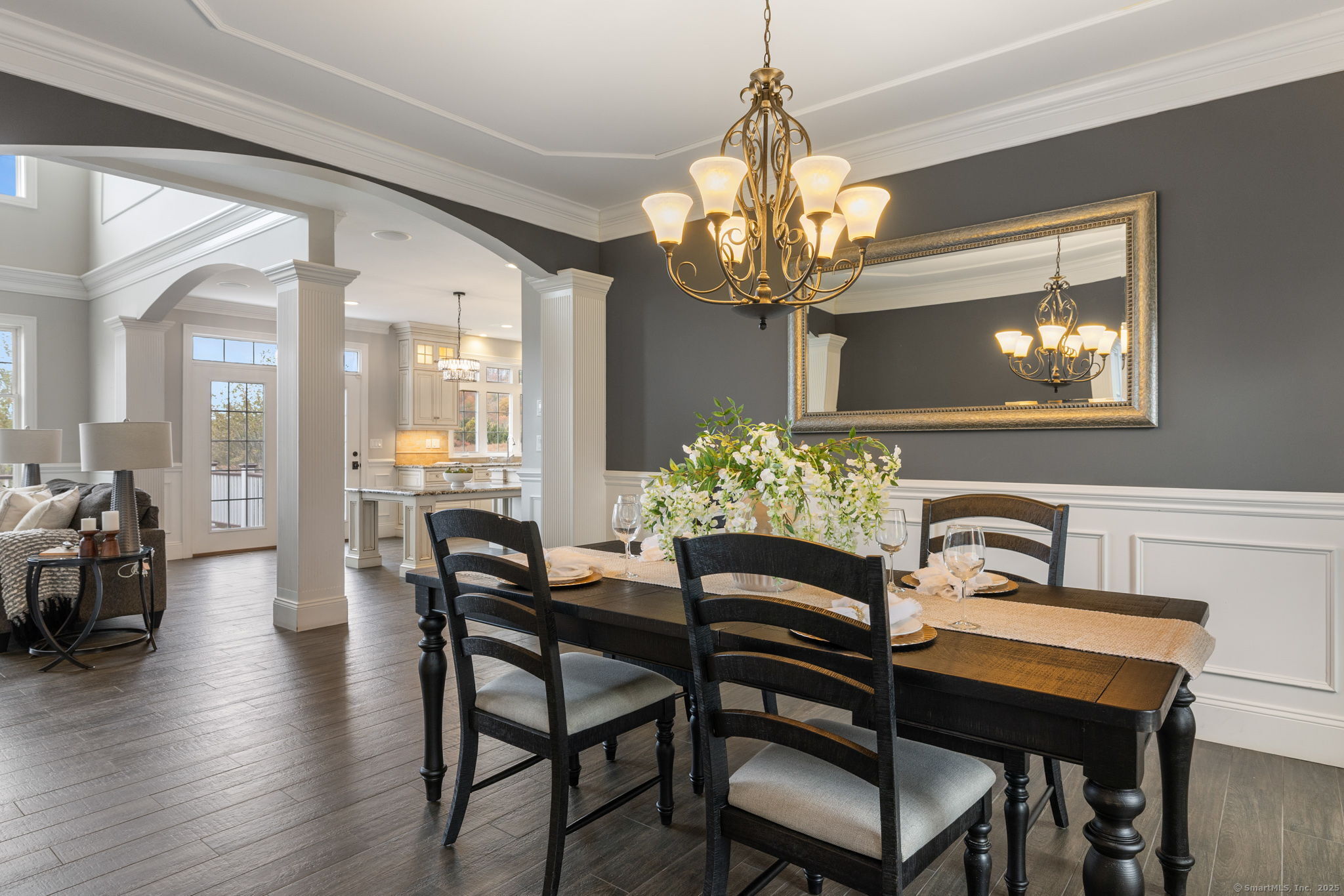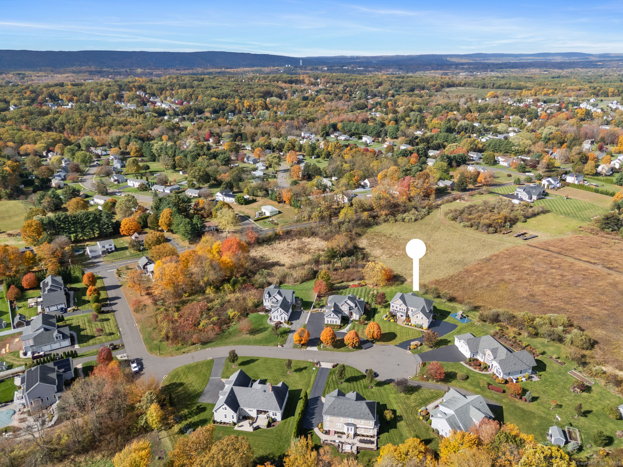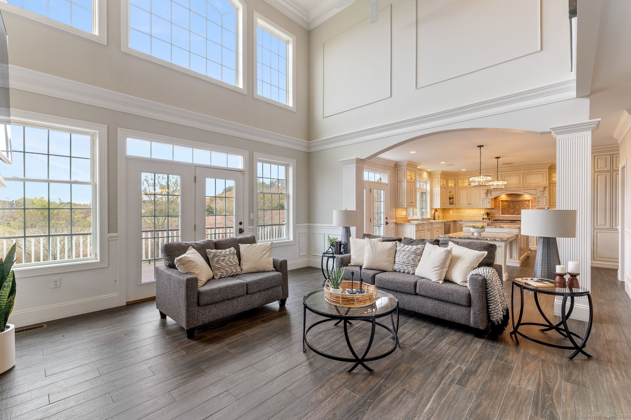 Why build when this 12-year-young custom colonial is completely move-in ready. Nestled on a quiet cul-de-sac among prestigious homes off Flanders Road, this spectacular 5 bedroom, 3.5 bath home offers refined craftsmanship and top-of-the-line finishes throughout. The elegant two-story foyer opens to a warm, light-filled layout with 9' ceilings, Italian porcelain flooring, extensive crown molding, chair rail, wainscoting, and custom archways. The gourmet kitchen is a dream-double-stacked beaded cabinetry with inset doors, granite counters, large island with seating, 6-burner gas cooktop, walk-in pantry, and a sunny dining area. The kitchen opens to a breathtaking great room with a 24' coffered ceiling, custom stone fireplace, and a wall of windows overlooking peaceful pastoral views. A formal dining room, private office or 6th bedroom for guests, and mudroom complete the main level. Upstairs, the luxurious primary suite features a sitting area, tray ceiling, walk-in dressing room, and spa bath with marble vanities, soaking tub, and glass shower. Additional bedrooms include an en-suite and a shared full bath, plus a convenient upper-level laundry with new washer and dryer 2025. Outdoor living includes a 14'x26' Azek deck with motorized awning, covered patio, irrigation system, and space for a future pool. Walkout lower level with 9' ceilings and full-size windows. Natural gas, city water/sewer, central vacuum, whole-house audio. Turnkey and exceptional!