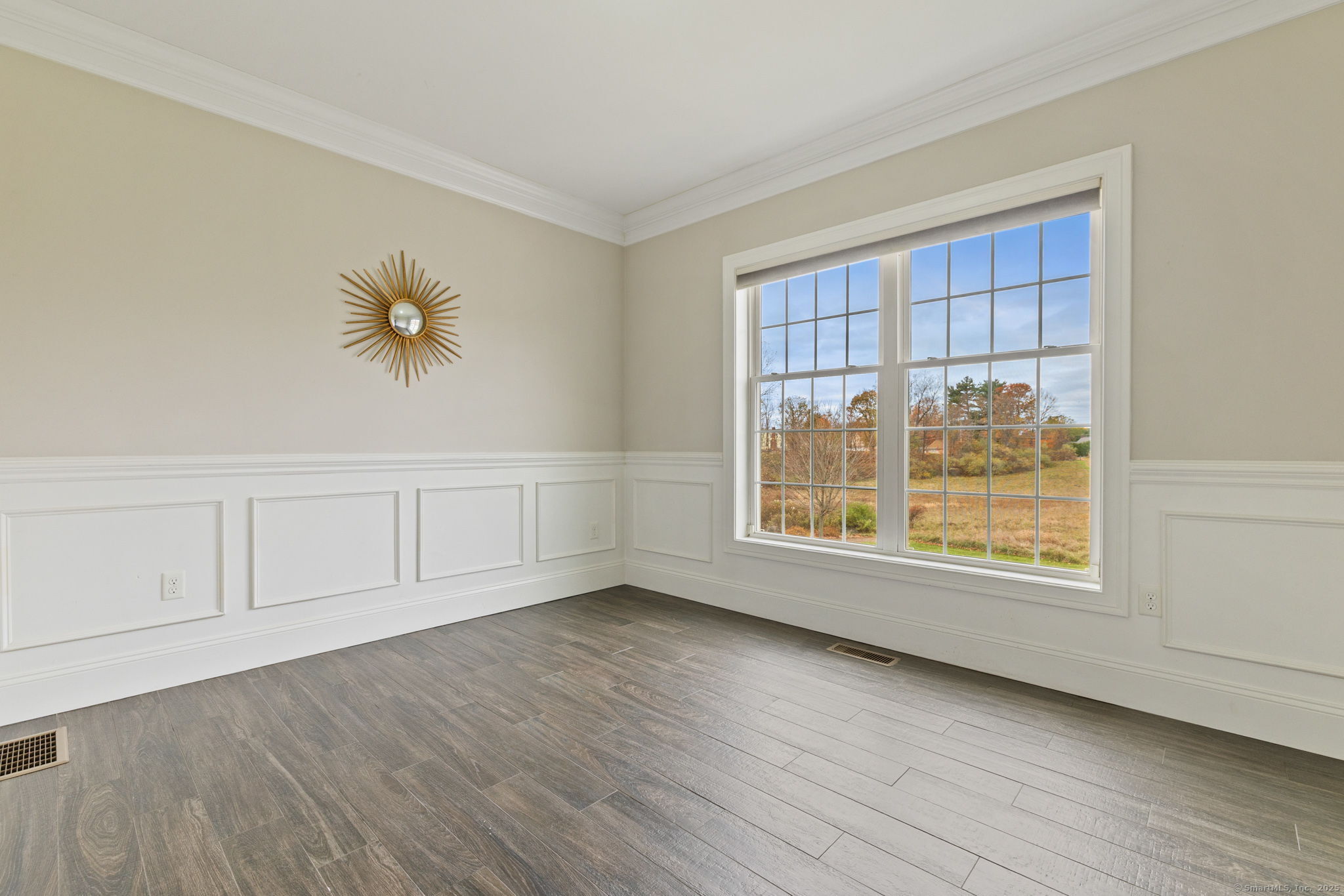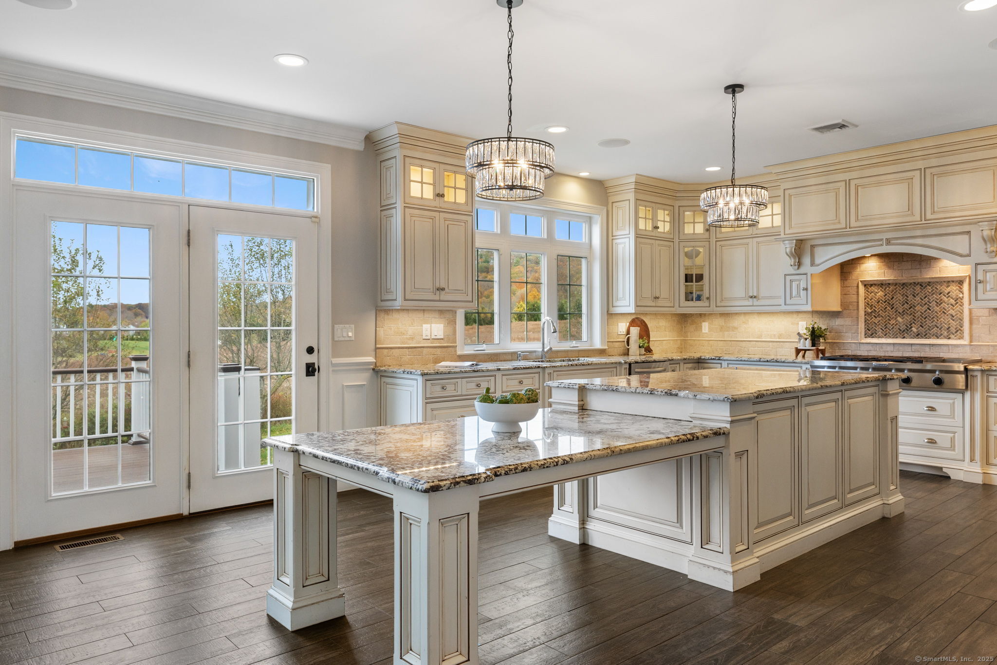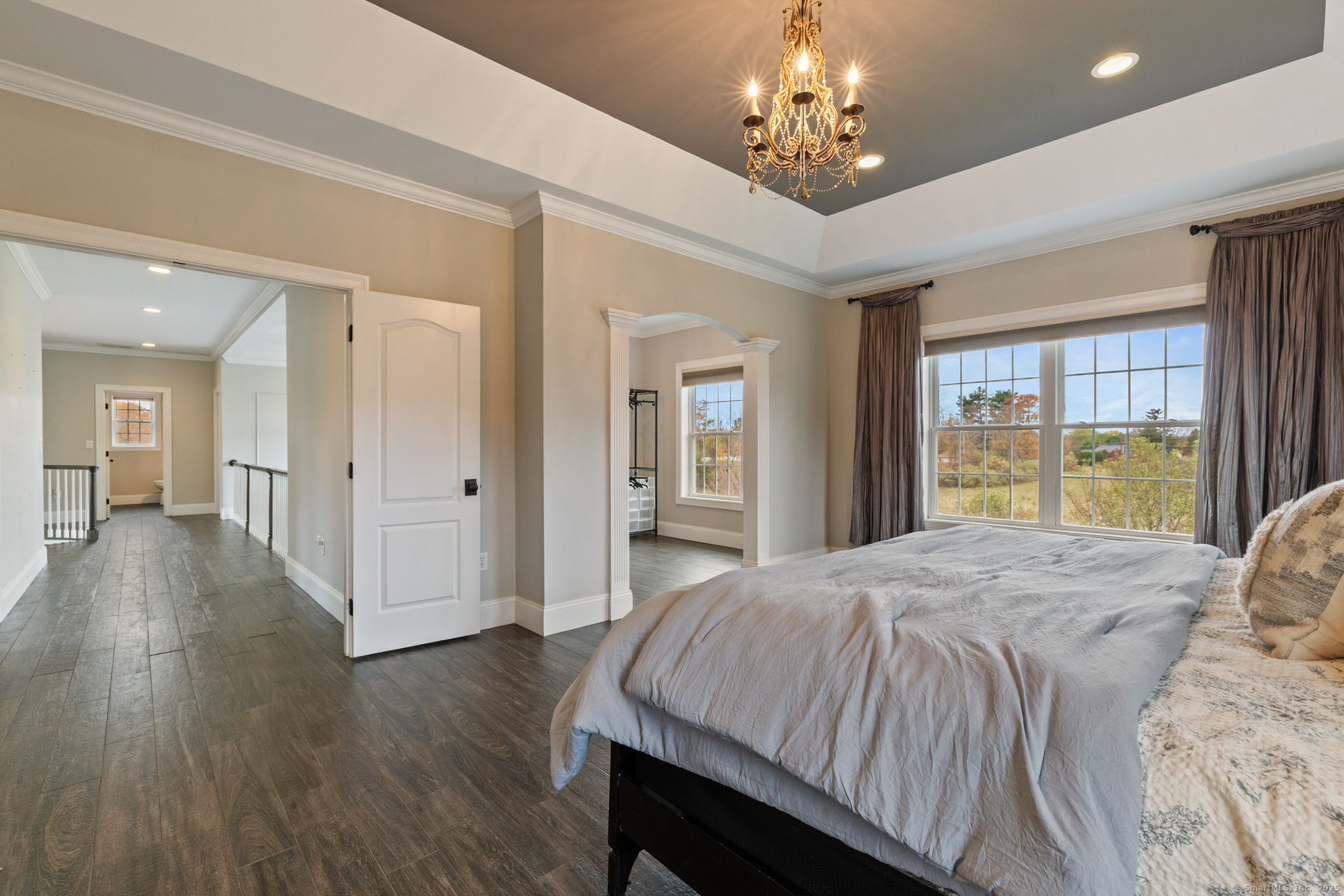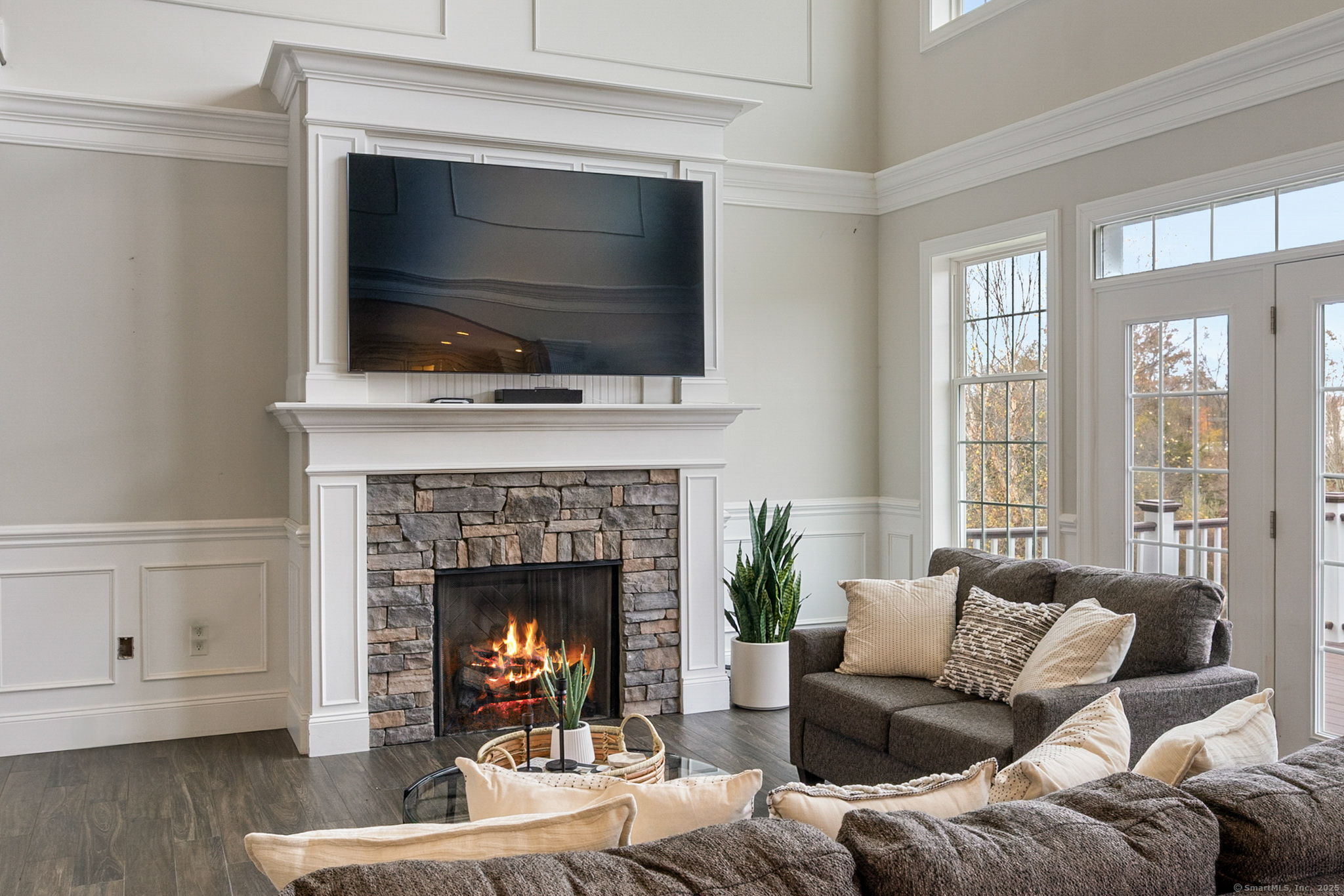 Why build when this 12-year-young custom colonial is completely move-in ready. Nestled on a quiet cul-de-sac among prestigious homes off Flanders Road, this spectacular 5 bedroom, 3.5 bath home offers refined craftsmanship and top-of-the-line finishes throughout. The elegant two-story foyer opens to a warm, light-filled layout with 9' ceilings, Italian porcelain flooring, extensive crown molding, chair rail, wainscoting, and custom archways. The gourmet kitchen is a dream-double-stacked beaded cabinetry with inset doors, granite counters, large island with seating, 6-burner gas cooktop, walk-in pantry, and a sunny dining area. The kitchen opens to a breathtaking great room with a 24' coffered ceiling, custom stone fireplace, and a wall of windows overlooking peaceful pastoral views. A formal dining room, private office or 6th bedroom for guests, and mudroom complete the main level. Upstairs, the luxurious primary suite features a sitting area, tray ceiling, walk-in dressing room, and spa bath with marble vanities, soaking tub, and glass shower. Additional bedrooms include an en-suite and a shared full bath, plus a convenient upper-level laundry with new washer and dryer 2025. Outdoor living includes a 14'x26' Azek deck with motorized awning, covered patio, irrigation system, and space for a future pool. Walkout lower level with 9' ceilings and full-size windows. Natural gas, city water/sewer, central vacuum, whole-house audio. Turnkey and exceptional!