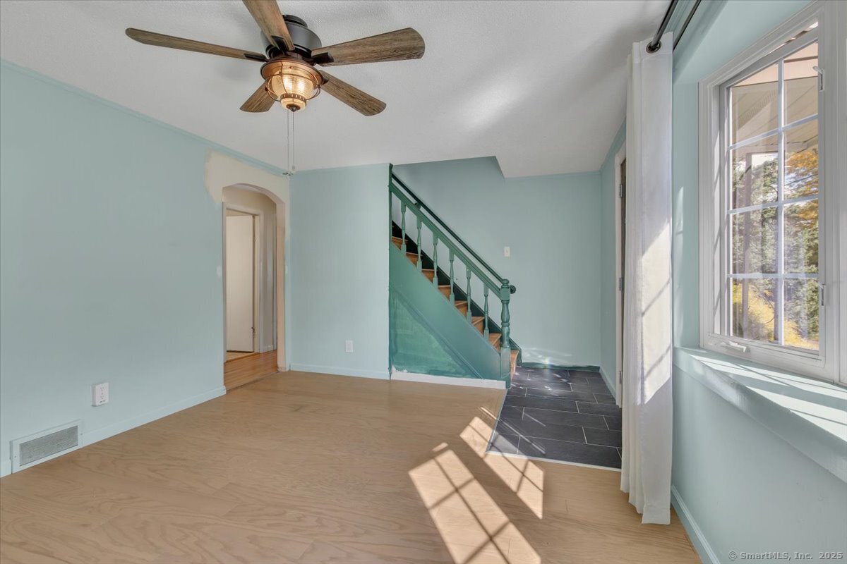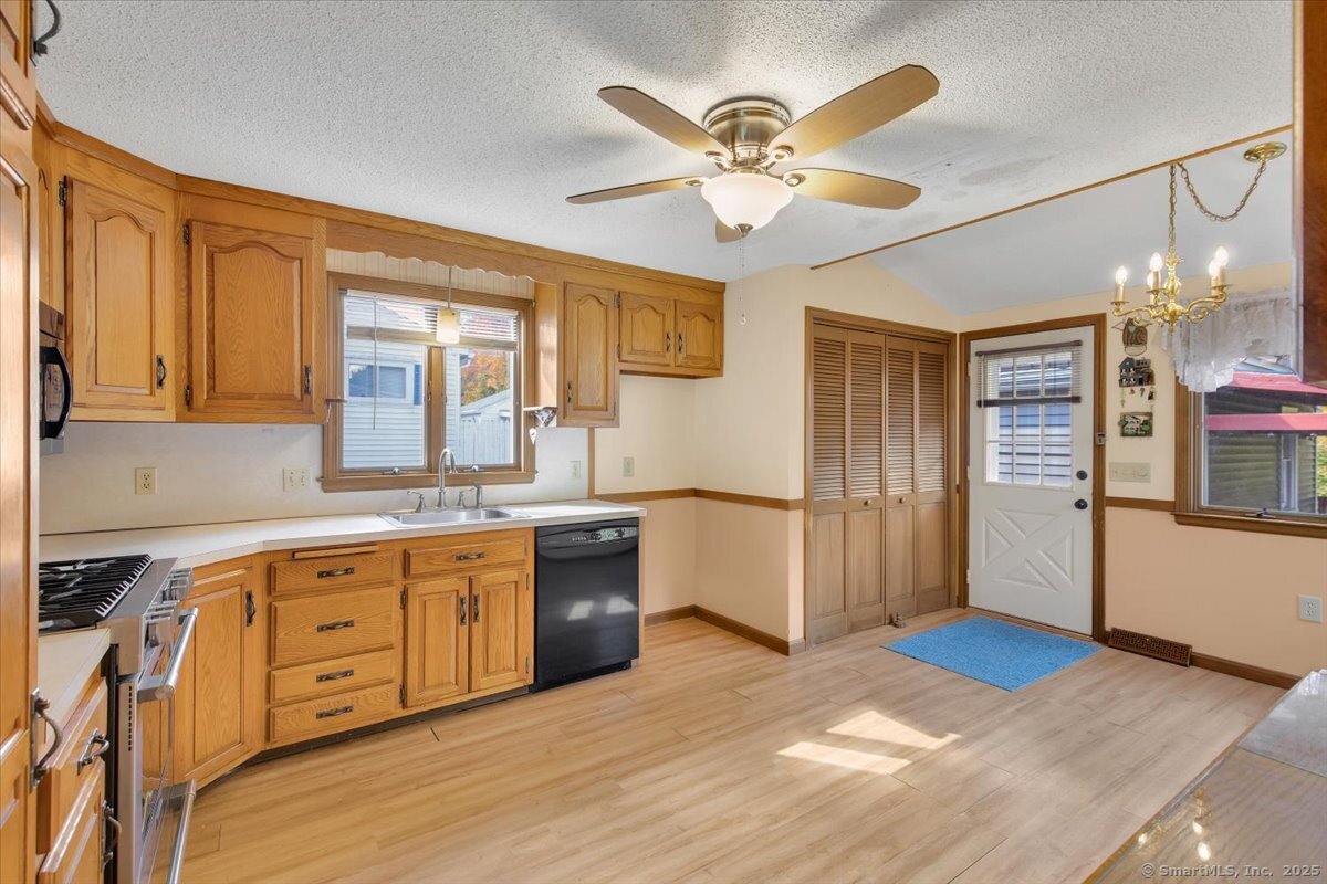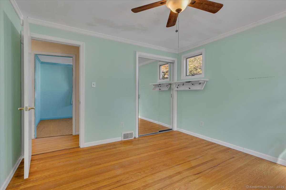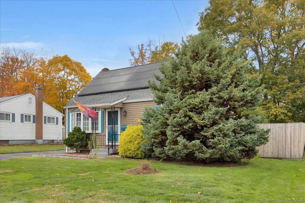 Welcome home to this charming Cape-style property nestled in a well-maintained neighborhood - full of potential and ready for your finishing touches! This spacious 4-bedroom, 2-bath home offers a comfortable and flexible layout, with two bedrooms and a full bath on the main level, plus two generously sized bedrooms and another full bath with a stall shower upstairs. The sun-filled living room features a large bay window, and the eat-in kitchen offers ample storage and space for gathering. The partially finished lower level provides a heated area and abundant storage options. Outside, you'll find an oversized one-car detached garage with pull-down attic access, a covered deck, and lovely gardens perfect for outdoor enjoyment. Home was converted to gas and it has central air. Freshly cleaned ductwork, and a serviced furnace. Even better - the solar panels will be paid off at closing, offering tremendous monthly savings for the new homeowner. Bring your vision and make this warm, inviting home truly your own!