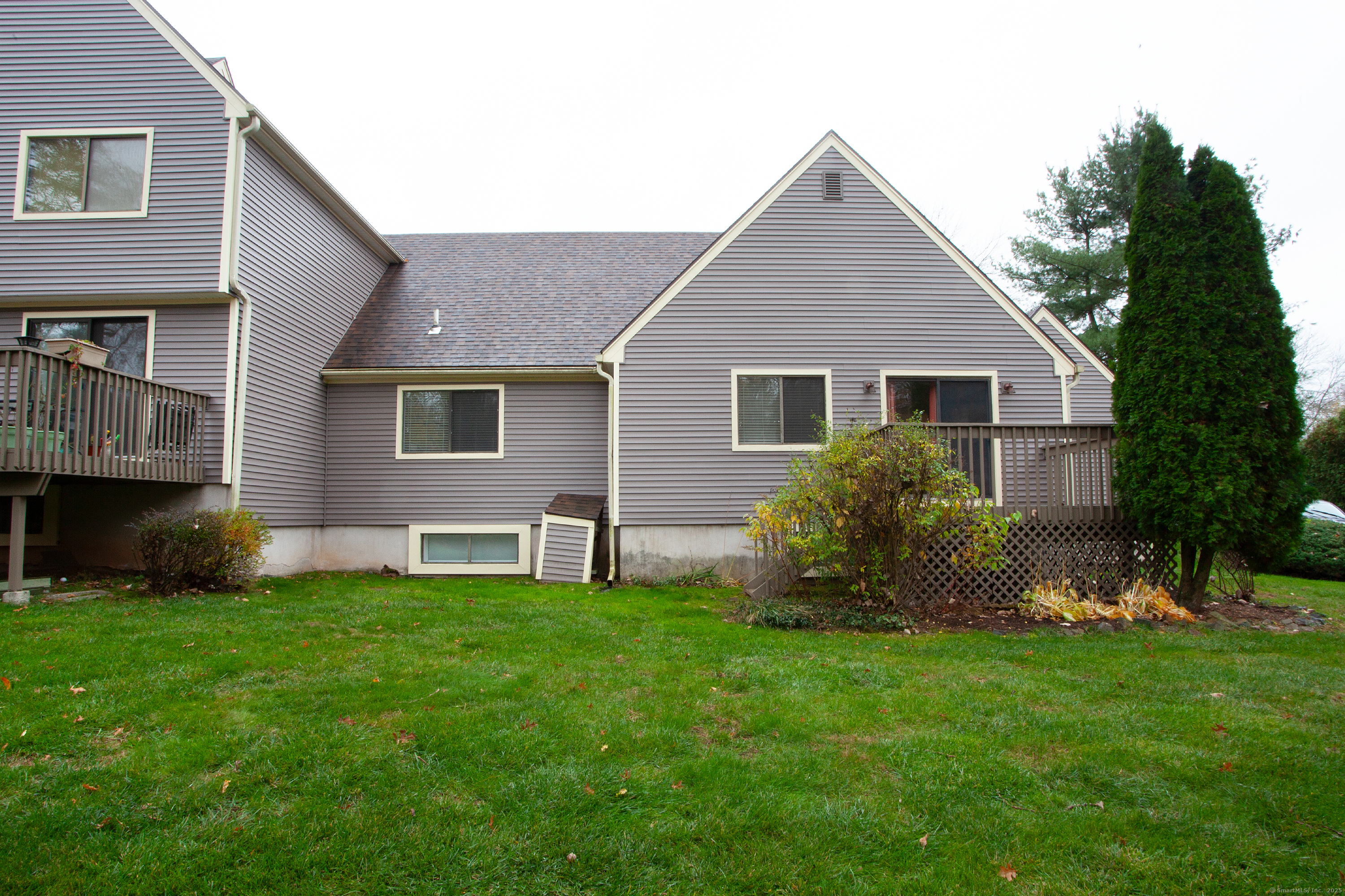 Rarely available ranch-style end unit at Governors Bridge! This beautifully maintained 2-bedroom condo offers the ease of single-level living with an attached garage and numerous updates throughout. The remodeled kitchen and bathrooms feature modern finishes and thoughtful design. Roof, siding, driveway, and sidewalk all replaced within the last few years! Enjoy an extra 1000 square feet of living space in the fully finished lower level, complete with two private rooms, bathroom a generous common area-perfect for a home office, gym, or play area. Step outside to your private deck overlooking a serene setting, ideal for relaxing or entertaining. Don't miss this opportunity to own one of the most desirable units in Governors Bridge, conveniently located near the heart of Tariffville and minutes from shops, dining, and outdoor recreation.