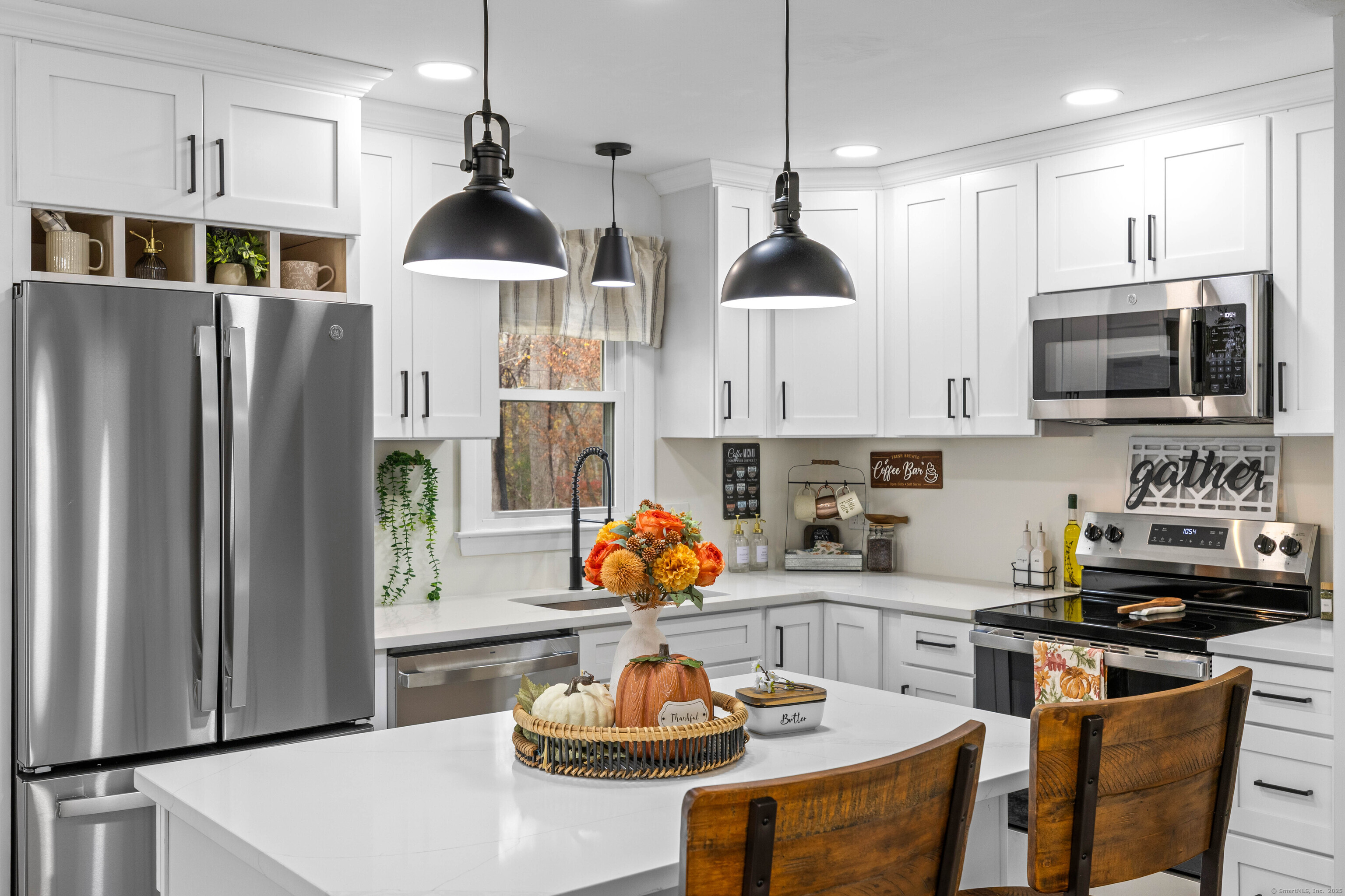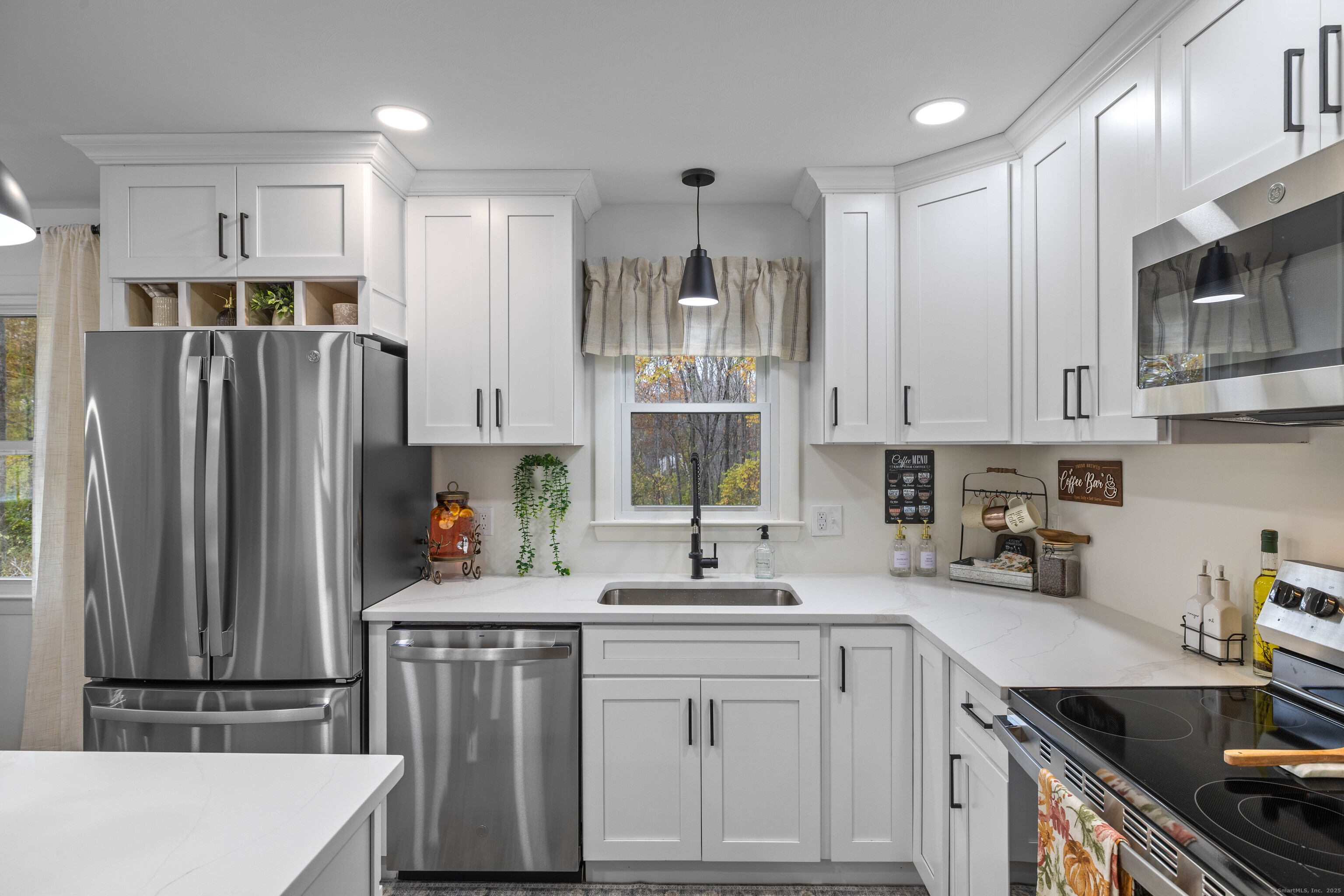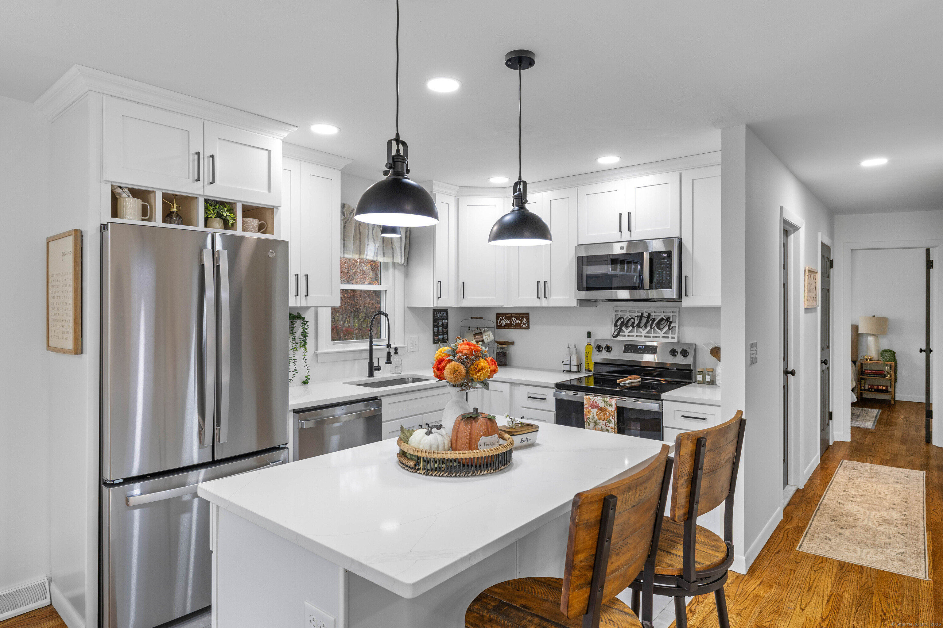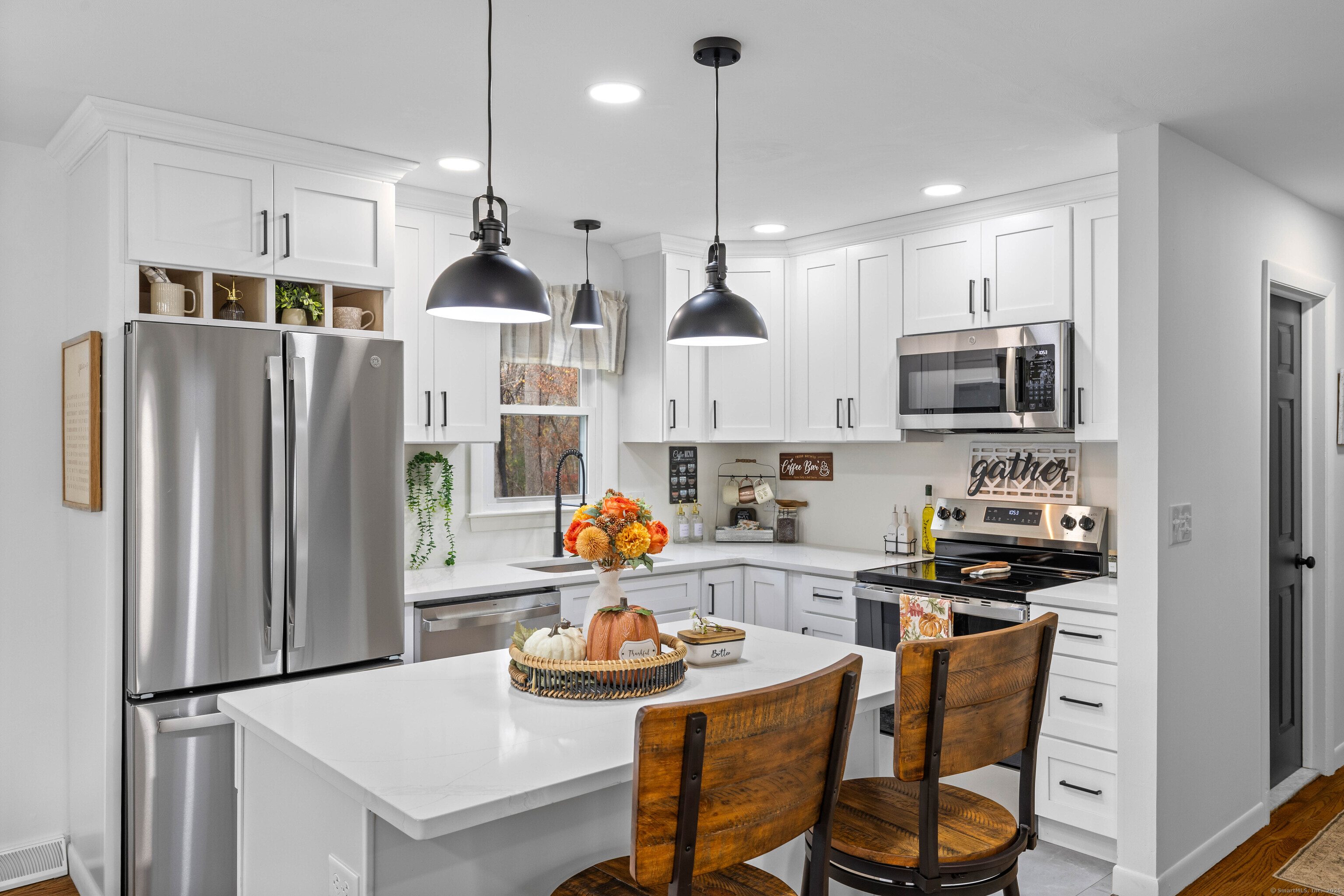 Welcome to 8 Roger Road in Griswold, a dead-end road in the Sunflower Capital of New England! Celebrate the season in a home that's been thoughtfully refreshed from top to bottom. With newer windows, siding, and a brand-new roof to be installed before closing, this residence offers peace of mind and polished curb appeal-just in time to hang your wreath and welcome guests this holiday season. This 3 bedroom, 1.5 bathroom home boasts a custom kitchen with quartz countertops, a new suite of stainless steel appliances and an island for added prep space & breakfast bar seating. Freshly refinished hardwood flooring flows through the main living and dining area with an open concept feel offering an abundance of natural light. The hardwood flooring continues into the three bedrooms including the primary which houses its own dedicated half bathroom. Other noteworthy updates to the property include the installation of a brand-new furnace before closing. All that's left to do is move in. This holiday season, whether you're trimming the tree, lighting the menorah, or simply enjoying the quiet magic of winter mornings, 8 Roger Road is ready to be the backdrop for your most cherished memories. Schedule a private showing today to see all that this lovely home has to offer. Home inspection, septic, termite, and radon inspections just completed and available for review upon request.