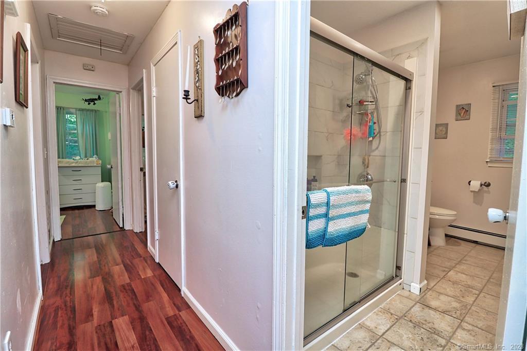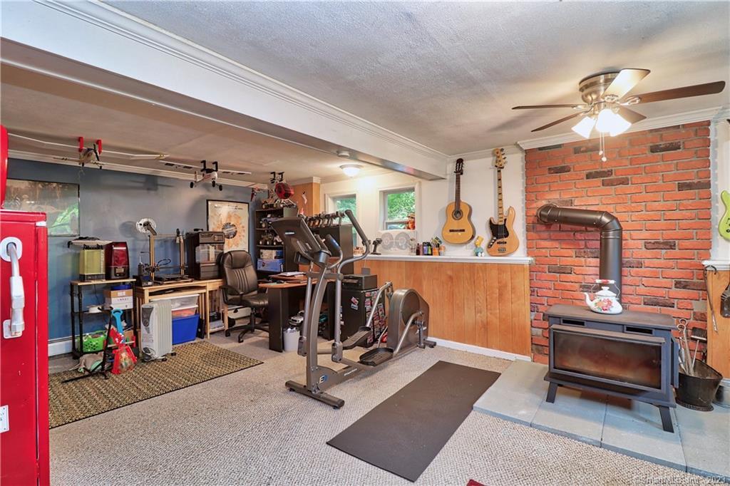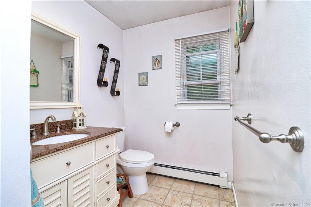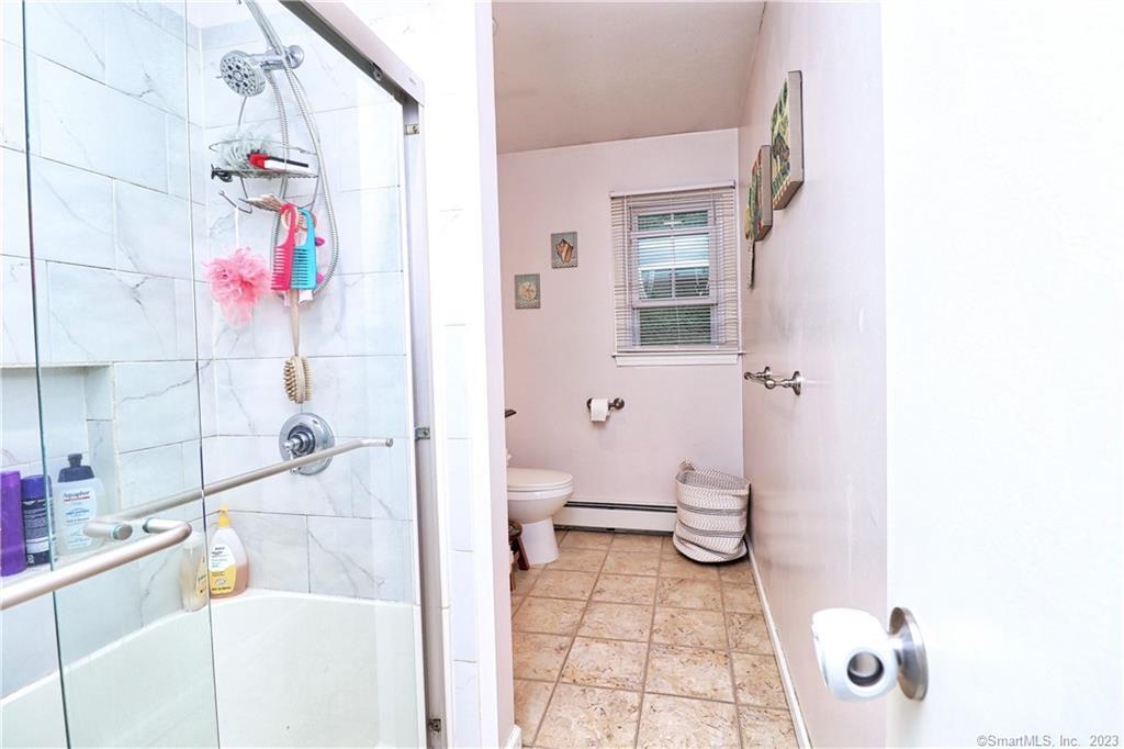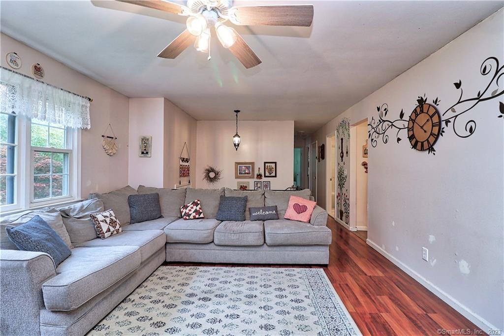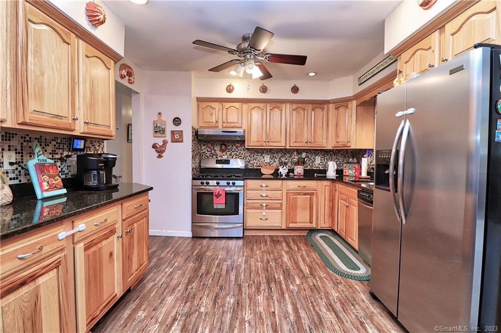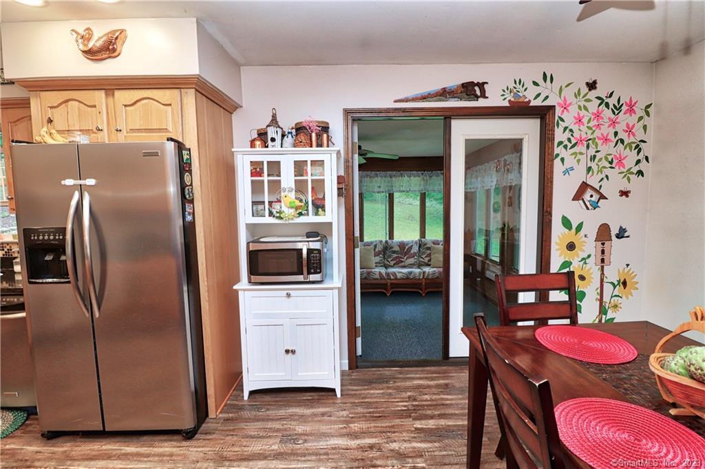 Welcome to 369 Strongtown Rd. This Southbury Raised Ranch sits atop a scenic lot of almost 2 acres, surrounded by majestic trees and offering the ultimate privacy! As you enter the foyer and walk up to the living room, you will see the attractive wood burning fireplace which will keep you warm and cozy in winter and lots of natural light streaming in through the picture window. Directly behind this room is the open concept kitchen and dining room, which has been very tastefully updated with oak cabinets, granite countertops, tile backsplash, two ceiling fans, and stainless-steel appliances. The kitchen is a chef's dream with so much work and counter space - there is room for your entire family to cook together and create meals and memories. French doors lead you directly from the dining room into a three-season enclosed porch with rustic wood walls, lots of windows and access to the back deck. The deck is perfect for picnics and relaxation! The main floor also includes an updated bathroom with tile surrounding the shower, glass doors and a tile floor. There are two bedrooms with good sized closets and the primary bedroom. The primary features a half bath and a walk-in closet. On the lower level you will find a finished, family/recreation room with a newer wood burning stove and laundry hook-ups in the unfinished utility room. The two-car garage rounds out the lower level. Outside, a red barn-style shed offers additional storage and is large enough to accommodat