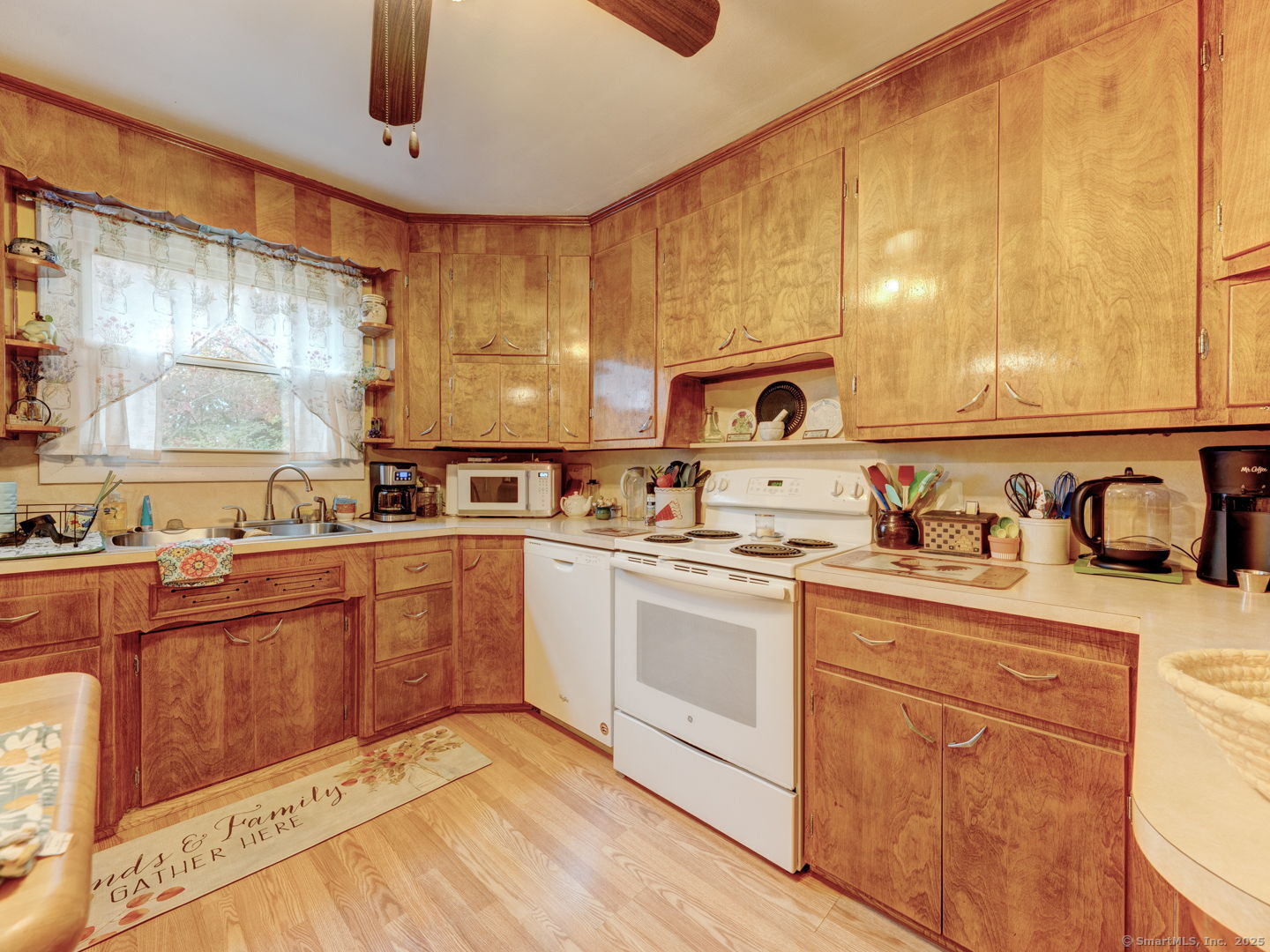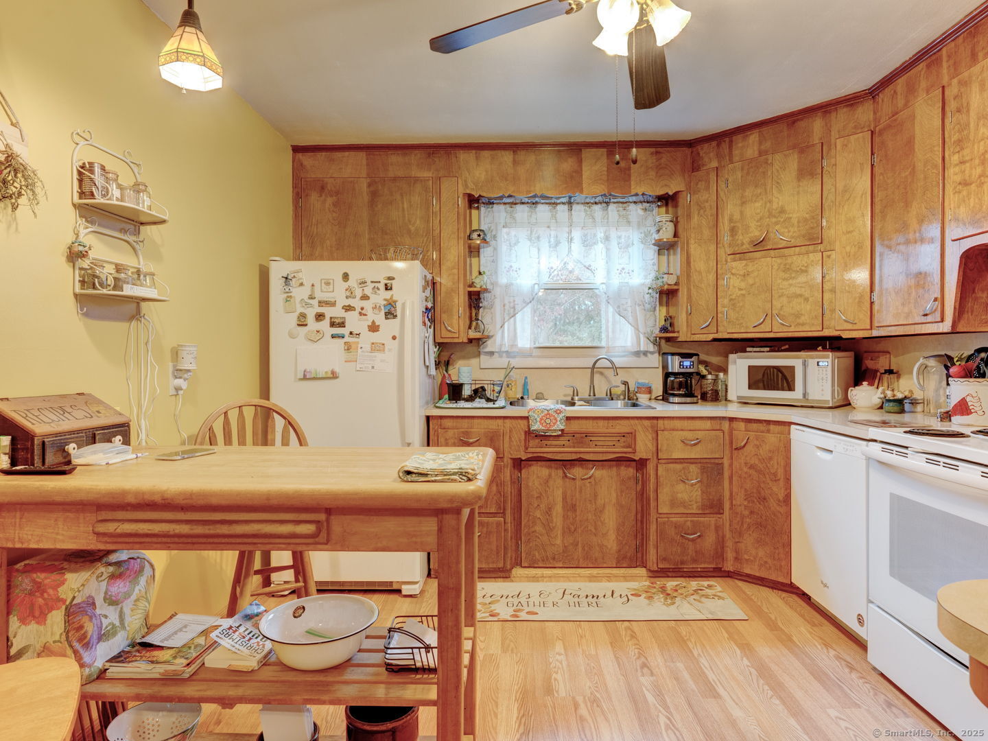 One-level living in Gales Ferry! Welcome to this 3 bedroom 2 bath ranch on a flat lot with a large heated porch. Almost 400 additional sq ft with the heated/insulated porch, formerly used as a knitting & quilting room. Original woodwork in the living area and in the kitchen, could be cleverly added to a retro design. Solid bones on this midcentury build, hardwoods, two driveways, large shed, vegetable garden space, petitioned basement for potentially more sq footage, garage under, all on a quiet cul-de-sac. This convenient location is 10 minutes to I-95, 10 minutes to Foxwoods, and a short drive to Mystic, Saybrook, and Westerly RI for fine dining, this home is in the middle of Southeastern CT, and close to all this area has to offer!