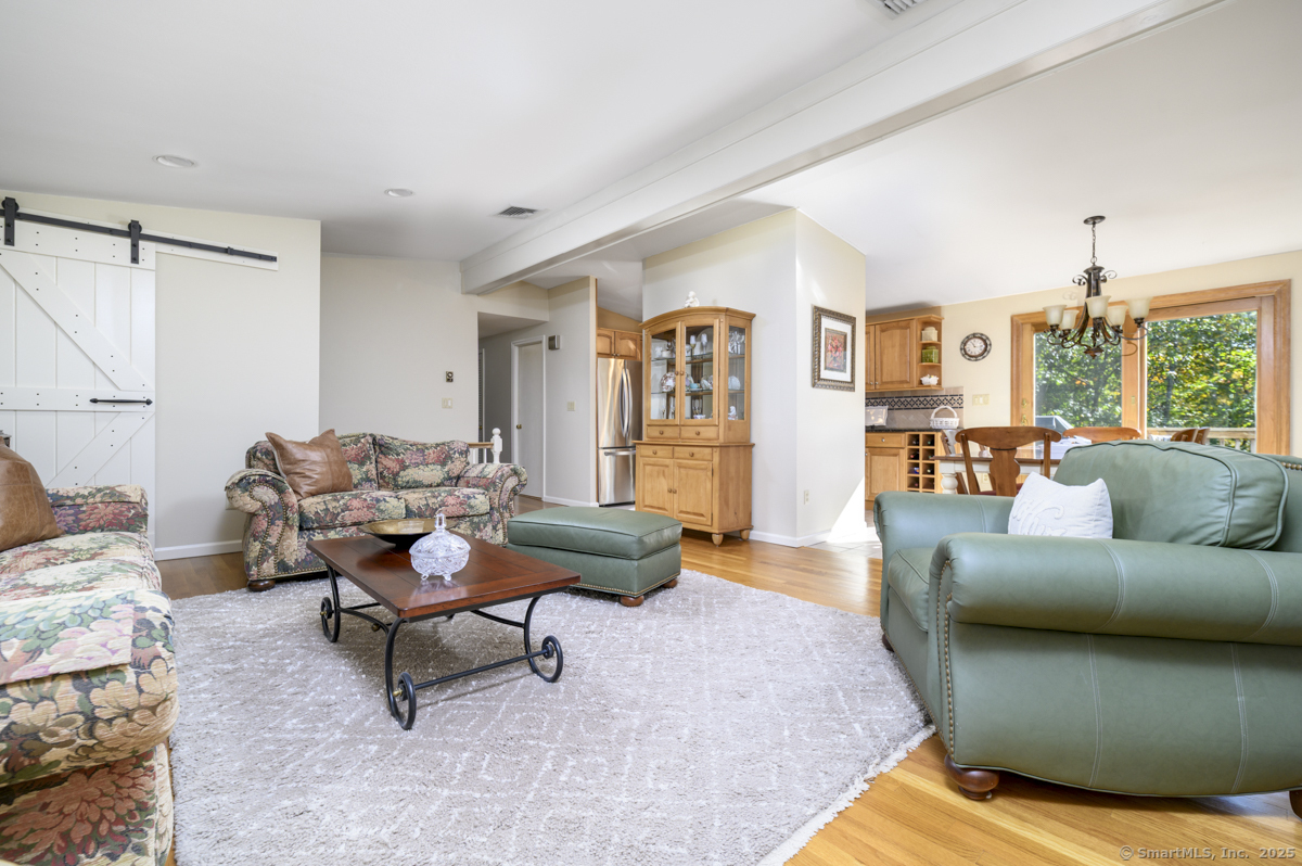 Charming Norwalk home on Rare oversized lot. Welcome to 36 Donohue Drive, an inviting, warm retreat, nestled back from the street. This thoughtfully maintained and move in ready 3-bedroom 1-1/2 bath raised ranch blends comfort and privacy, offering a rare combination of space, charm, and convenience in Norwalk's desirable Cranbury neighborhood. Step inside to find a cozy family room with a wood burning stove, wood floors and sliding doors that deliver plenty of natural light and convenient access to a large deck and the outdoors. On the opposite side is the laundry room with up-to-date washer and dryer and spacious 2-car garage with room for shelves, storage, and direct access into the house. Upstairs, three comfortable bedrooms offer plenty of natural light and closet space. The main bedroom features its own "en-suite" half-bathroom. A well-appointed kitchen with granite counter tops and stainless steel appliances leads to the dining area which flows into the living room with wood floors, and a fireplace, great for entertaining. A second deck just off the dining room enhances the home's natural flow between indoor comfort and outdoor relaxation. The home layout provides both functionality and flexibility, ideal for growing families, first-time buyers or anyone who appreciates a peaceful setting.