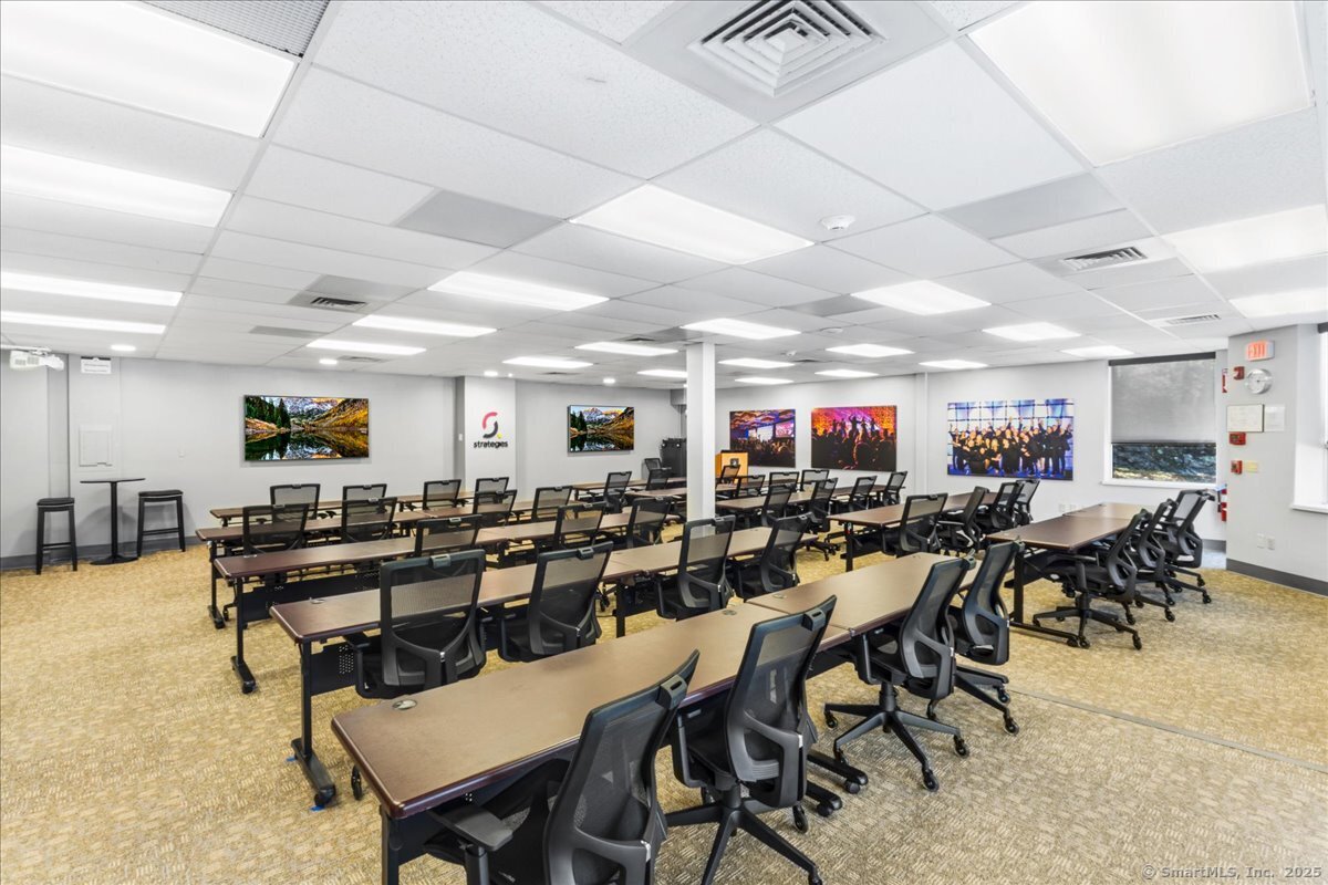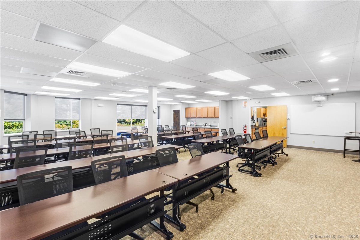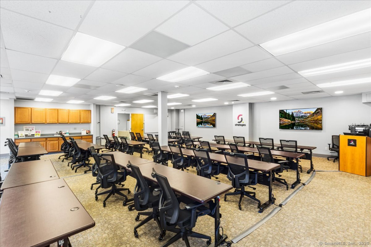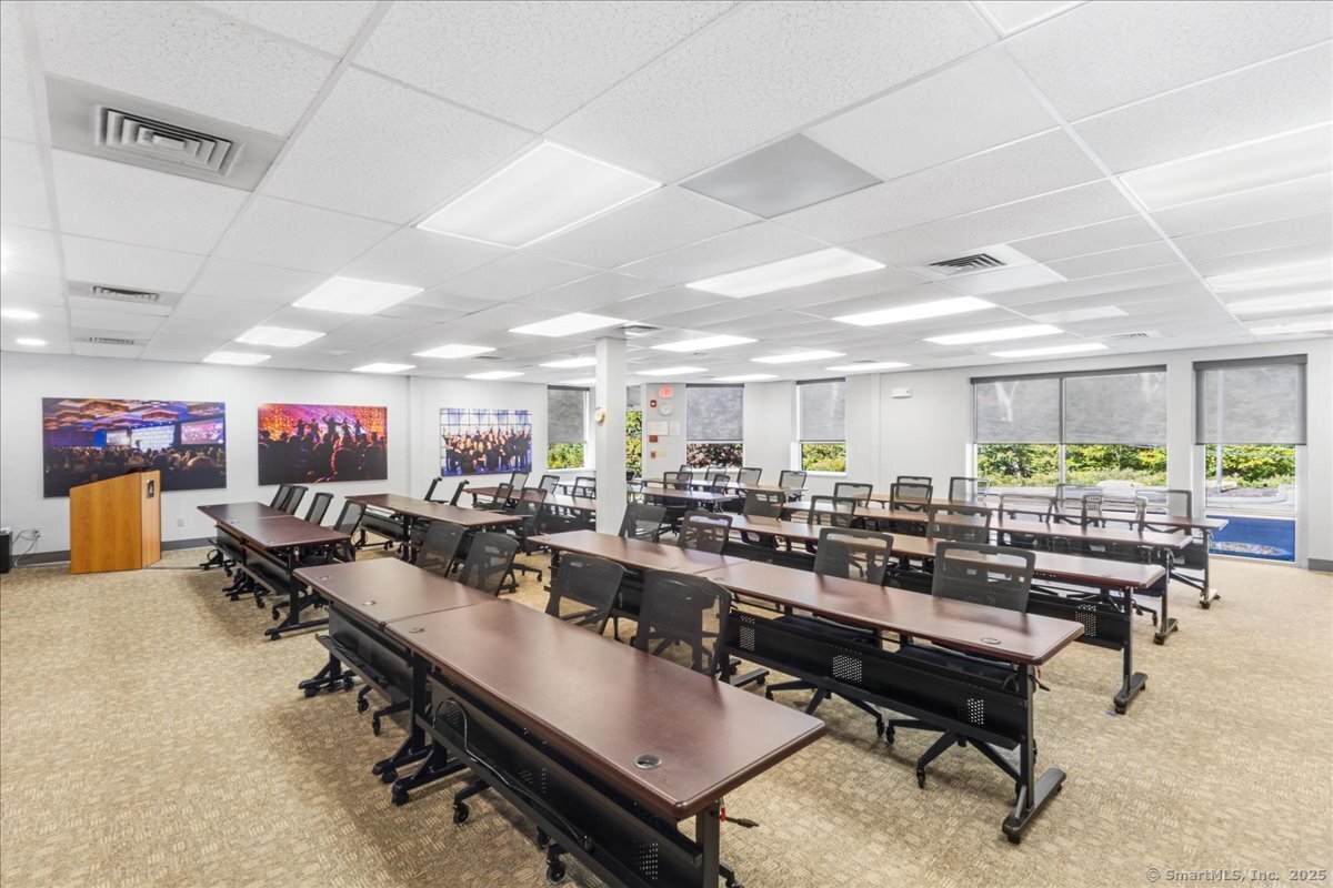 This 8,299 square foot professional office space at 55 Hatches Hill Road, Unit 1A, offers a flexible two-level layout ideal for a variety of business uses. Available as a sublease with ownership approval, the space features a well-designed floor plan that combines private offices, open work areas, and specialized spaces for meetings and training. The upper level includes nine private offices, a conference room, two private bathrooms, and a kitchenette area for food storage and staff convenience. The lower level offers a welcoming reception area, additional office and storage space, restrooms, and a large open room currently set up for conferences or classes with projectors, televisions, and tables. The suite provides an excellent balance of private and collaborative areas, with professional finishes and abundant natural light throughout. Conveniently located just off I-95 on the East Lyme and Old Lyme line, this property offers easy access to Route 9 and I-395, and is within close proximity to major employers such as Electric Boat, Pfizer, the Subase, and Mohegan Sun. The property includes ample on-site parking and can be subdivided to accommodate smaller space needs, making it an ideal choice for businesses seeking a modern, adaptable workspace in a prime location.