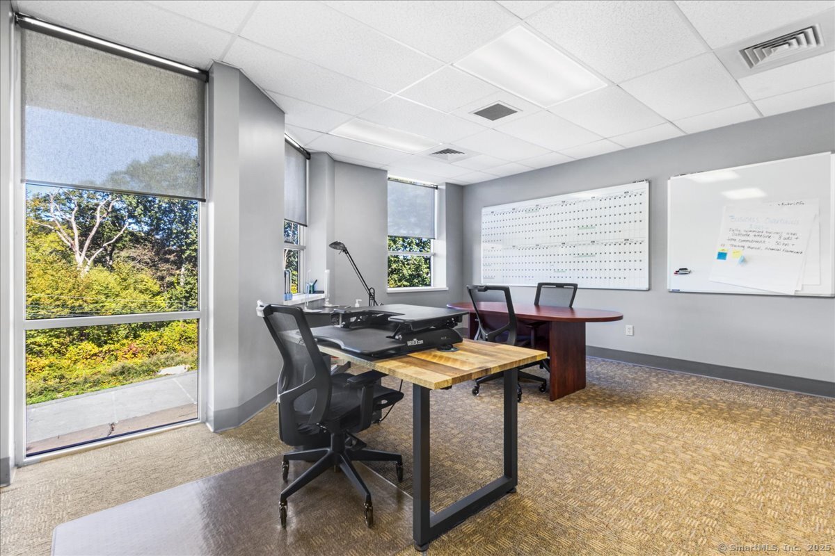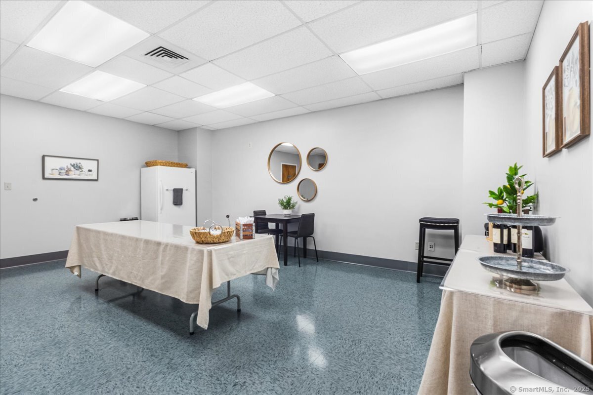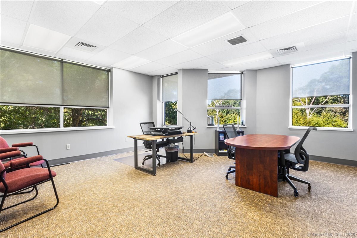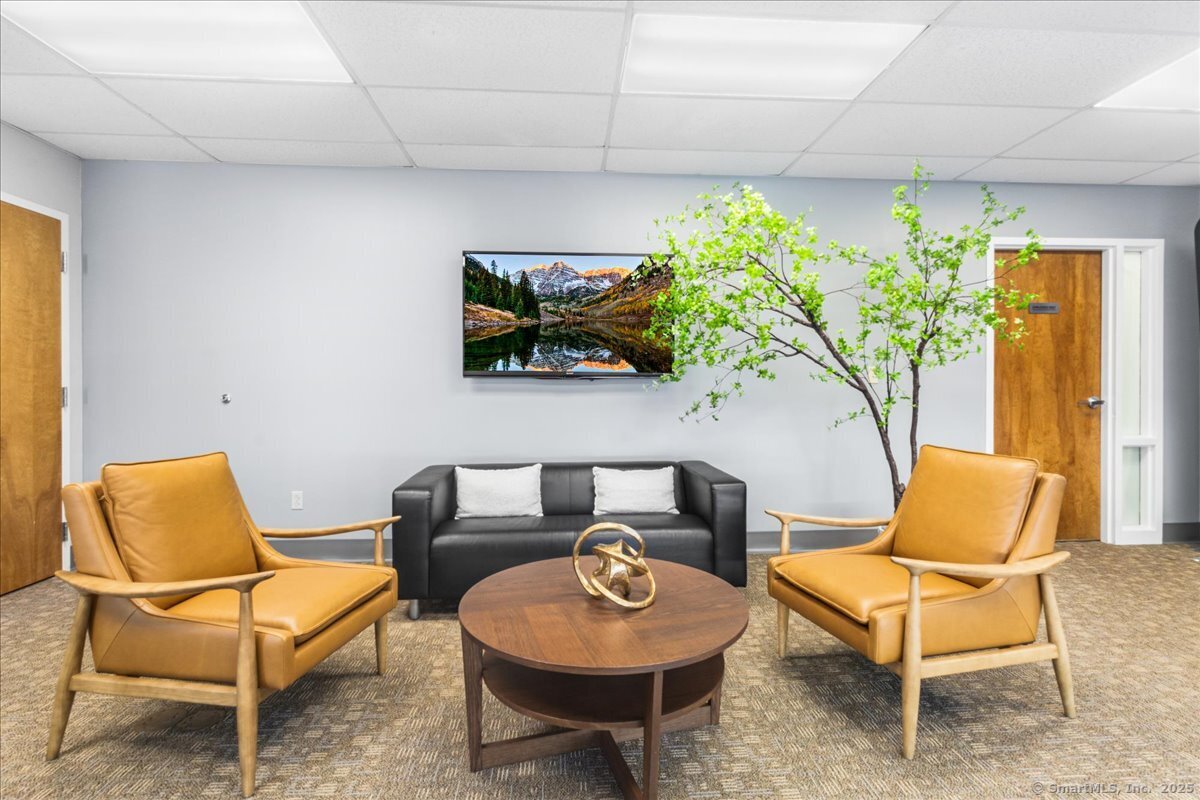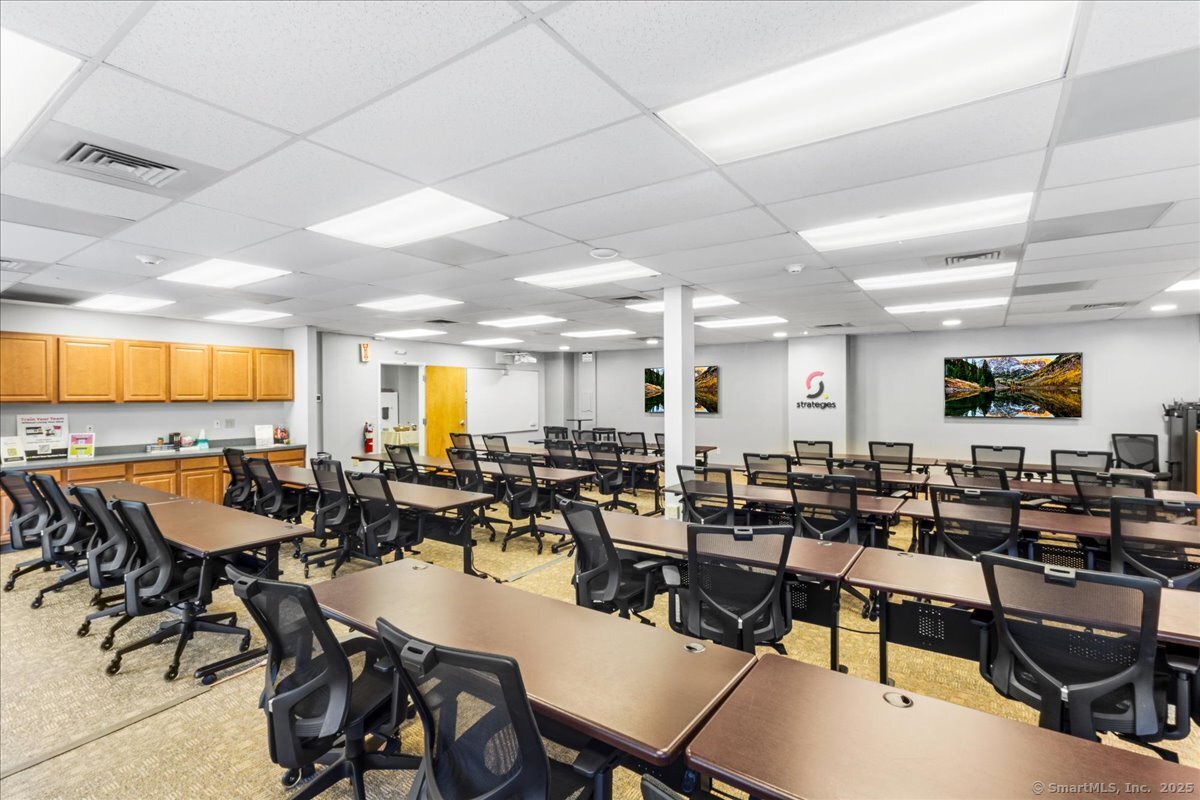 This 8,299 square foot professional office space at 55 Hatches Hill Road, Unit 1A, offers a flexible two-level layout ideal for a variety of business uses. Available as a sublease with ownership approval, the space features a well-designed floor plan that combines private offices, open work areas, and specialized spaces for meetings and training. The upper level includes nine private offices, a conference room, two private bathrooms, and a kitchenette area for food storage and staff convenience. The lower level offers a welcoming reception area, additional office and storage space, restrooms, and a large open room currently set up for conferences or classes with projectors, televisions, and tables. The suite provides an excellent balance of private and collaborative areas, with professional finishes and abundant natural light throughout. Conveniently located just off I-95 on the East Lyme and Old Lyme line, this property offers easy access to Route 9 and I-395, and is within close proximity to major employers such as Electric Boat, Pfizer, the Subase, and Mohegan Sun. The property includes ample on-site parking and can be subdivided to accommodate smaller space needs, making it an ideal choice for businesses seeking a modern, adaptable workspace in a prime location.