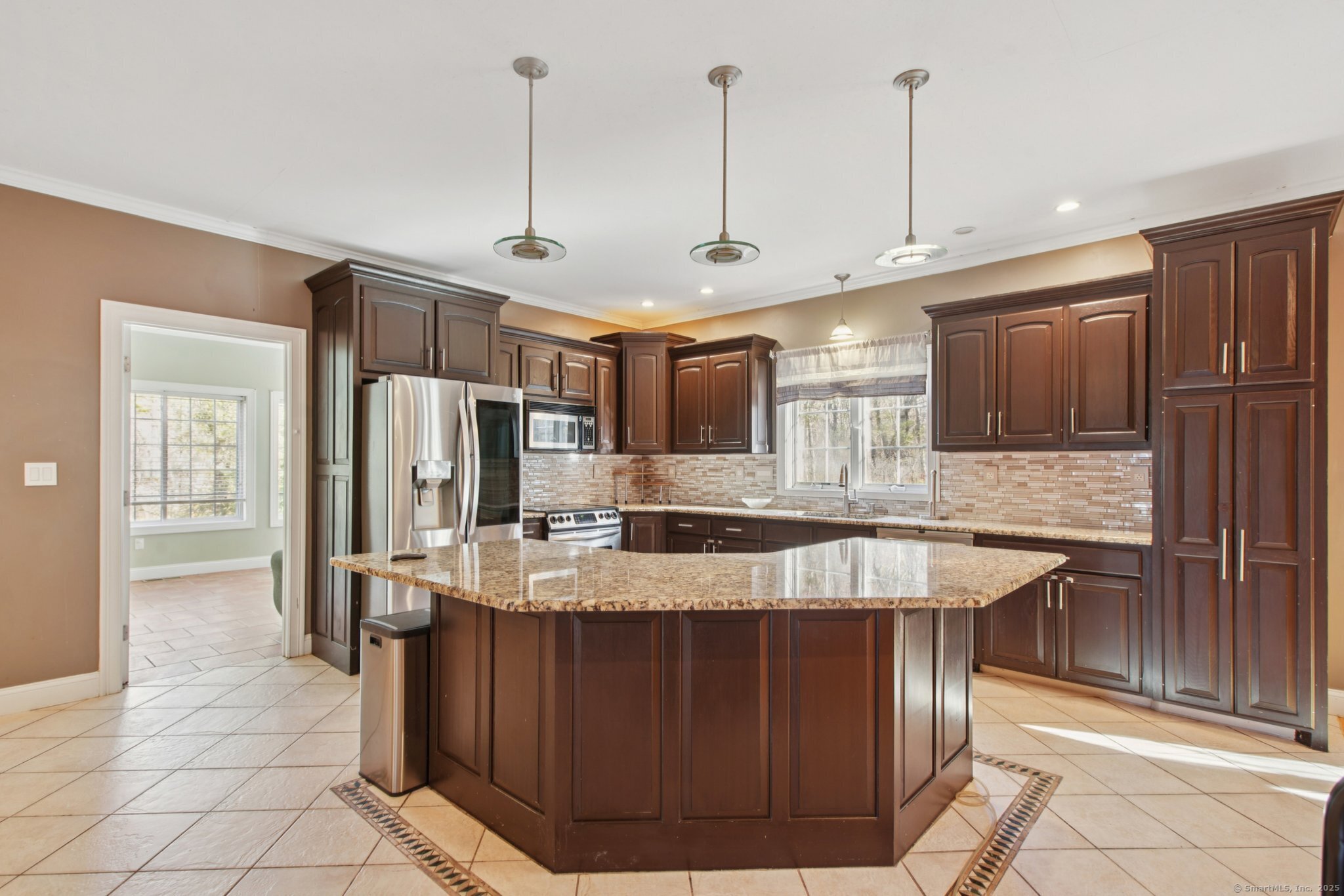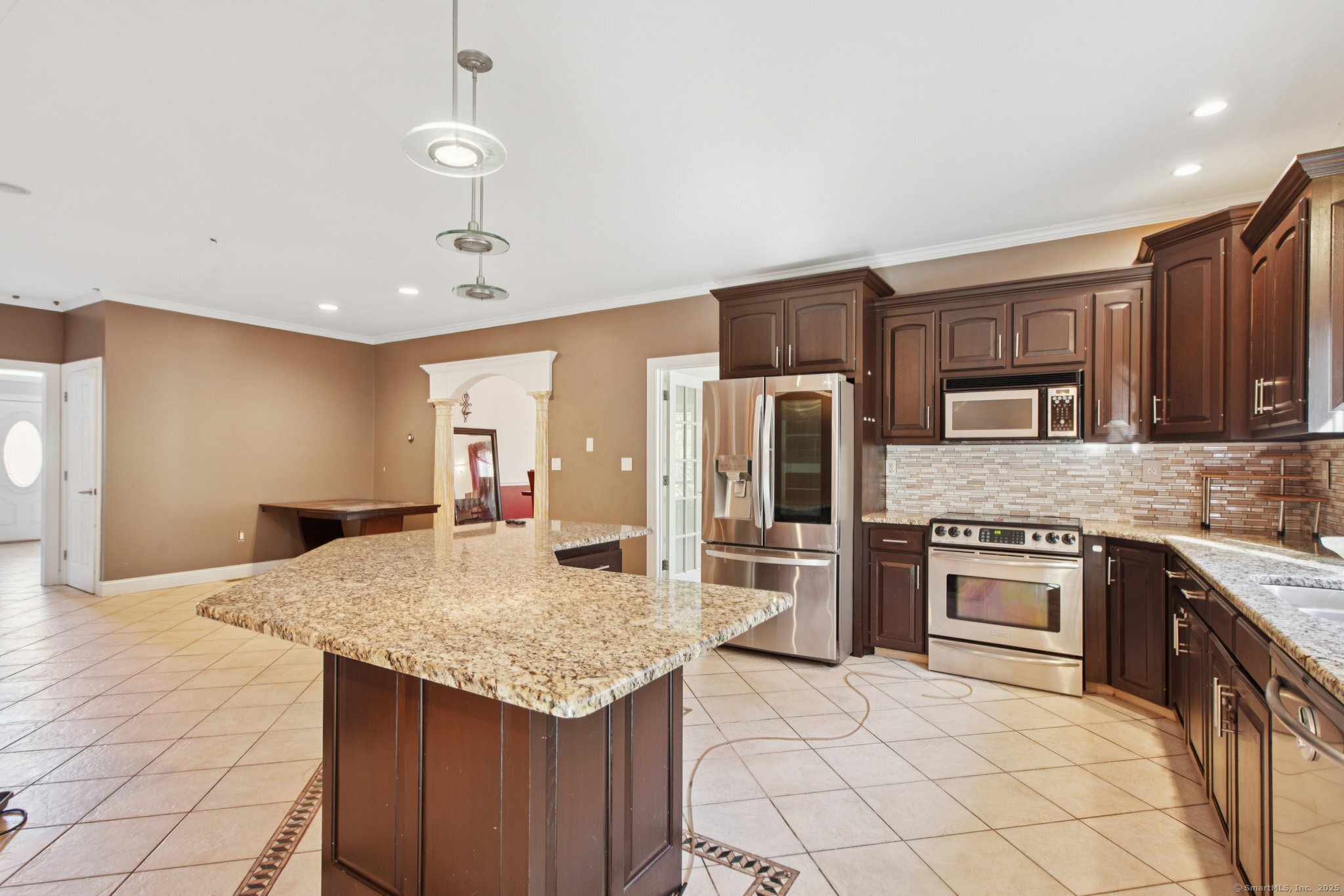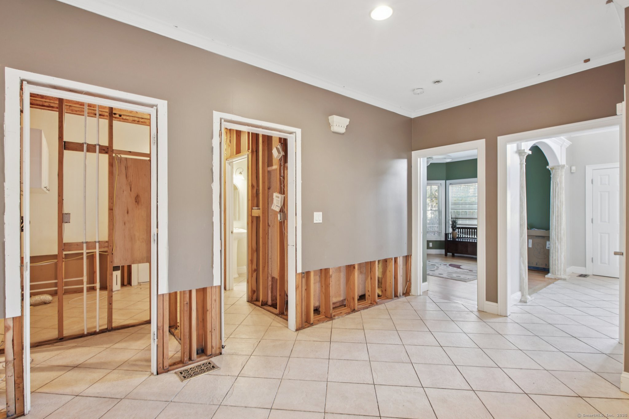 Spacious 5 Bedroom, 5 Bath Home with 4-Car Garage & In-Law Suite - Incredible Potential! This spectacular 5-bedroom, 5-bath home offers over 5,000 sq. ft. of living space and an impressive layout ready to be restored to its former elegance. The first floor features a massive open floor plan with a two-story foyer, office with Palladian window, formal living room (optional first-floor bedroom) with full bath, family room with fireplace and slider to the deck, a large eat-in kitchen with granite island and full appliances, four-season sunroom, and formal dining room. The second floor boasts a stunning primary suite with Brazilian cherry floors, tray ceiling, oversized walk-in closet, and luxurious tiled bath with cathedral ceiling, Jacuzzi, granite double vanity, and spacious shower with seating. The lower level (approx. 1,600 sq. ft.) includes a separate garage, full in-law apartment with kitchen, bedroom, bath, recreation room, and exercise area-ideal for extended family or guests. While the home offers exceptional space, design, and location near a golf course, Rt. 69, and major highways, it does require TLC, repairs, and updates due to deferred maintenance. A remarkable opportunity to restore and personalize this grand home-bring your vision and make it spectacular once again!