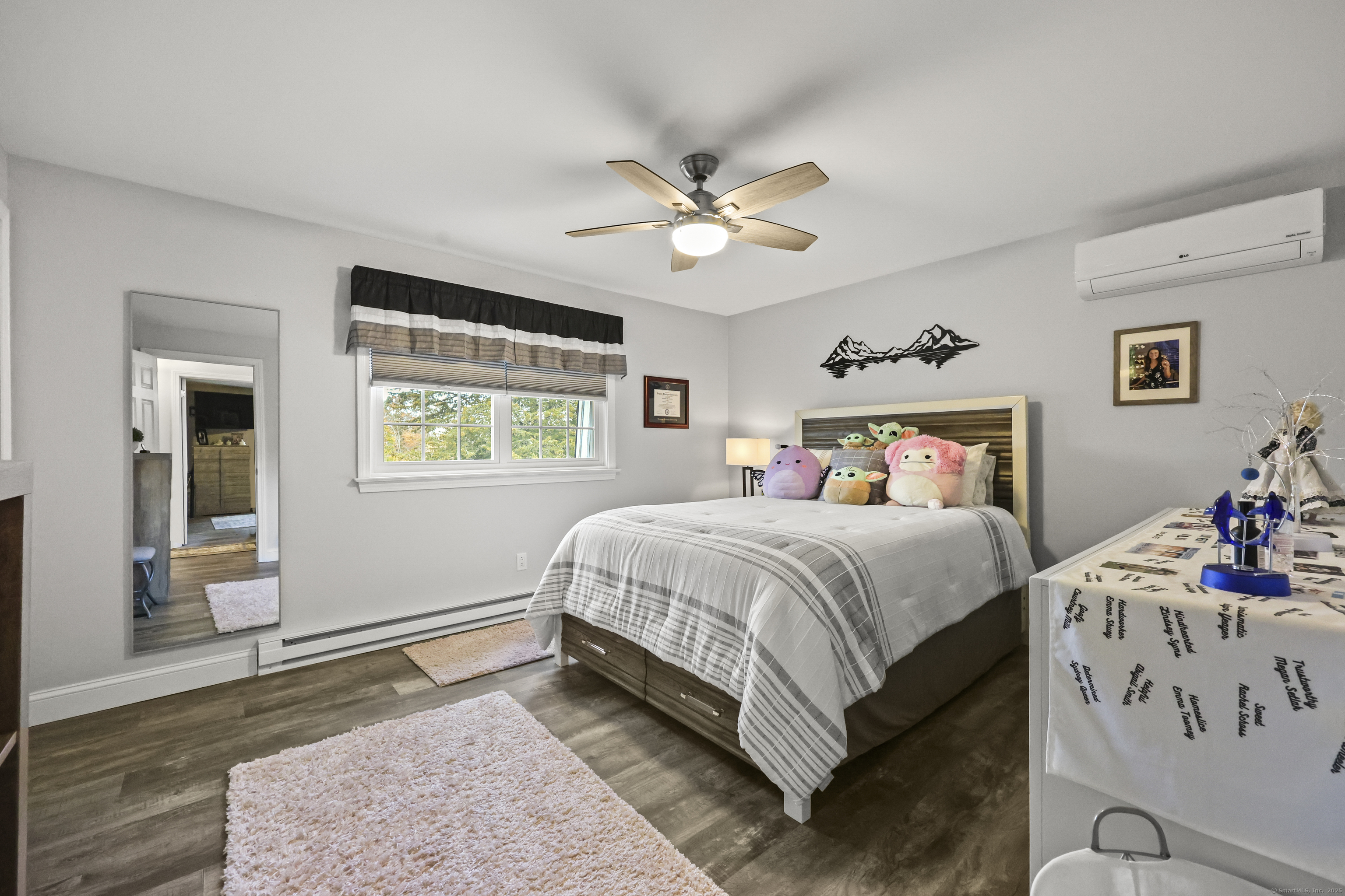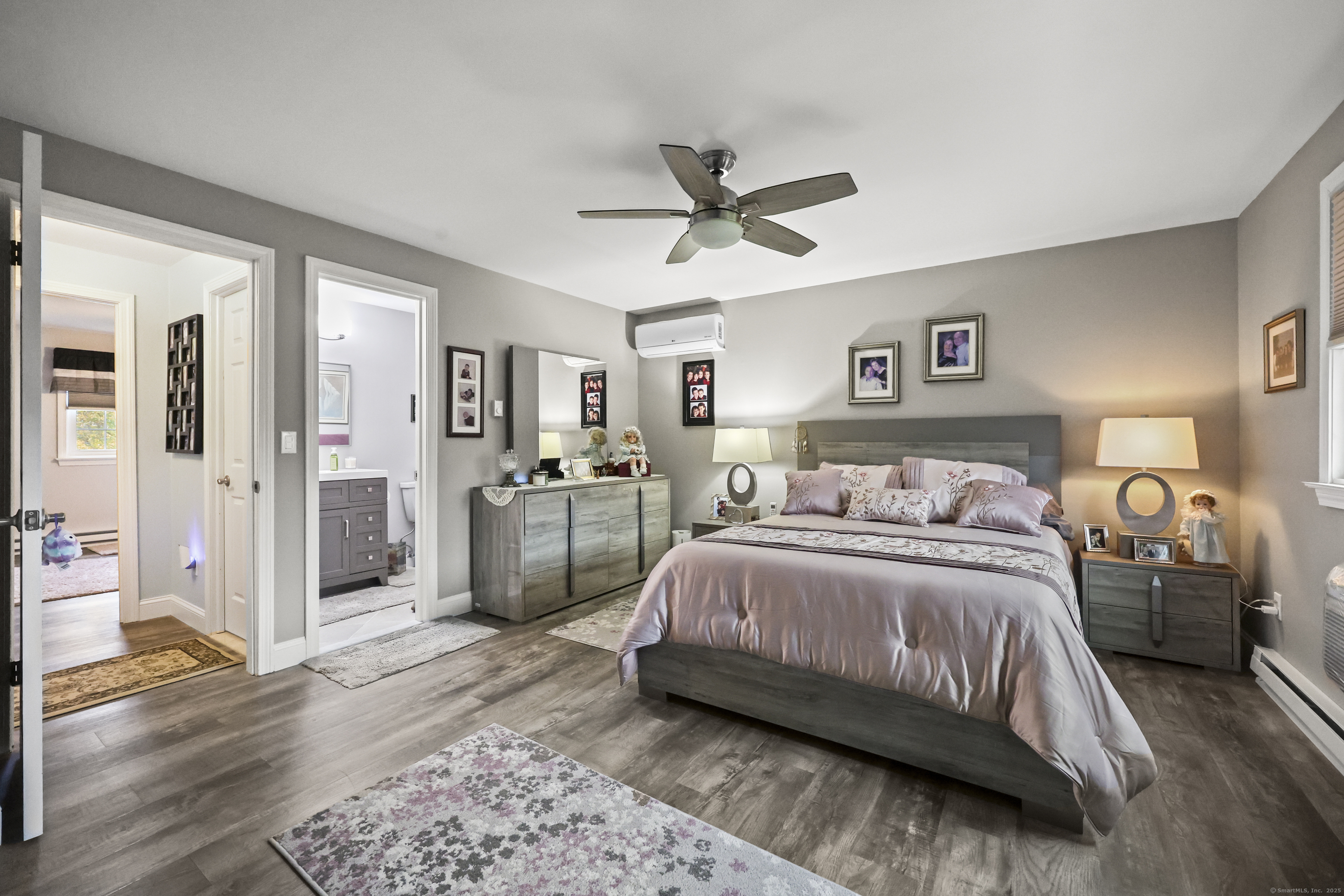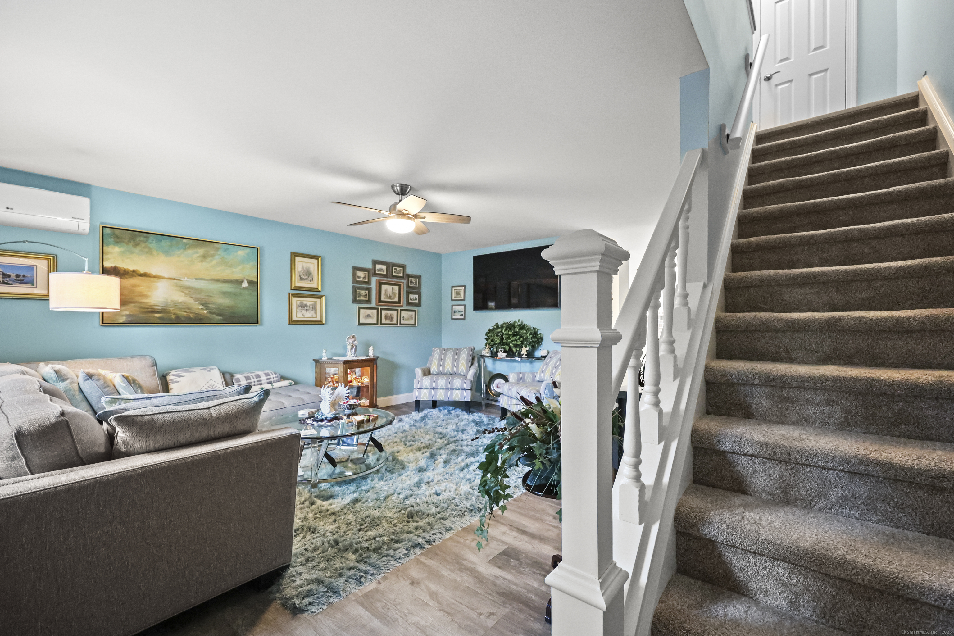 Stunning remodeled Rural Country Condo! Wonderful mix of quality finish materials w/craftsman completed renovations & upgrades as selected by current owner/occupant-THIS IS NOT A FLIP! The full interior space of this 1116 SF-2BR-1.5 Bath unit has been the subject of remodeling! Improvements include complete interior wall, ceiling, trim/door paint, all new flooring, new lighting fixtures/ceiling fans, rocker lighting switches/covers, raised panel doors, popcorn ceilings to flat ceiling finish, new thermo-pane windows, 4 Mini-Split Heat/AC units added! PLUS FULLY renovated custom Wren custom kitchen w/shaker styled cabinets, soft close drawers, swivel lower shelving, custom pulls/knobs, full tile backsplash, quartz countertops, & to convey w/full complement of Whirlpool stainless steel finish appliances! Dining area w/built in dry bar-serving station with sliders to freshly stained deck & newly added ground level patio! Two second floor remodeled bedrooms with closets organizers, overhead ceiling fans, new flooring. PLUS, a fully remodeled bath & half offering new fixtures, custom vanity, & a tile surround walk-in 5' foot shower w/sliding glass door panels! The lower level of this unit offers an additional 238 SF of finished living area w/Mini-Split Heat/AC plus spacious laundry room/storage area w/folding counter & cabinet storage! Pedestal set Washer/Dryer to convey! Convenient to all local shopping and services! EZ commute to Hartford, Manchester, Willimantic, ECSU, & UCONN!