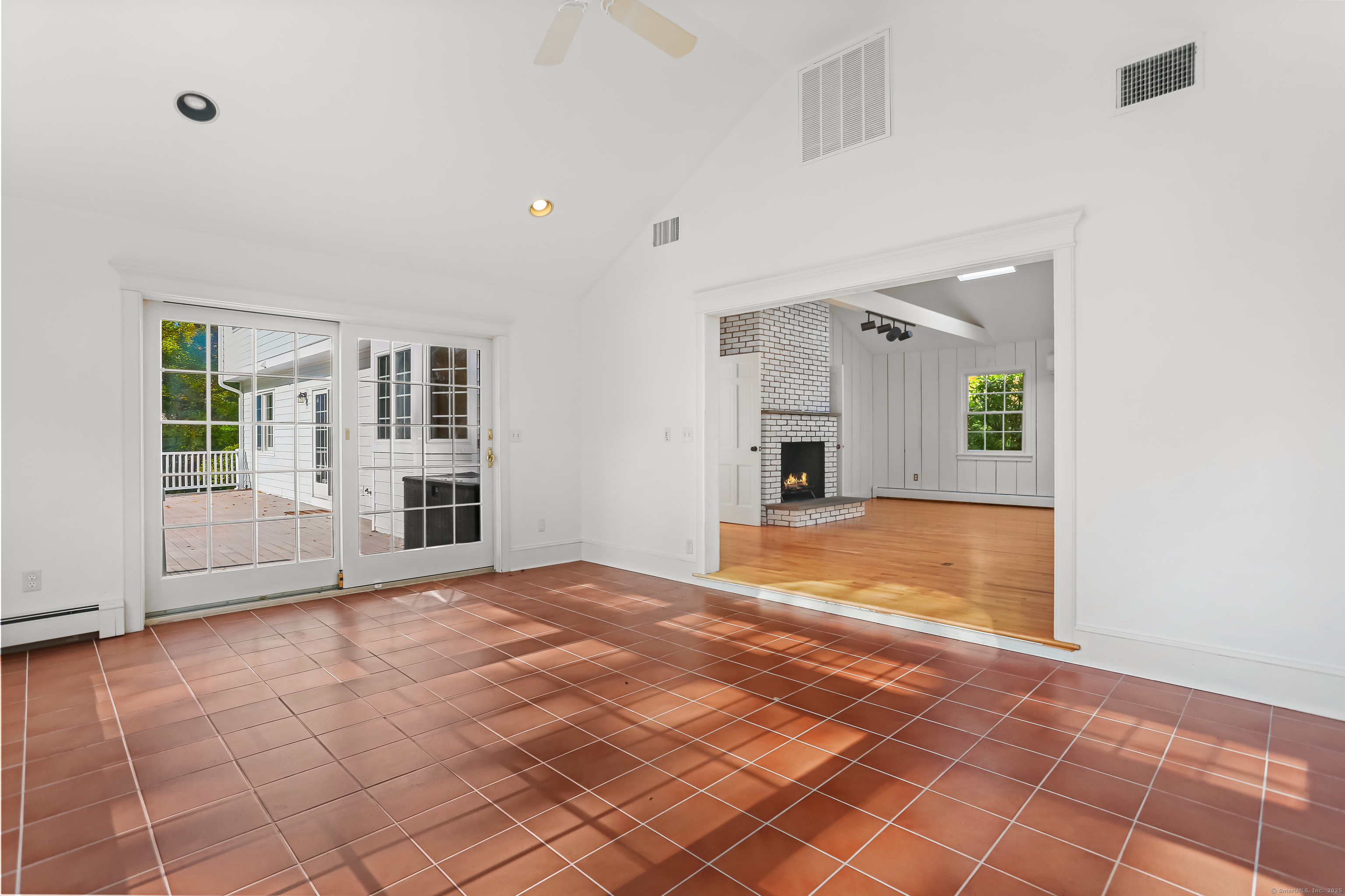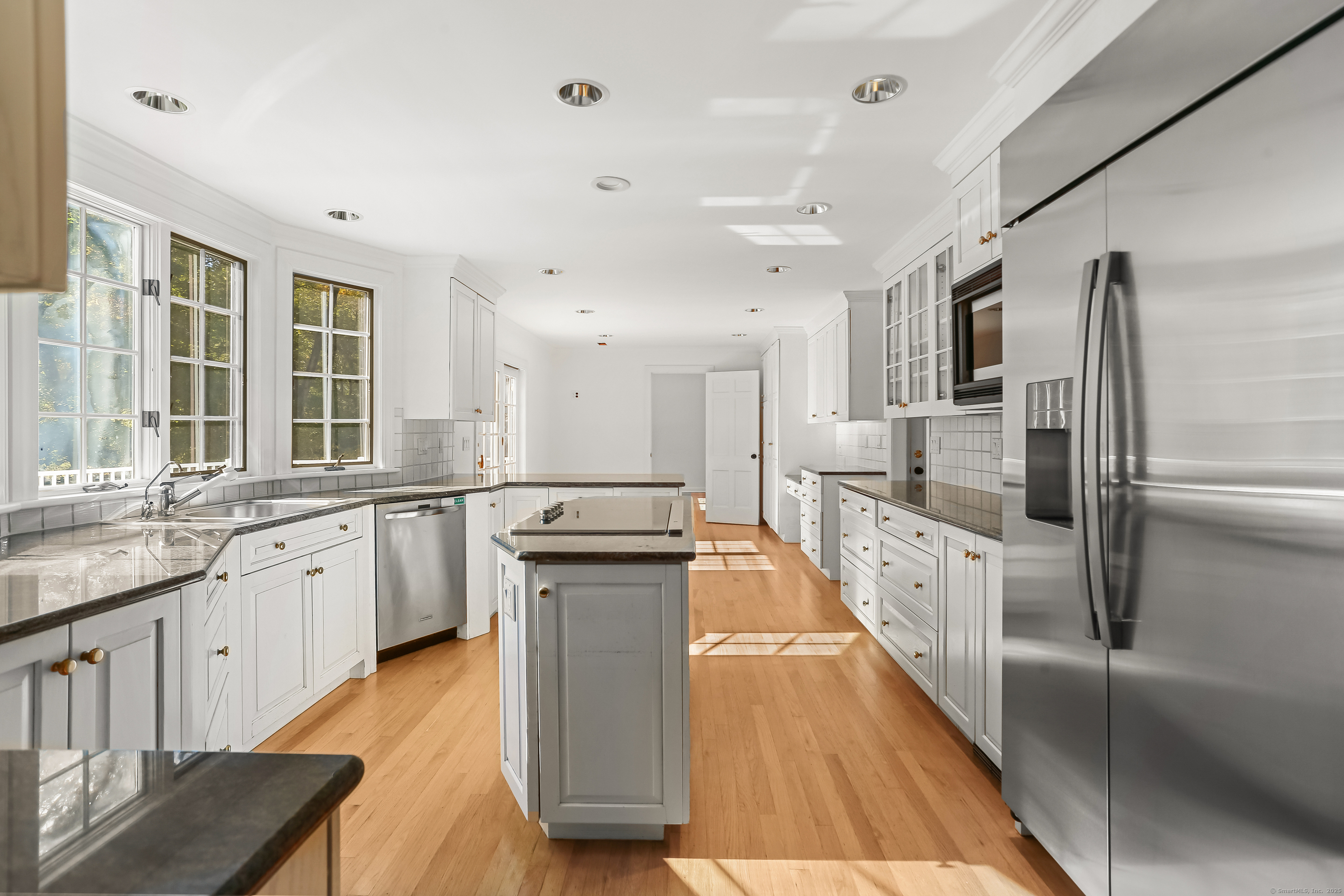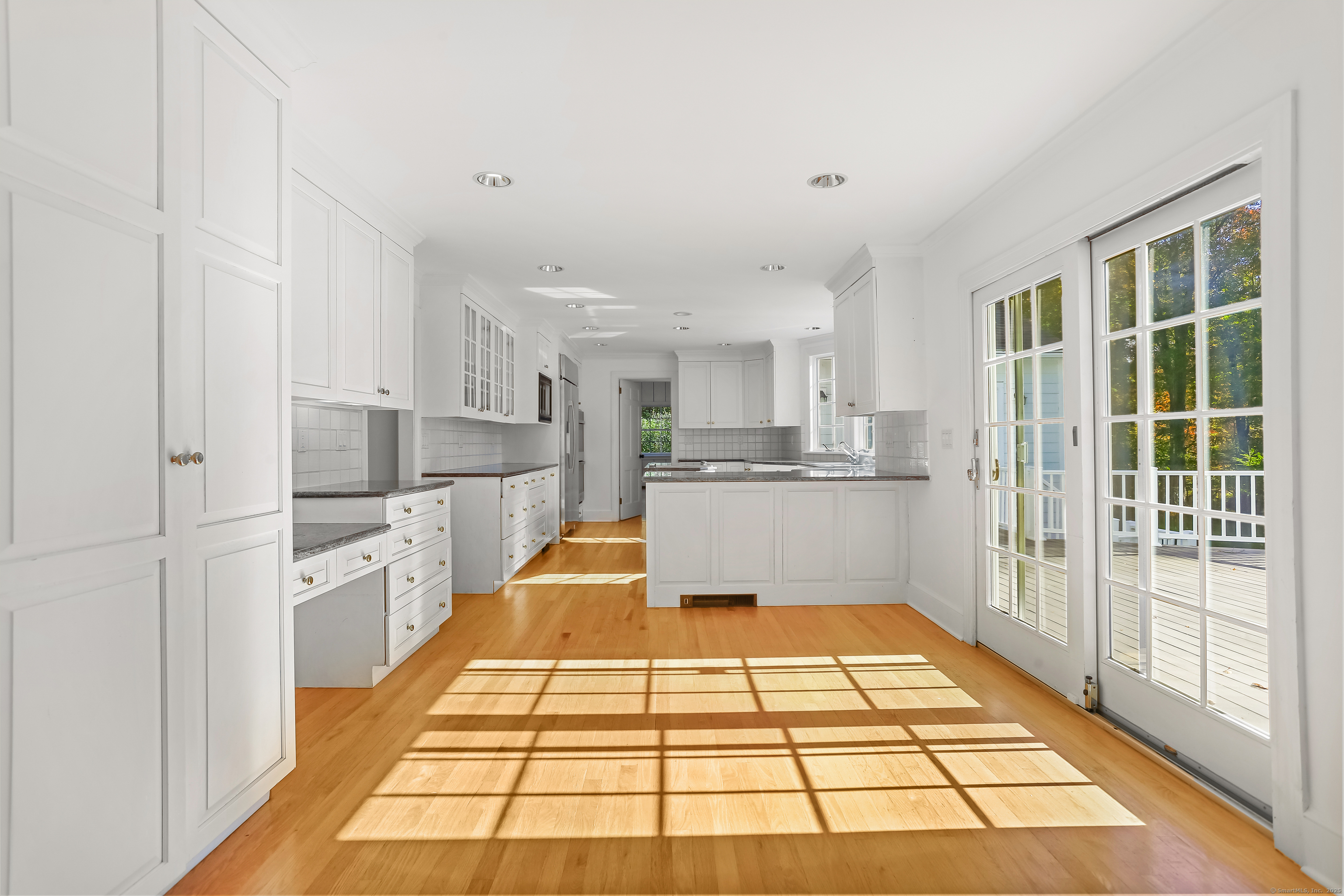 Rental - Yearly or Flexible Nestled in the sought-after Greens Farms neighborhood, this home offers the perfect blend of privacy, comfort, and convenience on a private 2-acre property.Enjoy easy access to the Greens Farms train station, beaches, schools, and all town amenities.Freshly repainted throughout and featuring newly refinished hardwood floors, the home feels bright, clean, and move-in ready.Inside, you'll find four spacious bedrooms, including a sun-filled primary suite with a walk-in closet and private bath.The eat-in kitchen boasts granite countertops, stainless steel appliances, and a generous dining area that opens to an oversized deck-perfect for entertaining or outdoor dining.A formal dining room adds elegance for gatherings, while the family room impresses with exposed beams, a wood-burning fireplace, and vaulted ceilings.The sunroom, with its soaring Palladian windows, offers a light-filled space for relaxing or working from home.Additional features include an upper-level laundry room and a partially finished lower level with ample storage space and walkout access to the backyard.A rare opportunity to enjoy the best of Greens Farms living-privacy, space, and timeless style-all in a prime Westport location.