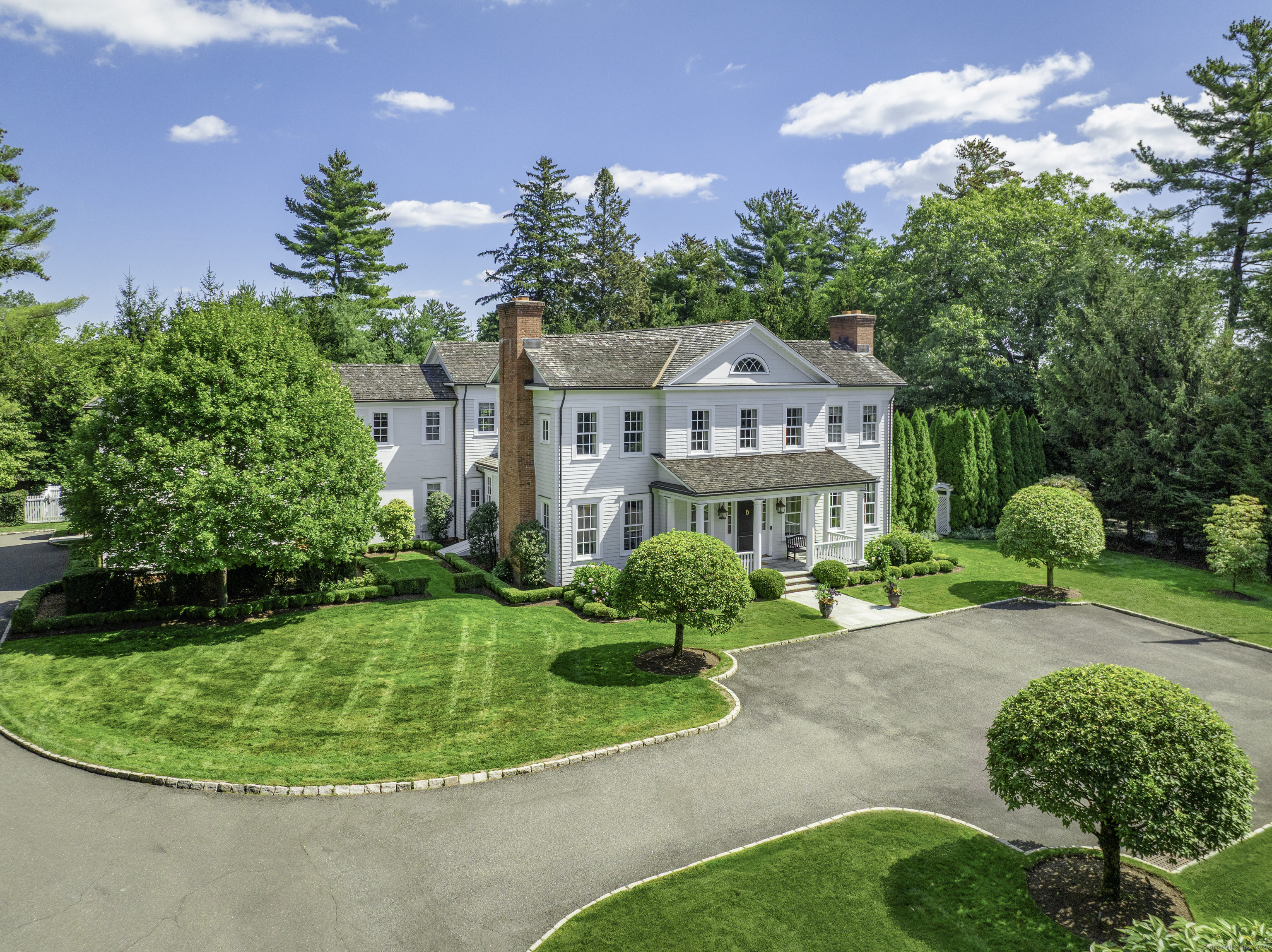 Experience the pinnacle of sophisticated living in this extraordinary estate by renowned builder Kaali-Nagy, perfectly situated within walking distance to the village, train, and nature center. The residence showcases impeccable craftsmanship throughout, defined by extensive custom moldings, intricate wainscoting, and an effortless flow designed for both grand entertaining and intimate daily life. At the heart of the home, a gourmet chef's kitchen features a sun-drenched breakfast room and a butler's pantry, with French doors opening to one of three private terraces for seamless indoor-outdoor transitions. Designed to elevate everyday living, the home also boasts a fully equipped private home gym, an inviting billiards room and media area, perfect for relaxed gatherings.The private property is equally impressive, boasting a spectacular 20 x 40 heated gunite pool surrounded by professionally designed, mature landscaping that creates a serene and secluded outdoor retreat-ideal for summer entertaining or peaceful relaxation. This thoughtfully designed floor plan includes five spacious ensuite bedrooms, each boasting its own walk-in closet, ensuring unparalleled comfort for family and guests alike. Complete with the modern convenience of a private elevator serving the home's multiple levels, this property offers a rare blend of timeless architectural detail, exceptional amenities, and a premier "walk-to-everything" location.