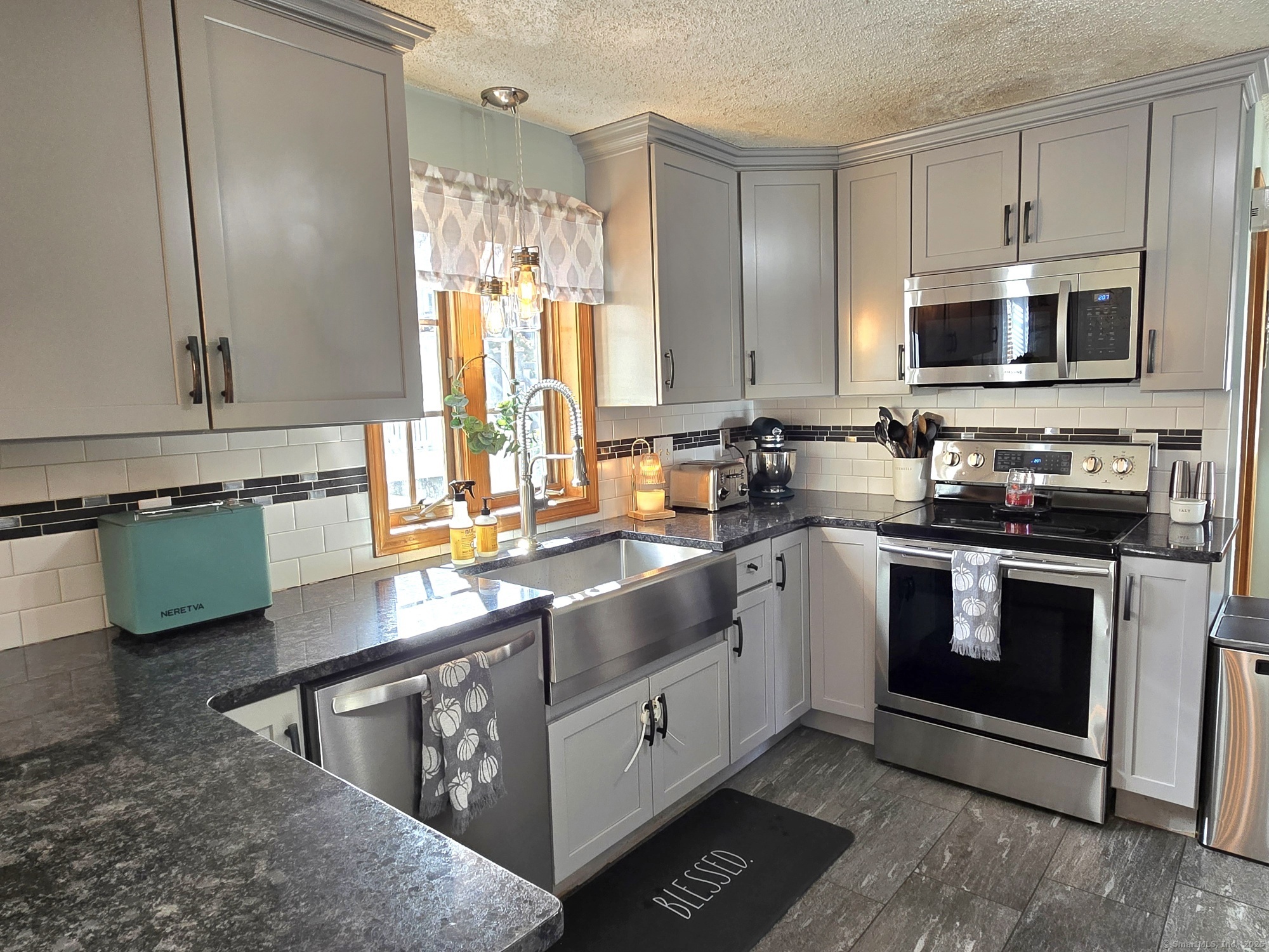 Welcome Home! This beautifully updated 3-bedroom, 1.5 bath Colonial, built in 1993, is perfectly located in Plainville near highways, shopping, and parks. Step inside to find a freshly remodeled interior featuring modern finishes and a bright, inviting layout. Kitchen has granite counters and new stainless steel appliances. The home offers a partially finished heated lower level currently being used as a 4th bedroom - ideal for guests, a home office, or extra living space. Recent updates include a new roof (2025),electric car charger (2025)and 200-amp electrical service(2025) for peace of mind. Enjoy your private backyard oasis with an above-ground heated pool, hot tub (2024), and outdoor shower perfect for relaxing or entertaining. Move-in ready and full of charm - this one checks all the boxes!