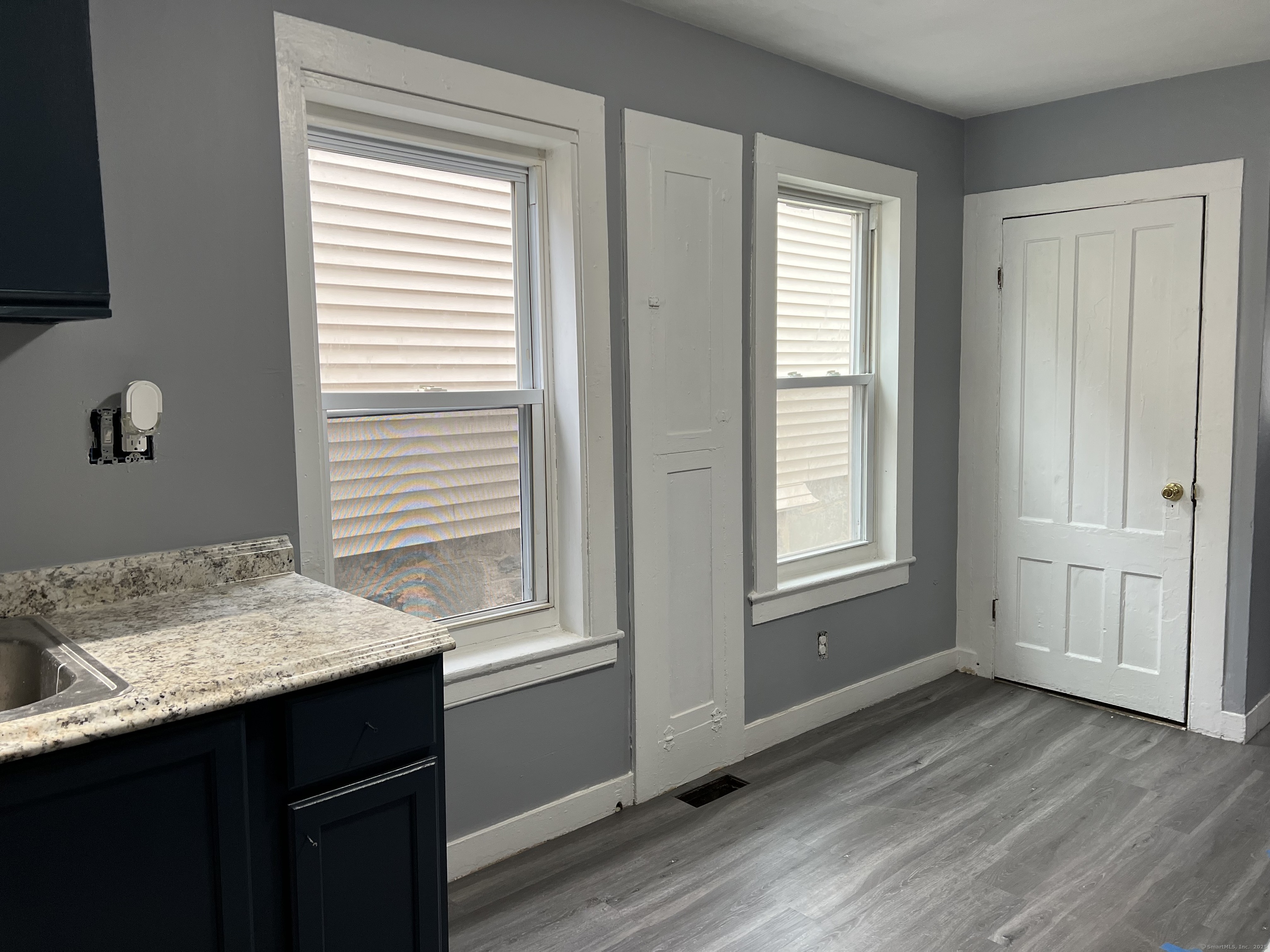 First Floor, three bedroom apartment. In-town location, eat-in kitchen, laundry room and off street parking. Pets considered. Background and credit check required. First month and two months security.