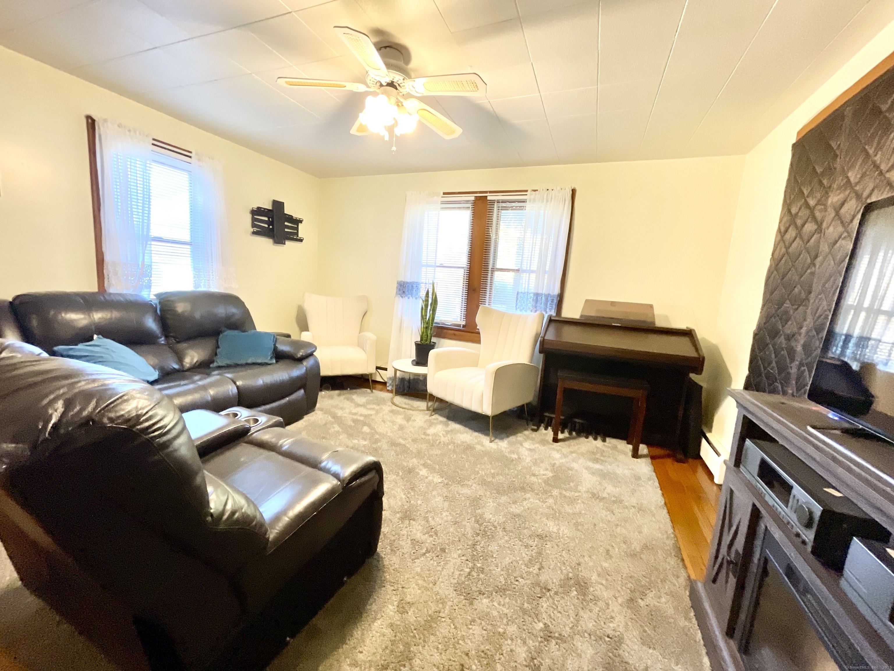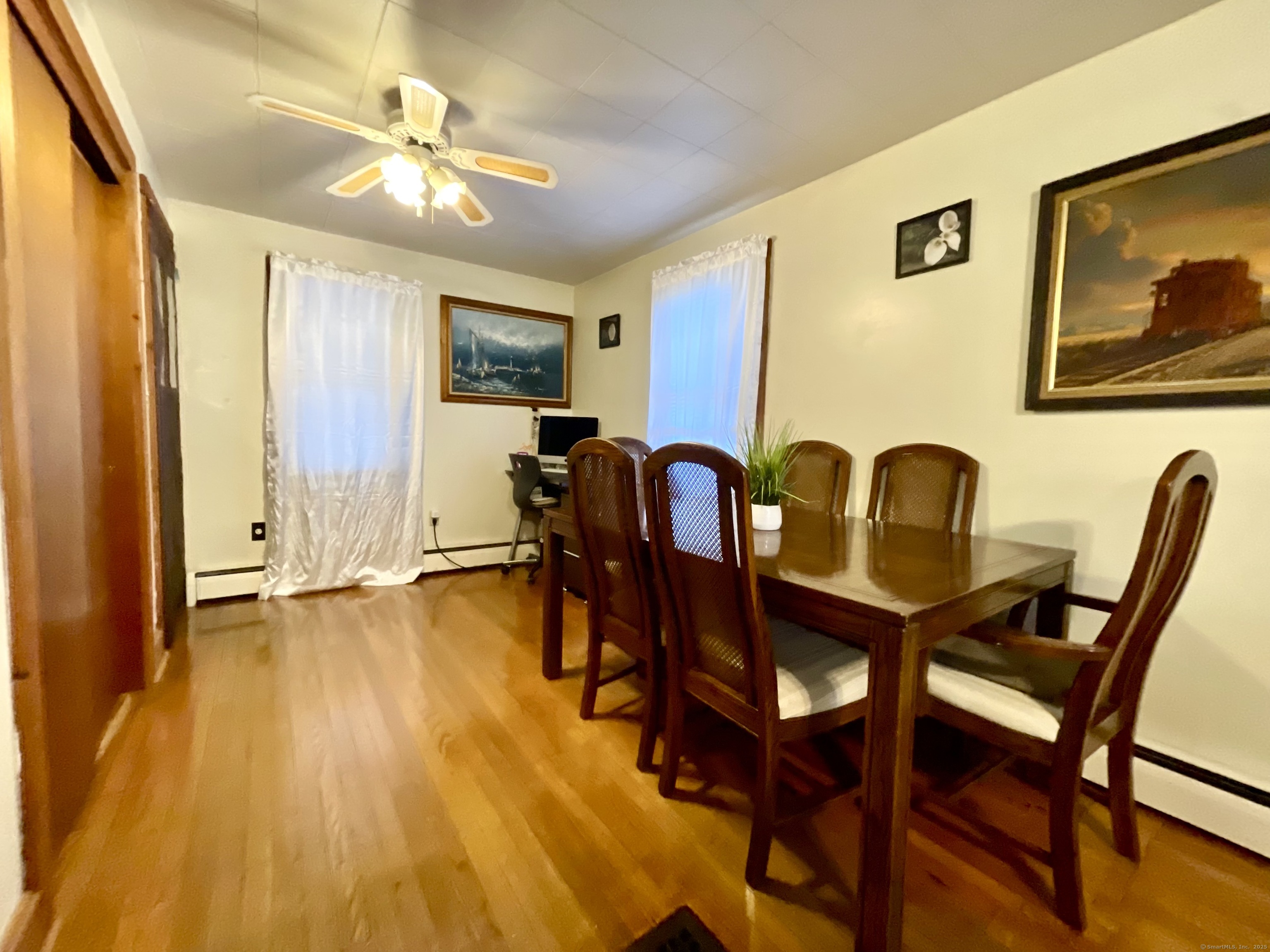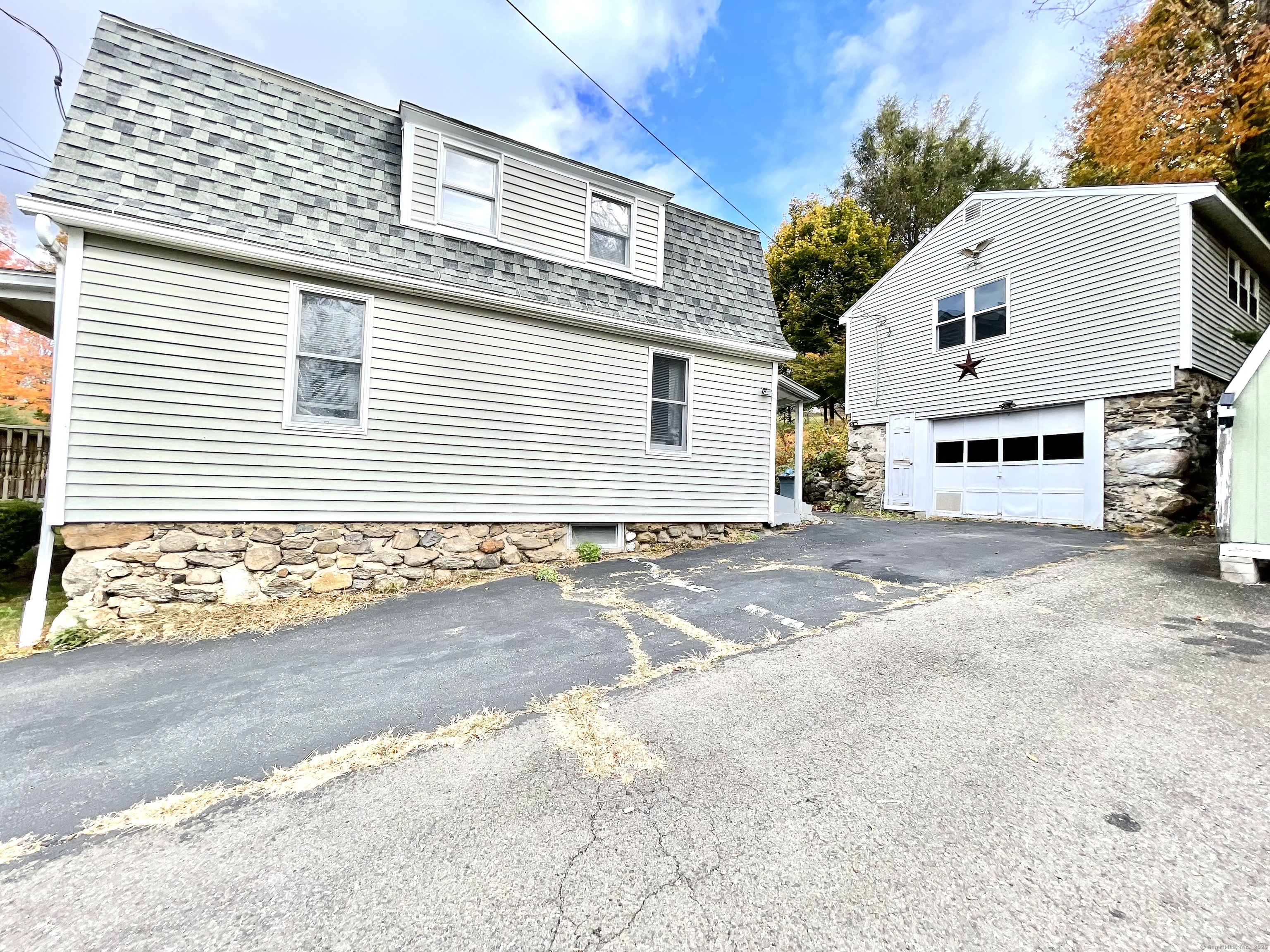 Welcome to this inviting Colonial-style home located in the heart of Watertown! This 3-bedroom, 1.5-bath home combines timeless character with an opportunity to update and make it your own. Step inside to find warm hardwood floors throughout, a spacious living room, and a cozy den perfect for a home office. The eat-in kitchen offers plenty of space to gather and cook, while a convenient half bath completes the first floor. Upstairs, you'll find three comfortable bedrooms with hardwood flooring and a full bath. The basement includes washer/dryer hookups and room for storage. Enjoy outdoor living on the covered back porch overlooking a tiered backyard-ideal for gardening or entertaining. The newer front porch adds curb appeal, and the detached 1-car garage features a partially finished upper level-perfect for a studio, office, or extra living space +400SQFT. It features a bedroom, full bathroom, small kitchen, and a large living room. All it needs is for you to come in and do the finishing touches. The house features a nice-sized driveway and a storage shed. Conveniently located near schools, shops, and local amenities, this home offers great value and possibilities in a desirable Watertown neighborhood.