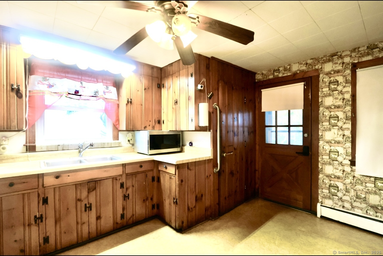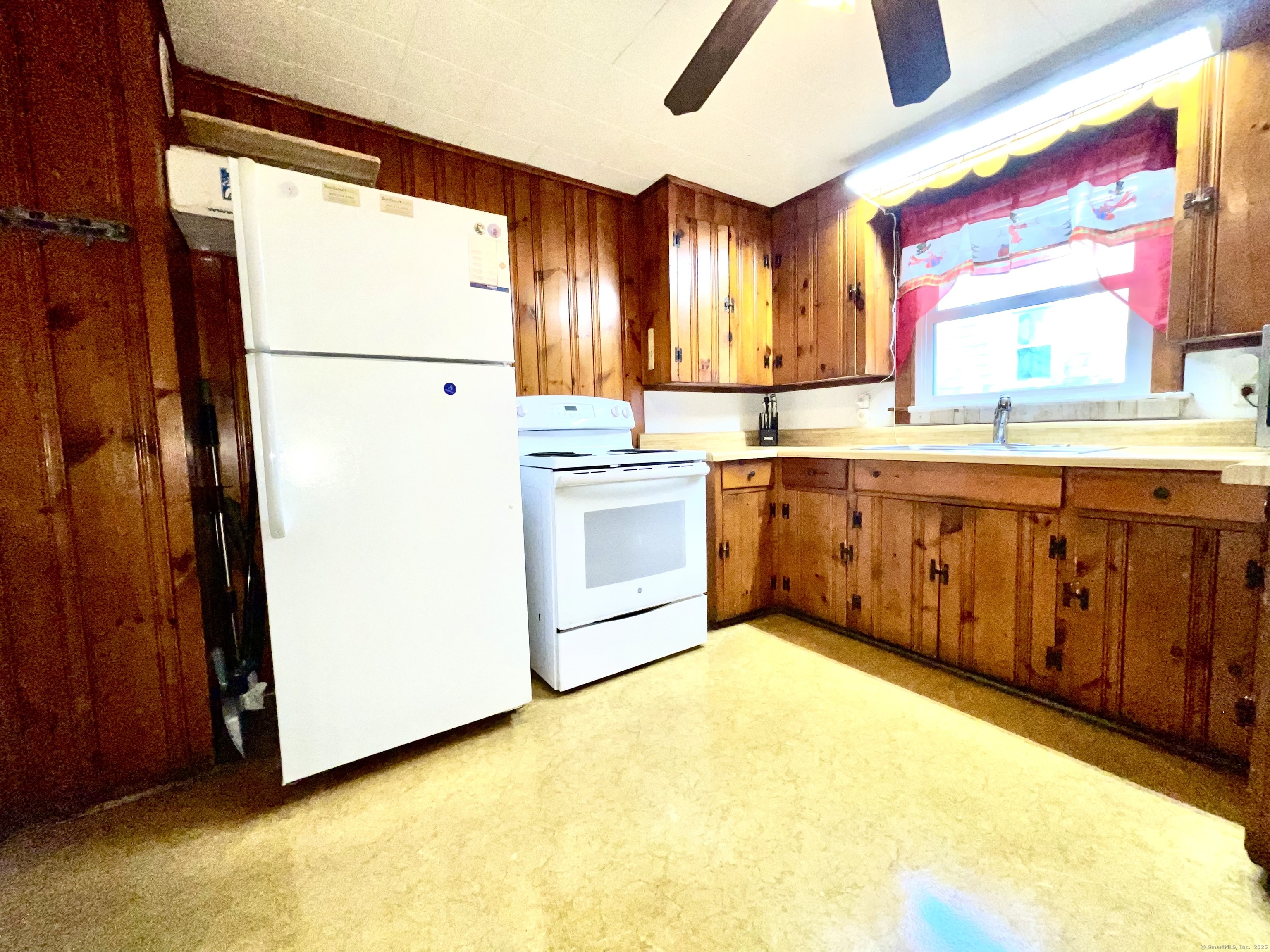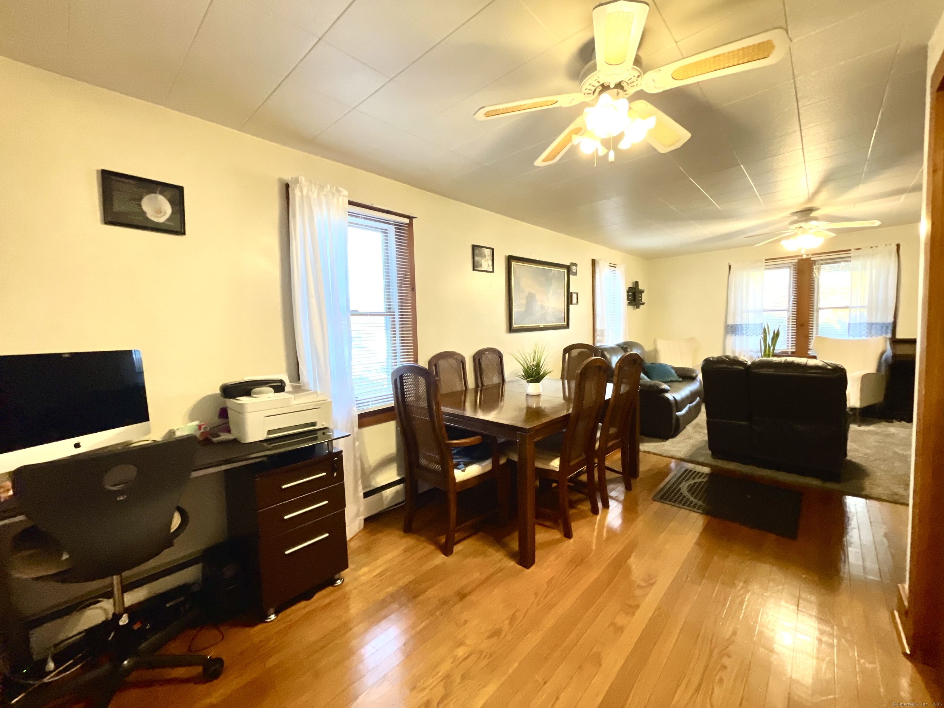 Welcome to this inviting Colonial-style home located in the heart of Watertown! This 3-bedroom, 1.5-bath home combines timeless character with an opportunity to update and make it your own. Step inside to find warm hardwood floors throughout, a spacious living room, and a cozy den perfect for a home office. The eat-in kitchen offers plenty of space to gather and cook, while a convenient half bath completes the first floor. Upstairs, you'll find three comfortable bedrooms with hardwood flooring and a full bath. The basement includes washer/dryer hookups and room for storage. Enjoy outdoor living on the covered back porch overlooking a tiered backyard-ideal for gardening or entertaining. The newer front porch adds curb appeal, and the detached 1-car garage features a partially finished upper level-perfect for a studio, office, or extra living space +400SQFT. It features a bedroom, full bathroom, small kitchen, and a large living room. All it needs is for you to come in and do the finishing touches. The house features a nice-sized driveway and a storage shed. Conveniently located near schools, shops, and local amenities, this home offers great value and possibilities in a desirable Watertown neighborhood.