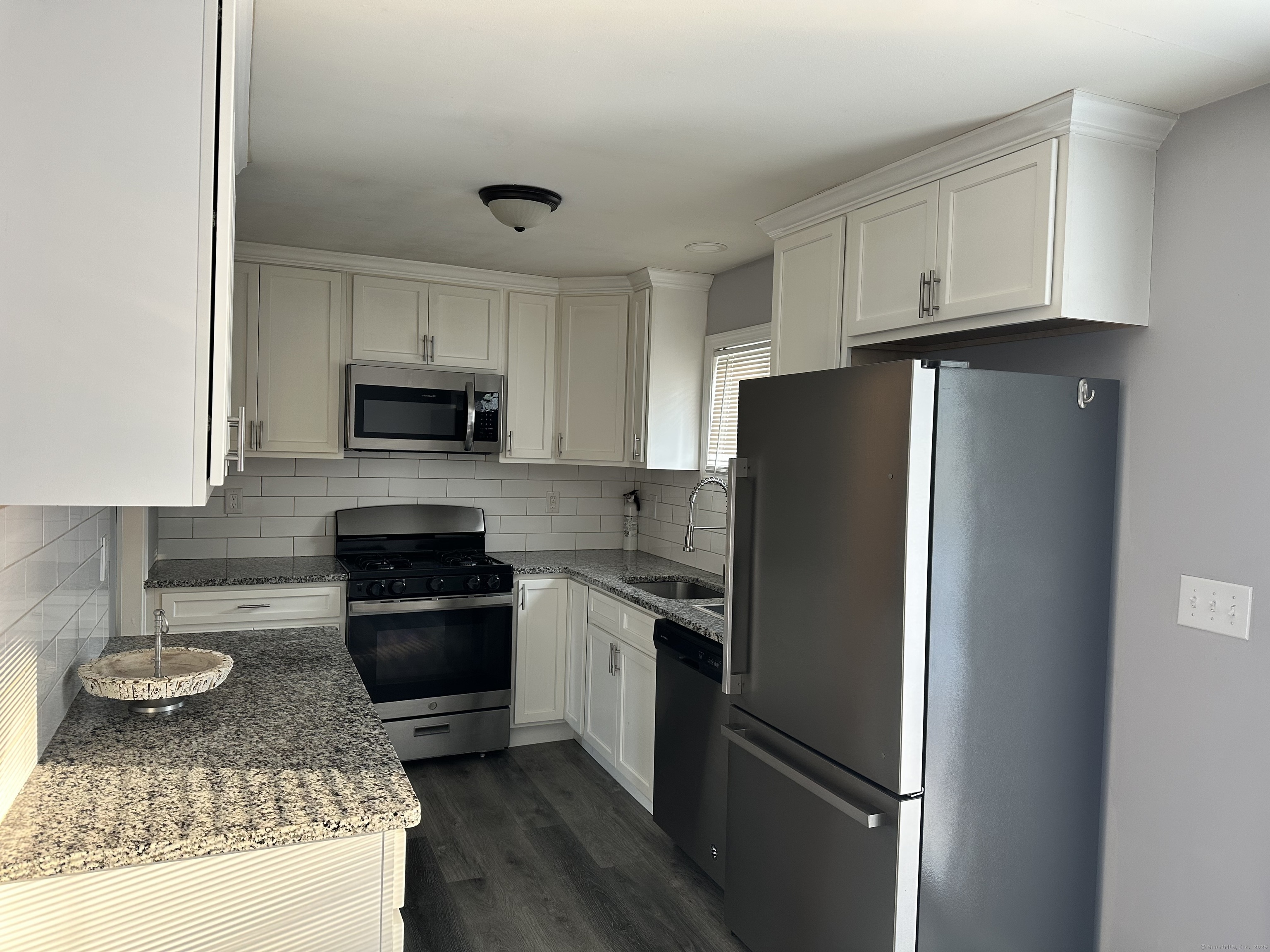 Recently remodeled ranch on a corner lot in a Southington neighborhood. The main level features three bedrooms, one full bathroom, a living room, and an eat-in kitchen with an open layout and abundant natural light. The lower level offers another full bathroom with a tiled walk-in shower, heated living space, a laundry nook, and a vestibule leading to the garage. The living room and bedrooms feature original hardwood floors, while the kitchen includes granite countertops, newer cabinets, and stainless steel appliances. A walkout deck provides space for outdoor entertaining. The detached two-car garage offers 200A power, overhead storage, and an industrial mechanical hoist, ideal for professionals or hobbyists. A backyard shed provides additional storage for tools and lawn equipment. Located across from Lewis Farms and within ten minutes of parks, shopping, restaurants, coffee shops, gyms, and more. Within walking distance to Center Street events, including the Apple Harvest and Italian Festivals. Schedule a showing or submit an application today!