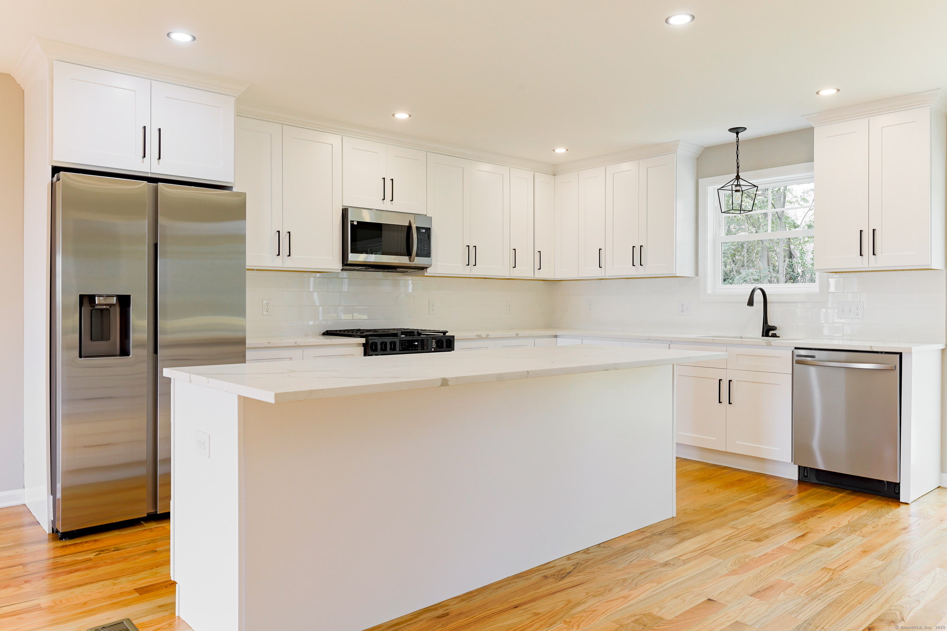 Stunning new home just minutes from University of New Haven, West Haven Train Station, miles of shoreline and Yale Campus. Location is within walking distance to shops, banks, restaurants and public transportation. You will be delighted with the open floor plan, abundance of natural light, wood floors, recessed lighting, numerous closets and modern touches throughout. With 4 bedrooms and 3 bathrooms and main level open floor plan, this home will not disappoint! Unfinished lower level with 12 ft ceilings has underground plumbing ready for future renovations if so desired. Economic gas heating and on demand water are just a few of the amenities that you will benefit from.