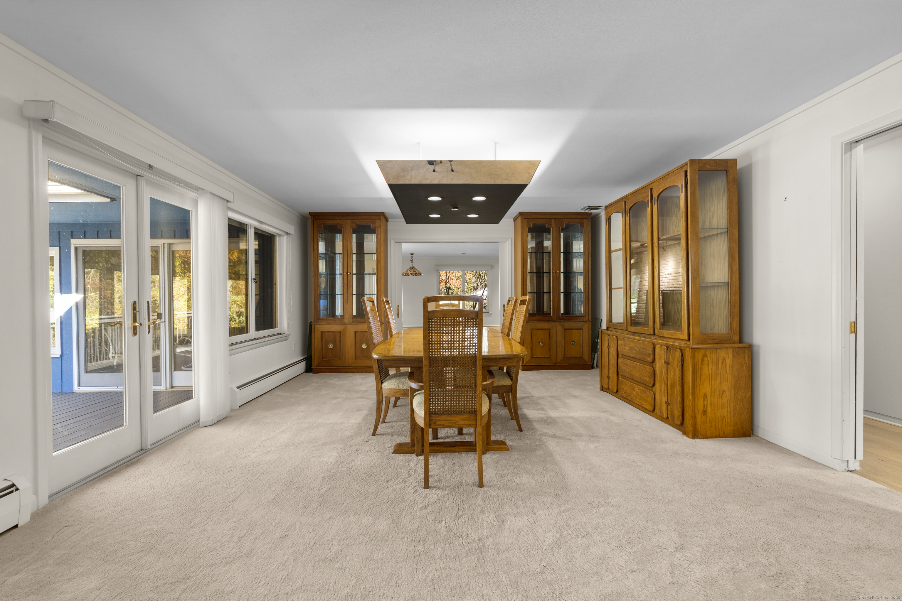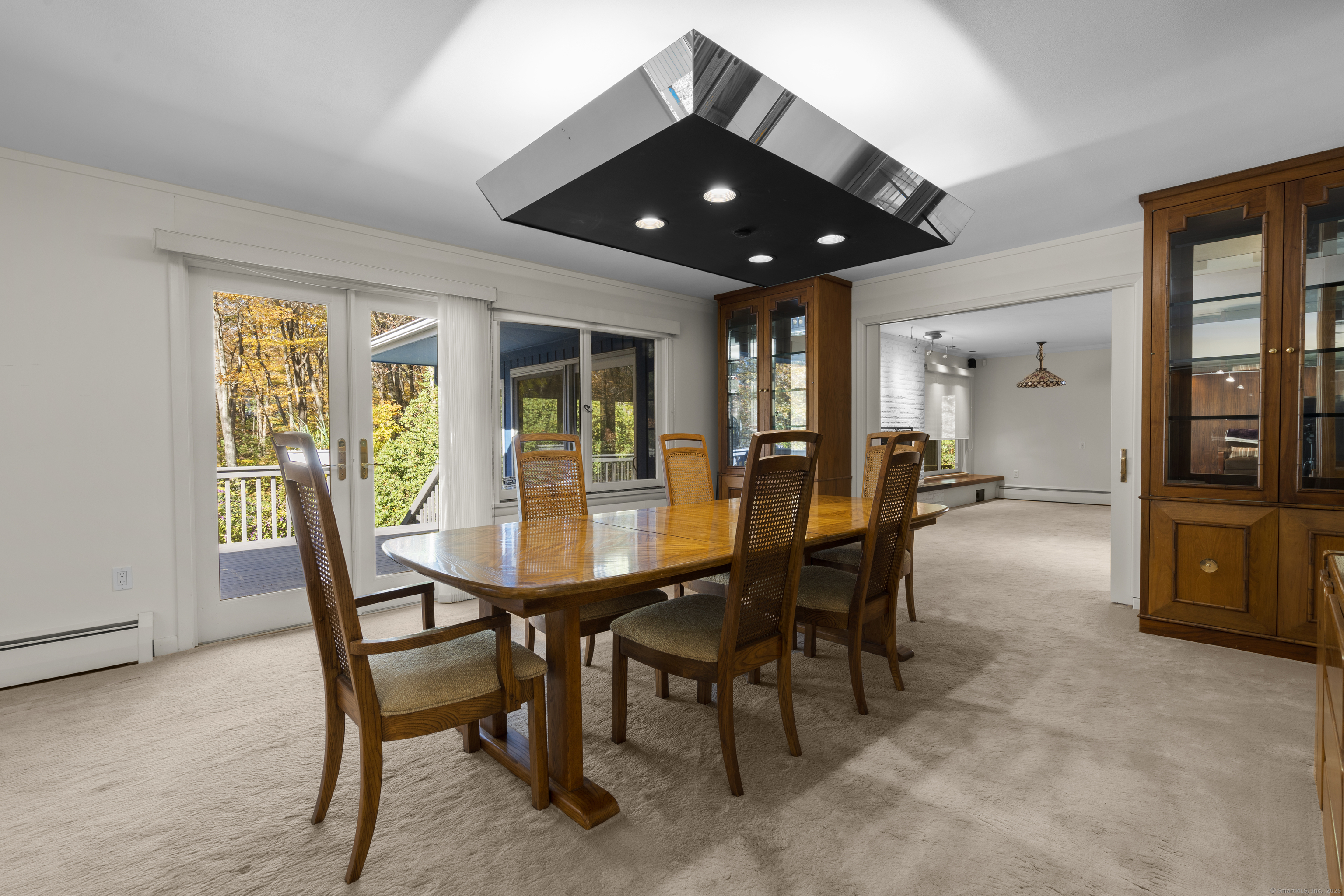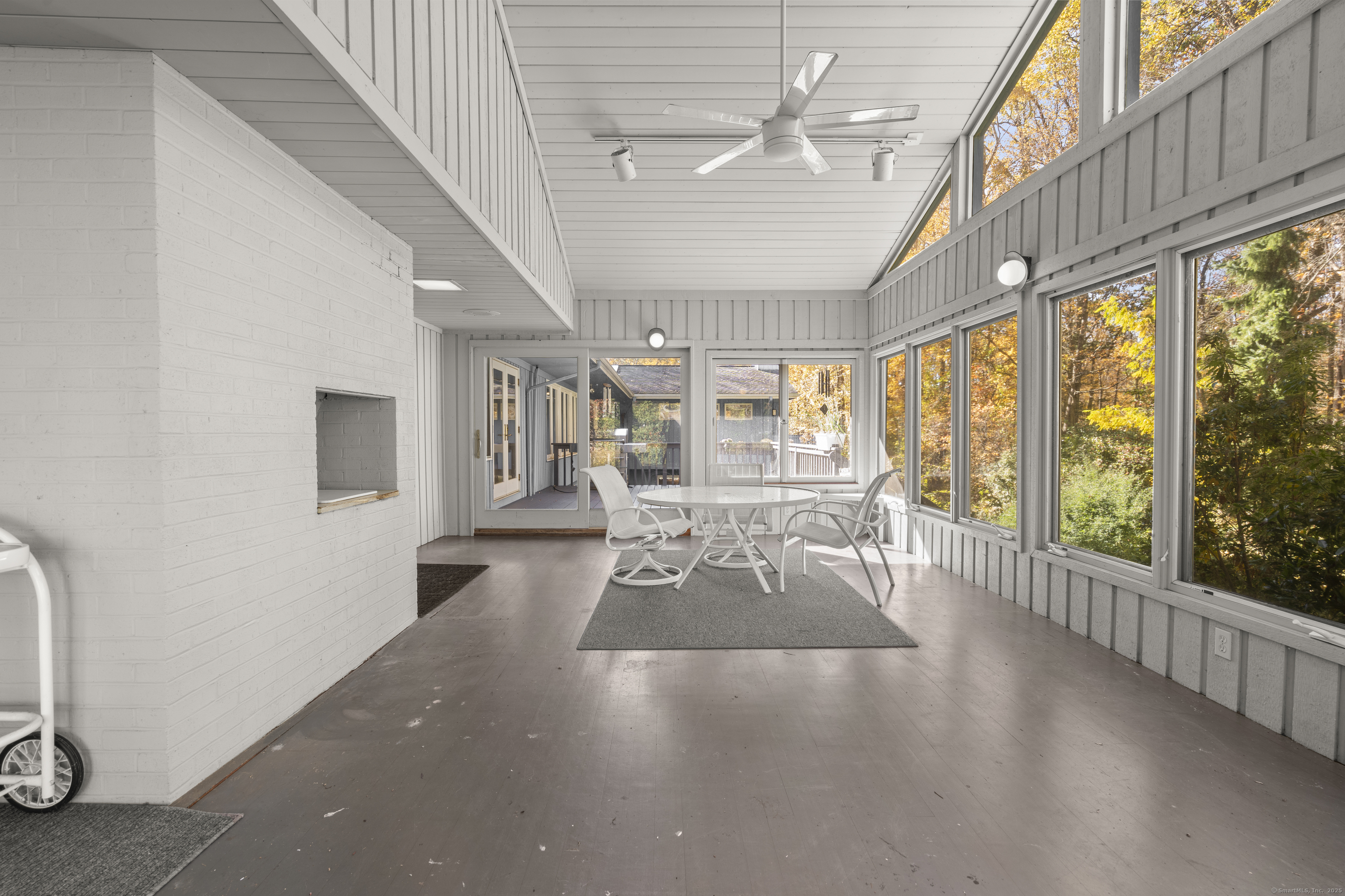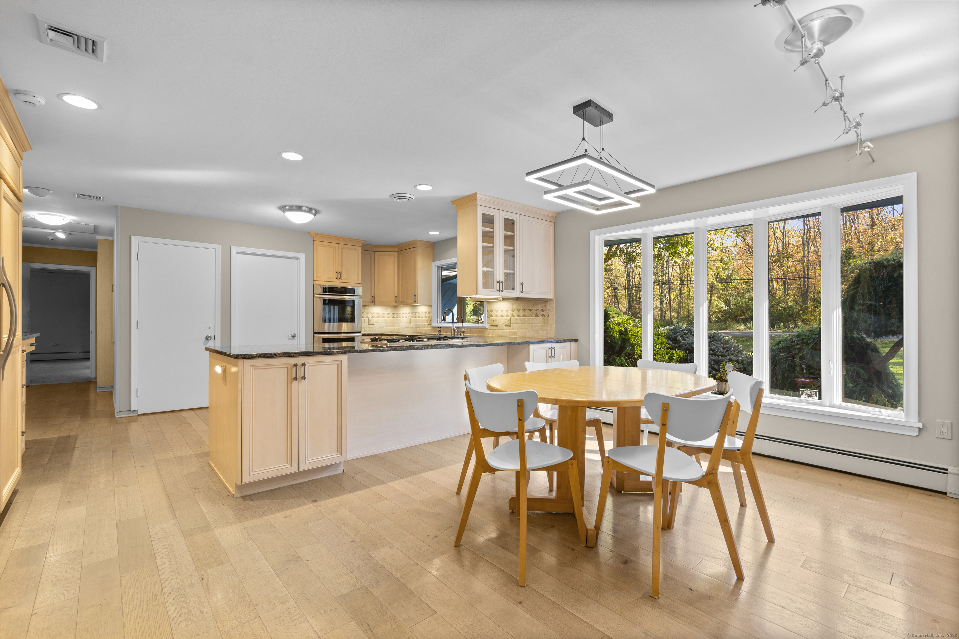 One-Level Living at Its Finest! Discover this expanded 3,522 sq. ft. ranch offering 10 rooms, 4 bedrooms, and 3.5 baths, perfectly sited on a serene 1.4-acre lot at the end of a peaceful cul-de-sac. Generously sized living spaces include an open-concept living and dining area that flows seamlessly into a family room with a fireplace and adjacent powder room-ideal for both casual gatherings and elegant entertaining. From the family room, double doors open to a three-season porch with cathedral ceilings and a large deck overlooking professionally designed gardens. Relax by the koi pond while enjoying tranquil views of Race Brook. Bathed in natural light, the fully updated eat-in kitchen features granite countertops, a breakfast bar, high-end appliances, and abundant custom cabinetry. The primary suite is a private retreat with cathedral ceilings, a luxurious updated ensuite bath, dressing area, gas fireplace, and its own private deck-making every morning a joy. A spacious study with garden views can be accessed from either the suite or the main hallway. Three additional bedrooms, a full bath, and a laundry room complete the main level. The lower walk-out level offers an additional 1,035 sq. ft. of finished living space, including full-height windows, a full bath, and two large walk-in cedar closets-perfect for a guest suite, media room, or home gym. Additional features include multi-zone heating, two-car garage with a Tesla charging station and whole house generator.