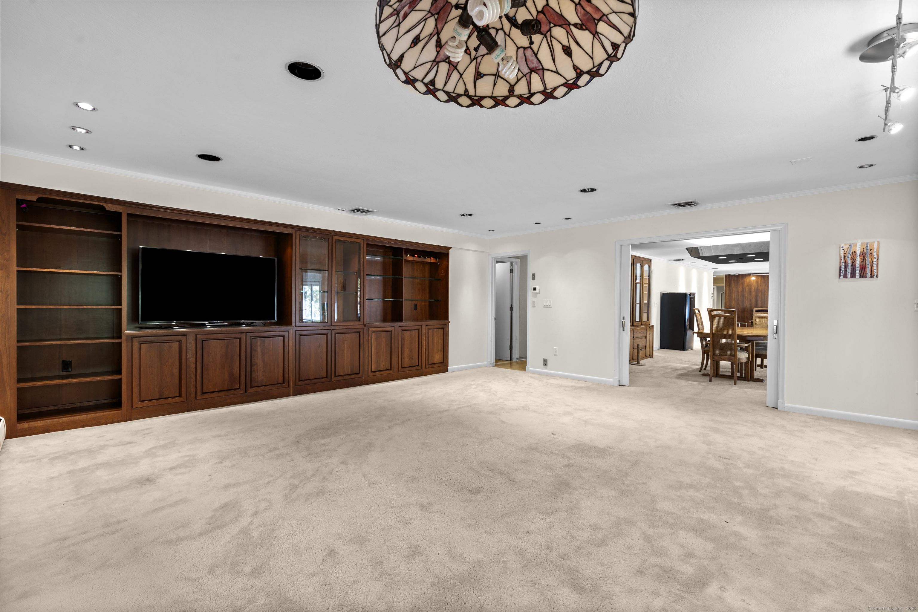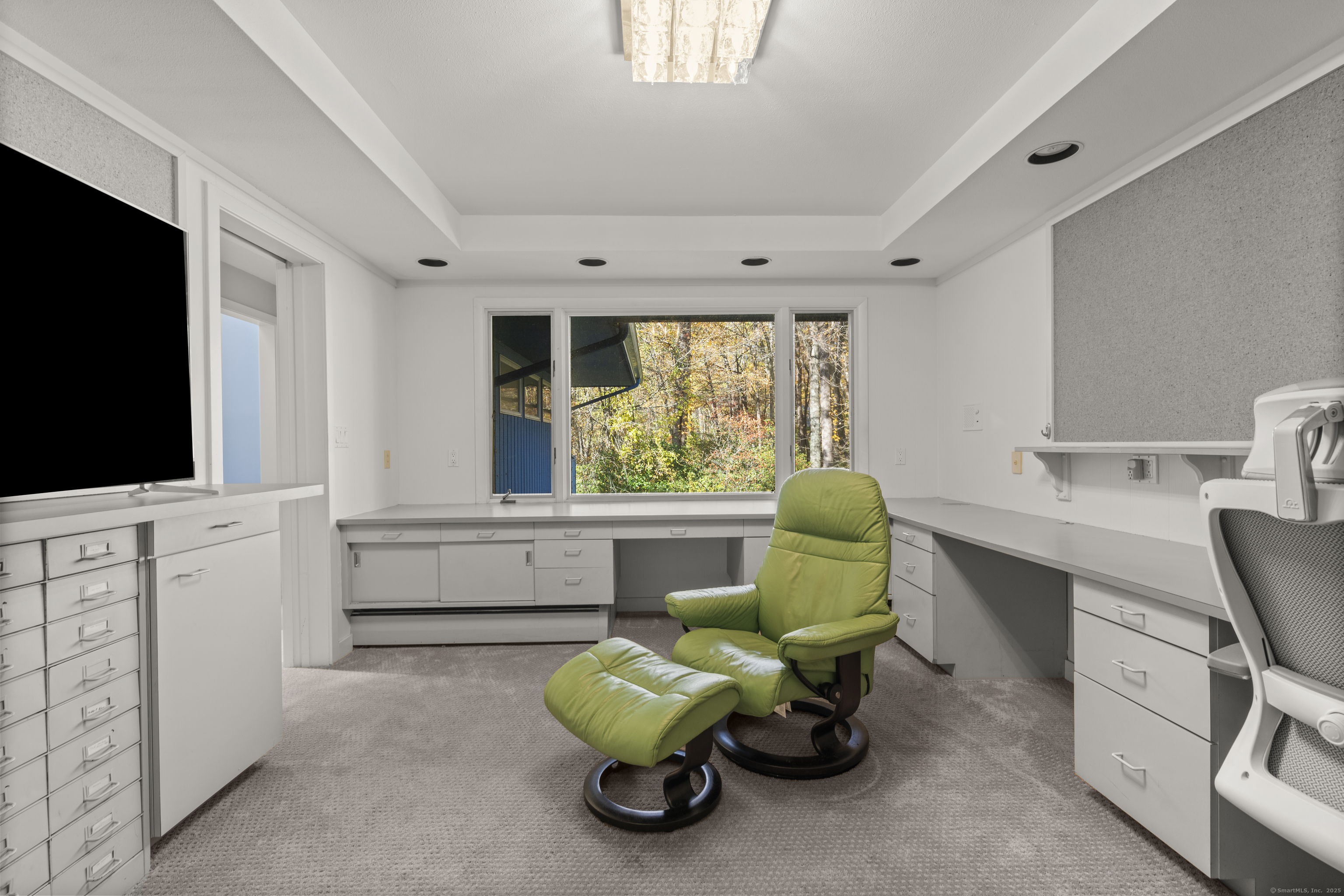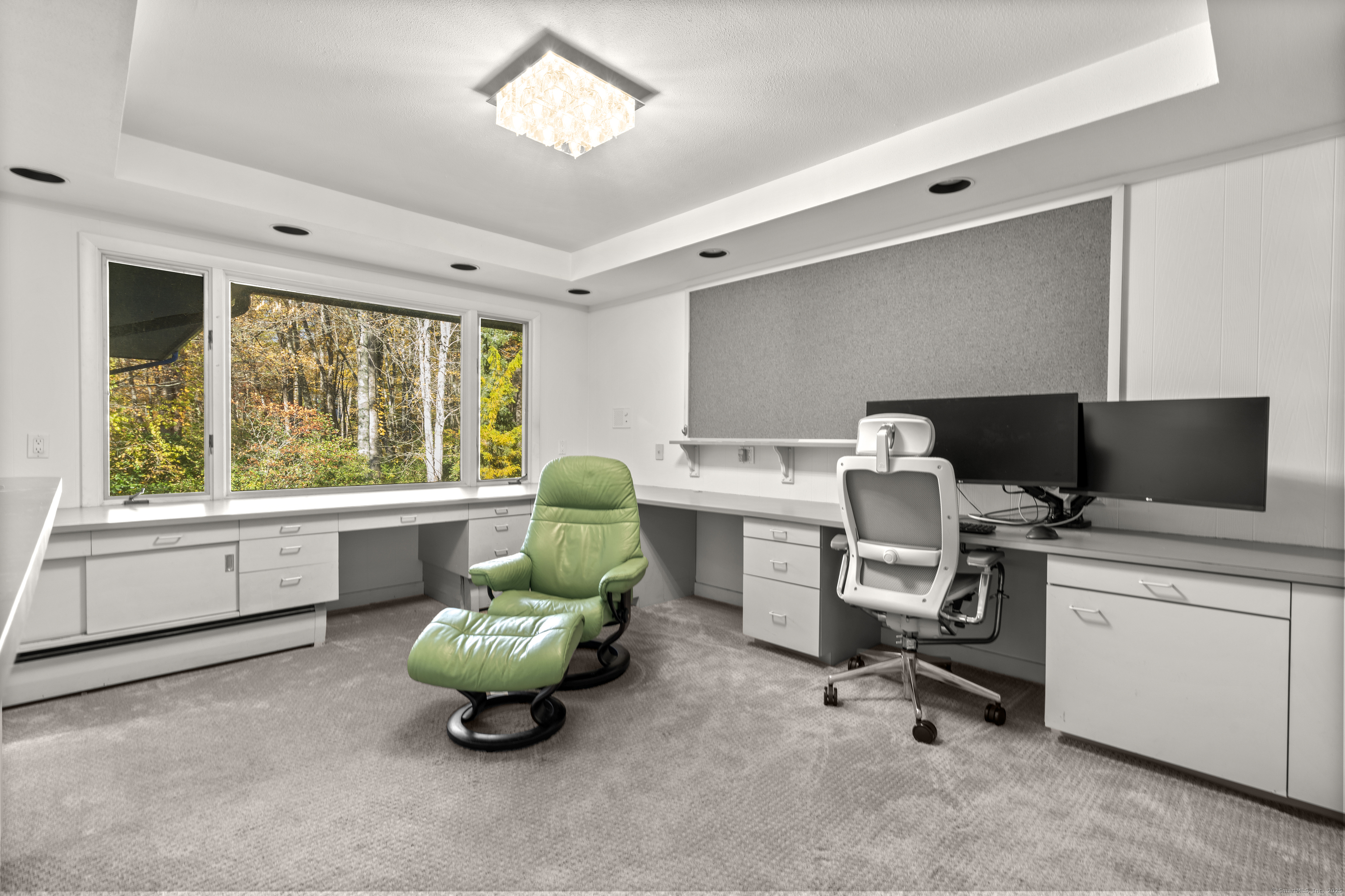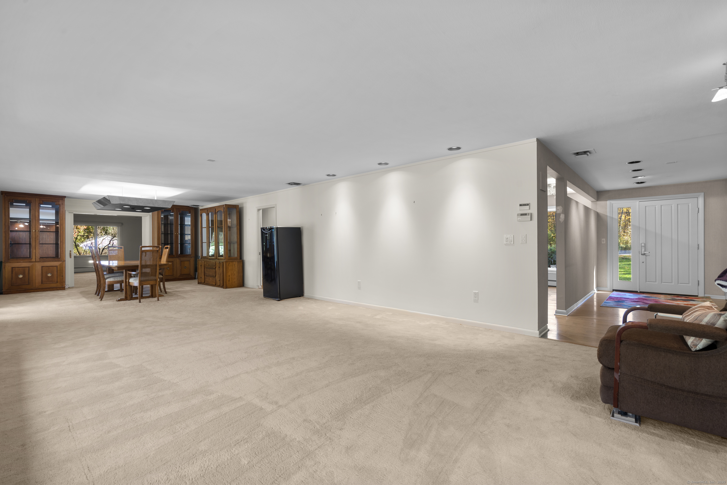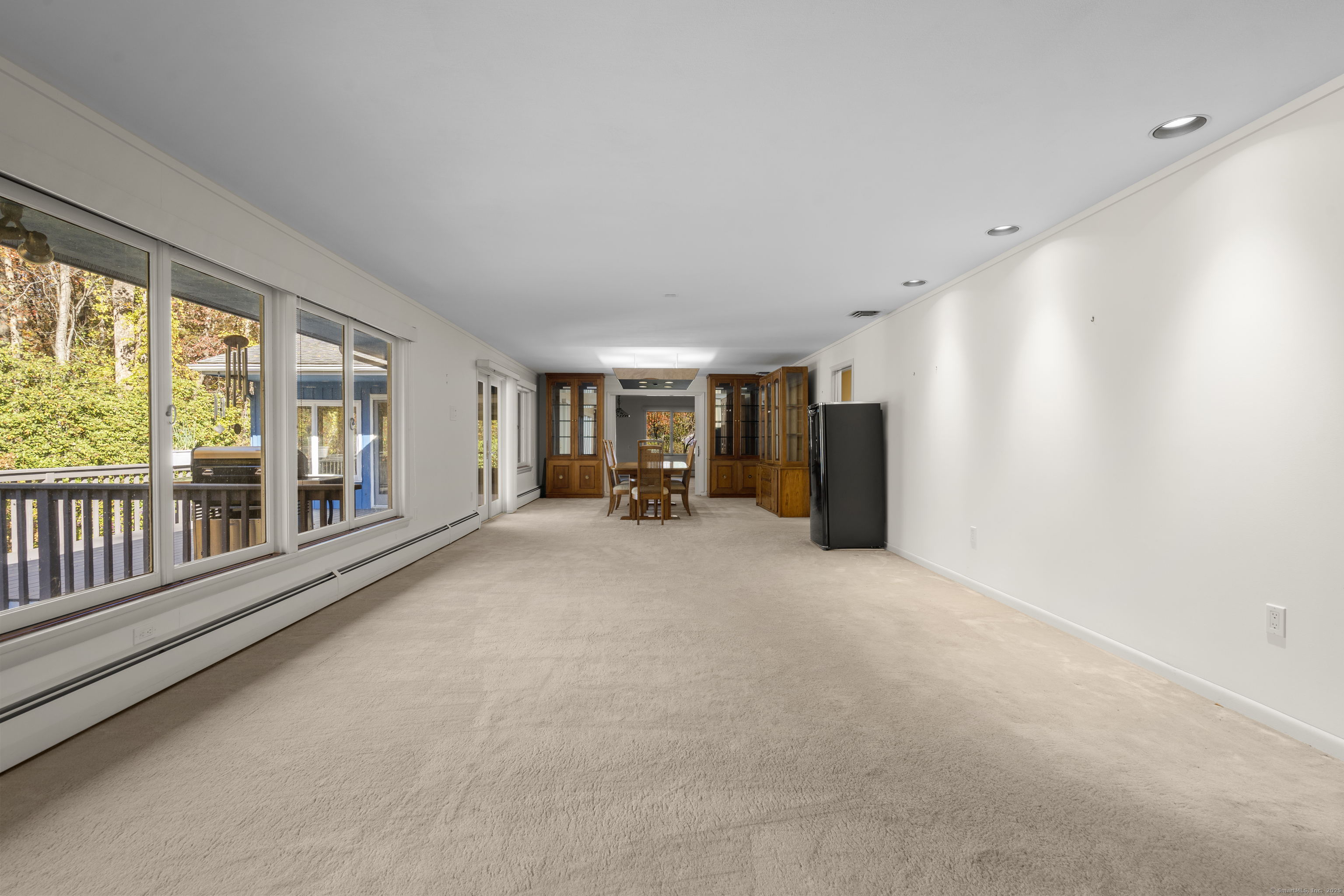 One-Level Living at Its Finest! Discover this expanded 3,522 sq. ft. ranch offering 10 rooms, 4 bedrooms, and 3.5 baths, perfectly sited on a serene 1.4-acre lot at the end of a peaceful cul-de-sac. Generously sized living spaces include an open-concept living and dining area that flows seamlessly into a family room with a fireplace and adjacent powder room-ideal for both casual gatherings and elegant entertaining. From the family room, double doors open to a three-season porch with cathedral ceilings and a large deck overlooking professionally designed gardens. Relax by the koi pond while enjoying tranquil views of Race Brook. Bathed in natural light, the fully updated eat-in kitchen features granite countertops, a breakfast bar, high-end appliances, and abundant custom cabinetry. The primary suite is a private retreat with cathedral ceilings, a luxurious updated ensuite bath, dressing area, gas fireplace, and its own private deck-making every morning a joy. A spacious study with garden views can be accessed from either the suite or the main hallway. Three additional bedrooms, a full bath, and a laundry room complete the main level. The lower walk-out level offers an additional 1,035 sq. ft. of finished living space, including full-height windows, a full bath, and two large walk-in cedar closets-perfect for a guest suite, media room, or home gym. Additional features include multi-zone heating, two-car garage with a Tesla charging station and whole house generator.