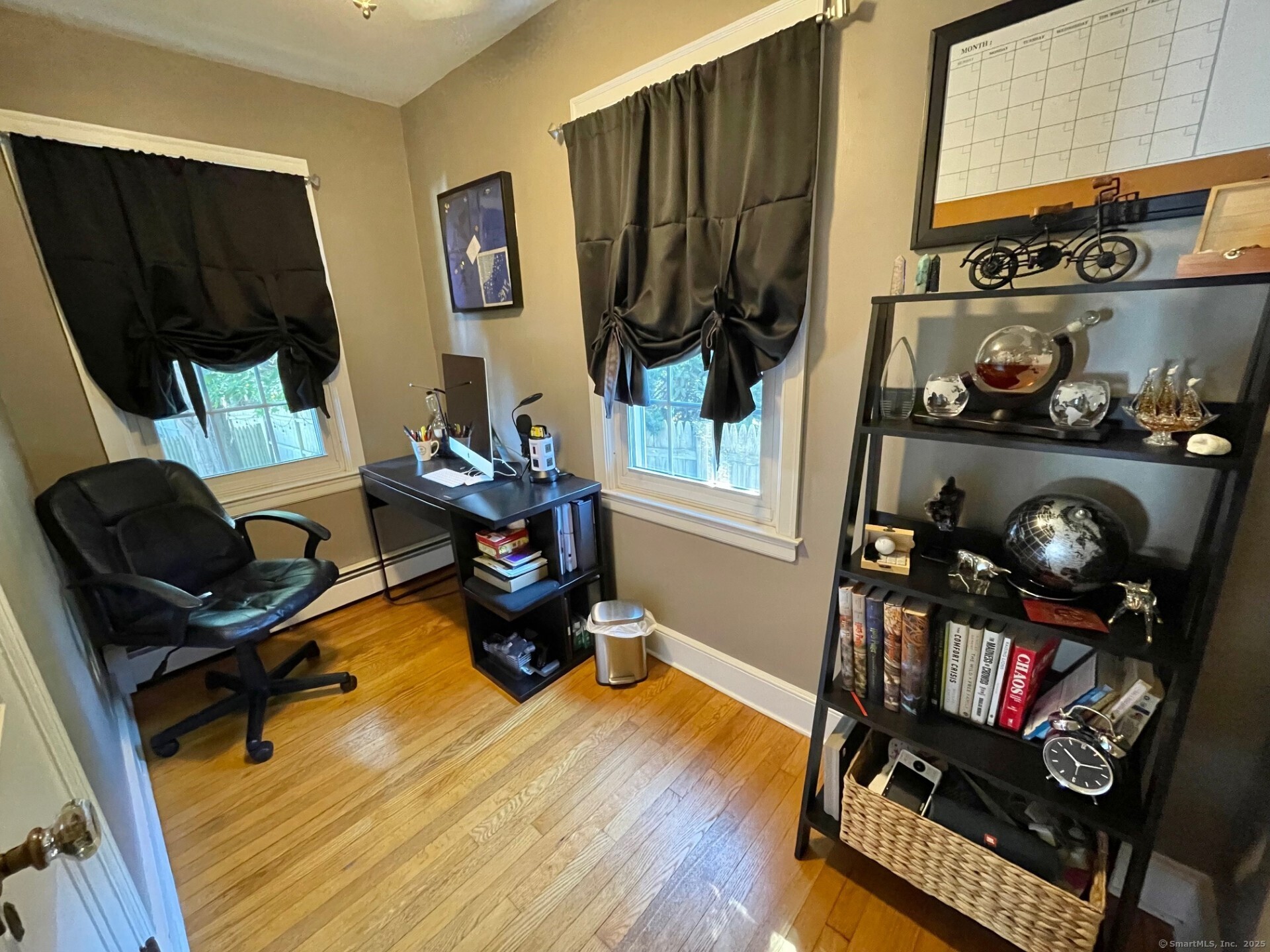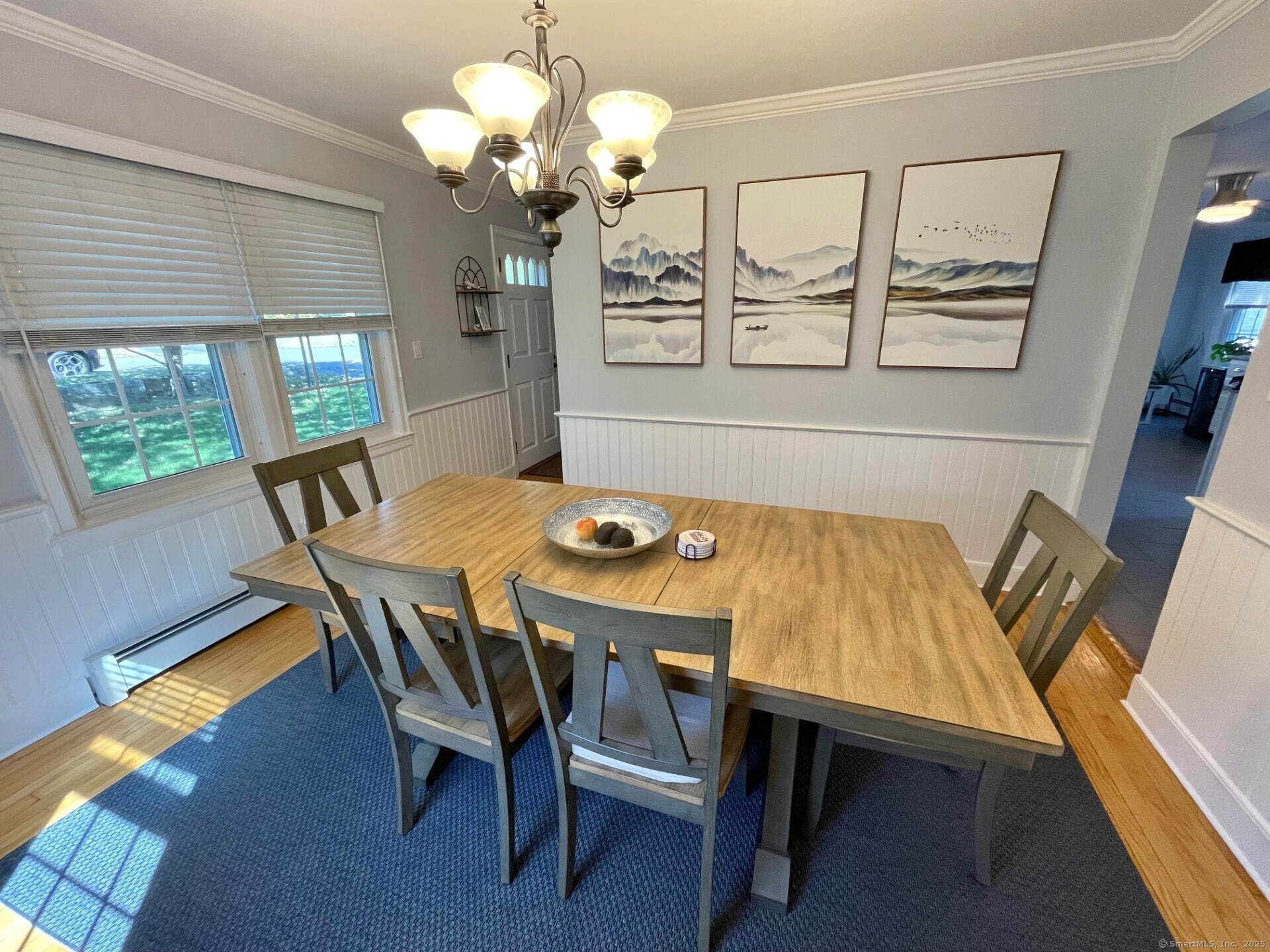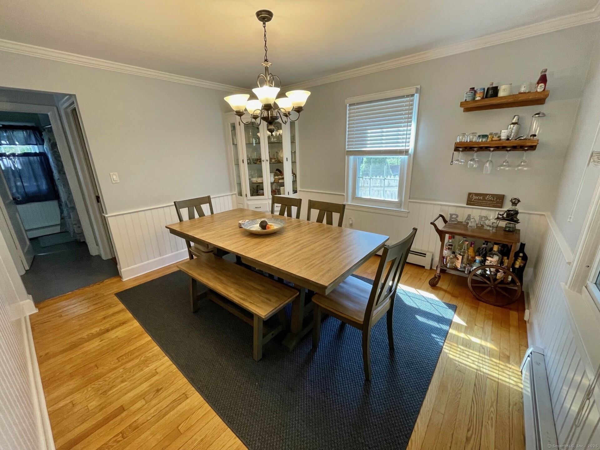 Updated, well maintained 2 bedroom, 2 full baths Cape in the desired North End of Stratford. Well appointed eat-in kitchen with stainless steel appliances, soap stone counters. Separate dining room off kitchen and living room with built in corner hutch, crown molding, wainscot and chair rails. Hardwood floors throughout the first floor. Living room has a wood burning fireplace with decorative mantel. Additional room on first floor is ideal for office/study/nursery. Primary large bedroom has sitting or dressing area. Partially finished basement of approximately 350sqft with natural light from 2 windows. Oversized 2 bay garage that can house 4 cars. Spacious private fenced backyard with firepit area. Conveniently located to major shopping mall, I95, Merritt and Metro North station.
