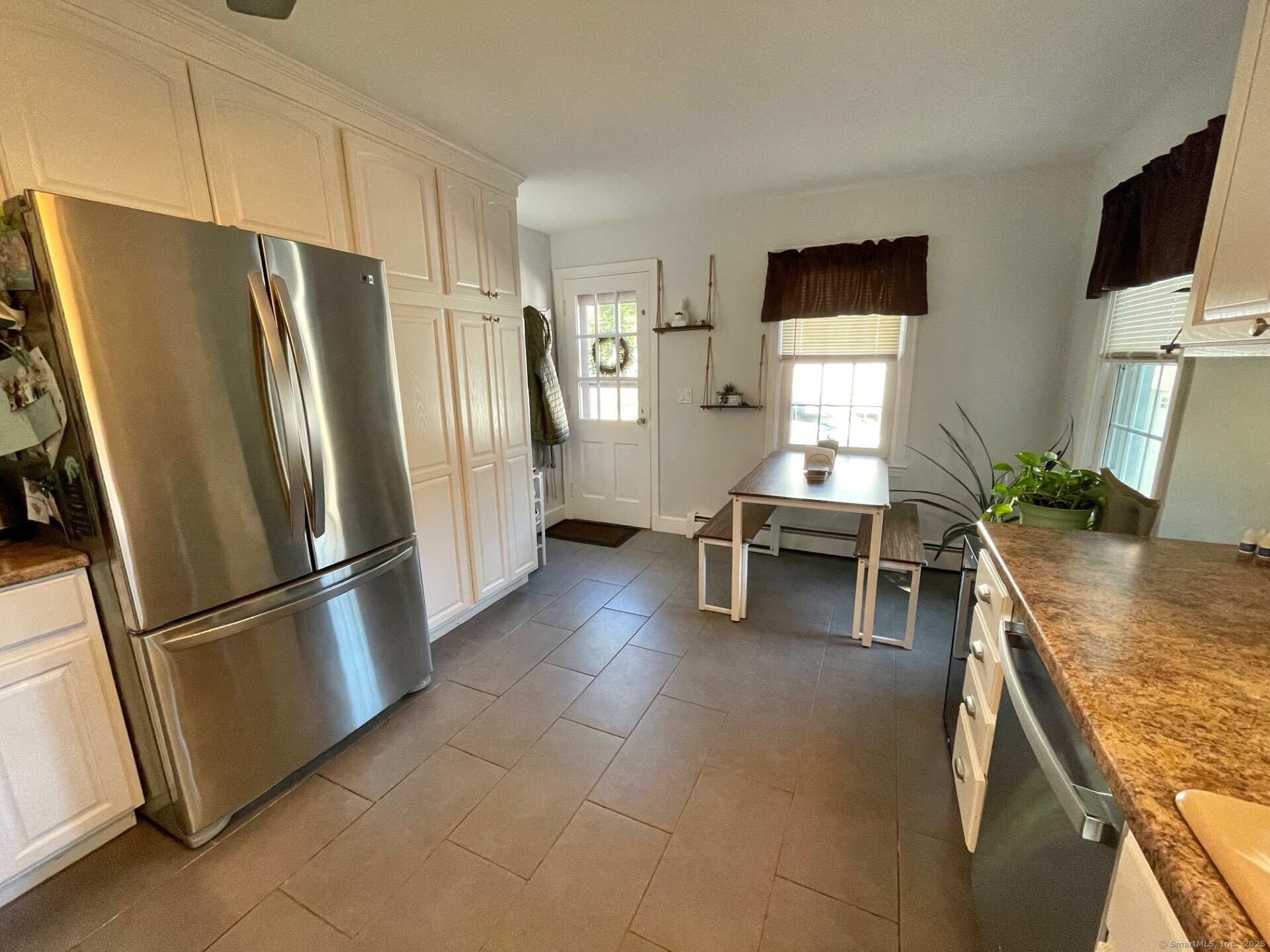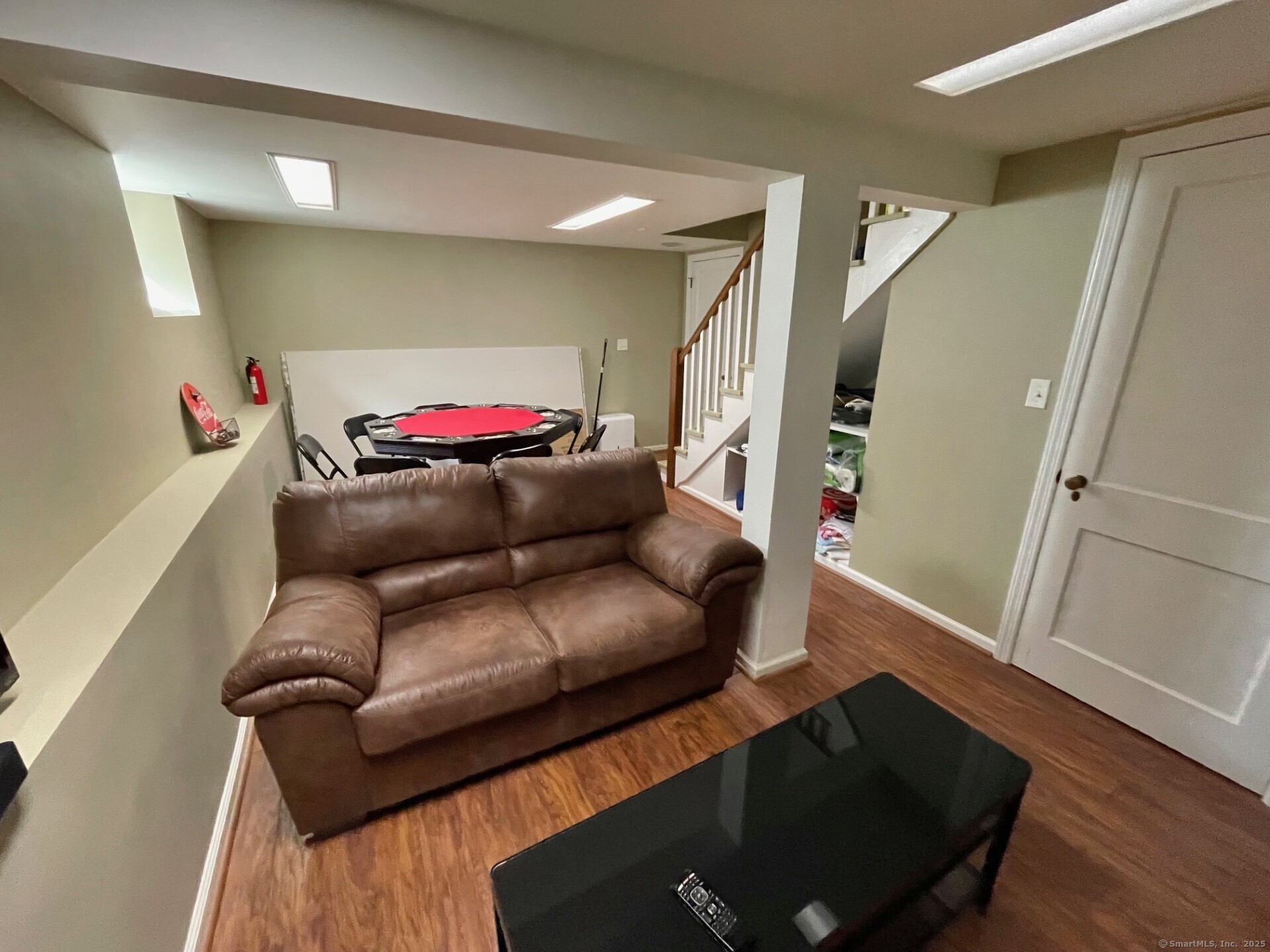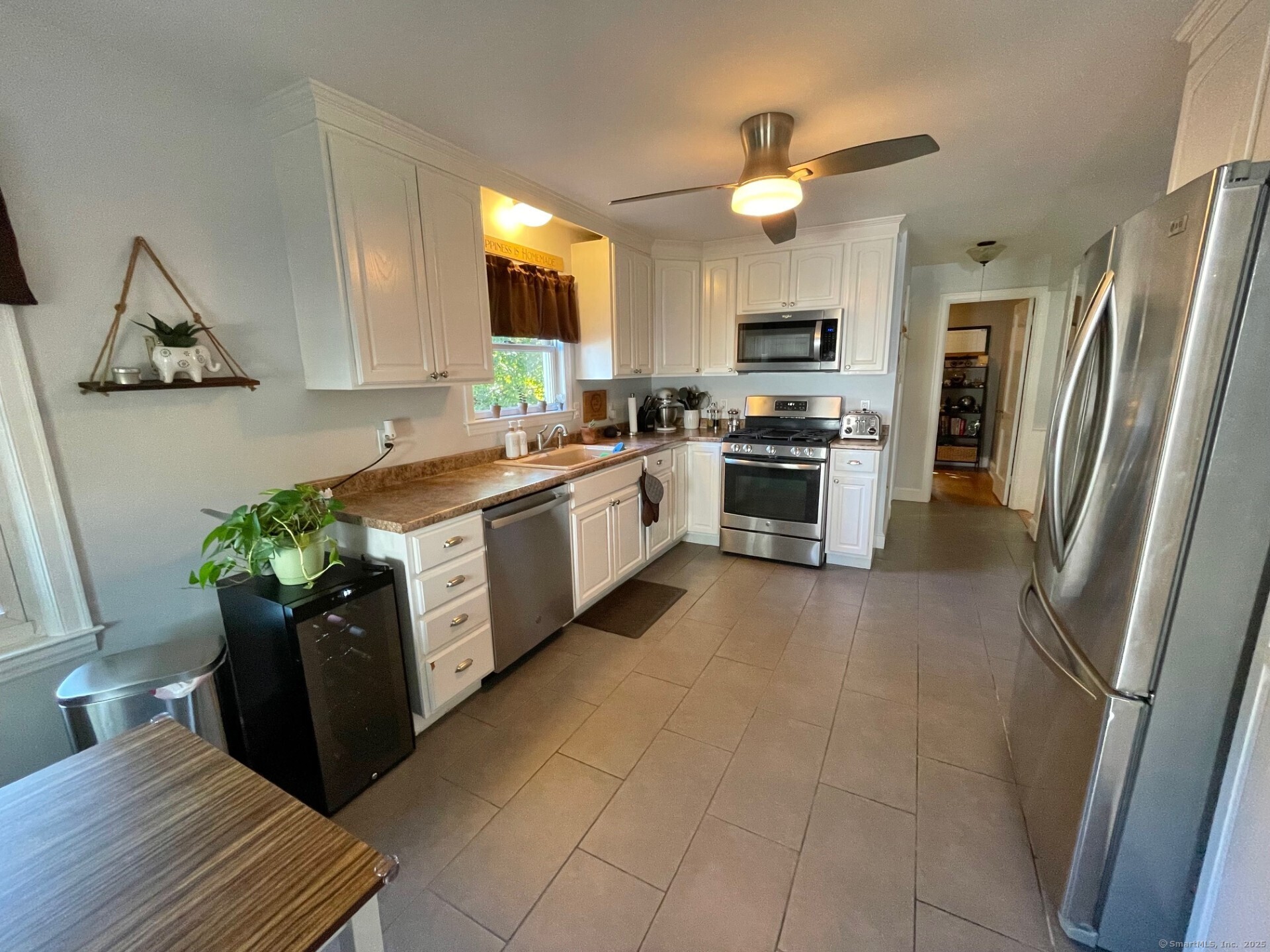 Updated, well maintained 2 bedroom, 2 full baths Cape in the desired North End of Stratford. Well appointed eat-in kitchen with stainless steel appliances, soap stone counters. Separate dining room off kitchen and living room with built in corner hutch, crown molding, wainscot and chair rails. Hardwood floors throughout the first floor. Living room has a wood burning fireplace with decorative mantel. Additional room on first floor is ideal for office/study/nursery. Primary large bedroom has sitting or dressing area. Partially finished basement of approximately 350sqft with natural light from 2 windows. Oversized 2 bay garage that can house 4 cars. Spacious private fenced backyard with firepit area. Conveniently located to major shopping mall, I95, Merritt and Metro North station.
