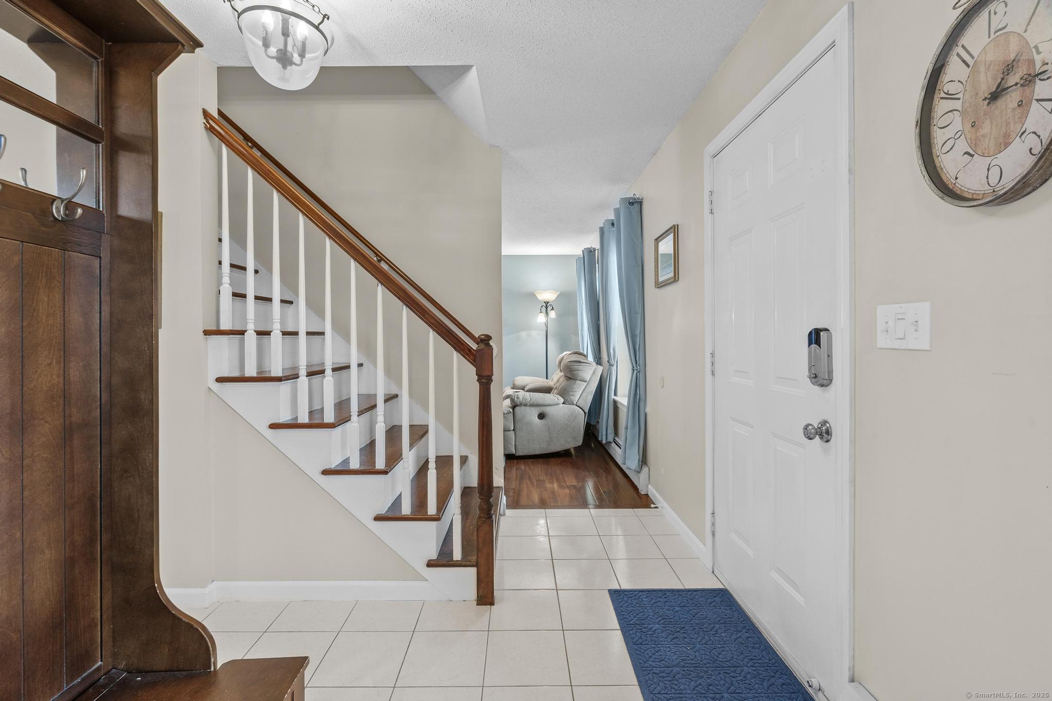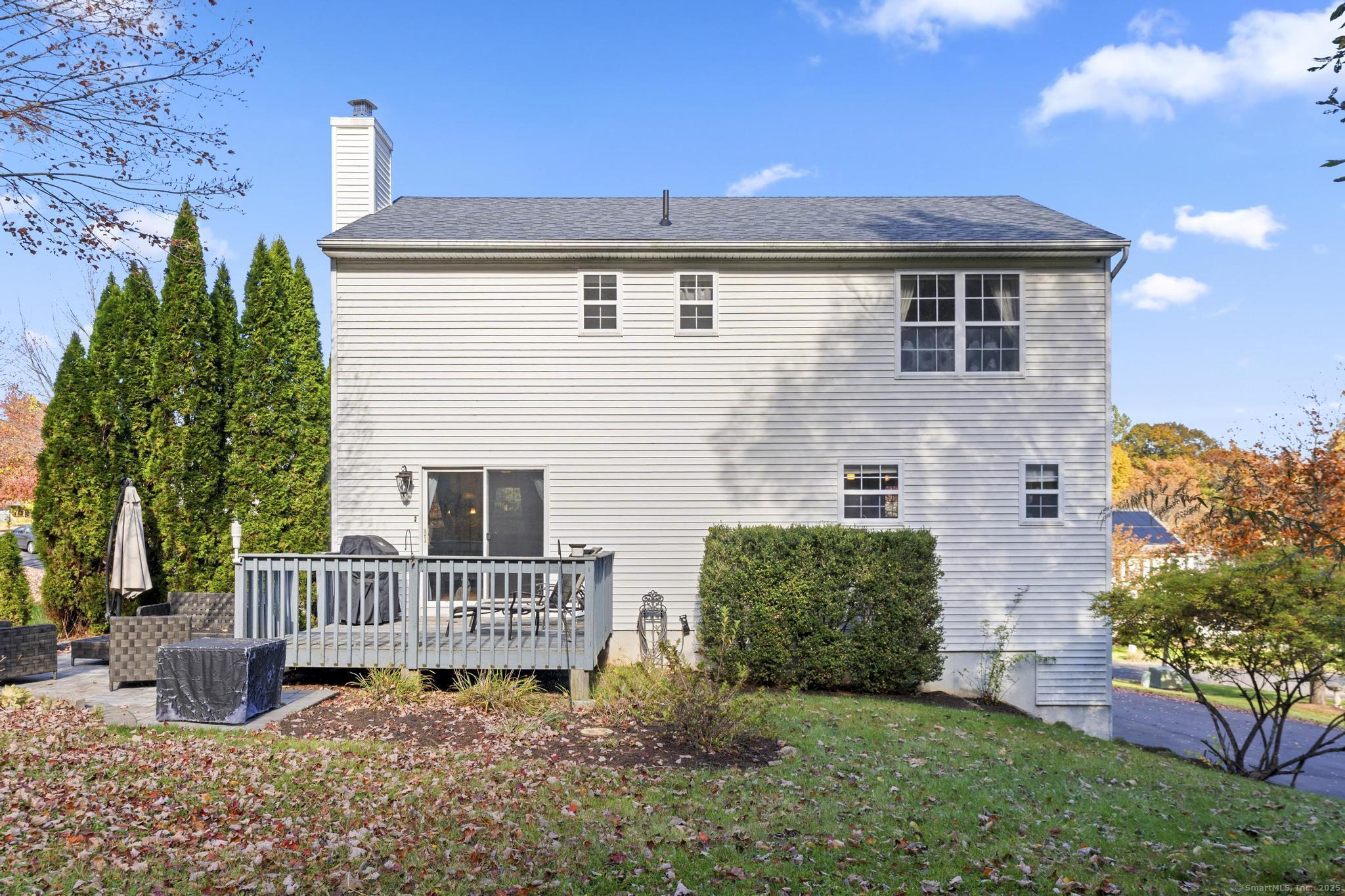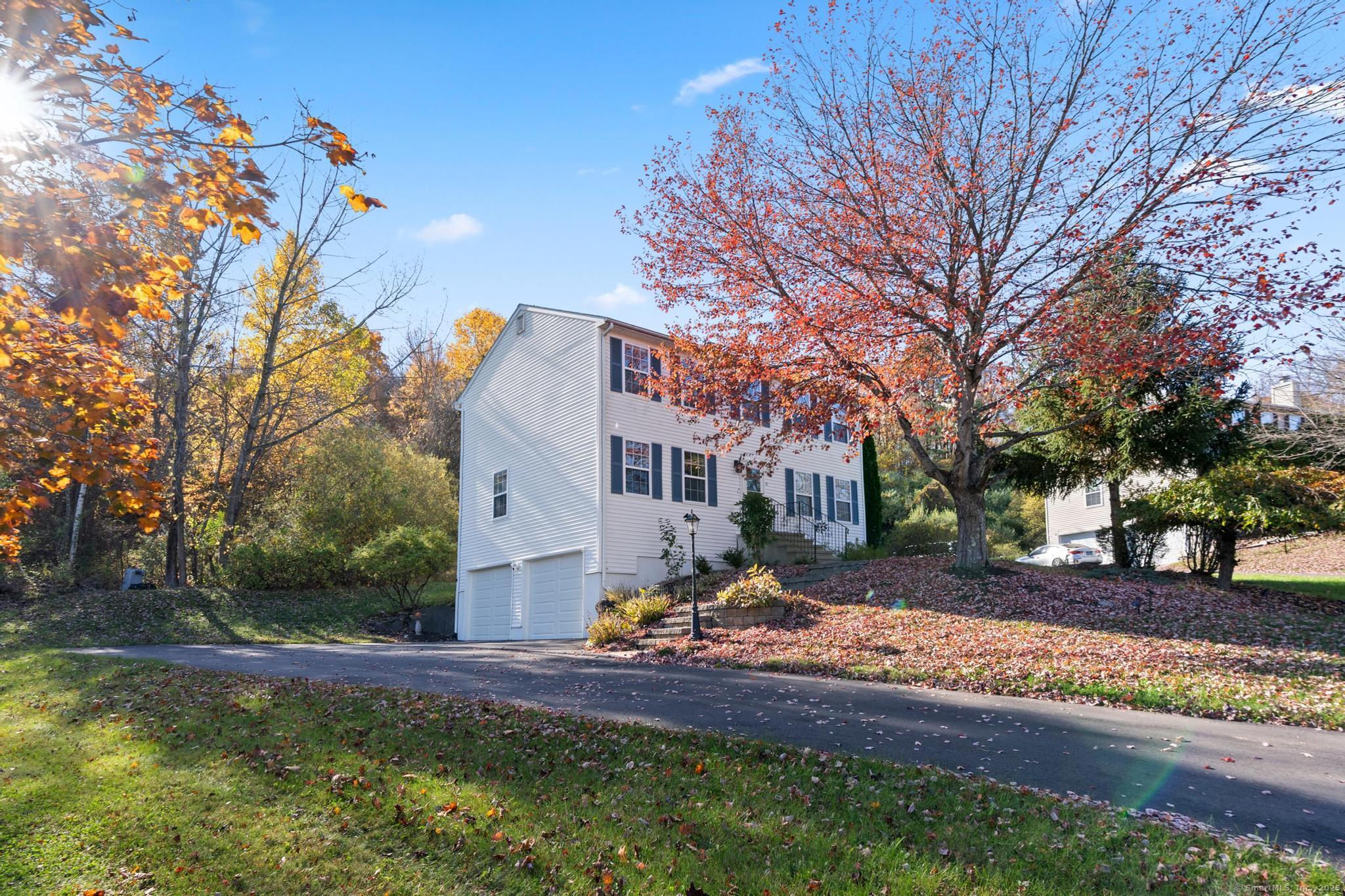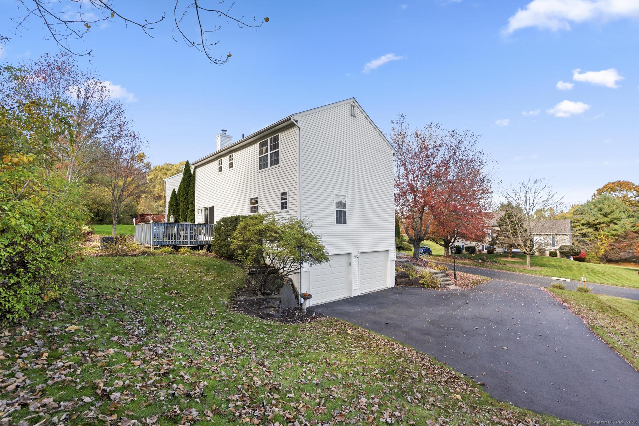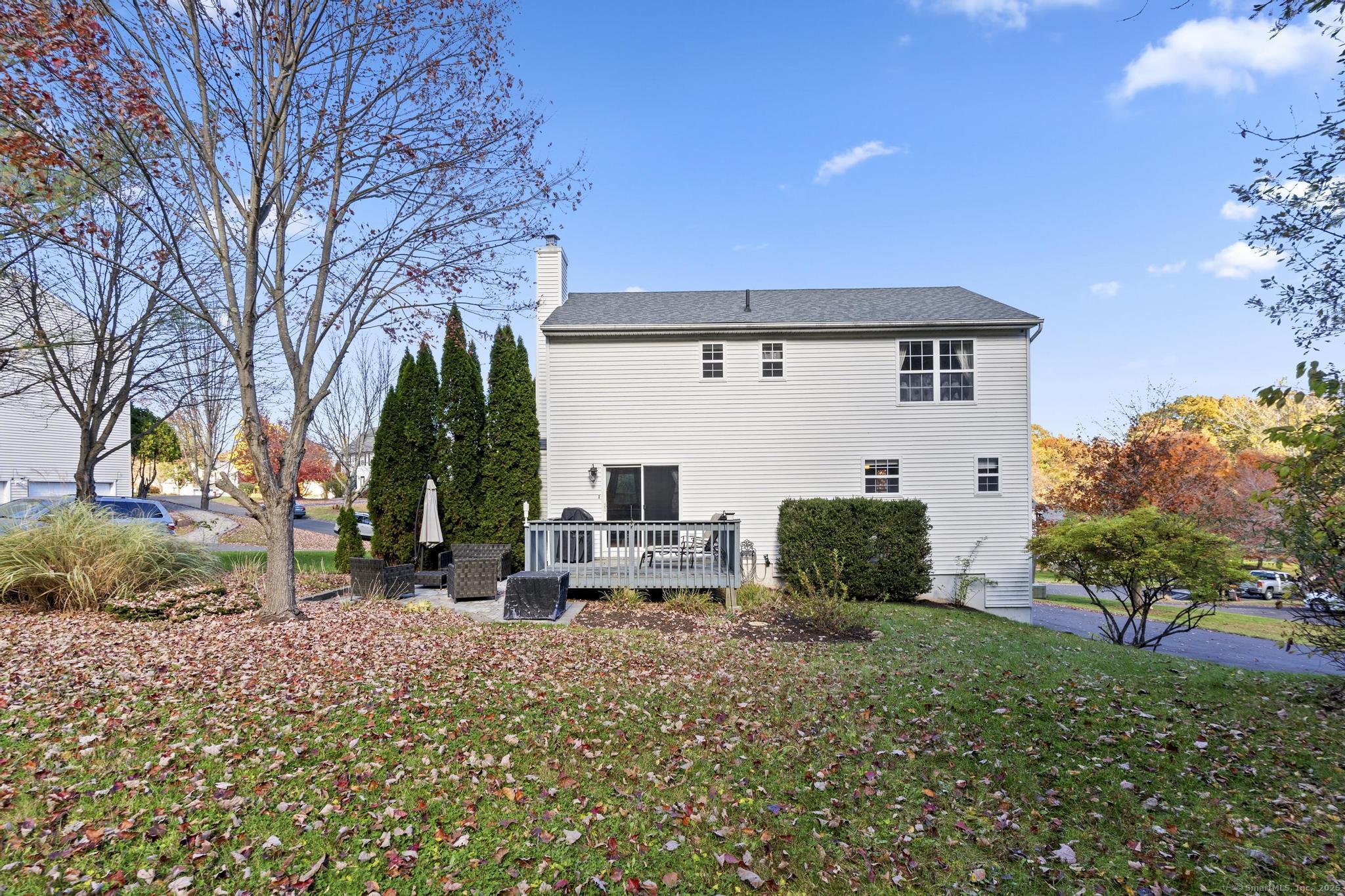 Rarely available! Exceptional, move in ready Colonial located on a quiet cul de sac, nestled toward the back of the desirable Sinnott Farm neighborhood. This 3 BR/2.1 Bath home offers an open floor plan with a front to back living room with gas fireplace and sliders to a private deck and patio, perfect for outdoor entertaining and relaxation. The home's kitchen is spacious and features cherry cabinets, a breakfast bar, stainless steel appliances and granite counters with tile backsplash. There is a formal dining room to host holidays and gatherings, and an updated half bath completing the main level. Upstairs is a large primary suite with walk in closet and private ensuite bathroom. In addition, there are two large guest rooms and a second full bath. The home features a bright interior with hardwood floors throughout, plenty of closet space and central vacuum. In the lower level is a play/rec room, as well as the laundry, space for storage and access to the two car garage. Recent updates to the home include: roof (2022), Buderus boiler (2020), air conditioning (2023), new driveway (2024) and so much more (list available). The home backs up to undeveloped town-owned land and provides a peaceful setting in a well-maintained neighborhood. There's nothing to do but move in to this wonderfully maintained home that shows beautifully! This one is not to be missed! The Town of Bloomfield is doing a 4 year tax phase in; current property taxes are $6559 year.
