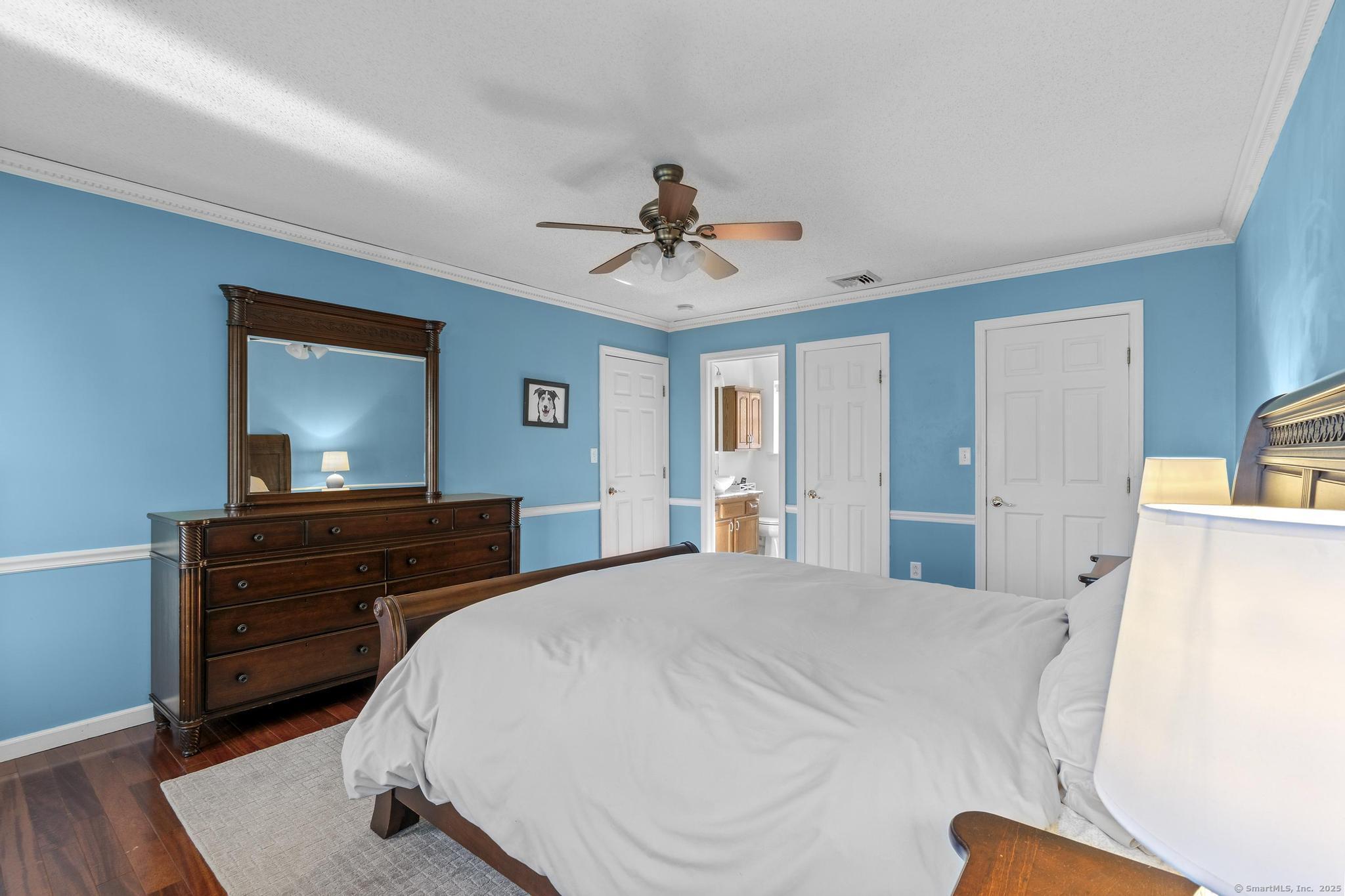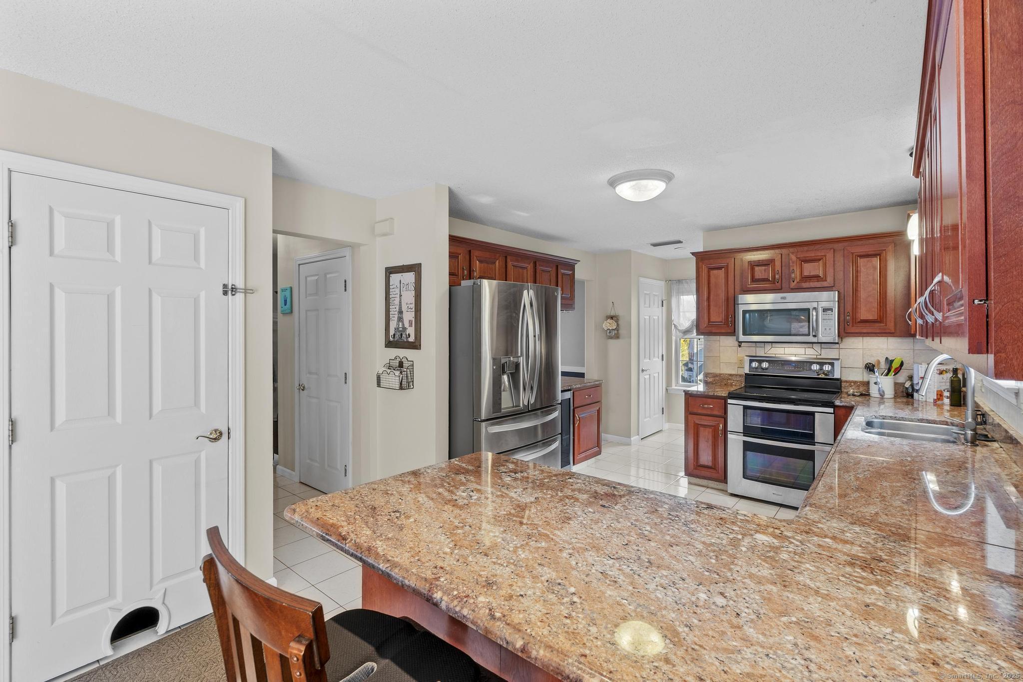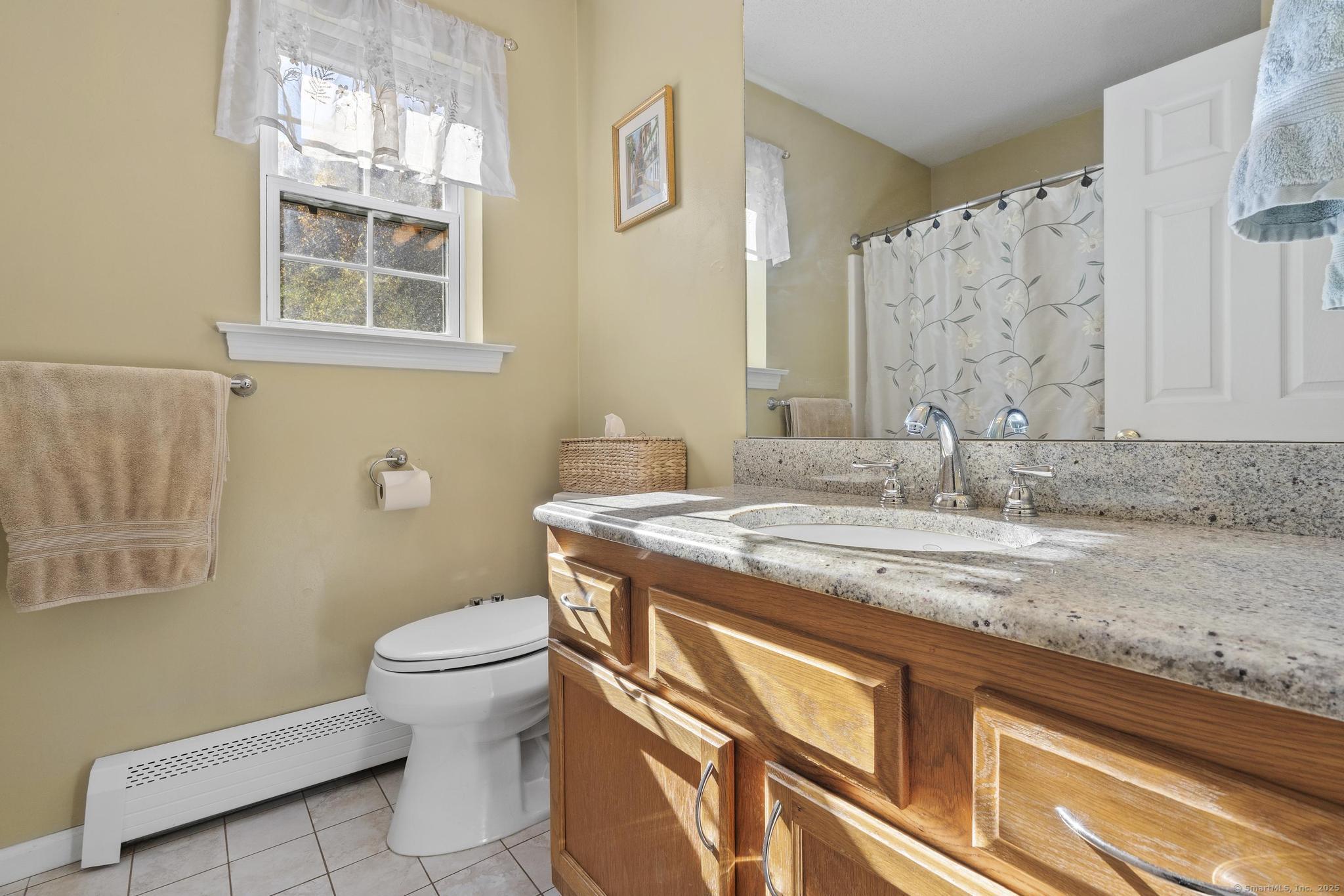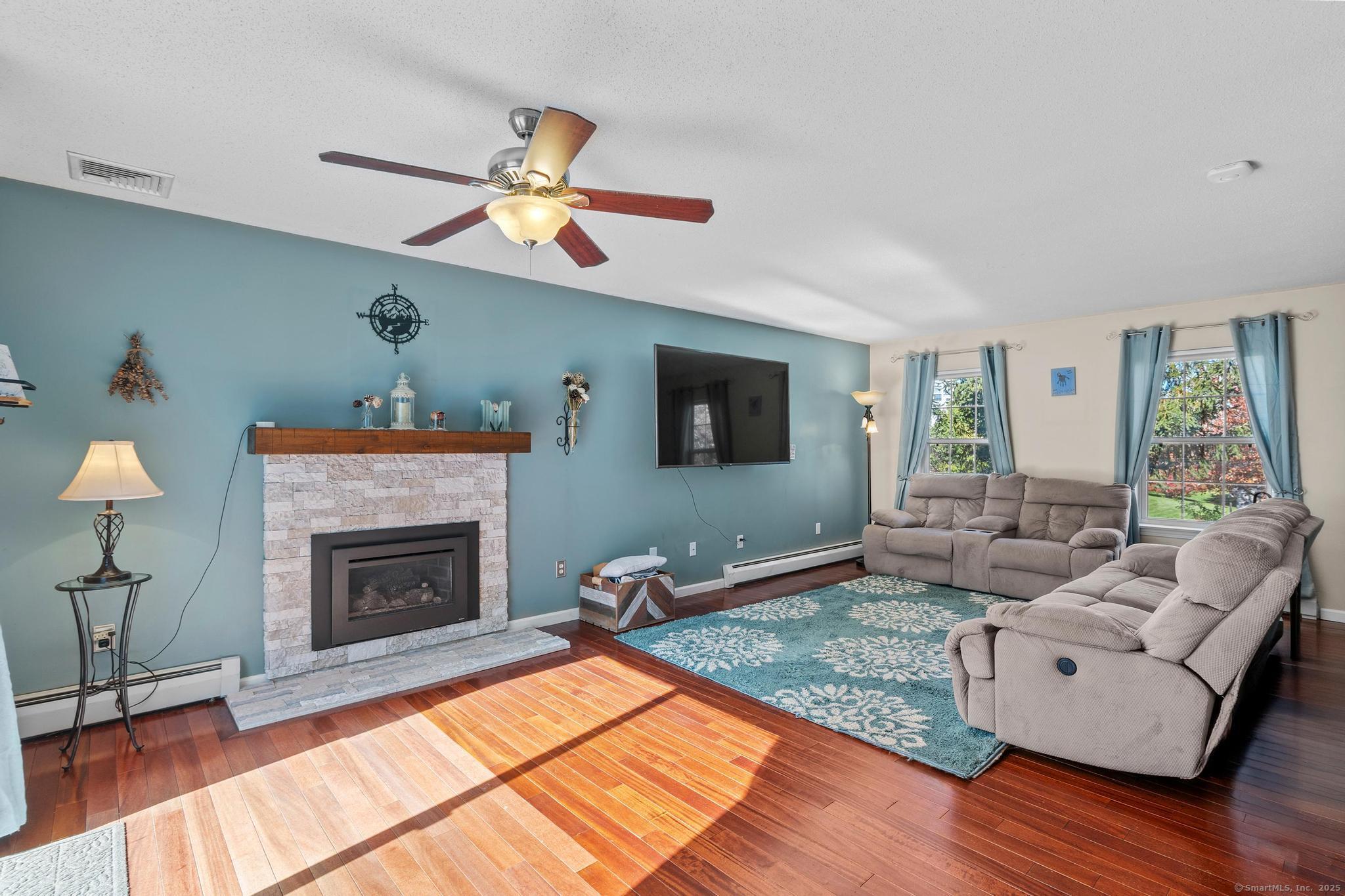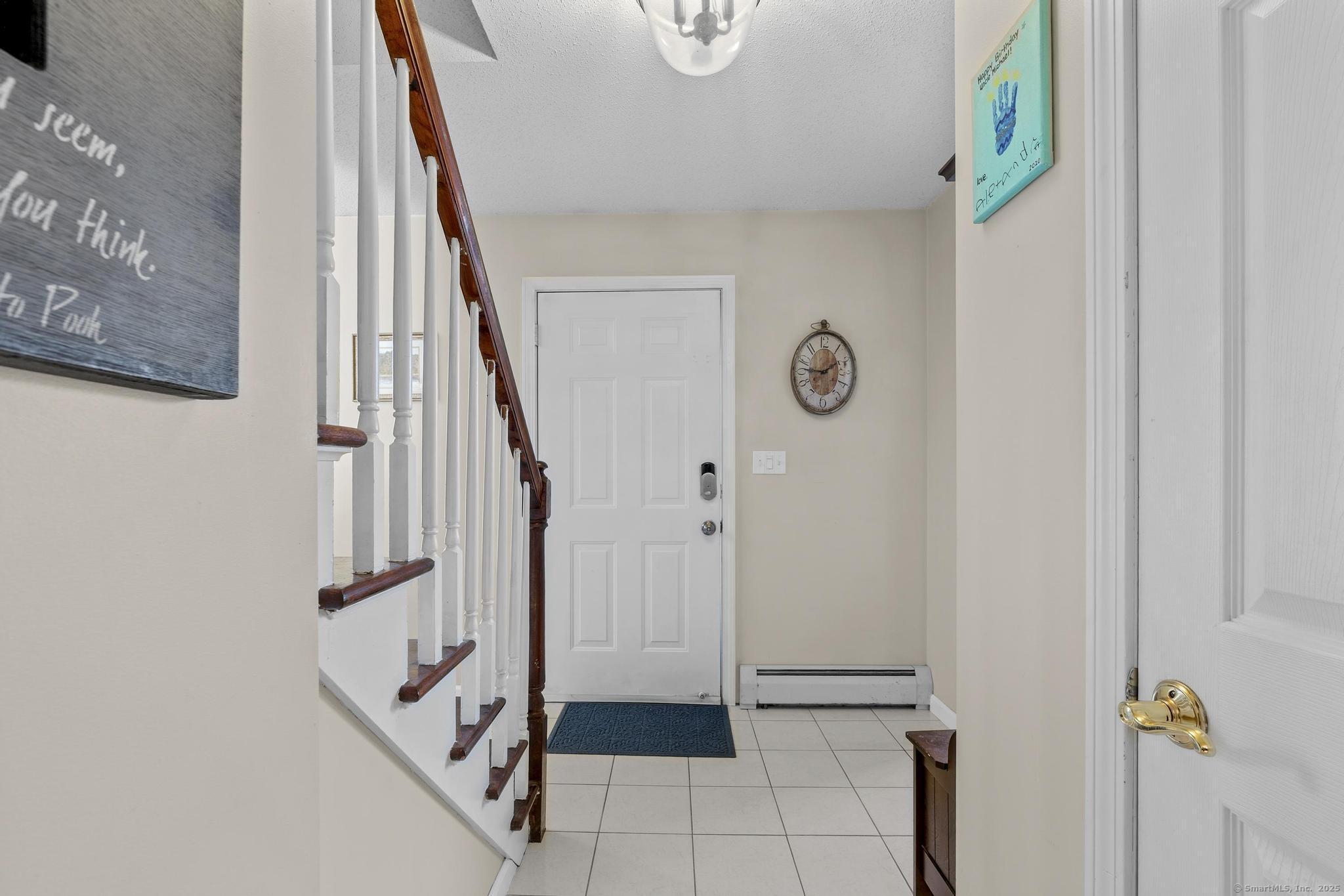 Rarely available! Exceptional, move in ready Colonial located on a quiet cul de sac, nestled toward the back of the desirable Sinnott Farm neighborhood. This 3 BR/2.1 Bath home offers an open floor plan with a front to back living room with gas fireplace and sliders to a private deck and patio, perfect for outdoor entertaining and relaxation. The home's kitchen is spacious and features cherry cabinets, a breakfast bar, stainless steel appliances and granite counters with tile backsplash. There is a formal dining room to host holidays and gatherings, and an updated half bath completing the main level. Upstairs is a large primary suite with walk in closet and private ensuite bathroom. In addition, there are two large guest rooms and a second full bath. The home features a bright interior with hardwood floors throughout, plenty of closet space and central vacuum. In the lower level is a play/rec room, as well as the laundry, space for storage and access to the two car garage. Recent updates to the home include: roof (2022), Buderus boiler (2020), air conditioning (2023), new driveway (2024) and so much more (list available). The home backs up to undeveloped town-owned land and provides a peaceful setting in a well-maintained neighborhood. There's nothing to do but move in to this wonderfully maintained home that shows beautifully! This one is not to be missed! The Town of Bloomfield is doing a 4 year tax phase in; current property taxes are $6559 year.