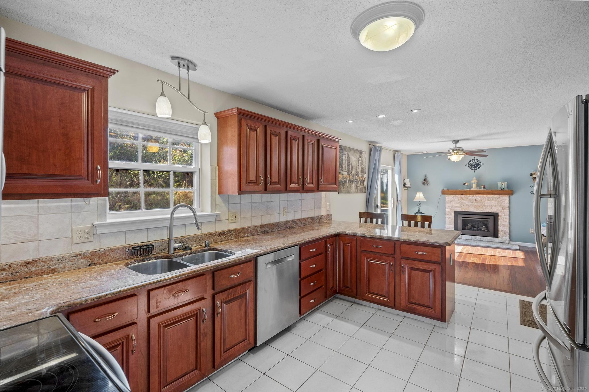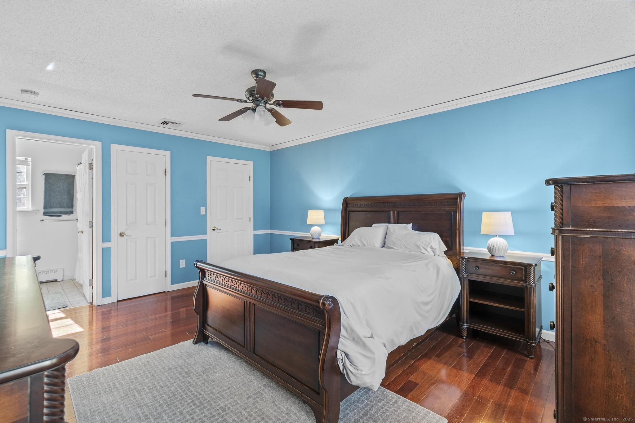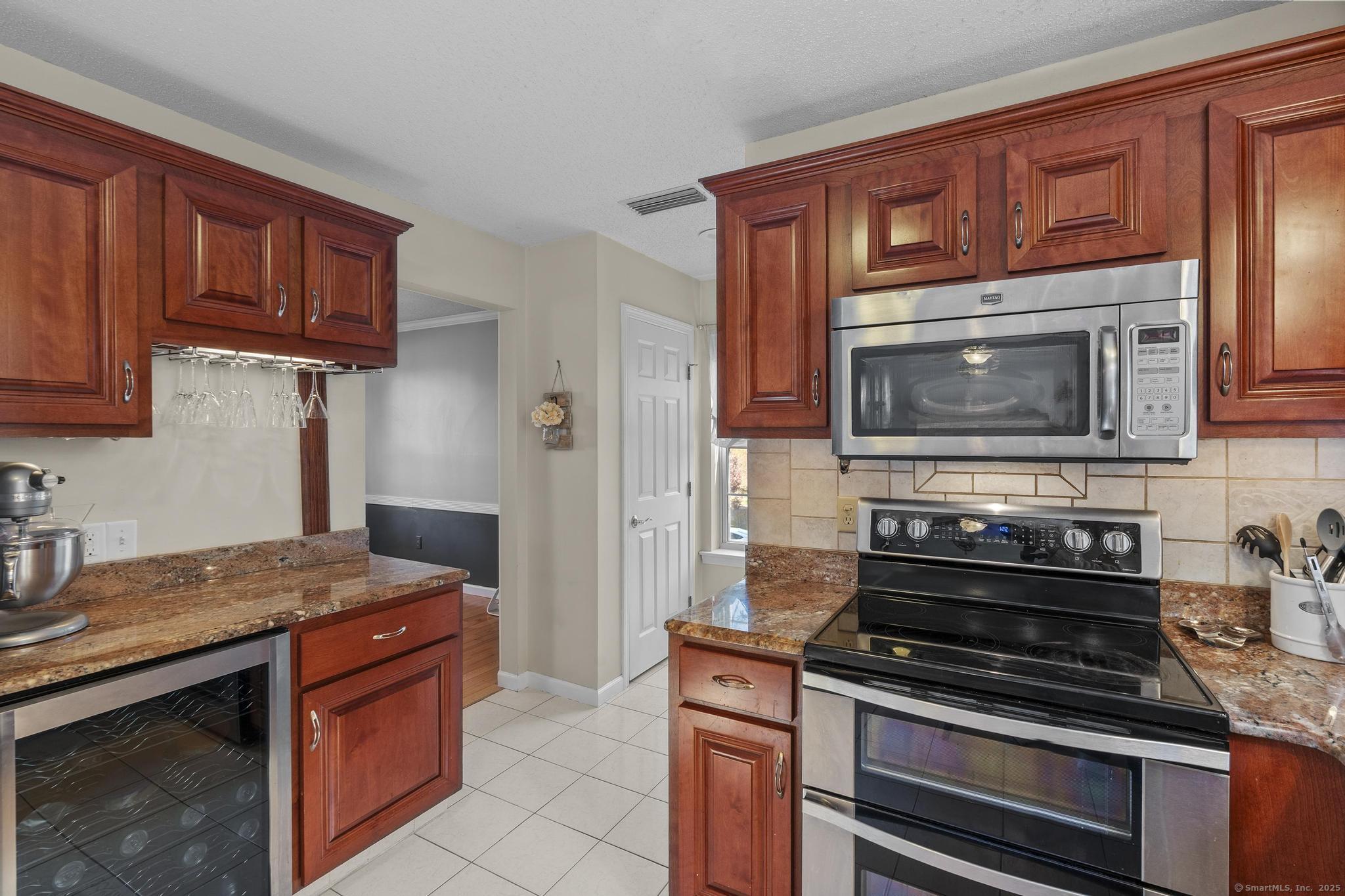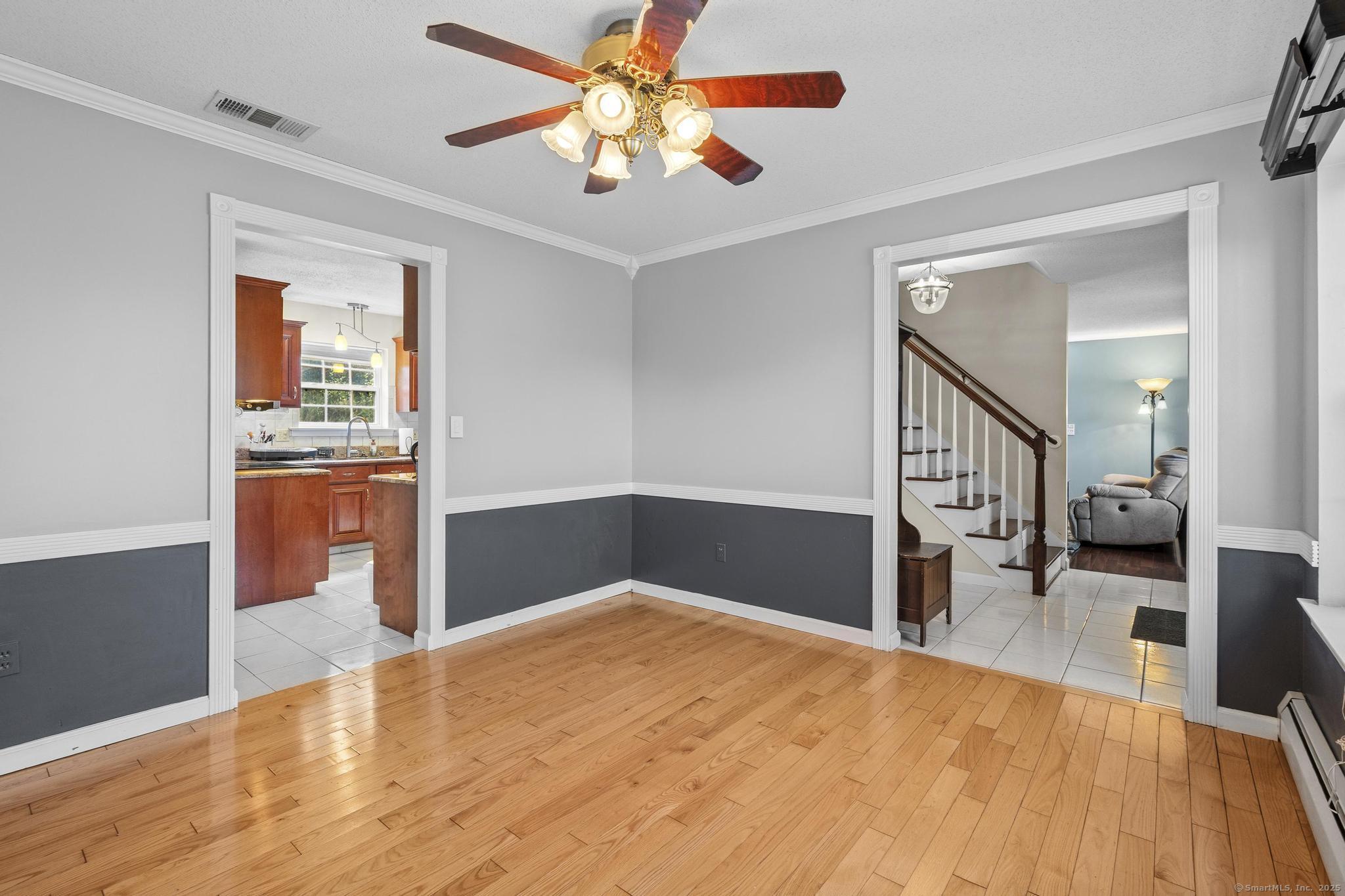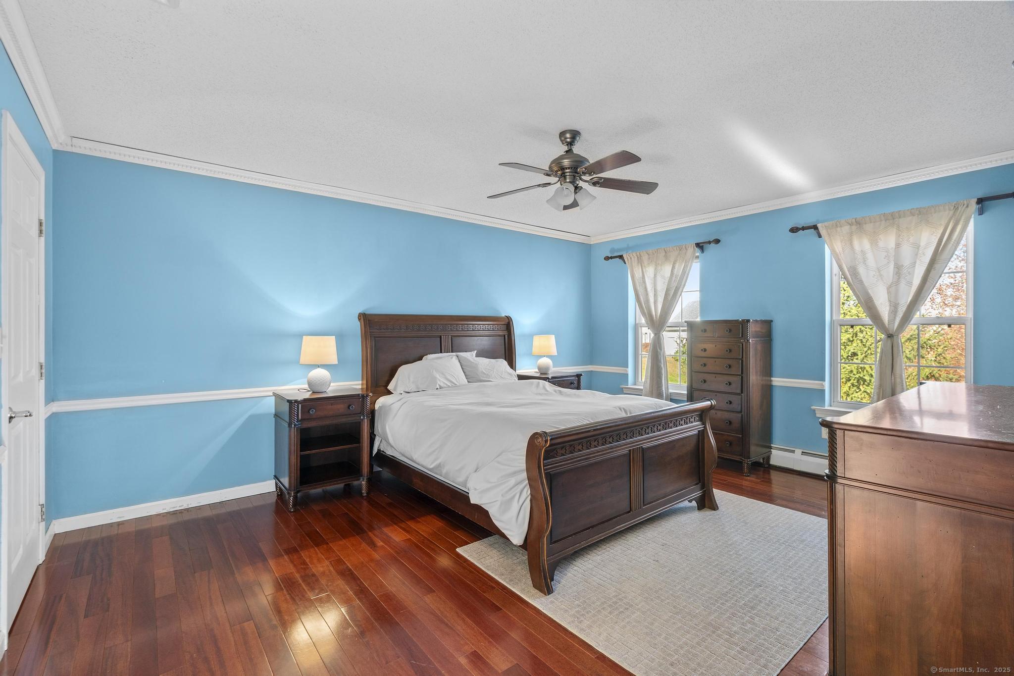 Rarely available! Exceptional, move in ready Colonial located on a quiet cul de sac, nestled toward the back of the desirable Sinnott Farm neighborhood. This 3 BR/2.1 Bath home offers an open floor plan with a front to back living room with gas fireplace and sliders to a private deck and patio, perfect for outdoor entertaining and relaxation. The home's kitchen is spacious and features cherry cabinets, a breakfast bar, stainless steel appliances and granite counters with tile backsplash. There is a formal dining room to host holidays and gatherings, and an updated half bath completing the main level. Upstairs is a large primary suite with walk in closet and private ensuite bathroom. In addition, there are two large guest rooms and a second full bath. The home features a bright interior with hardwood floors throughout, plenty of closet space and central vacuum. In the lower level is a play/rec room, as well as the laundry, space for storage and access to the two car garage. Recent updates to the home include: roof (2022), Buderus boiler (2020), air conditioning (2023), new driveway (2024) and so much more (list available). The home backs up to undeveloped town-owned land and provides a peaceful setting in a well-maintained neighborhood. There's nothing to do but move in to this wonderfully maintained home that shows beautifully! This one is not to be missed! The Town of Bloomfield is doing a 4 year tax phase in; current property taxes are $6559 year.